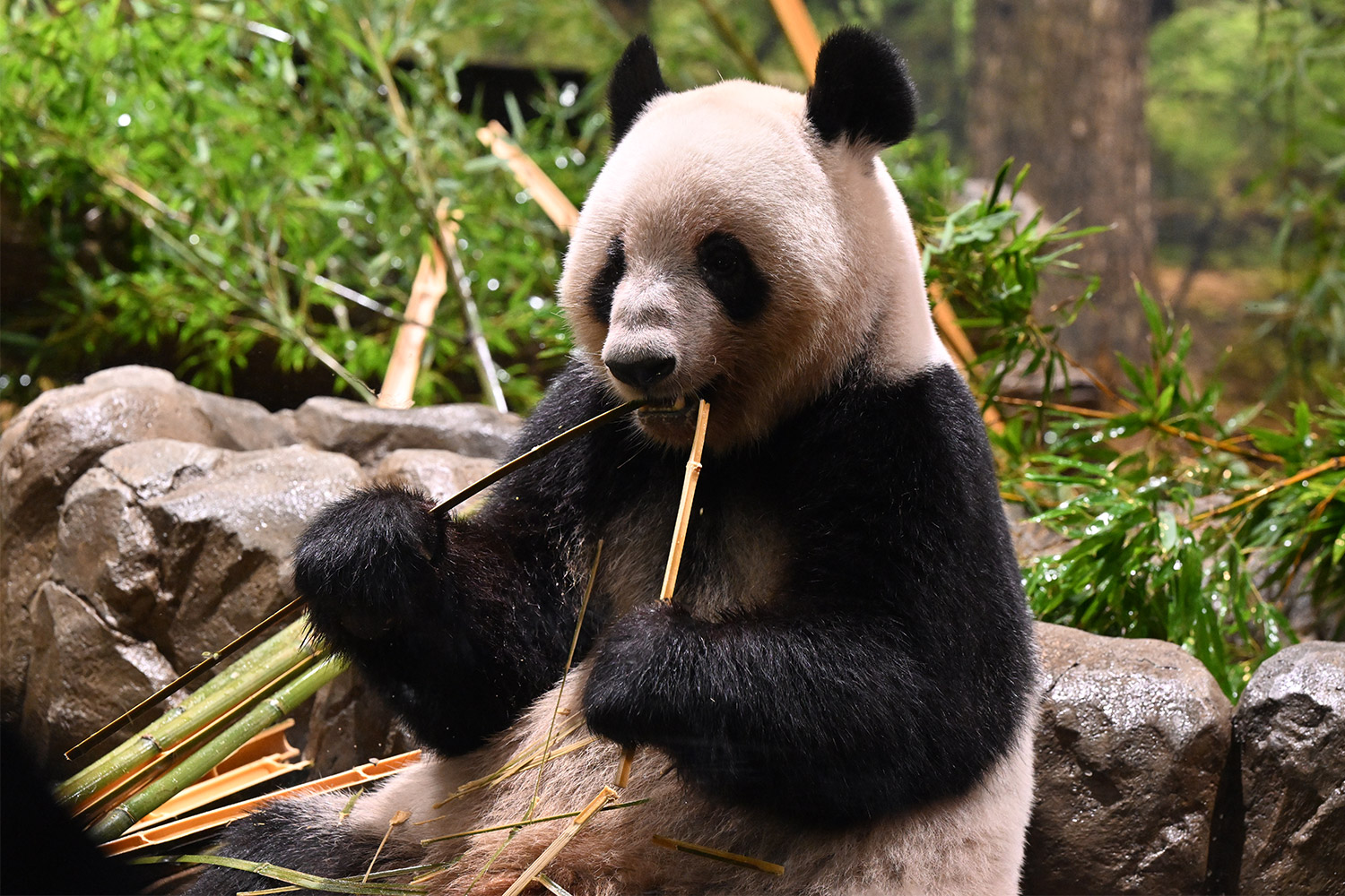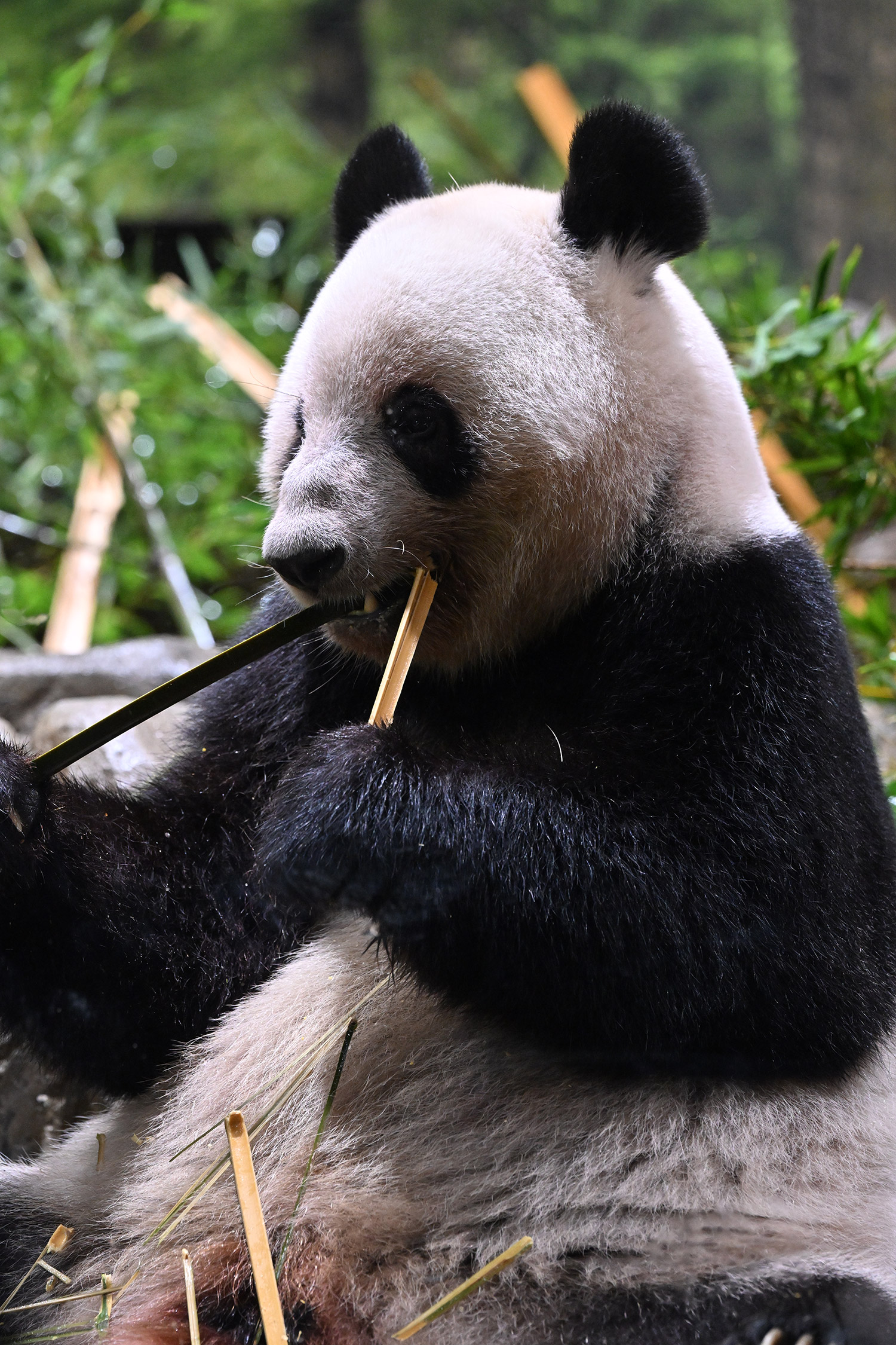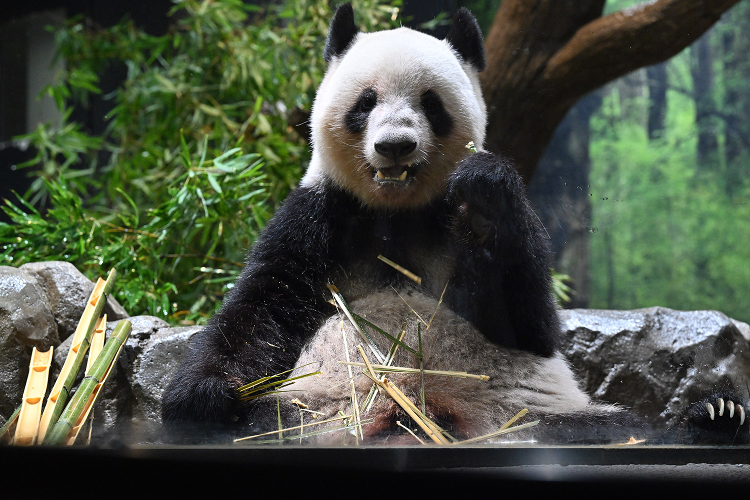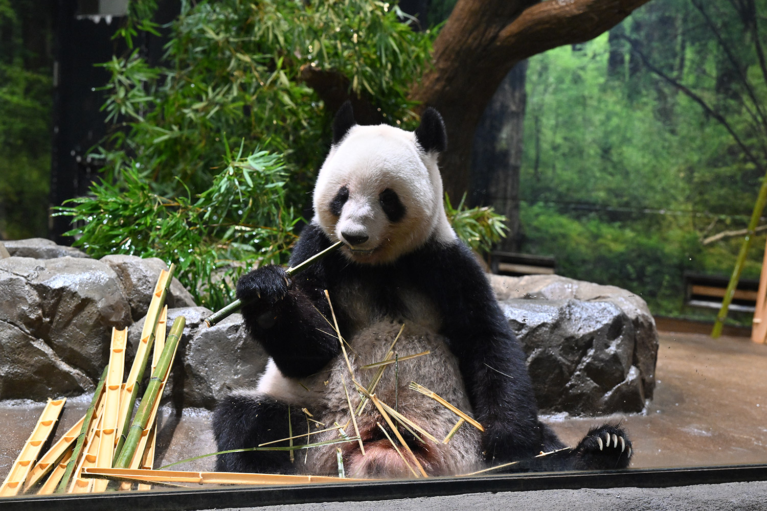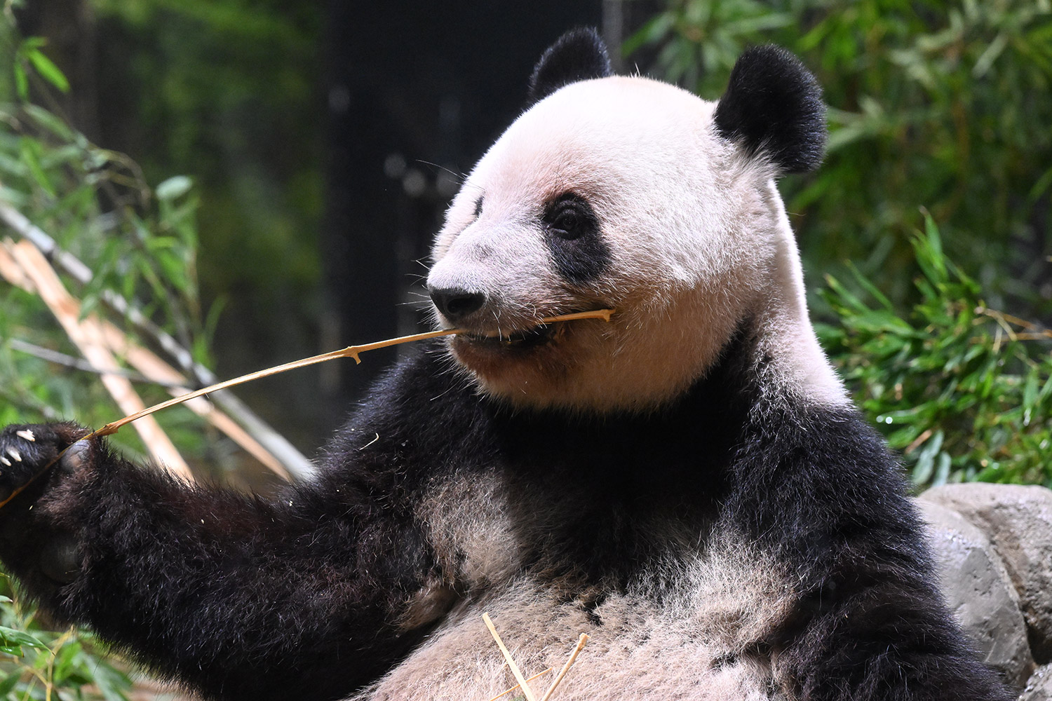 今日のパンダは10:00からです。今日も日差しはやや強めでしたが気温は控えめだったので2頭ともお外でした。