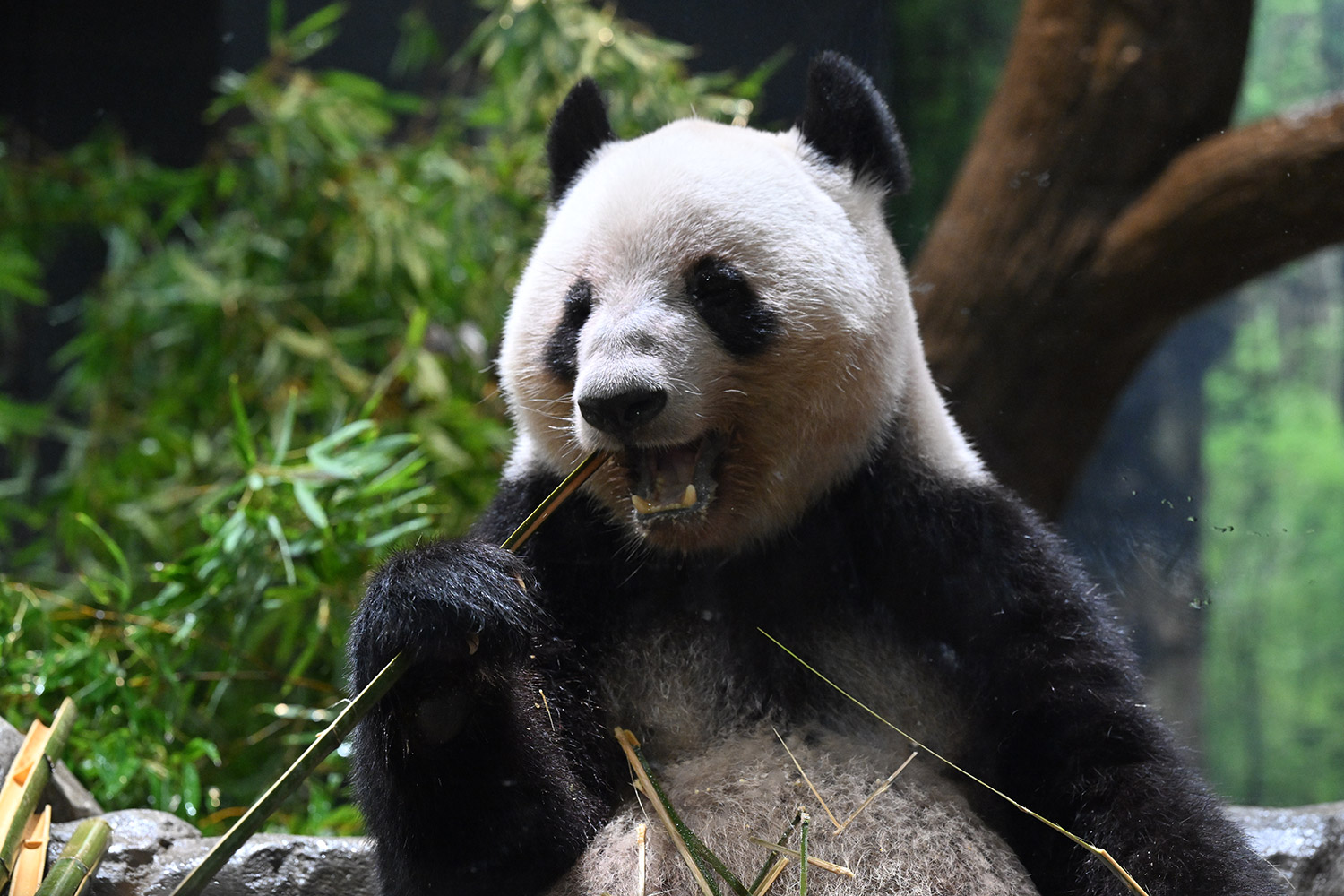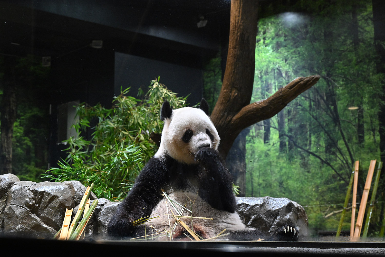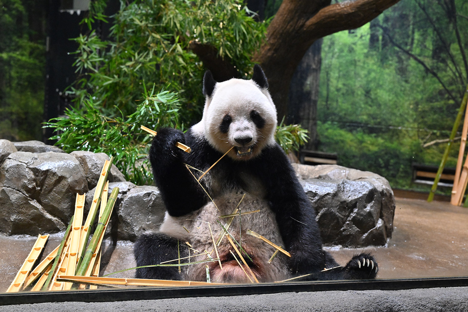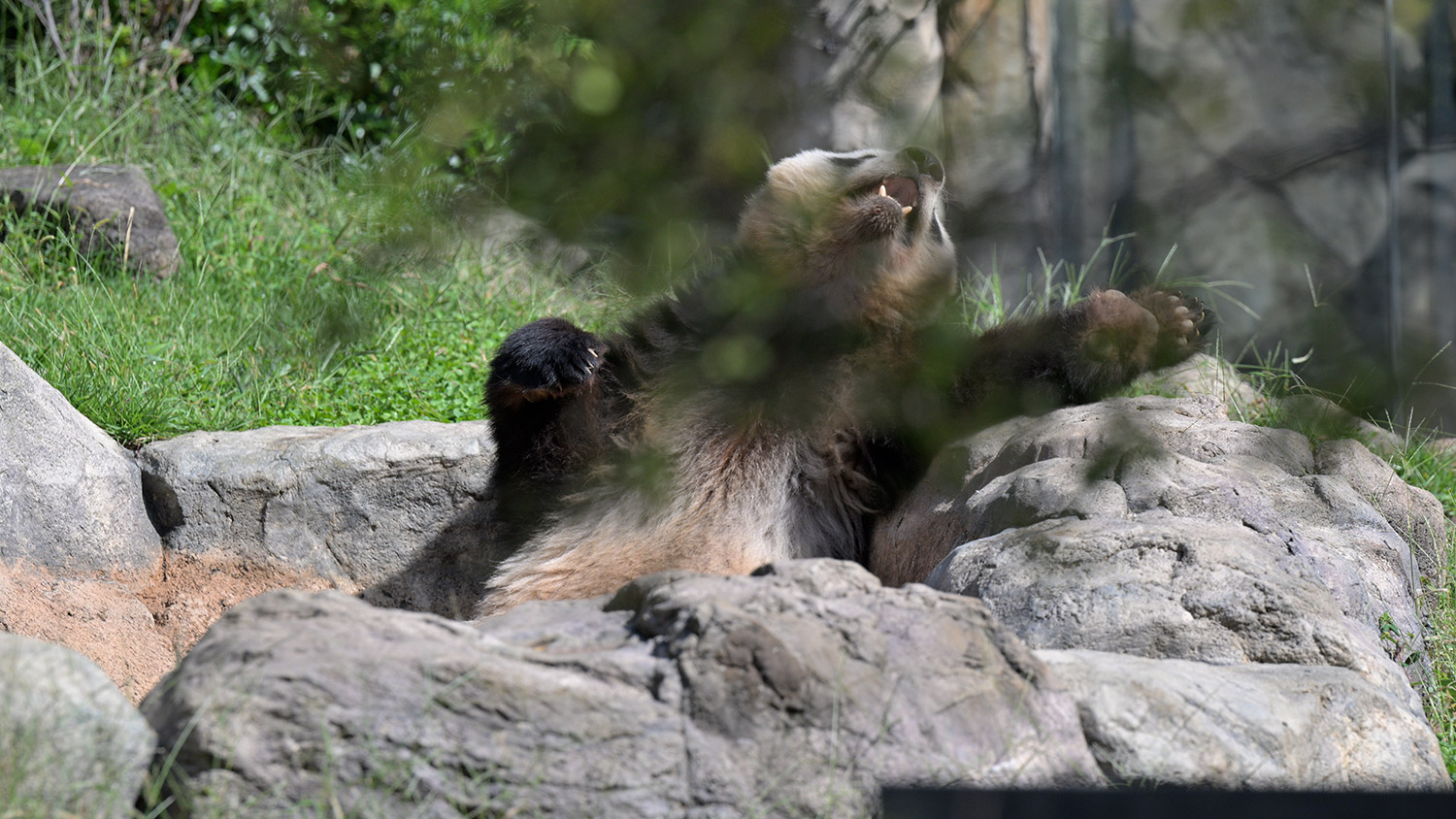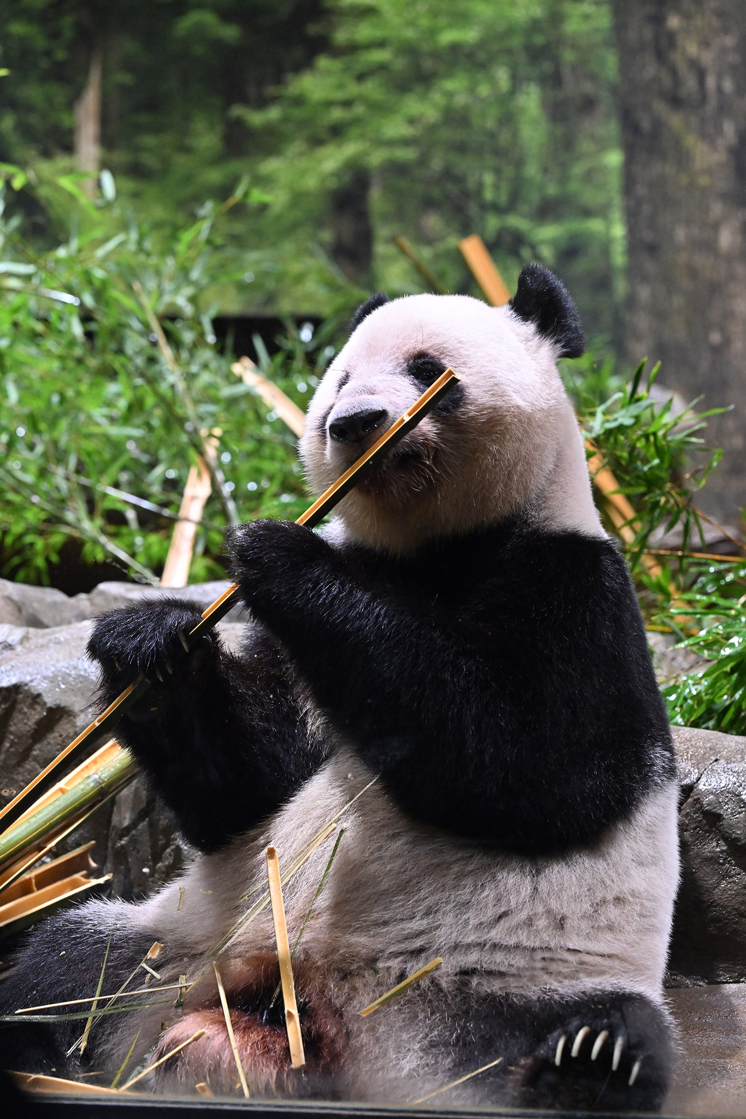 今日のパンダは10:00からです。今日も日差しはやや強めでしたが気温は控えめだったので2頭ともお外でした。