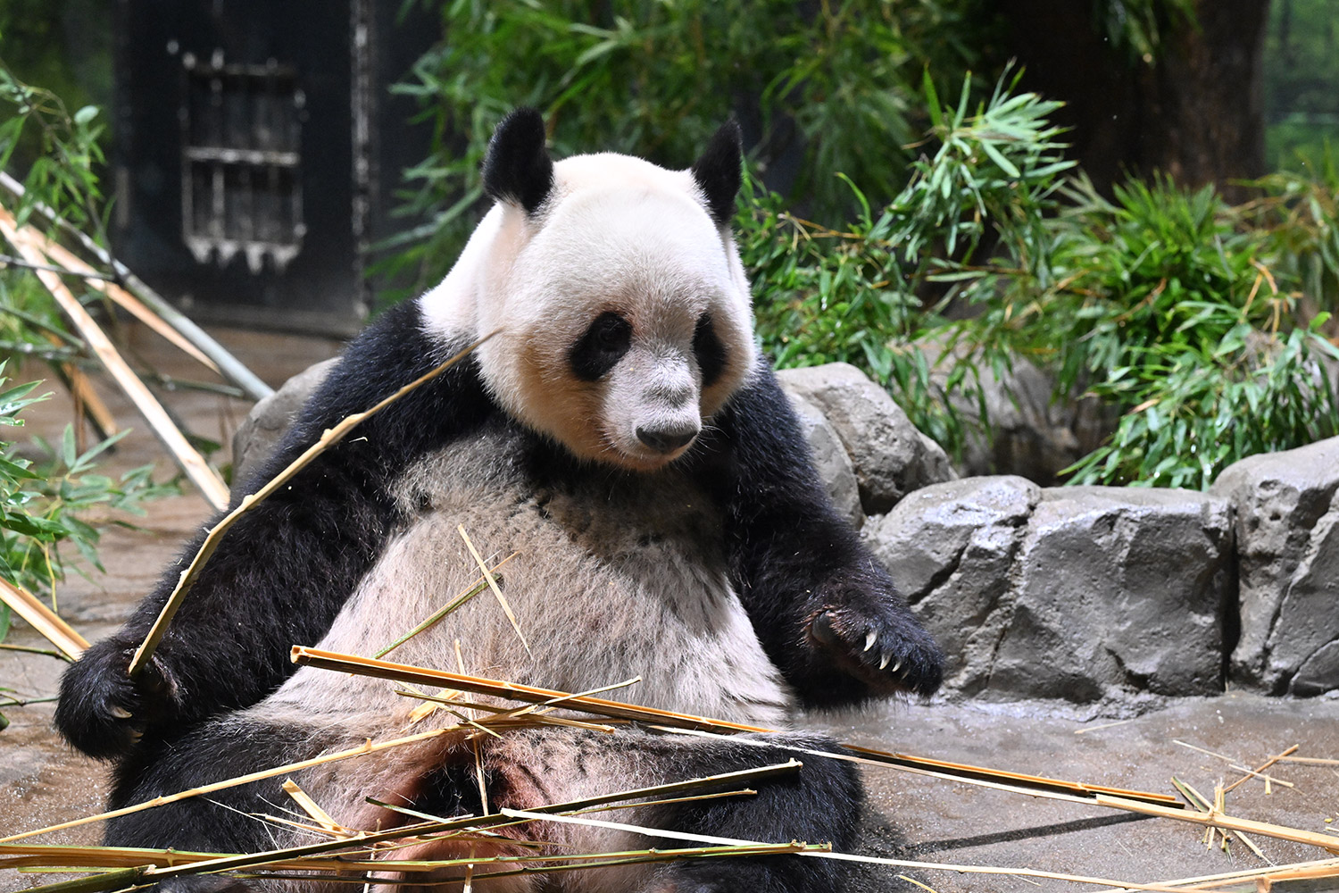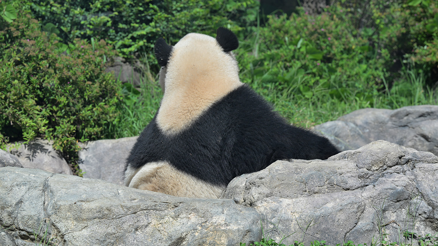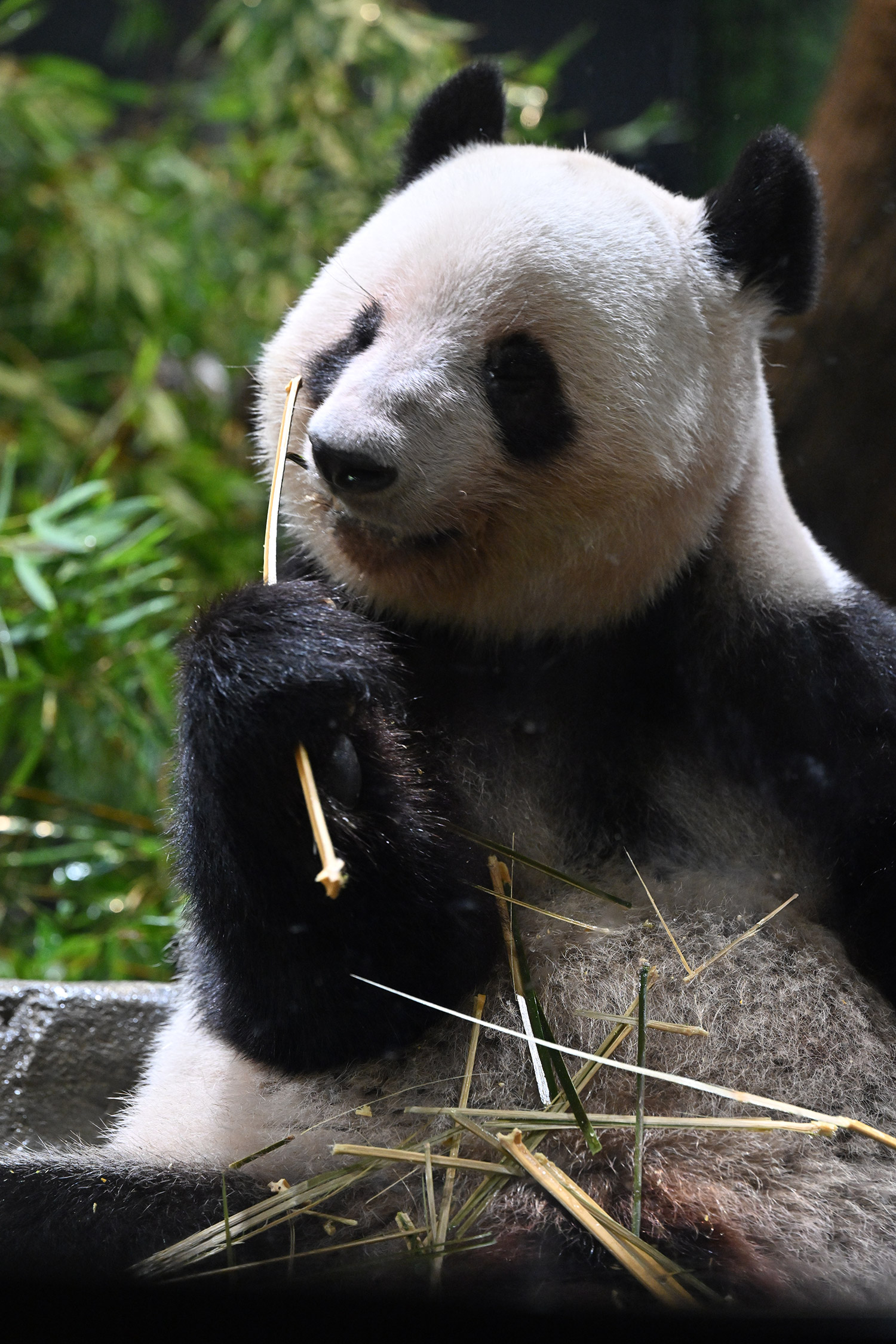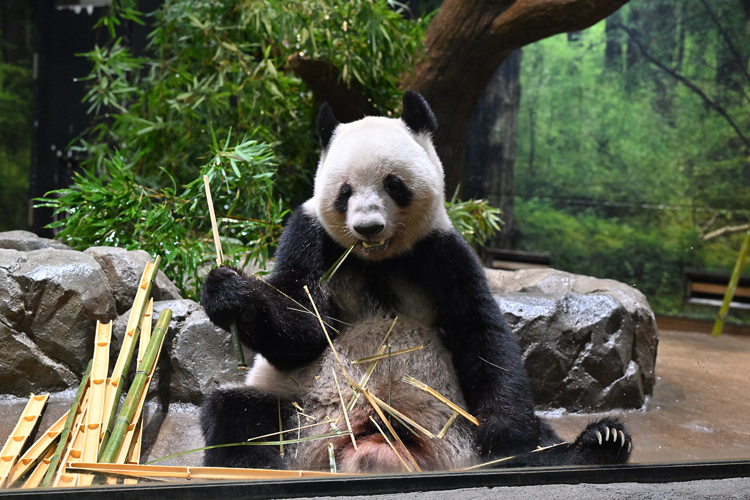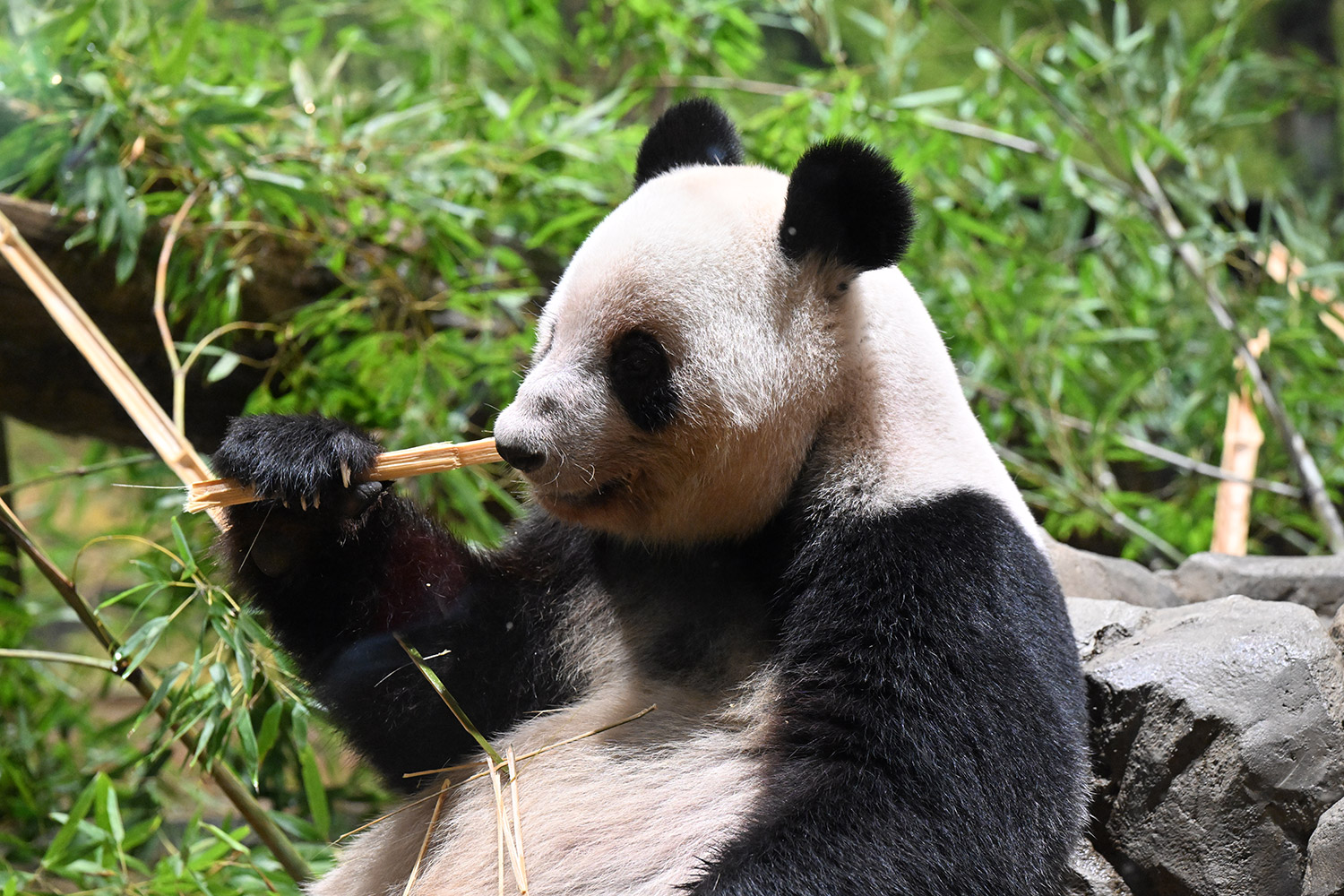 今日のパンダは10:00からです。今日も日差しはやや強めでしたが気温は控えめだったので2頭ともお外でした。