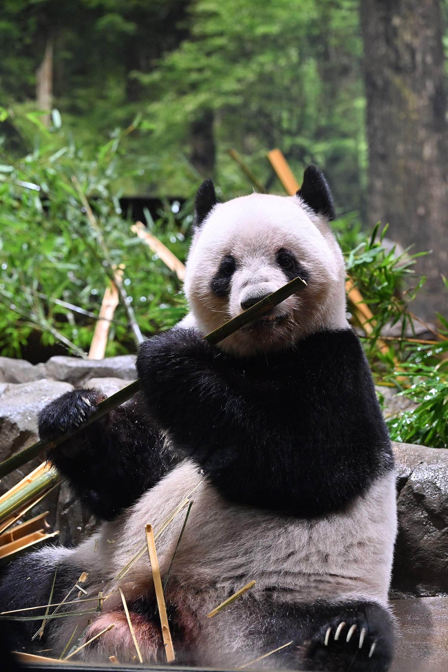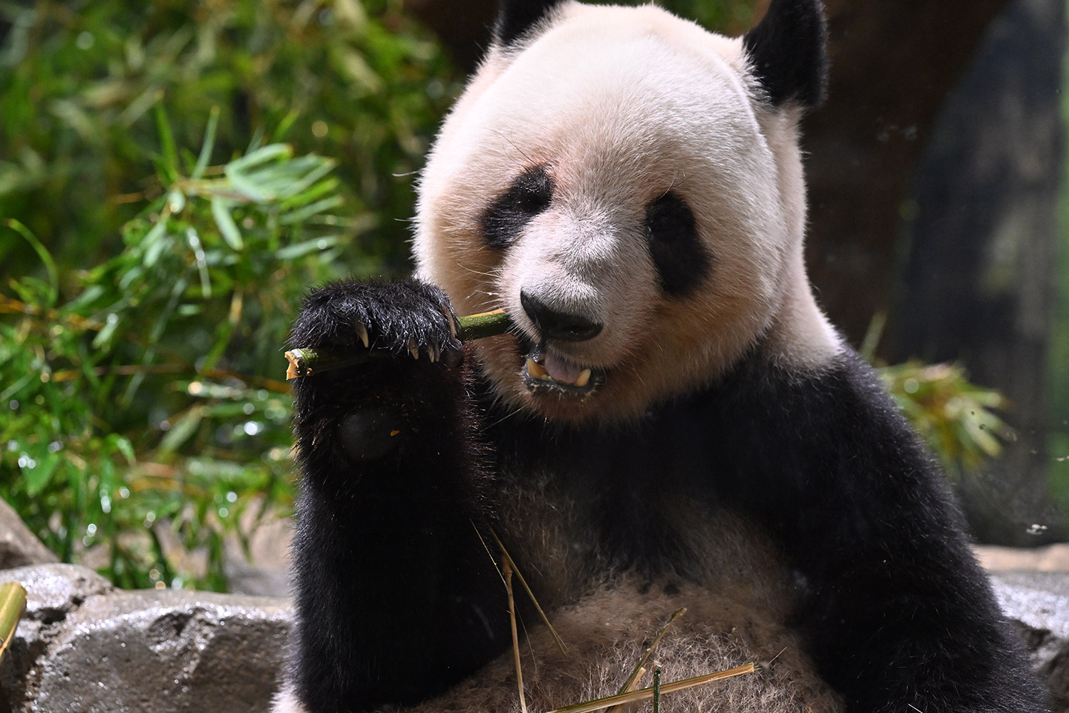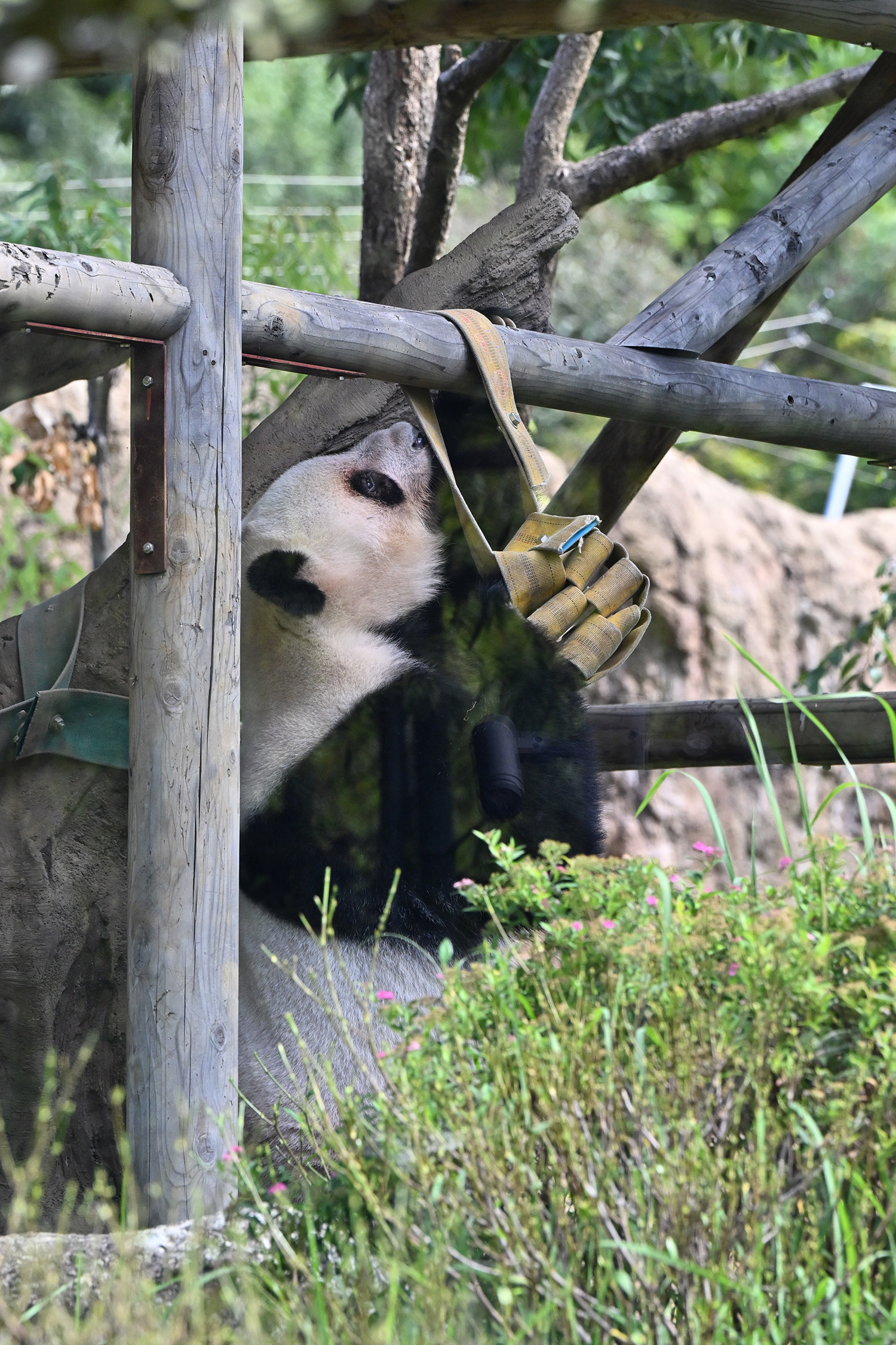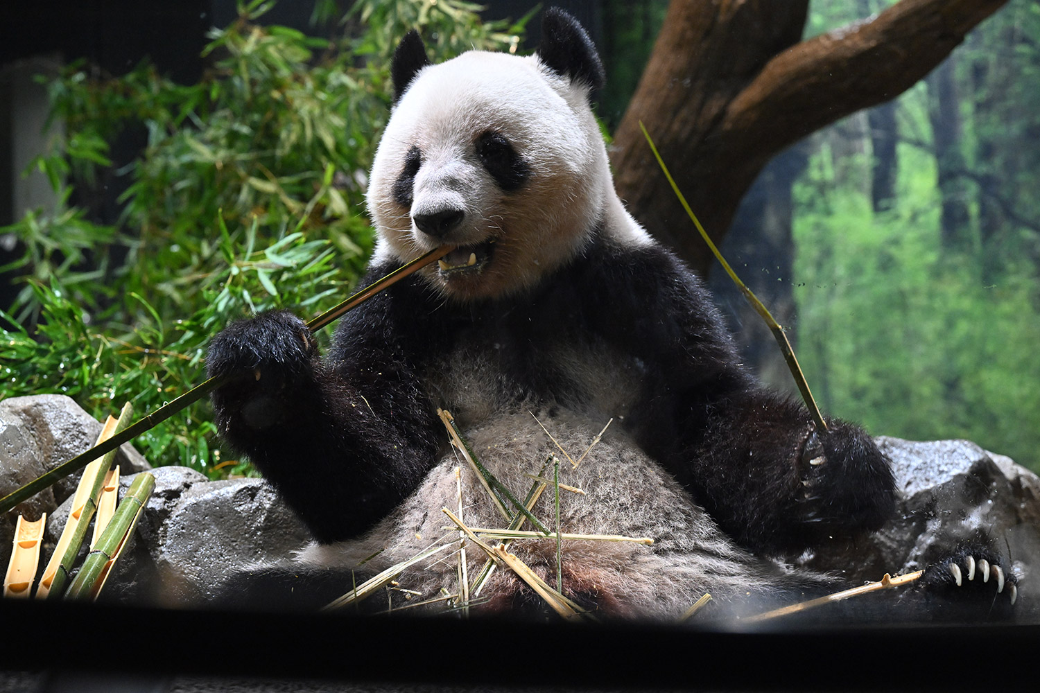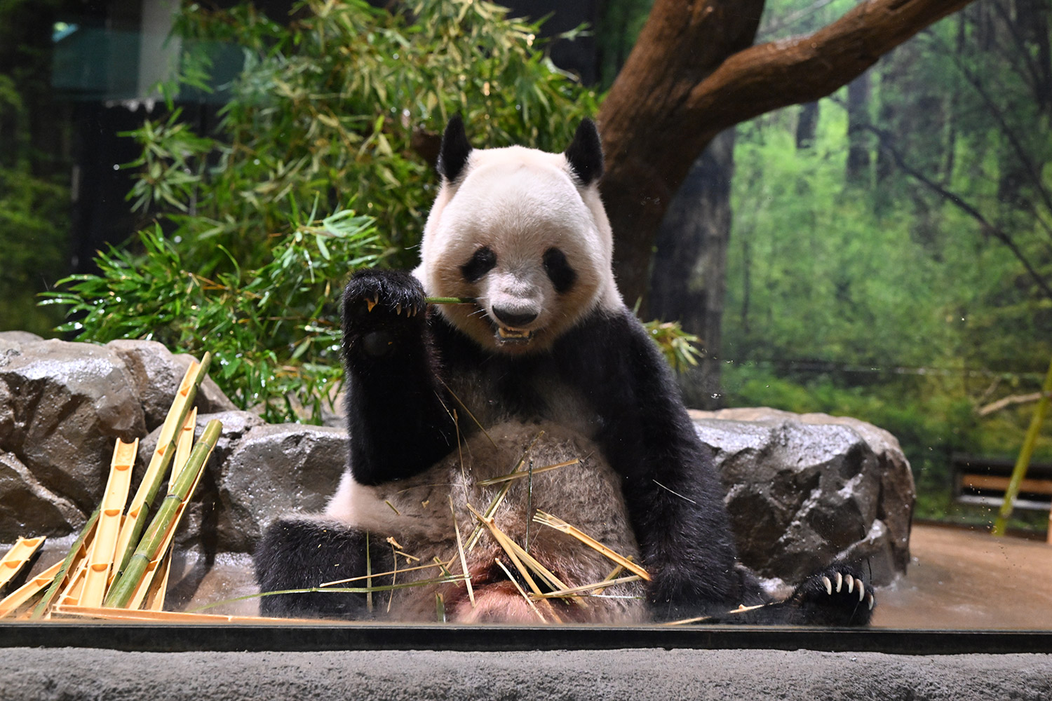 今日のパンダは10:00からです。今日も日差しはやや強めでしたが気温は控えめだったので2頭ともお外でした。
