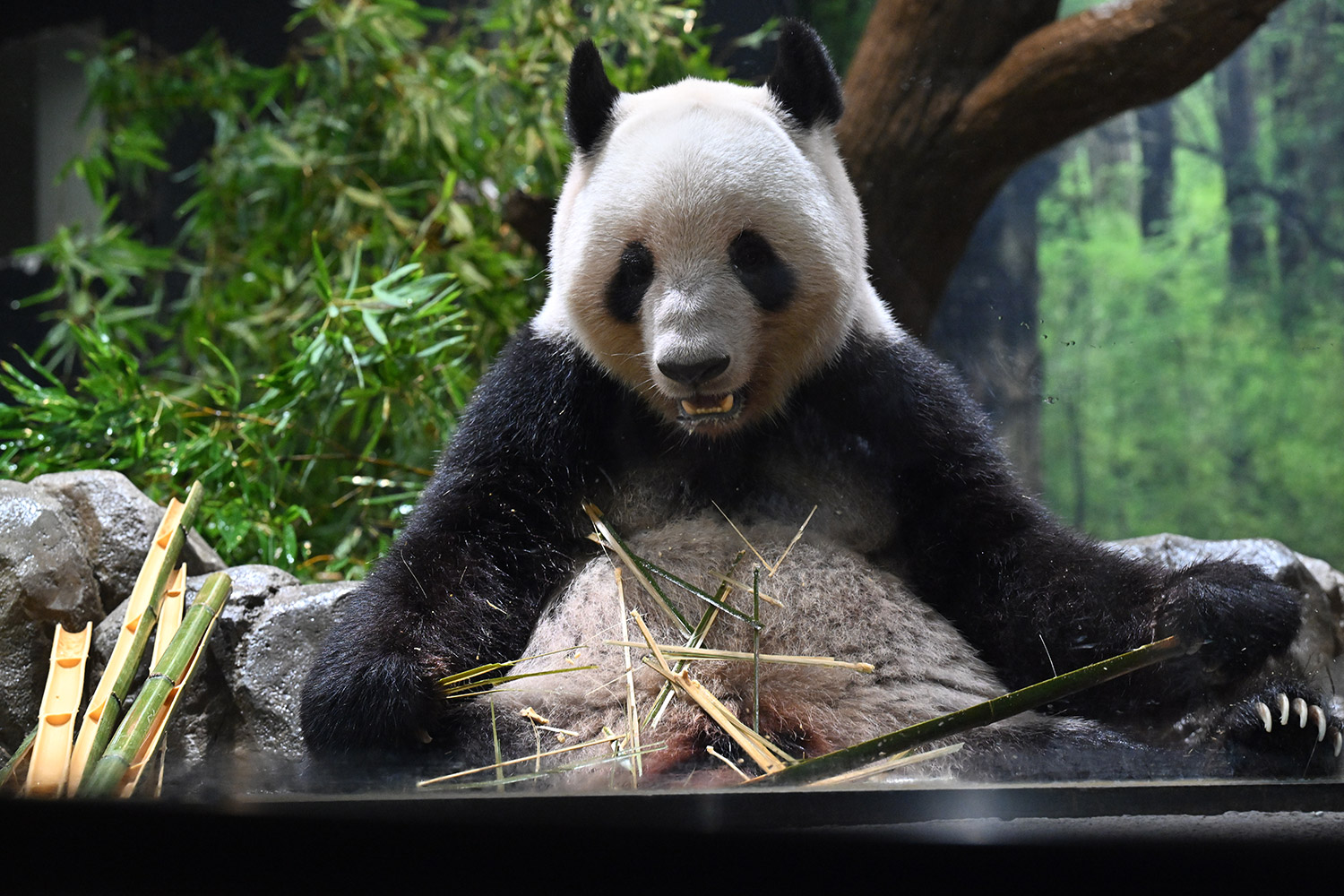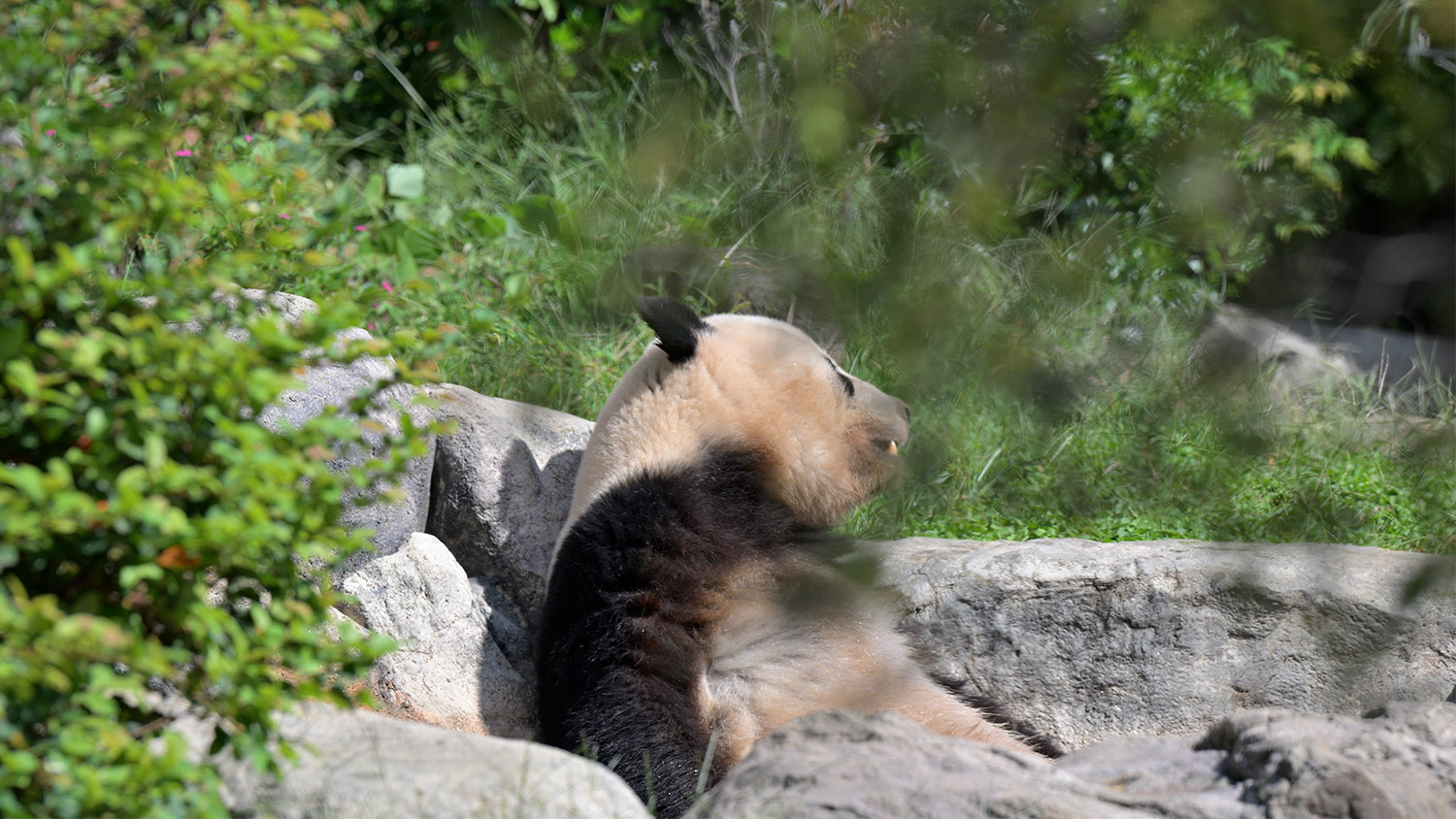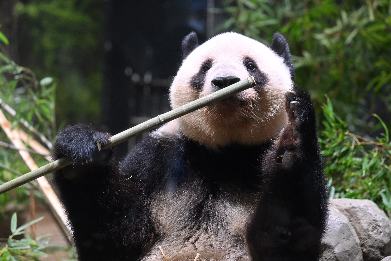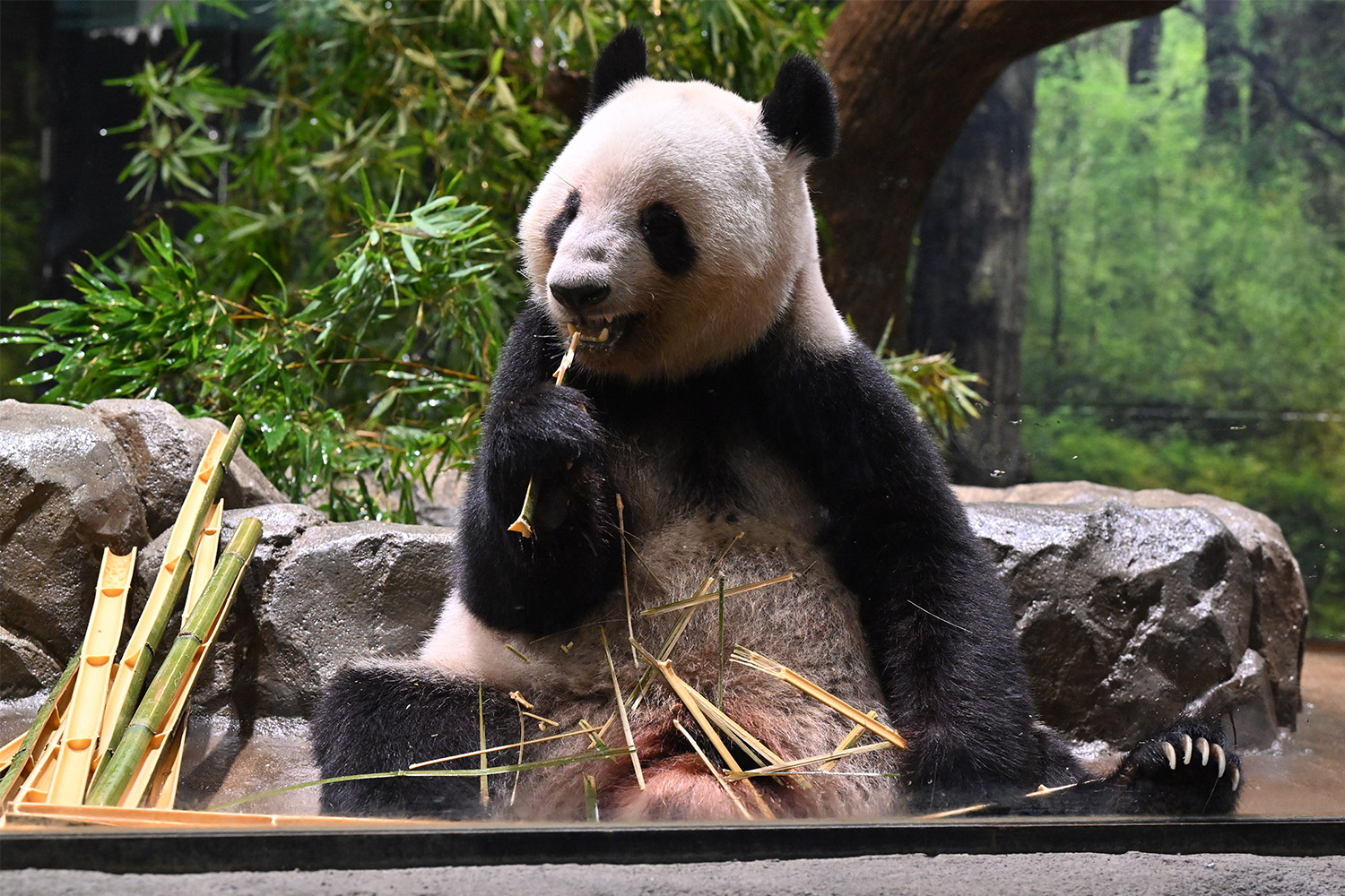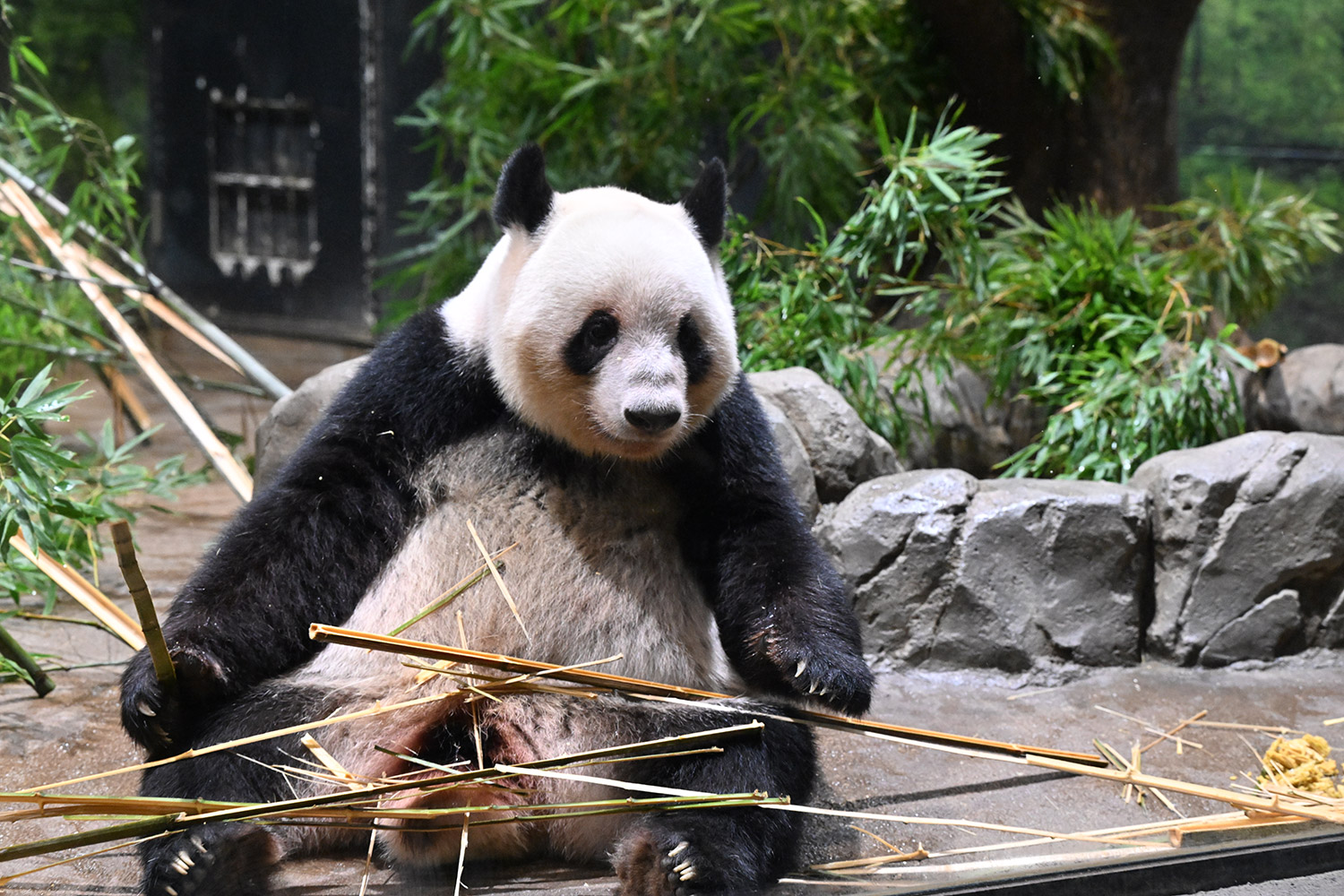 今日のパンダは10:00からです。今日も日差しはやや強めでしたが気温は控えめだったので2頭ともお外でした。
