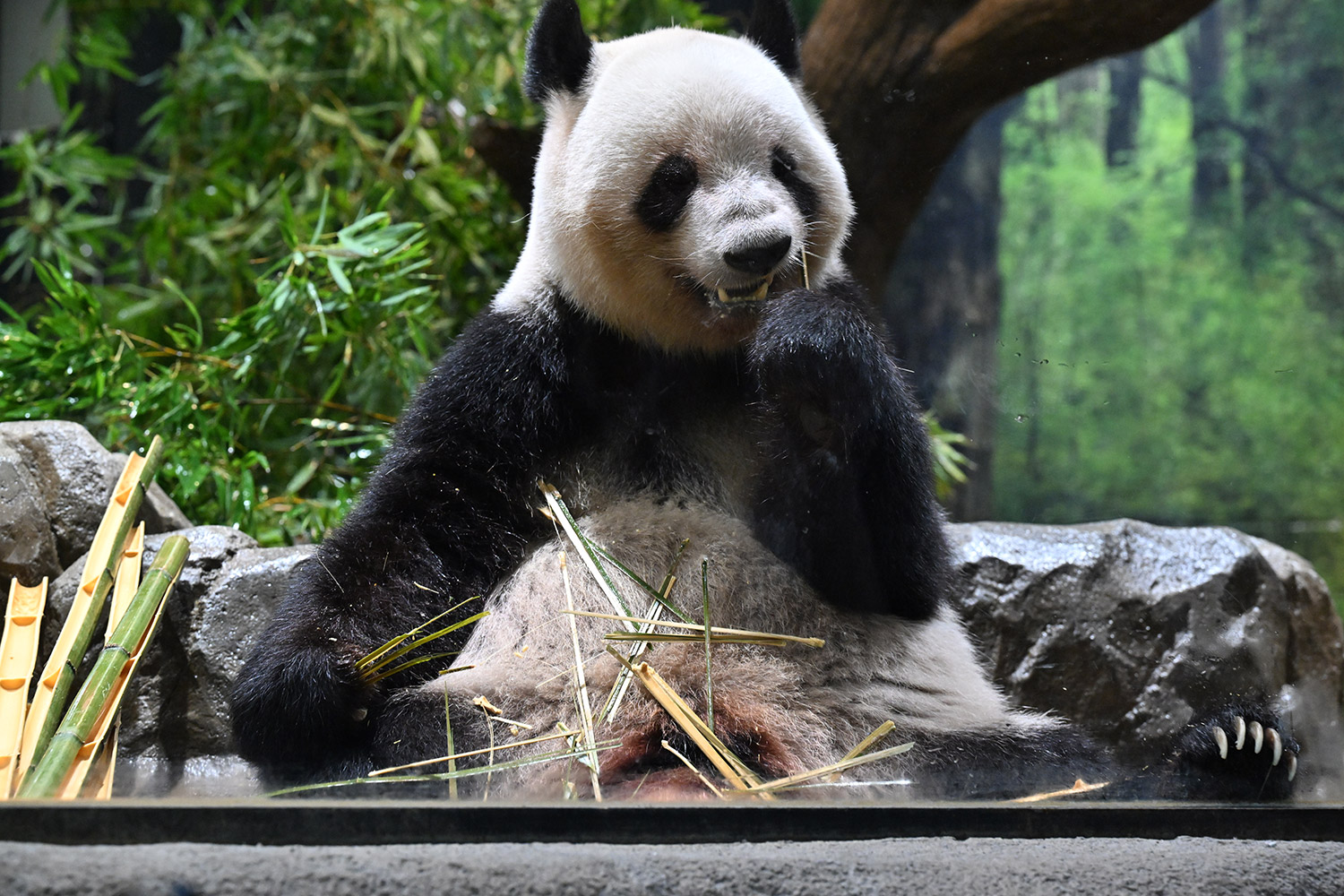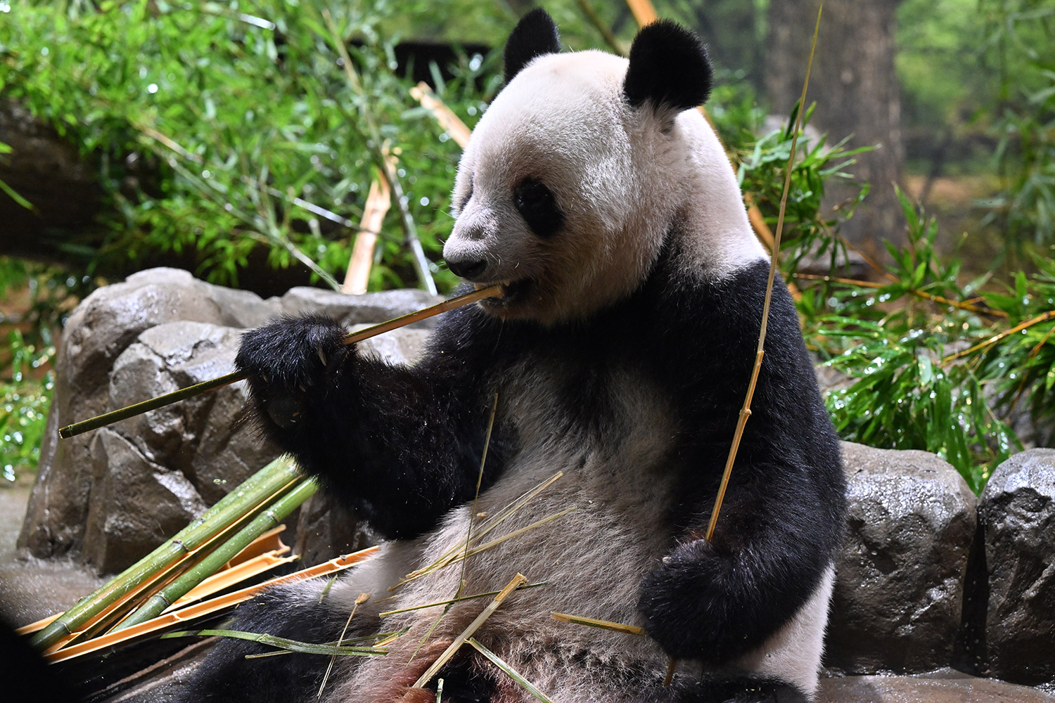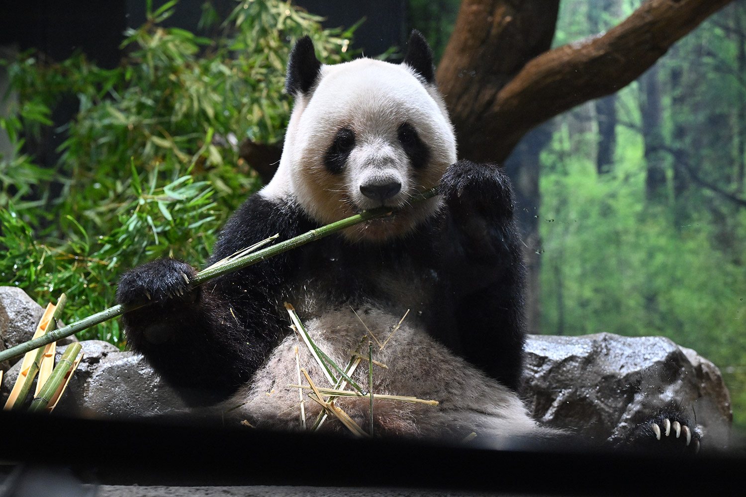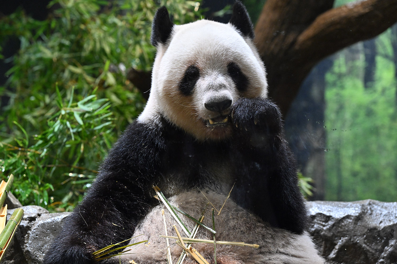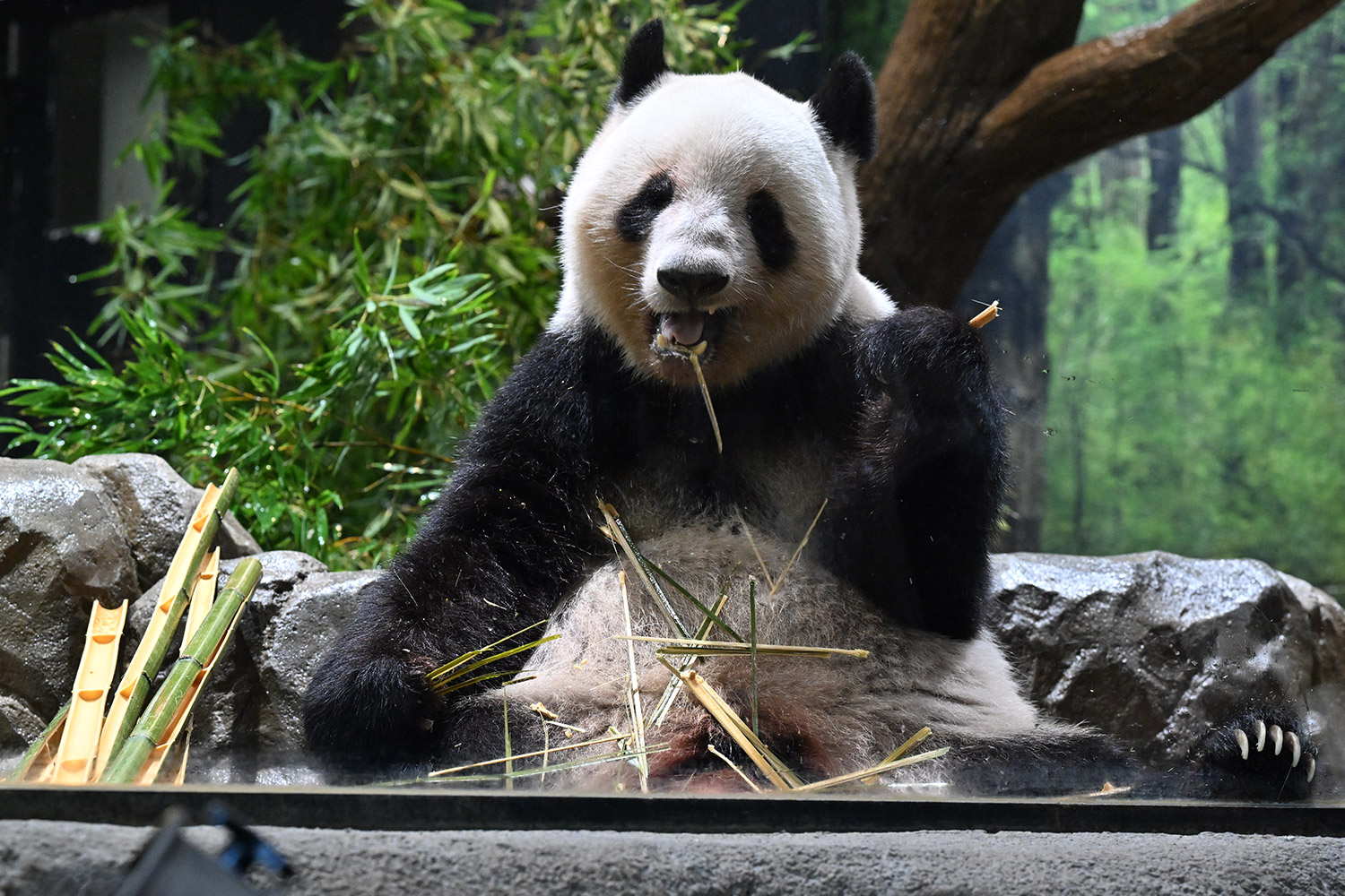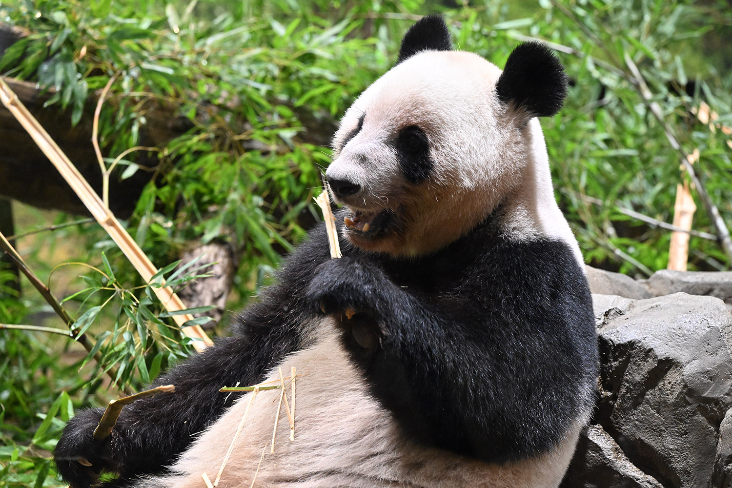 今日のパンダは10:00からです。今日も日差しはやや強めでしたが気温は控えめだったので2頭ともお外でした。