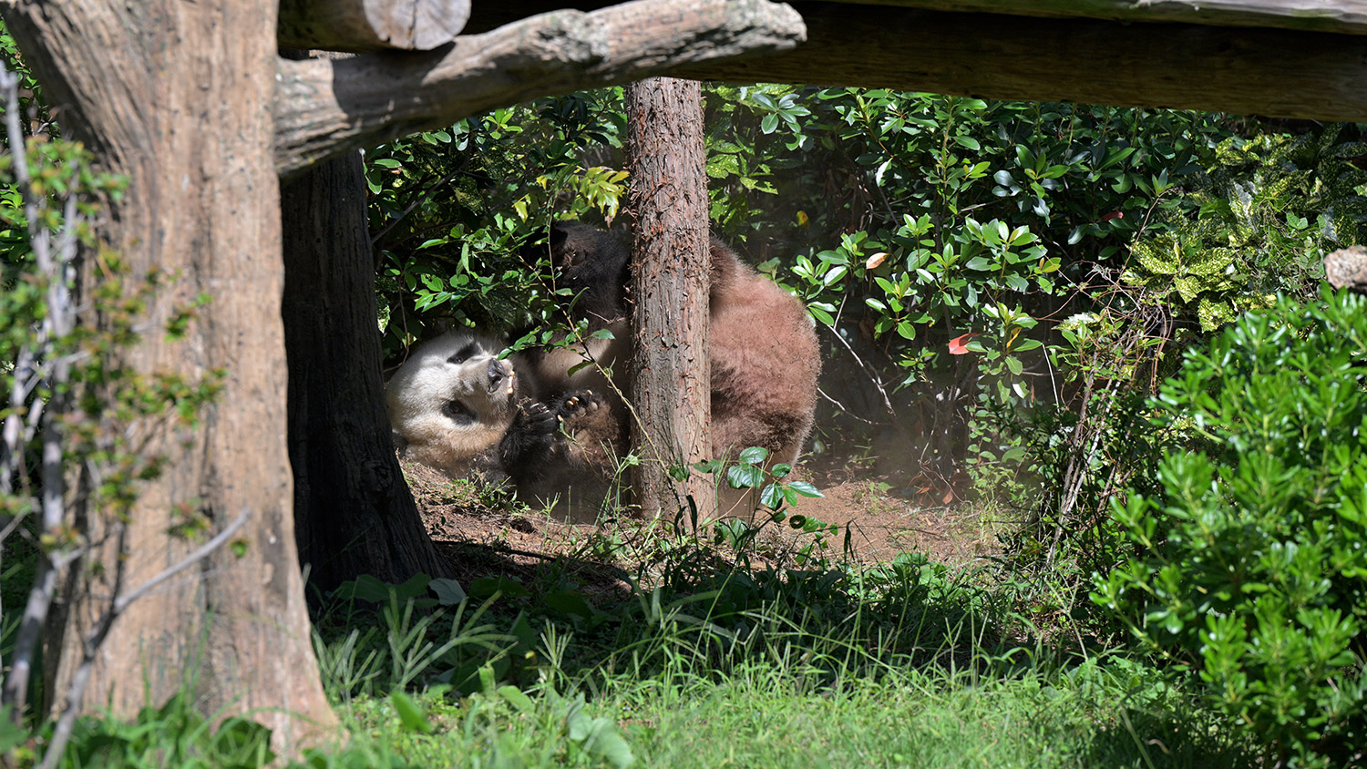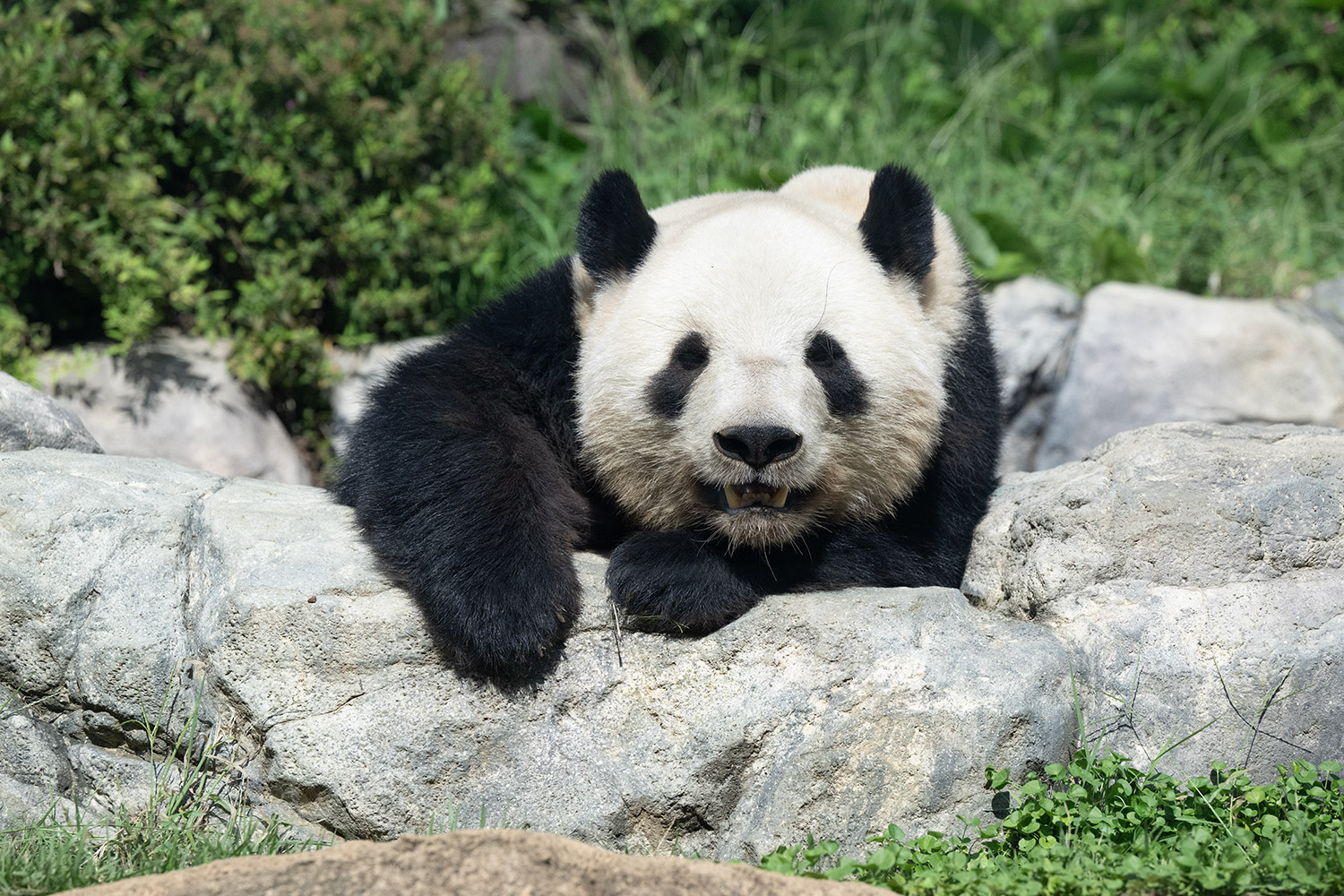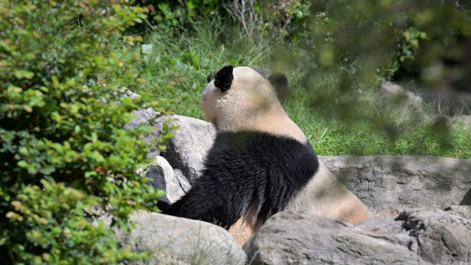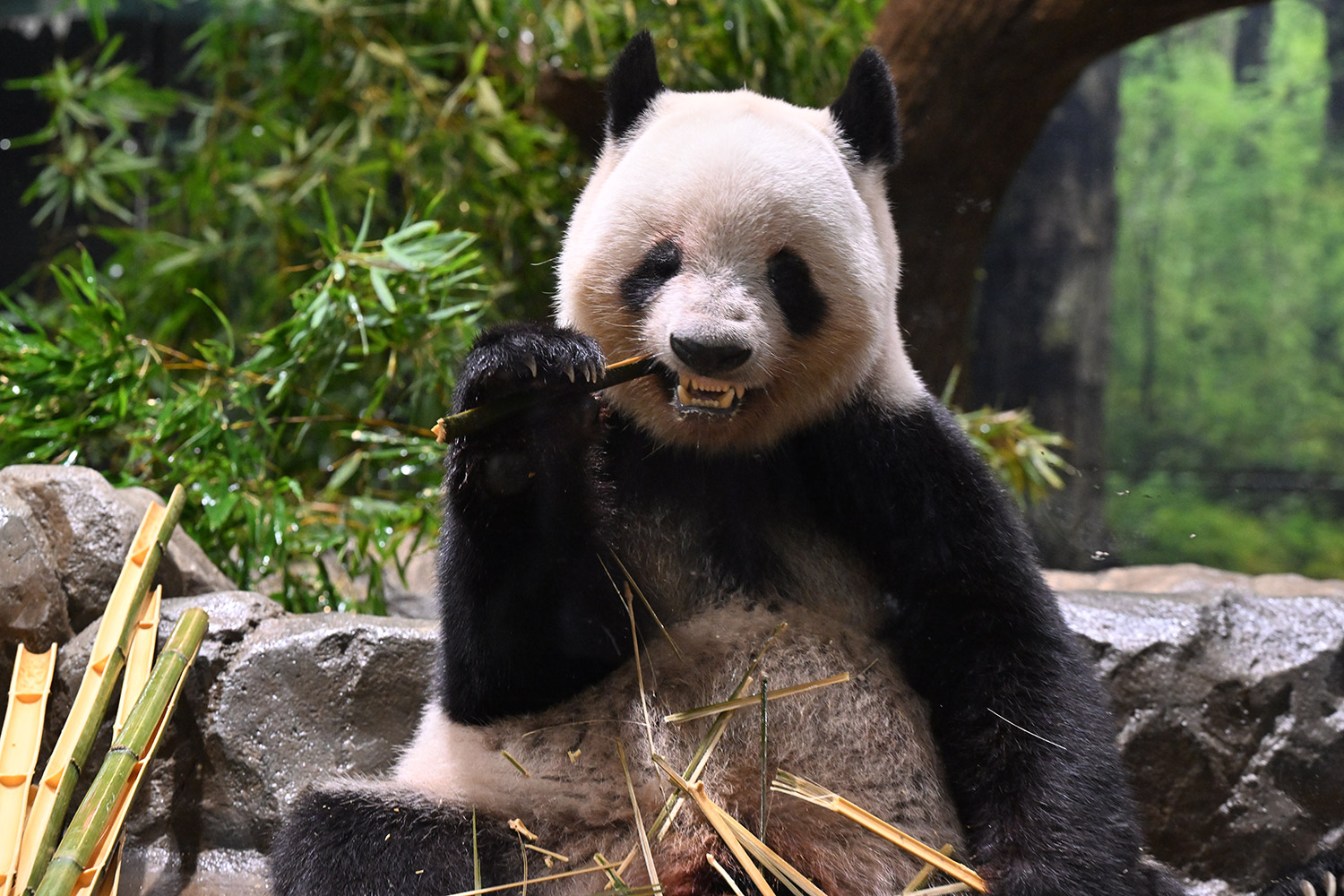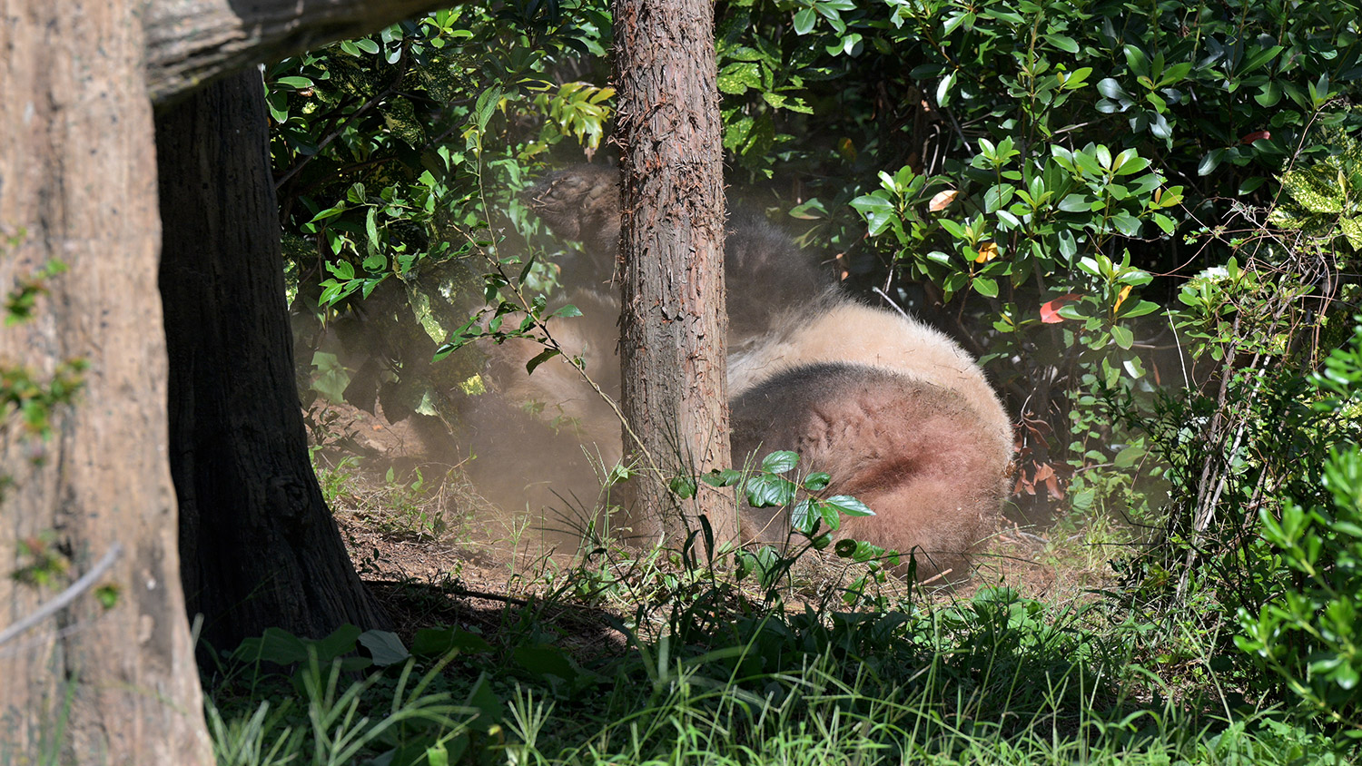 今日のパンダは10:00からです。今日も日差しはやや強めでしたが気温は控えめだったので2頭ともお外でした。