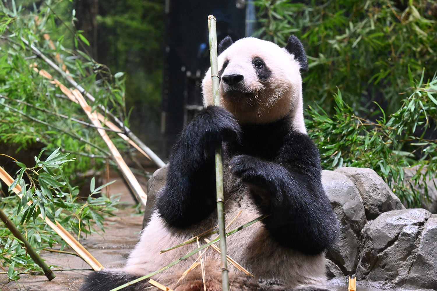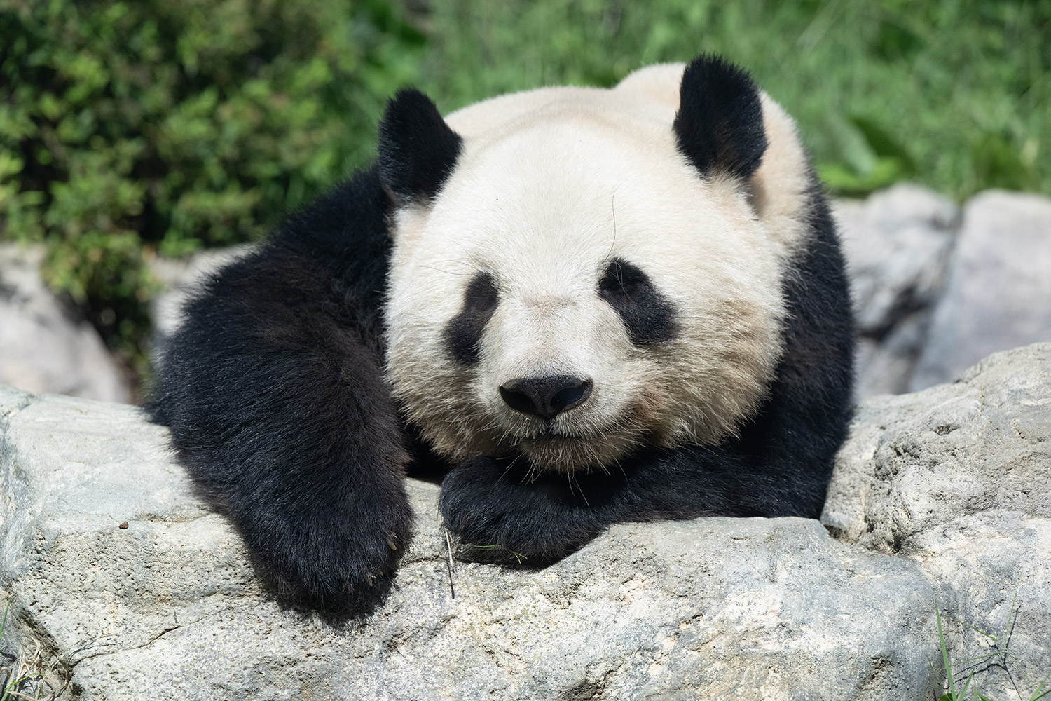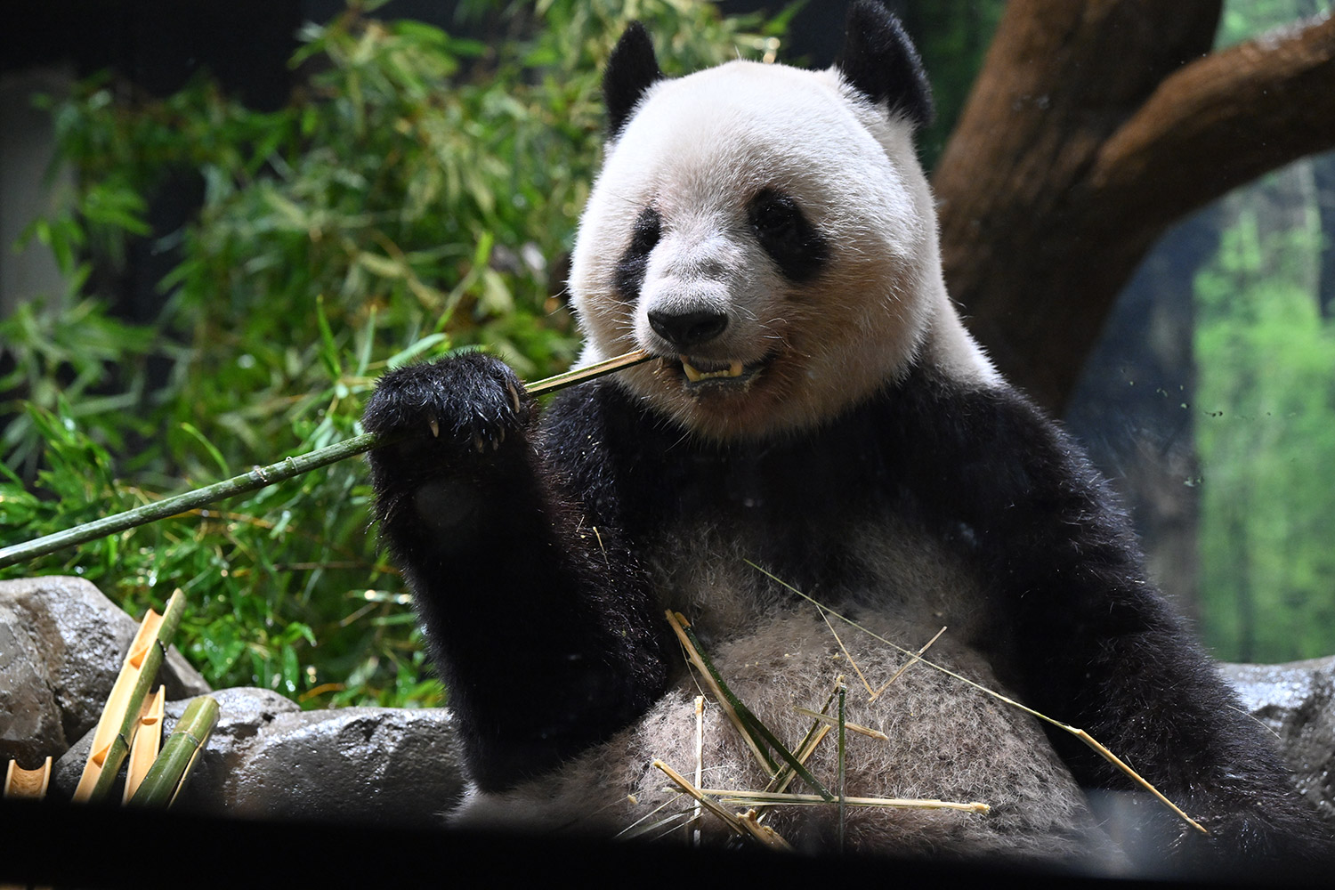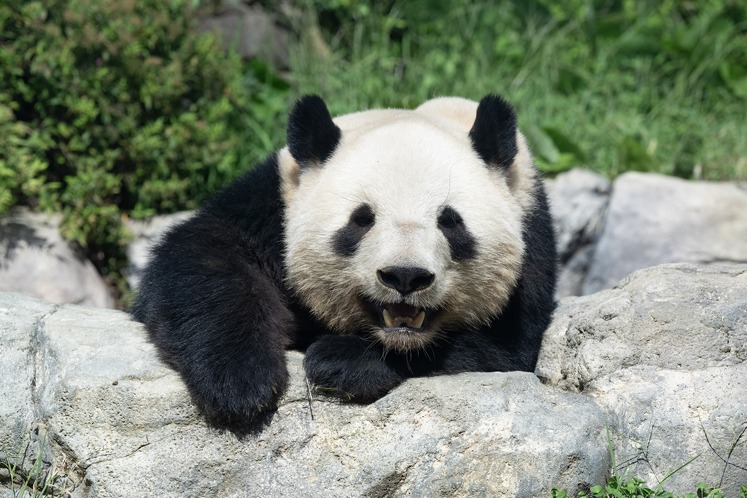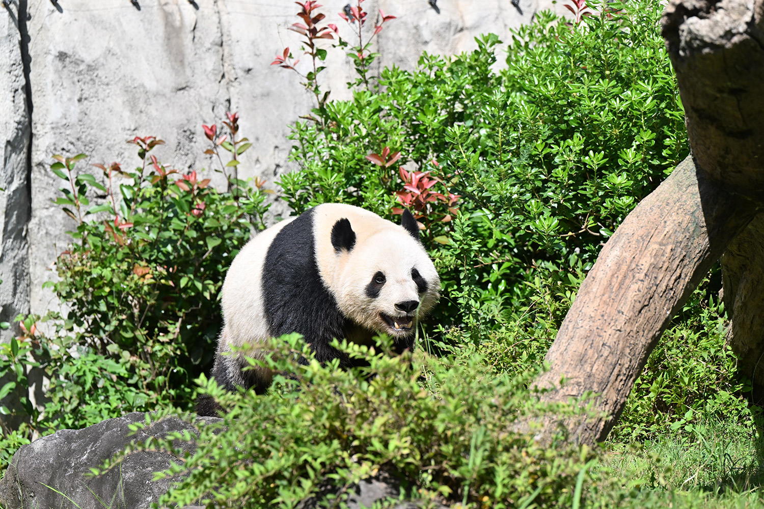 今日のパンダは10:00からです。今日も日差しはやや強めでしたが気温は控えめだったので2頭ともお外でした。
