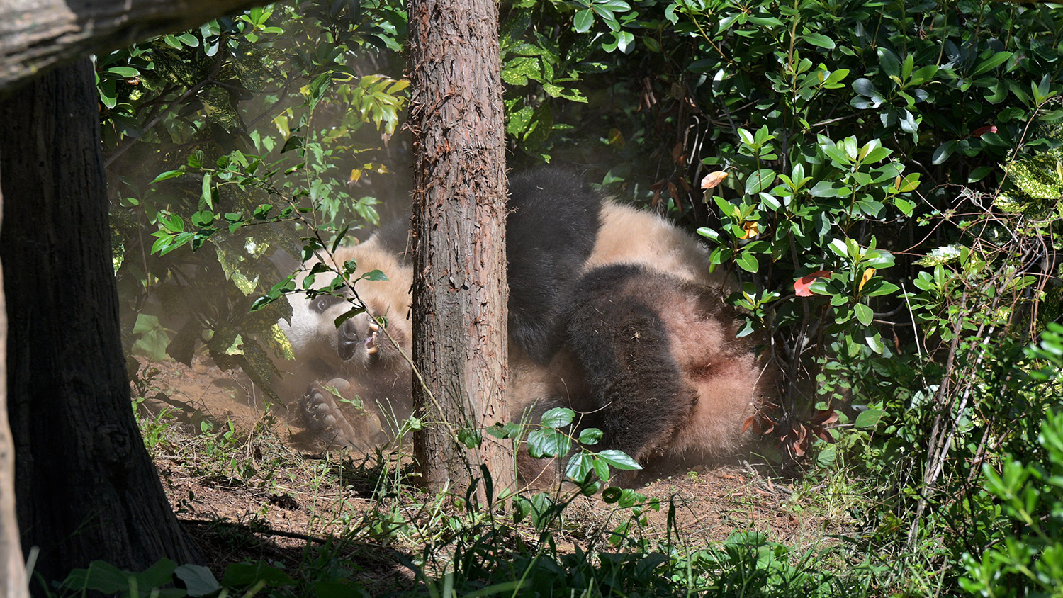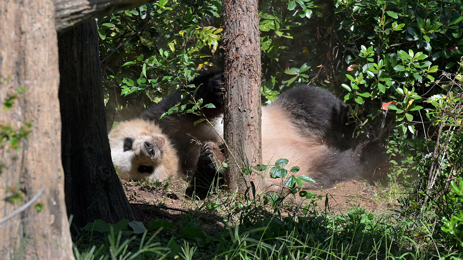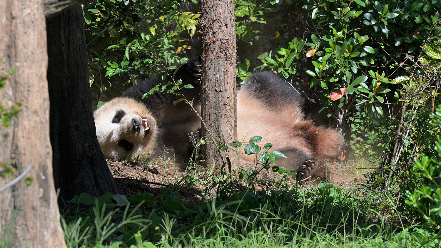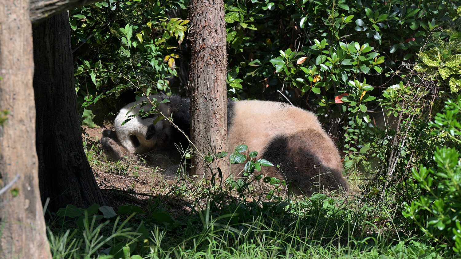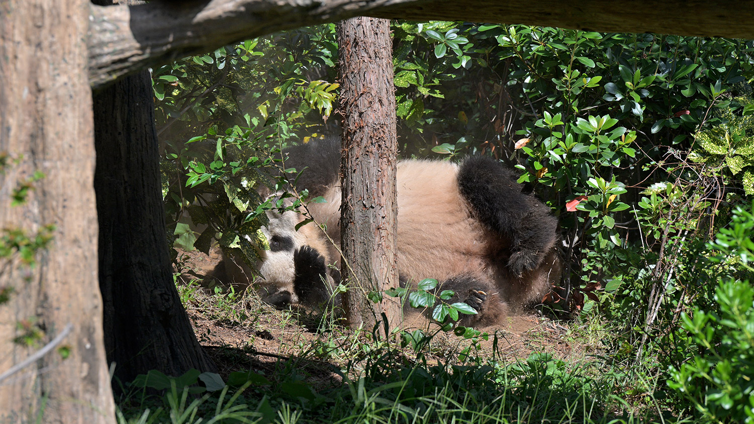 今日のパンダは10:00からです。今日も日差しはやや強めでしたが気温は控えめだったので2頭ともお外でした。