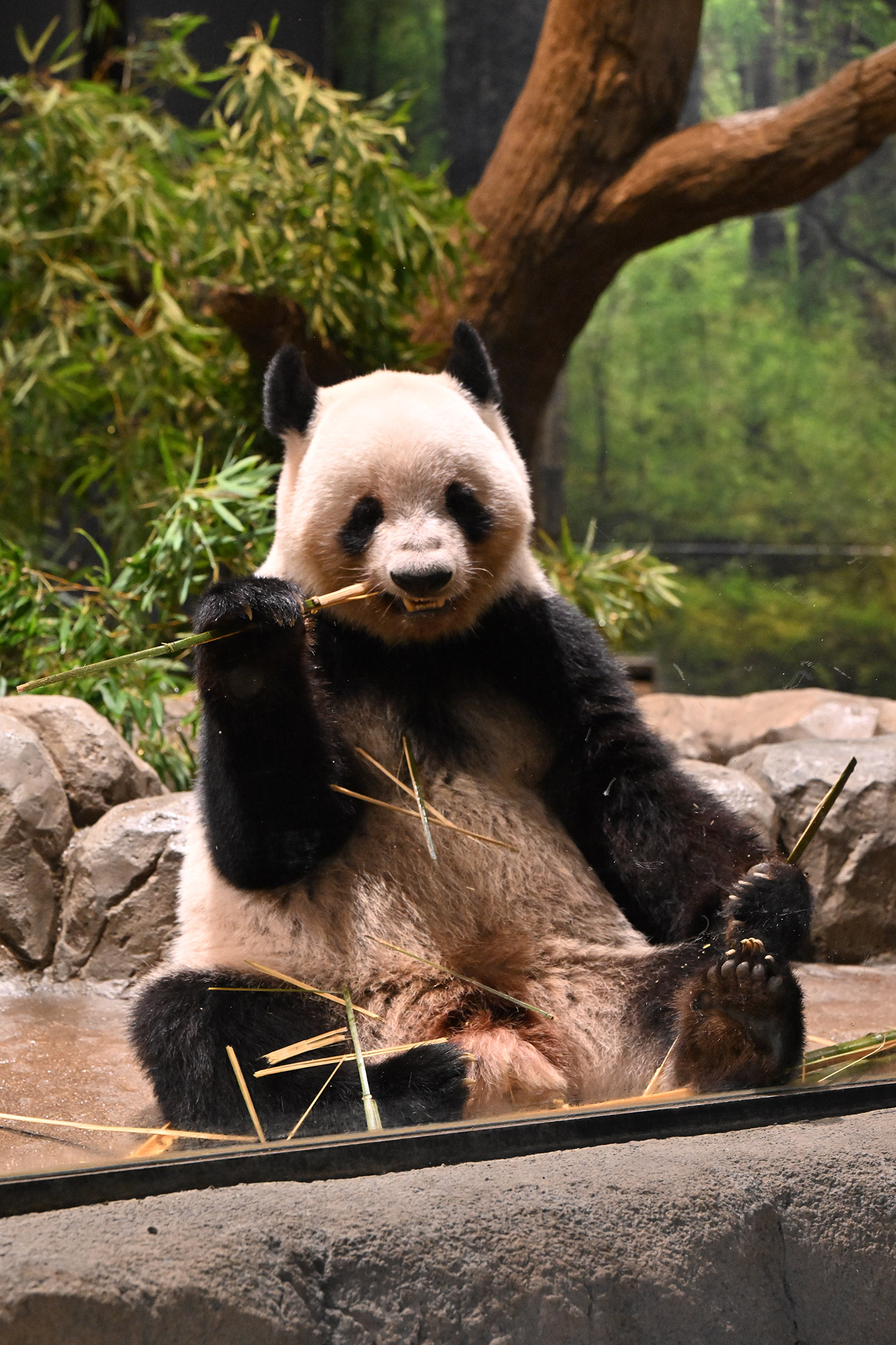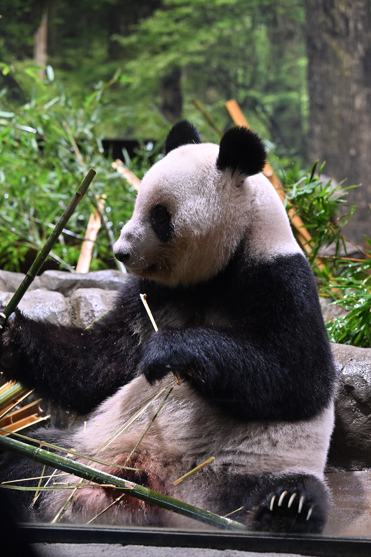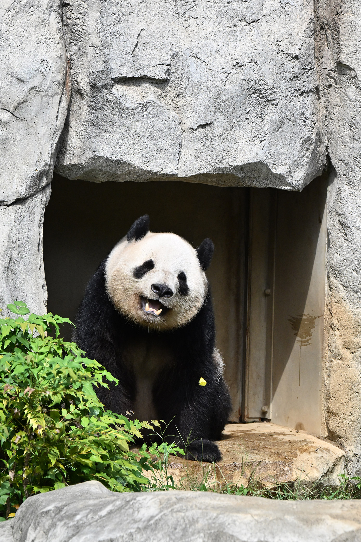 パンダ氏🐼様 皆様こんばんは 朝のレイちゃん 本当に可愛いですね~💓 今日は私も園に行ったのですが こんな表情だったんだ・・・としみじみ 拝見しておりました 平日とは思えない混雑で ちょうど 🥕を食べている時 陽ざしが重なり スマホで撮影なので サランラップを撮影しているみたいな💦 写真になっていて こうして拝見できる事 本当にありがたいです レイ邸の所で 黄色い小さな蝶と シャオの笑顔💚✨ 洞窟の所の横顔はキリリとしていて リーリーみたいですね うわぁー💓と思いました 今日の午後 一旦室内に入ったシャオを レイ邸の近くで待っていたら なんと レイちゃんが中からシャオと同じように トントンと合図を送っている音がしました 🐼🐼