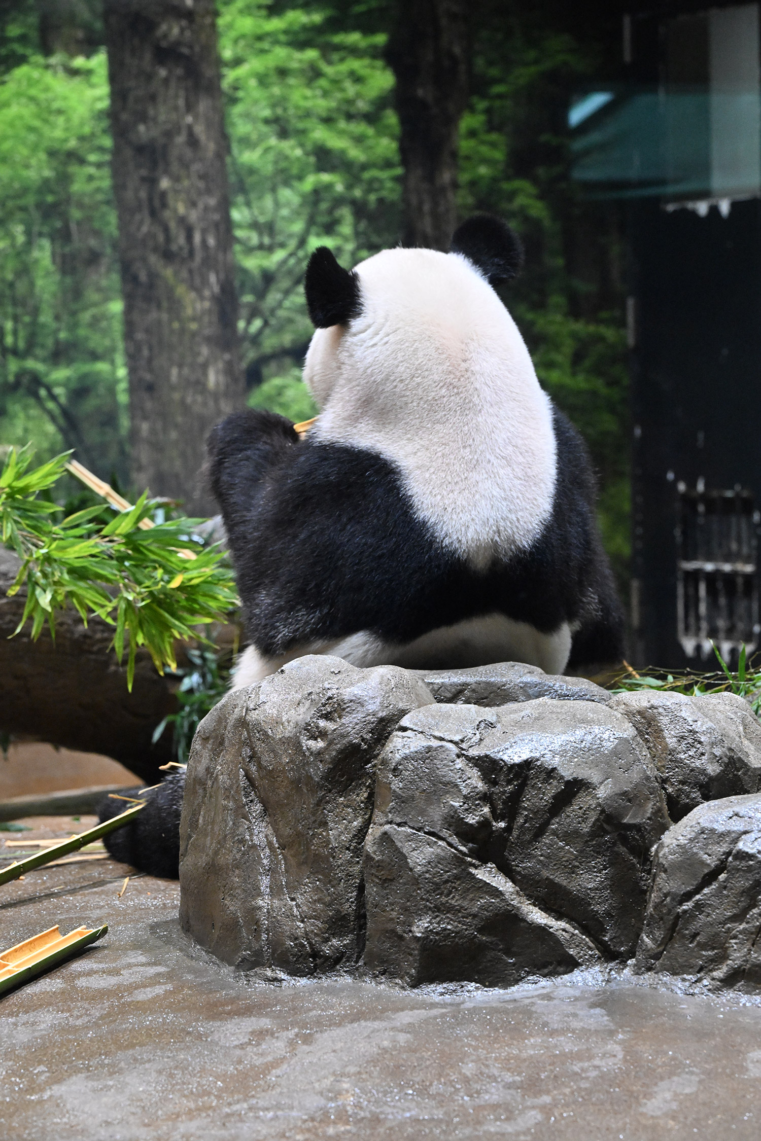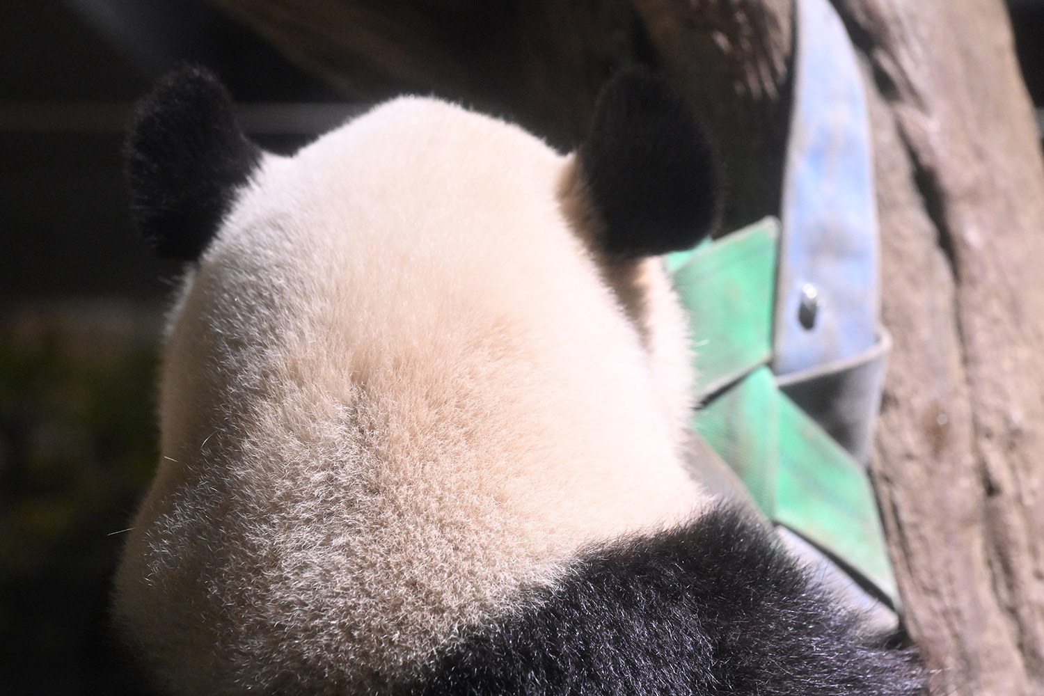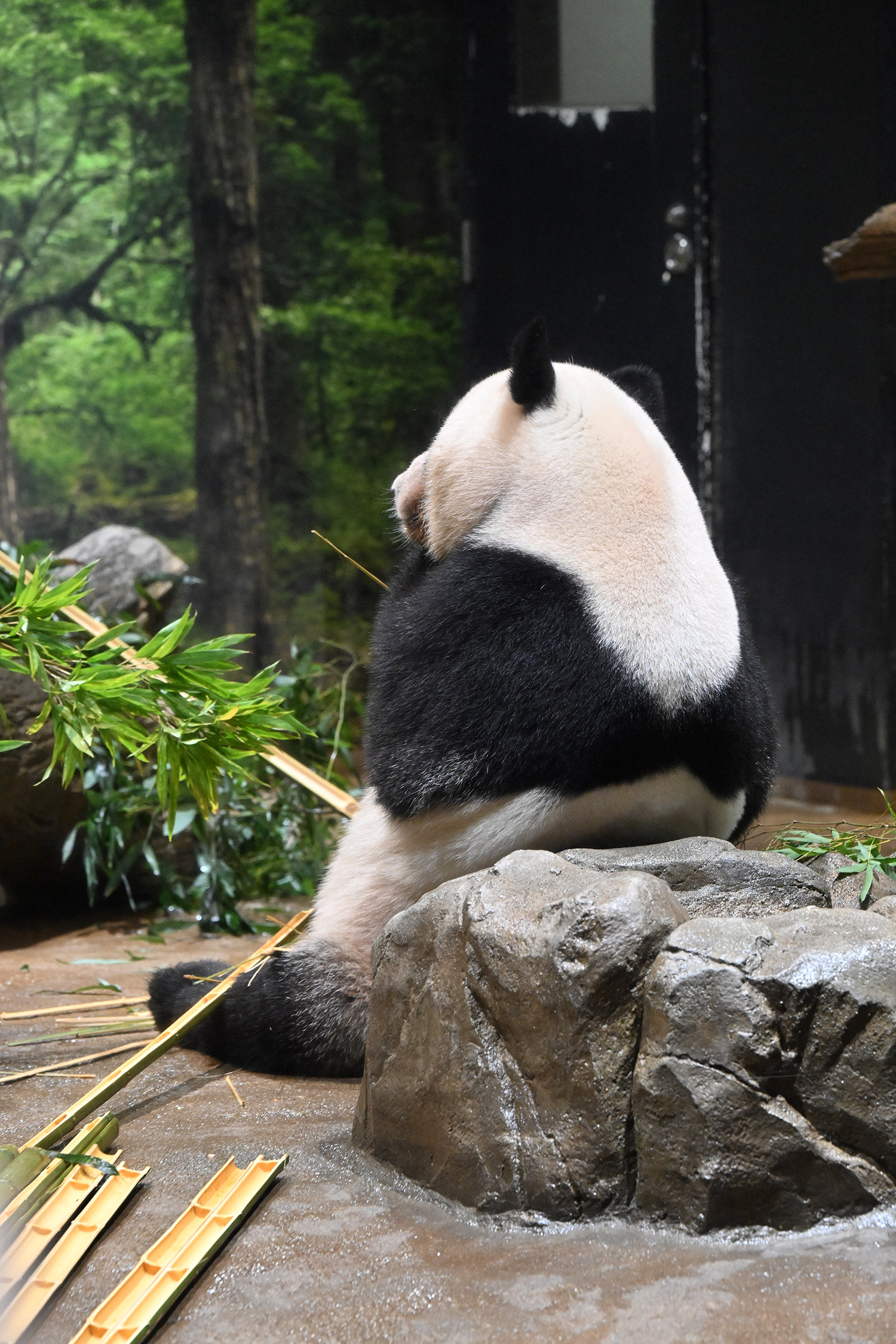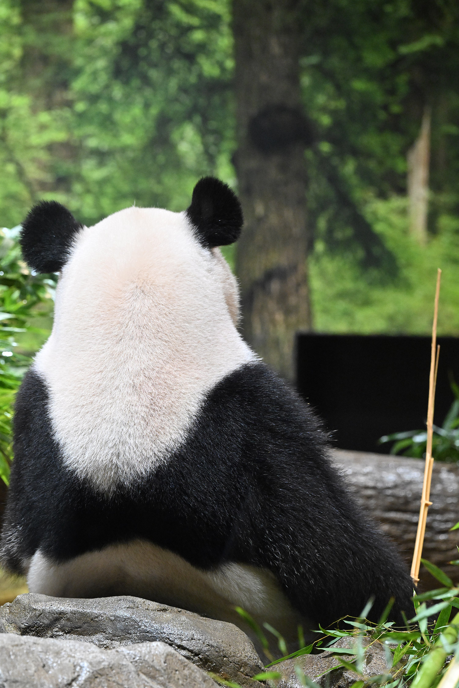 おはようございます。4枚目のシャオシャオの左脚と写り込んだお客さんの頭部が重なって、のけぞってモゾモゾする幻の小ちゃい🐼さんが見えますね😆レイレイのヘソ天寝、片脚が上がっているところにタンタンお嬢様の寝相を思い出しました。