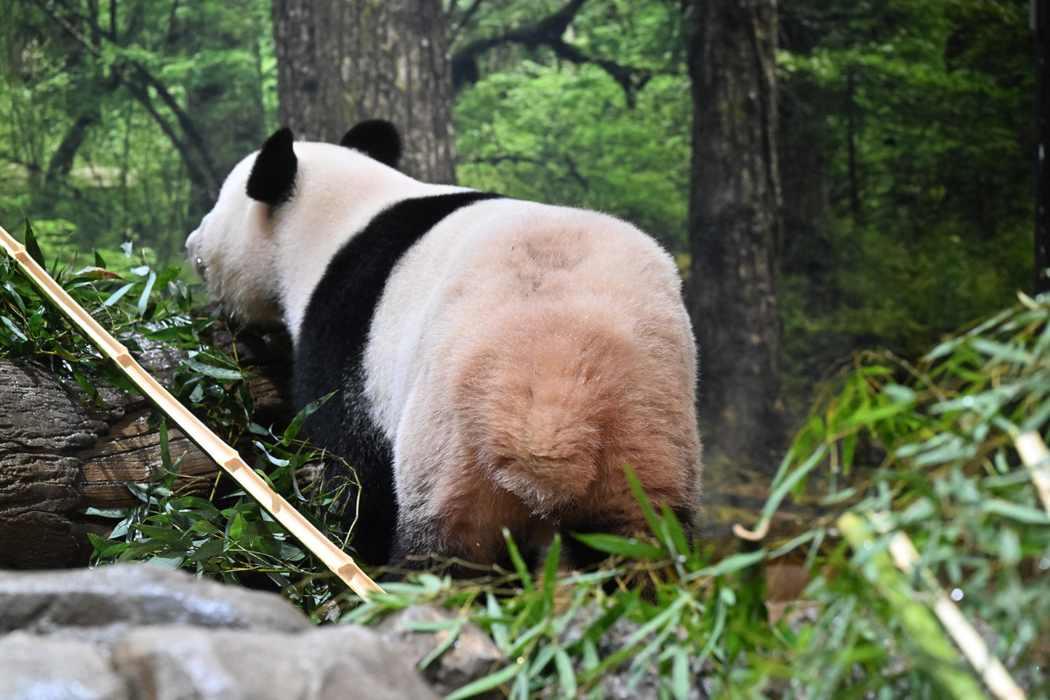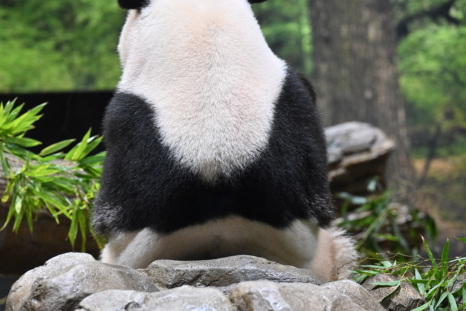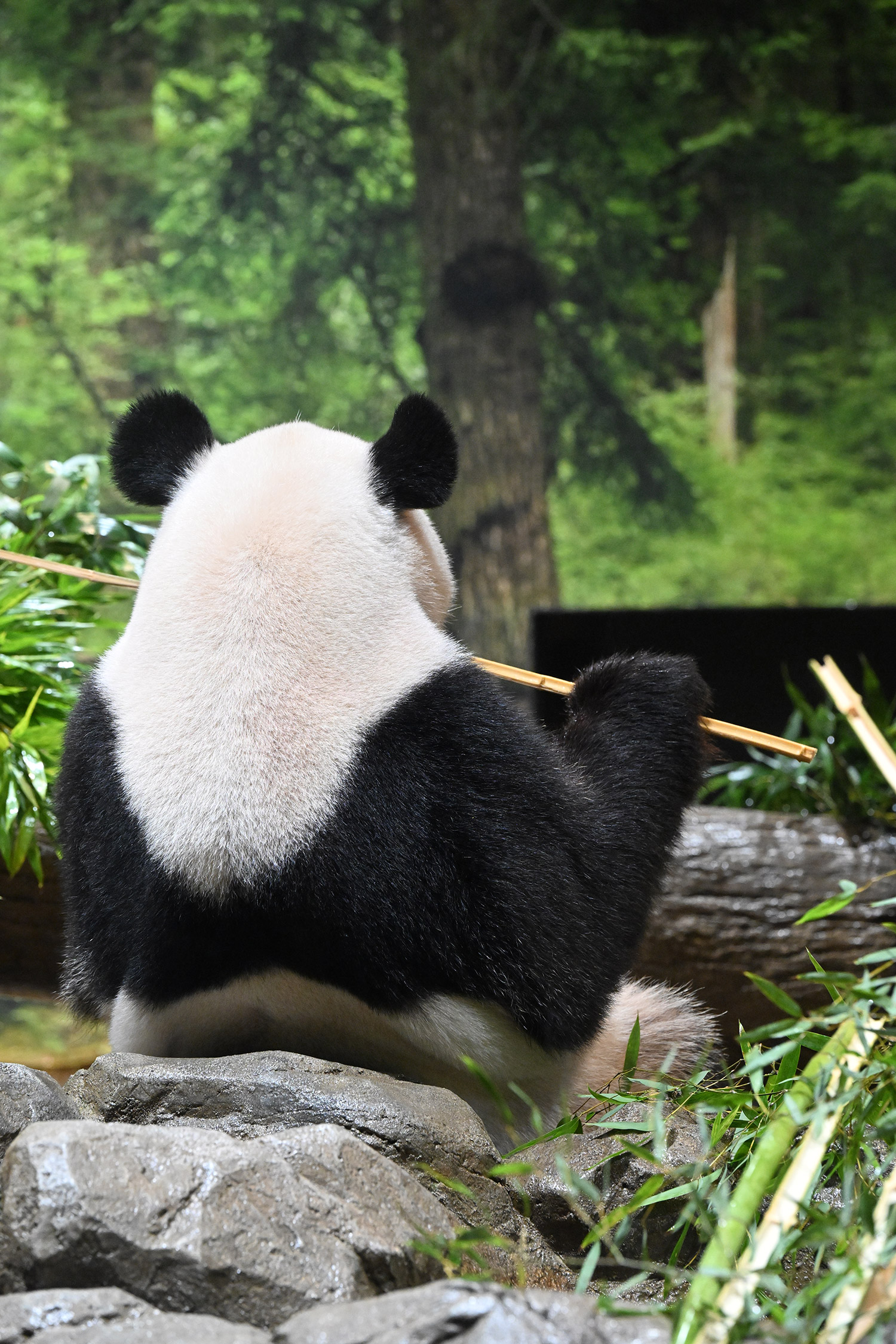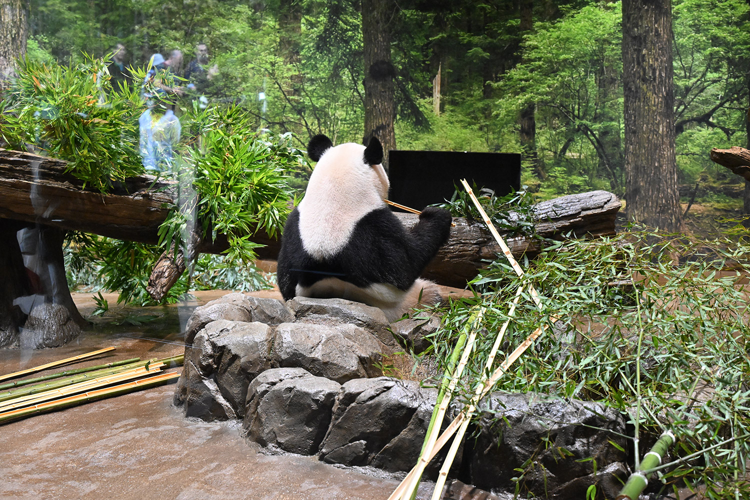 おはようございます。4枚目のシャオシャオの左脚と写り込んだお客さんの頭部が重なって、のけぞってモゾモゾする幻の小ちゃい🐼さんが見えますね😆レイレイのヘソ天寝、片脚が上がっているところにタンタンお嬢様の寝相を思い出しました。