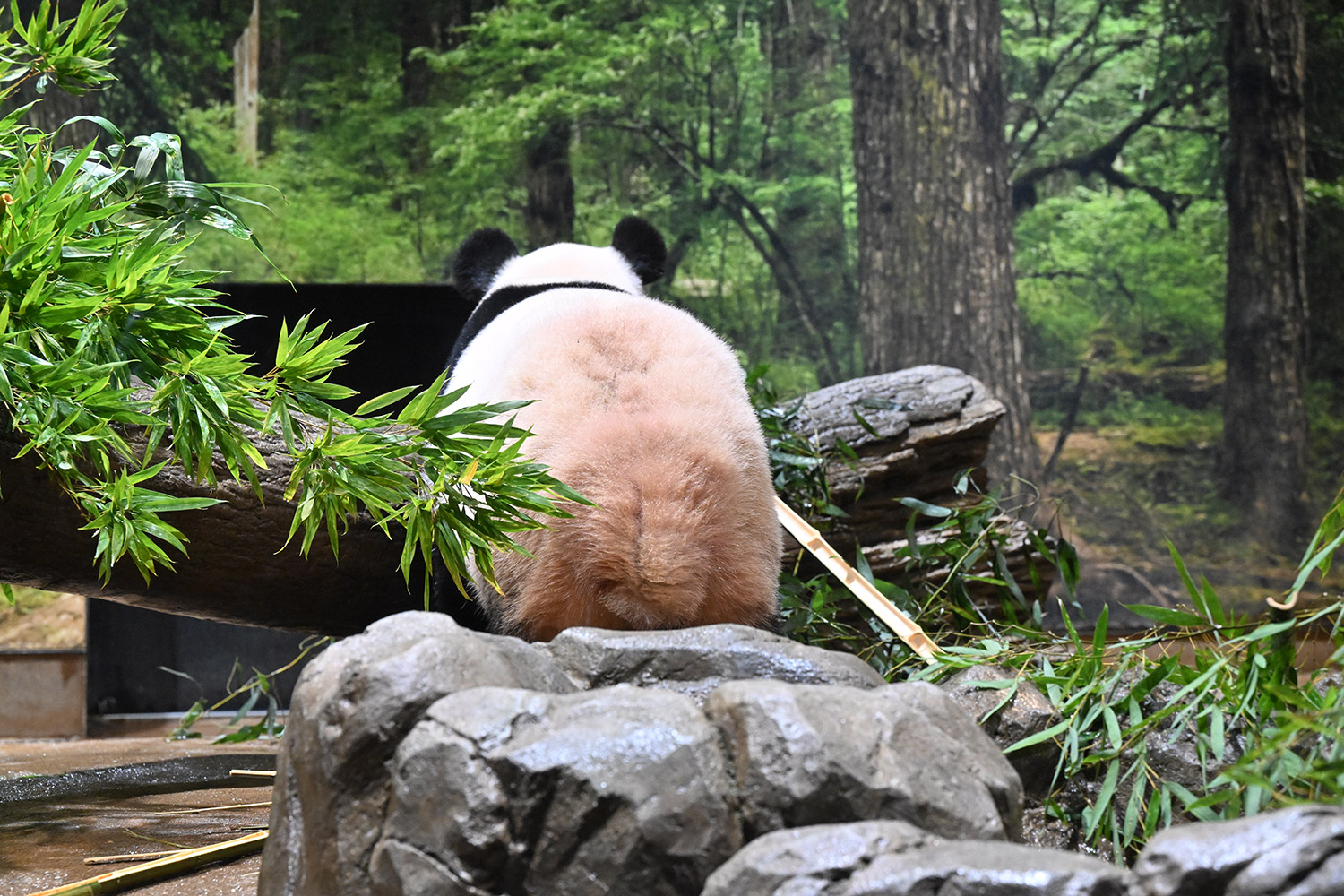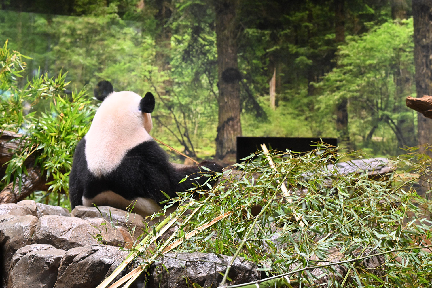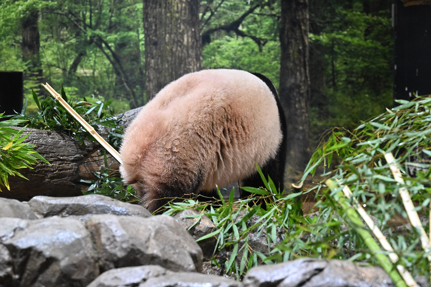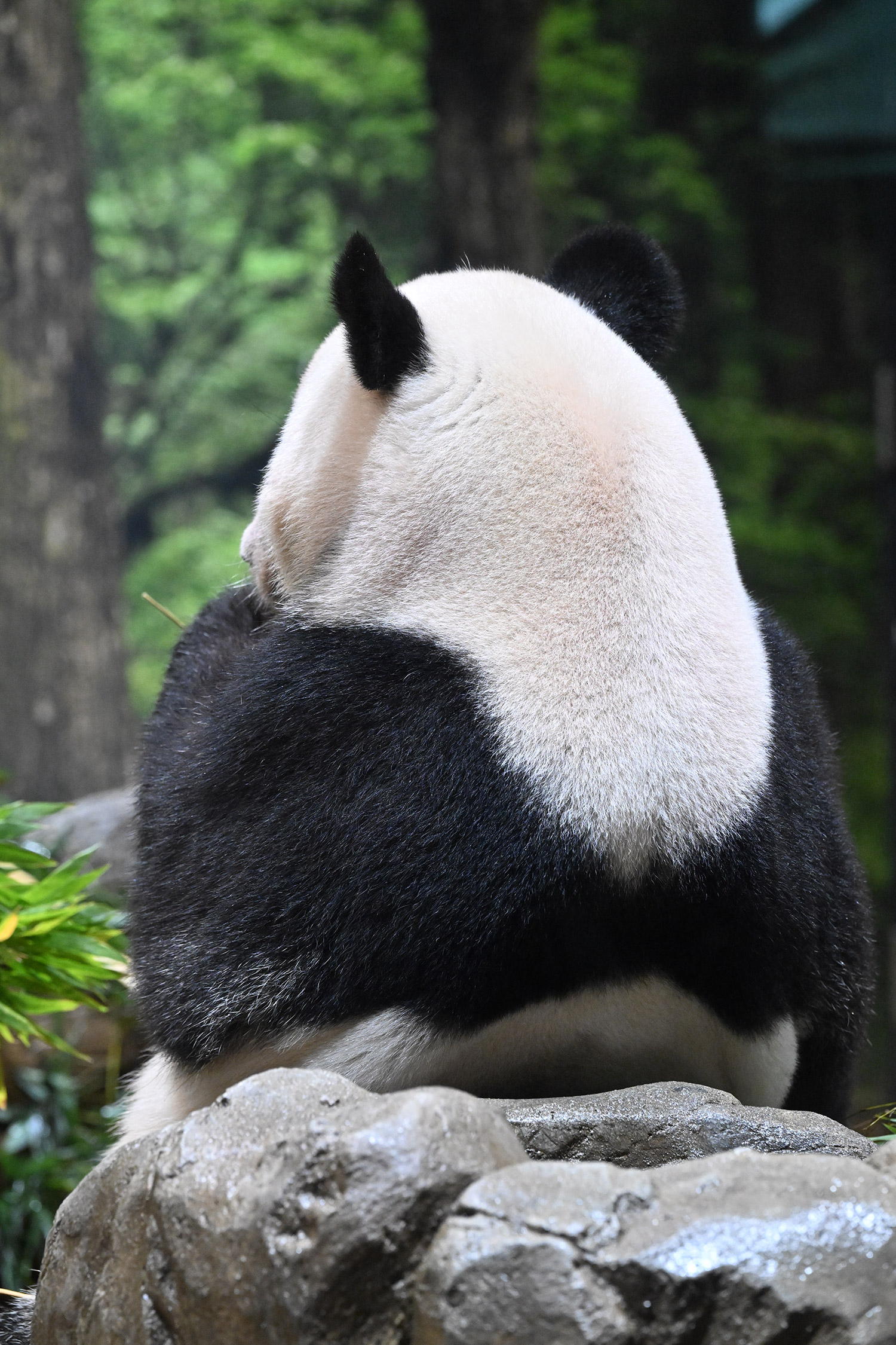 ❇️その余波で、いつもは行かない朝一で、愛浜や安安(ダンホンガオという雄で、雄浜の息子)に会えました。ようやく起きてる愛浜、神々しく。アイバンと呼ばれ、とてもきれい!子育ては最後かな。