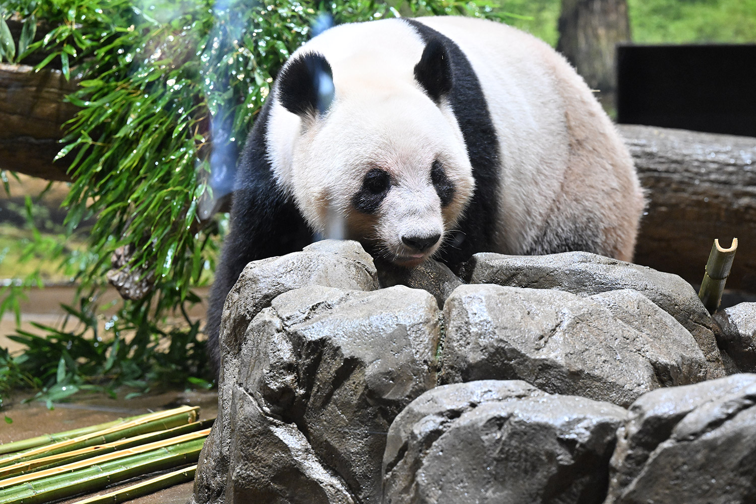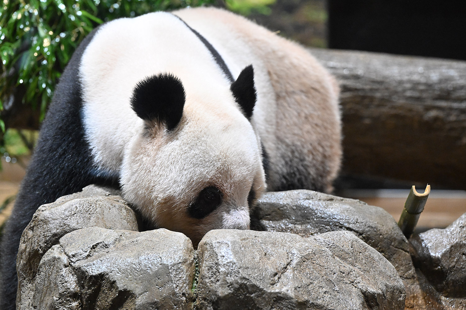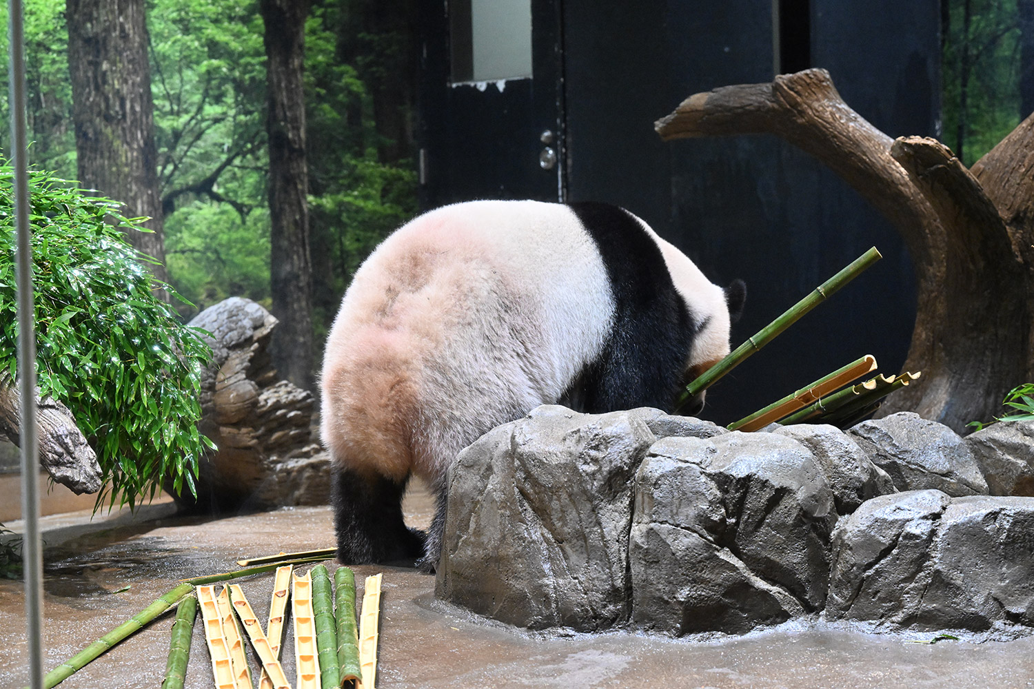 寒すぎて雨でお部屋?寒さに強い🐼にもこの急転直下の温度差は風邪引きさんを呼ぶのかな?…そうでしょうね、生きもので哺乳類だもの、自律神経で体温調節してるんだからそこは同じですよね。