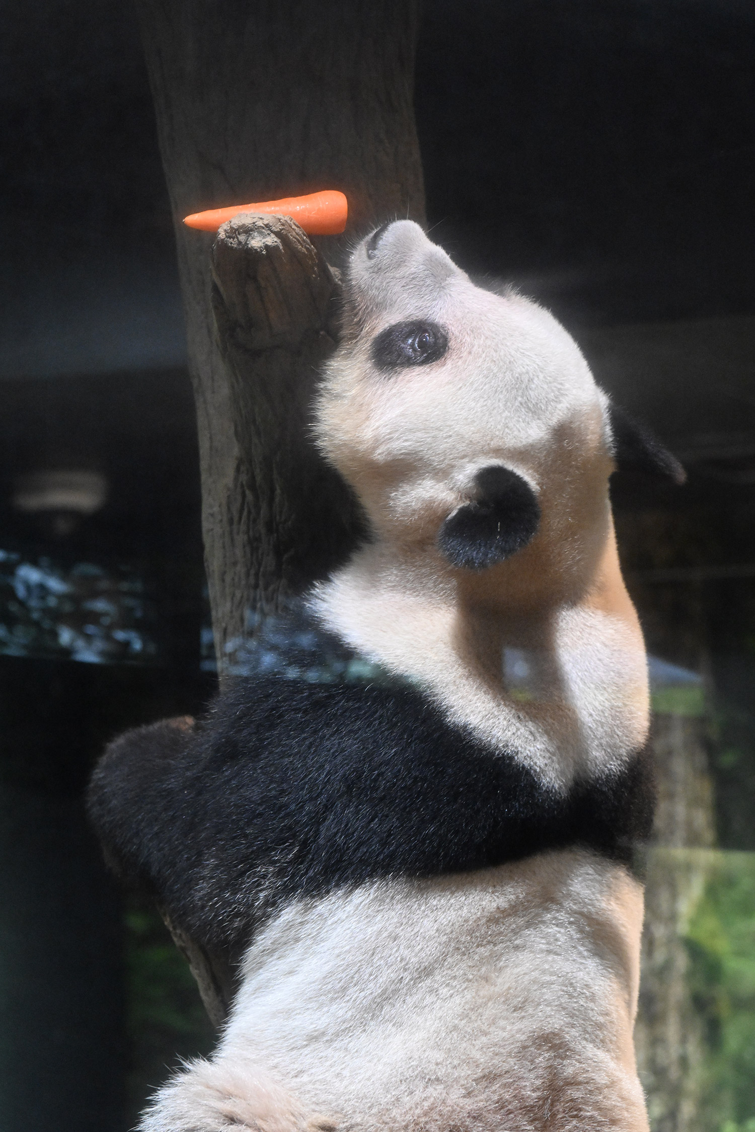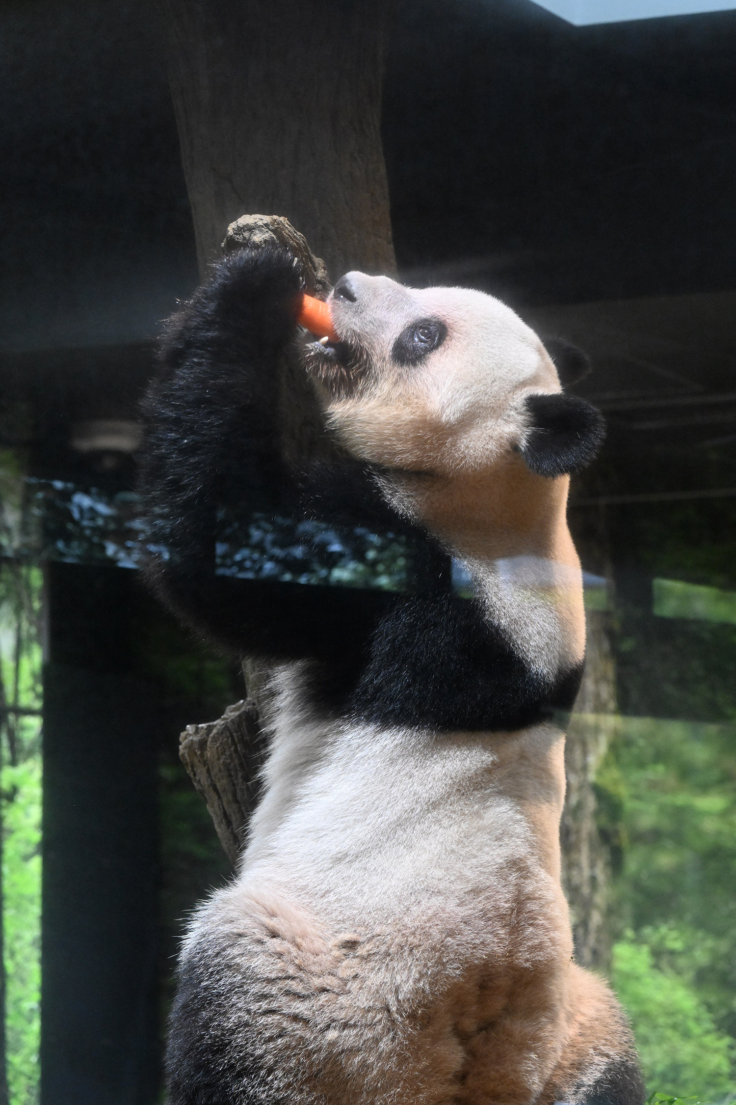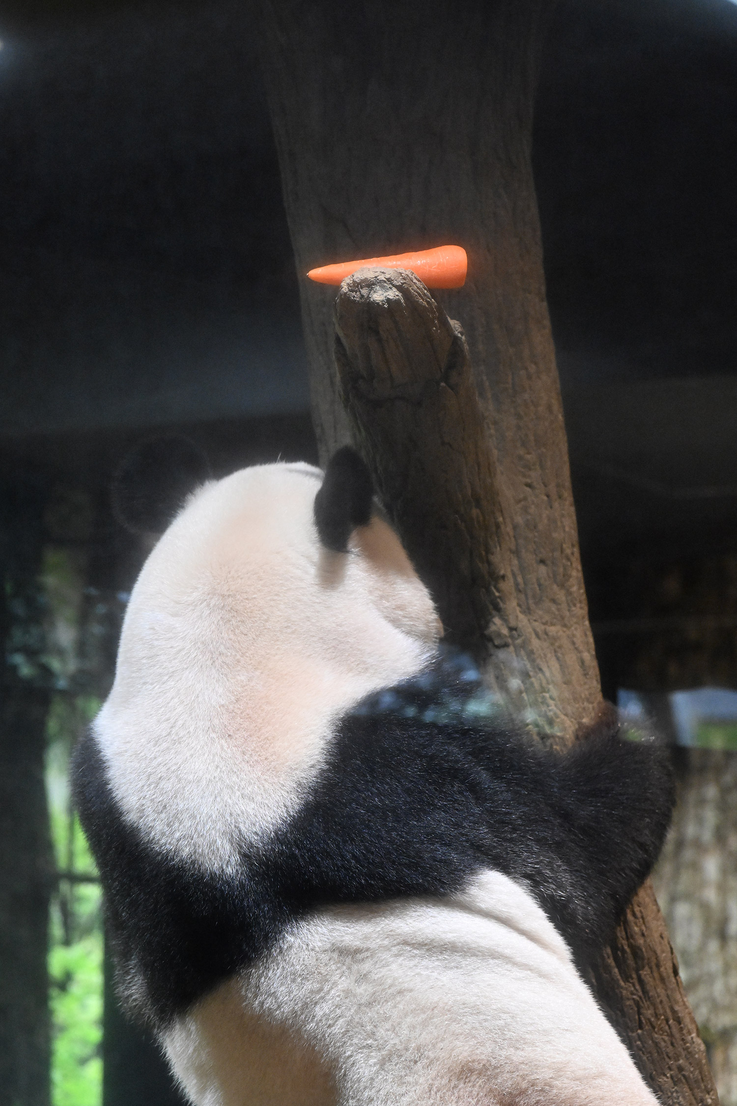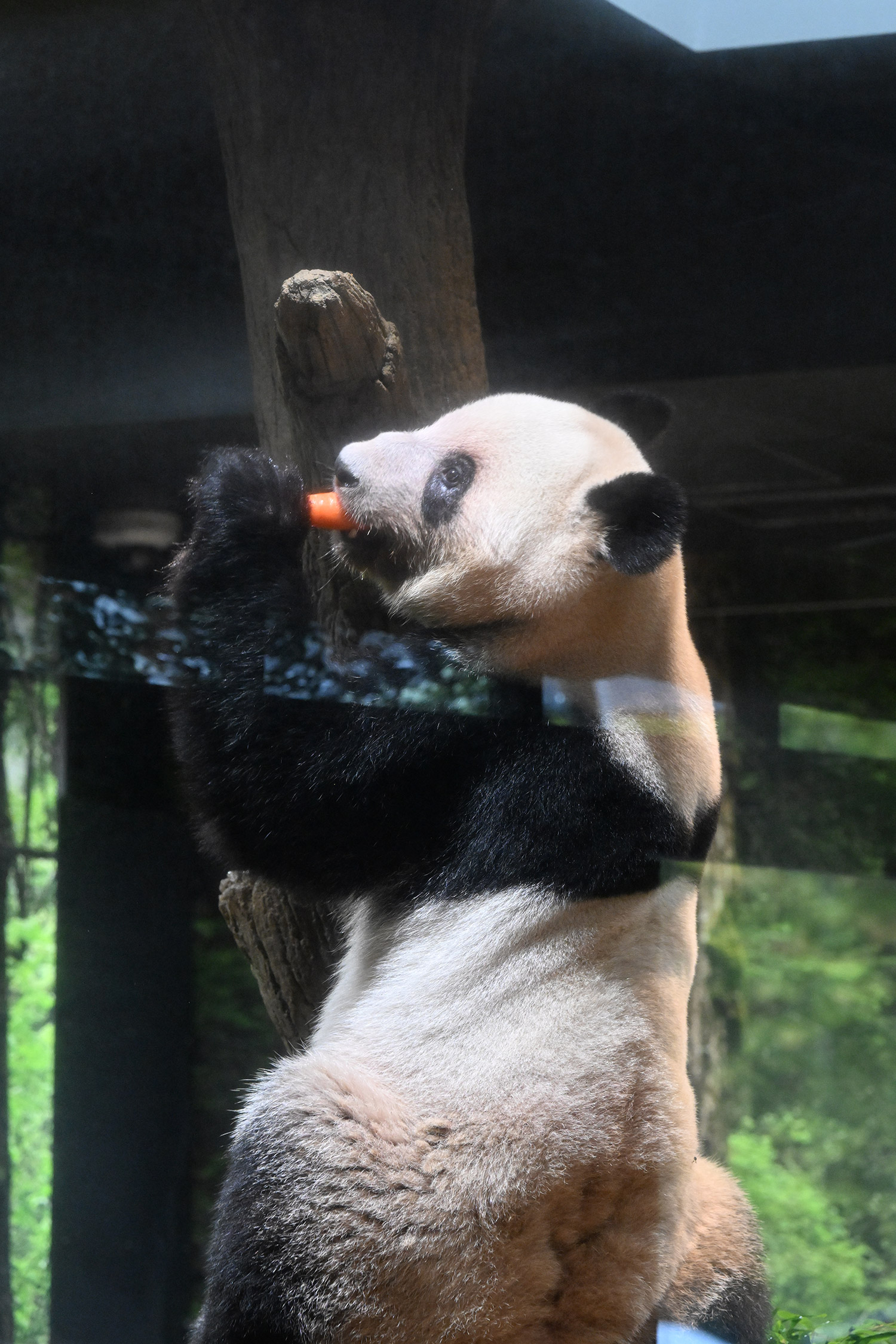 レイレイ、擬木に寄っかかって、人参🥕を食べる姿、可愛いです。