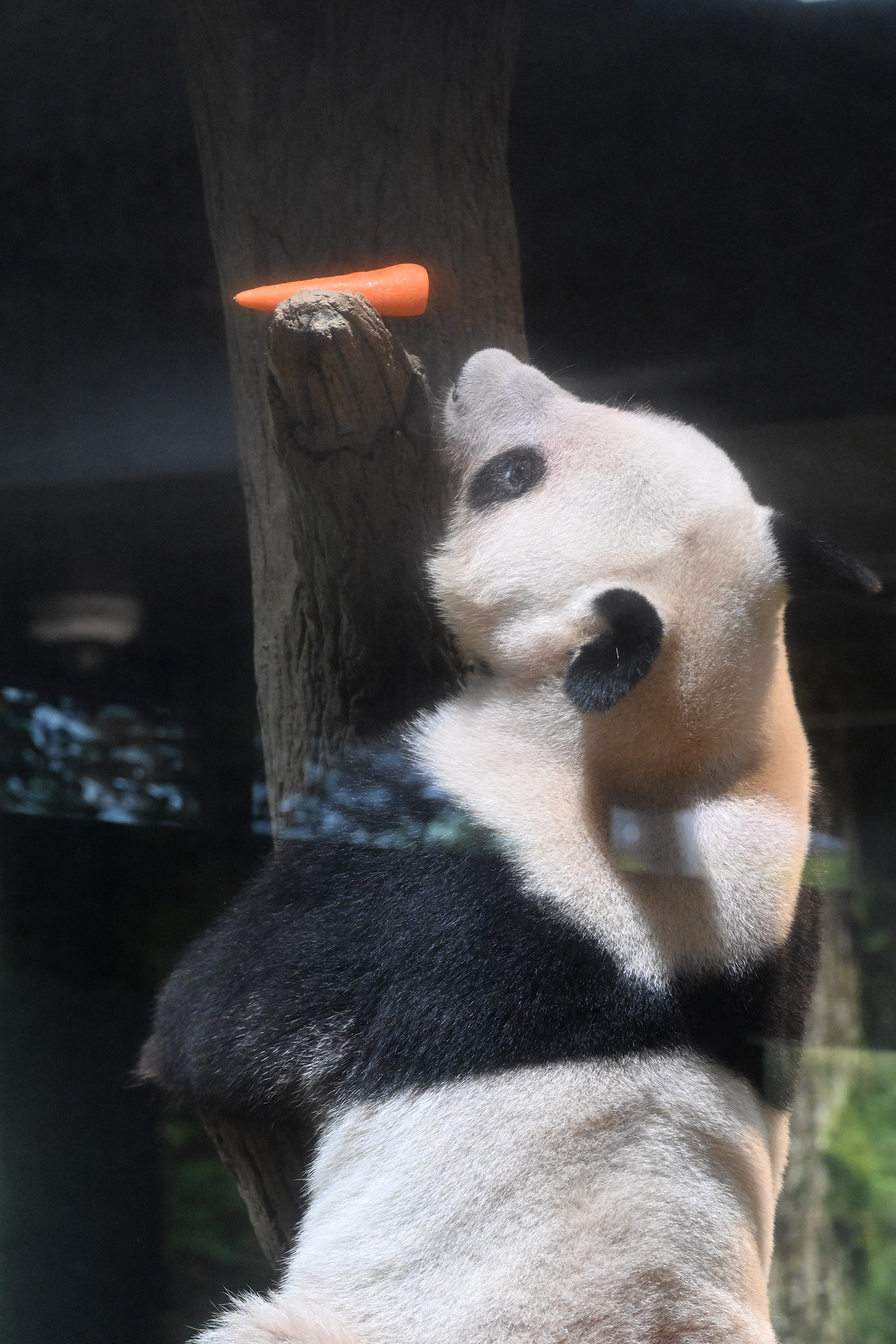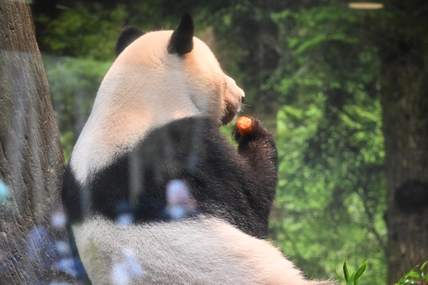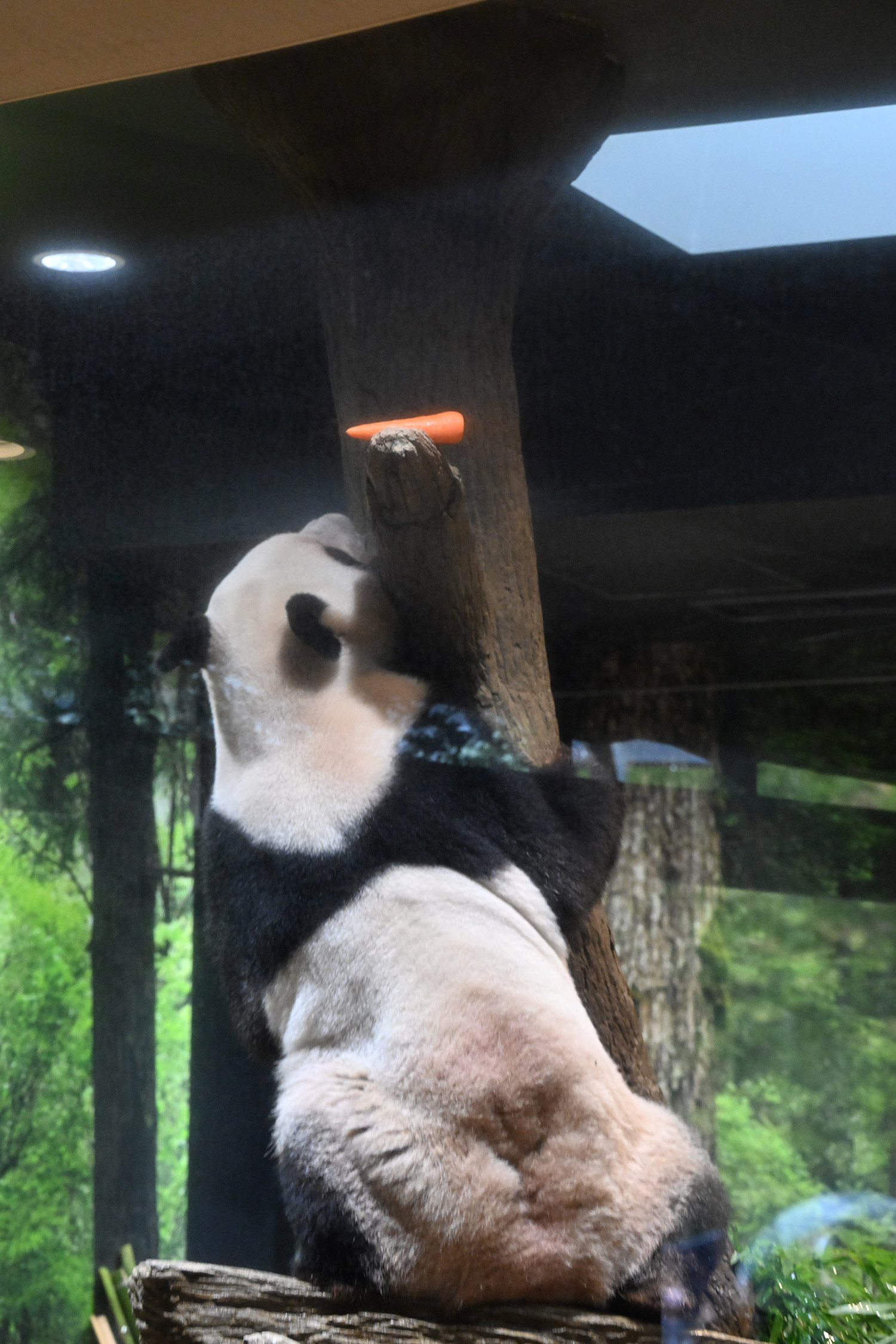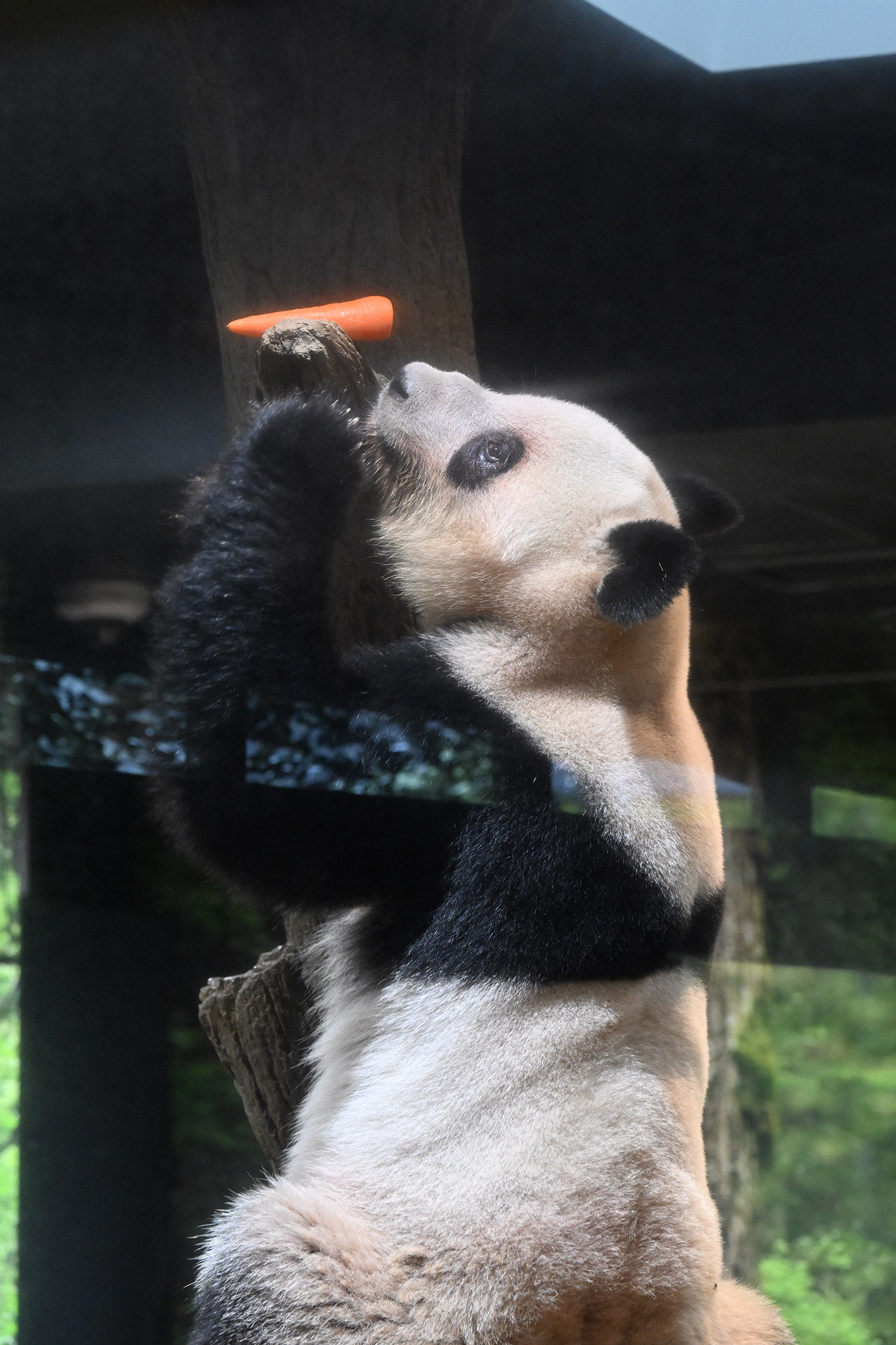 レイレイ、擬木に寄っかかって、人参🥕を食べる姿、可愛いです。