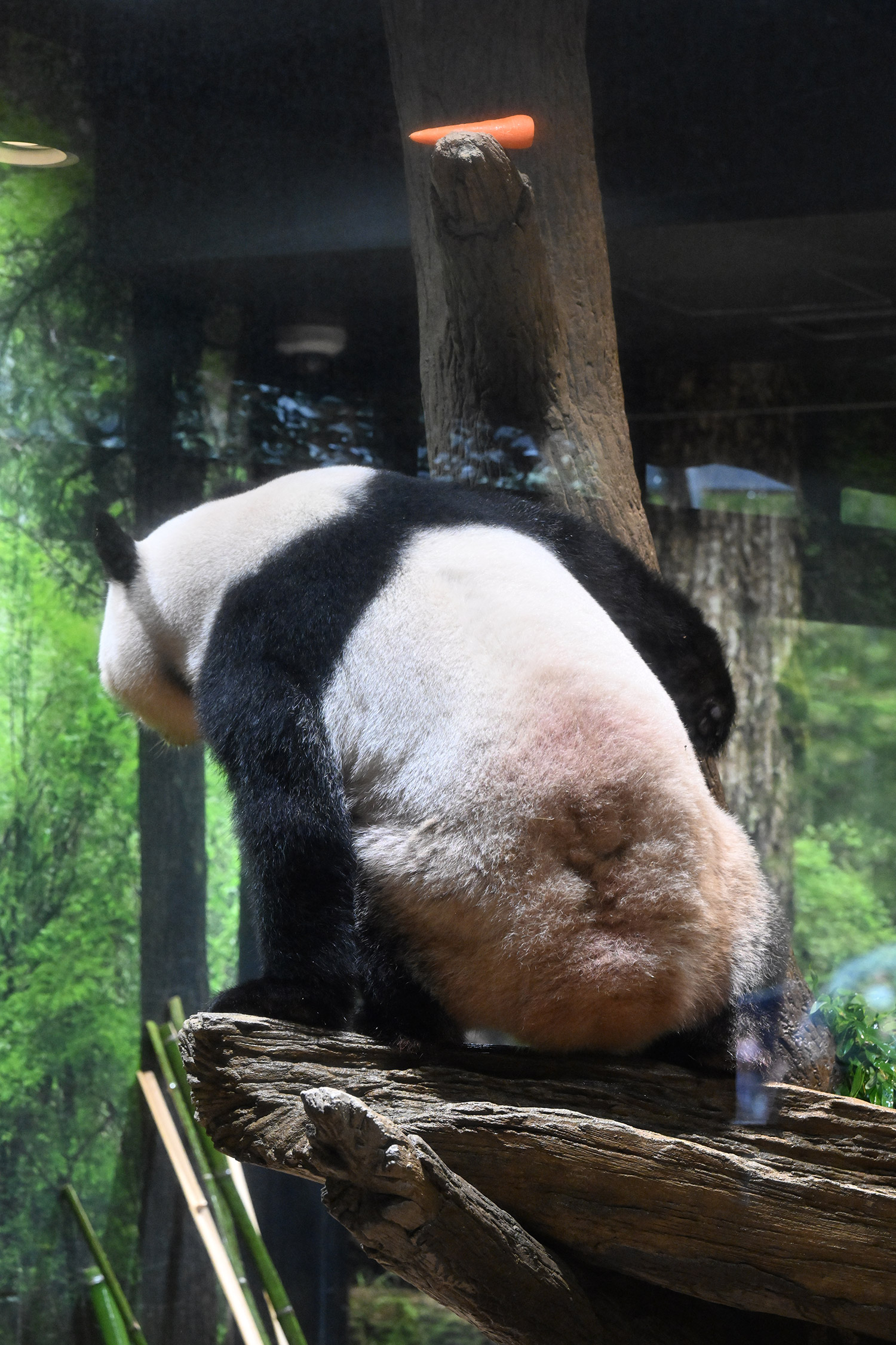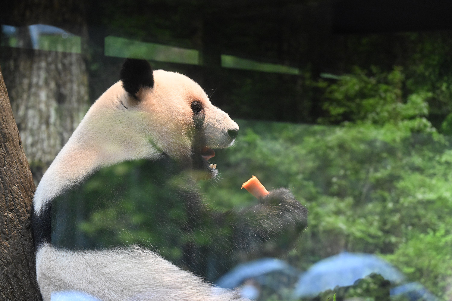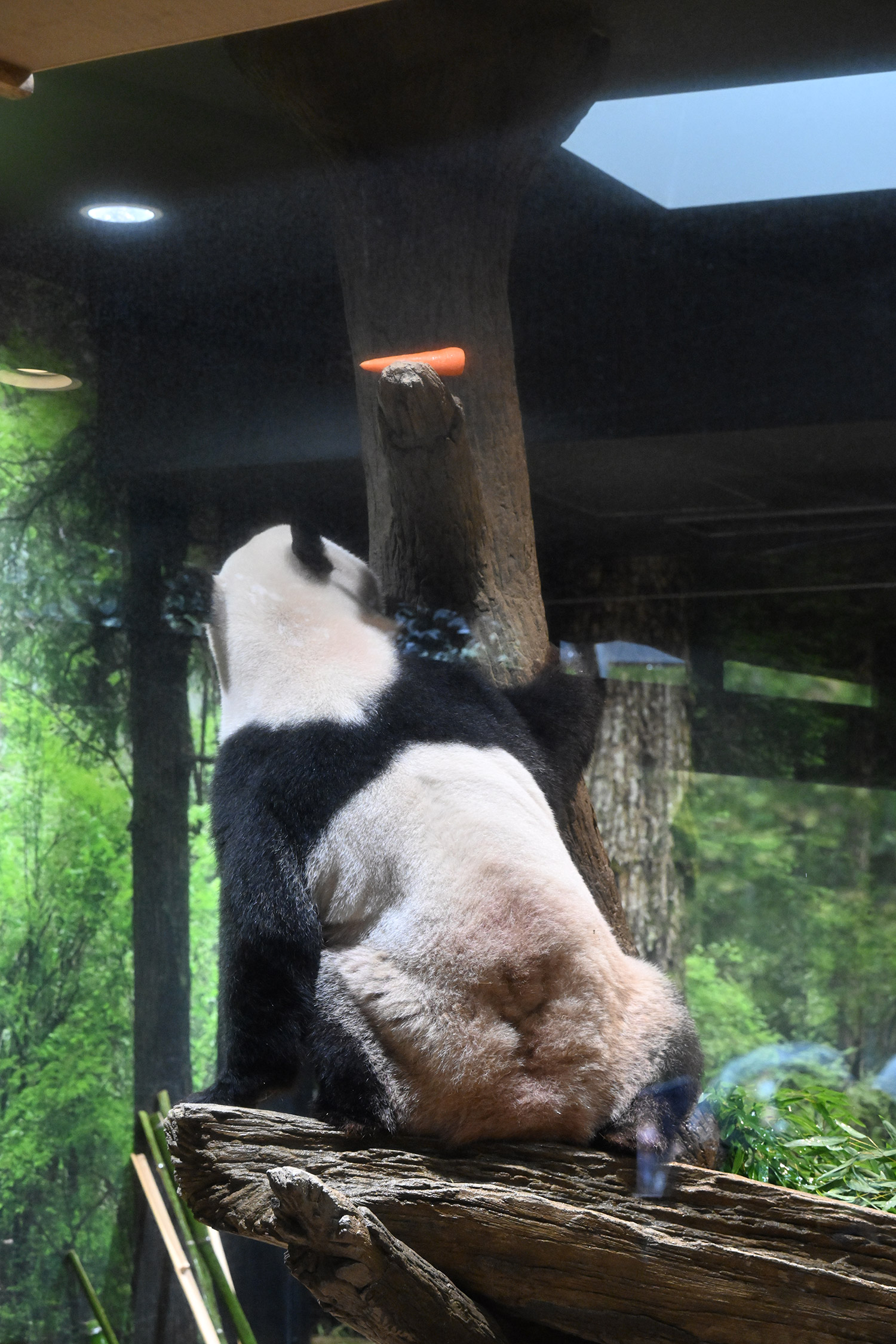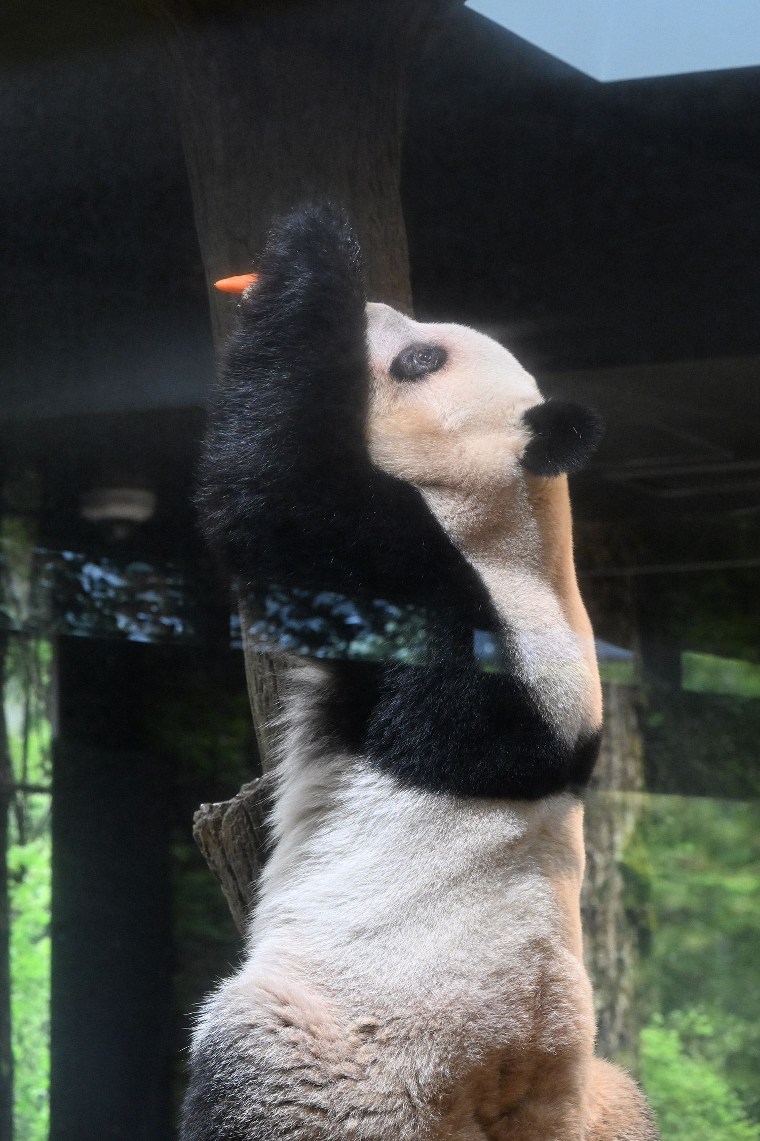 レイレイ、擬木に寄っかかって、人参🥕を食べる姿、可愛いです。