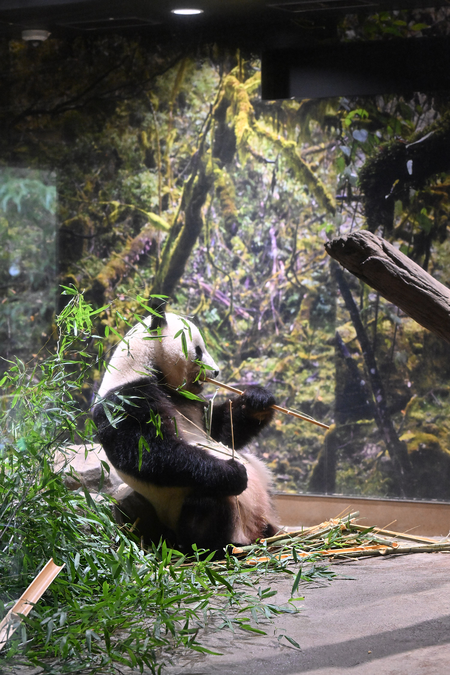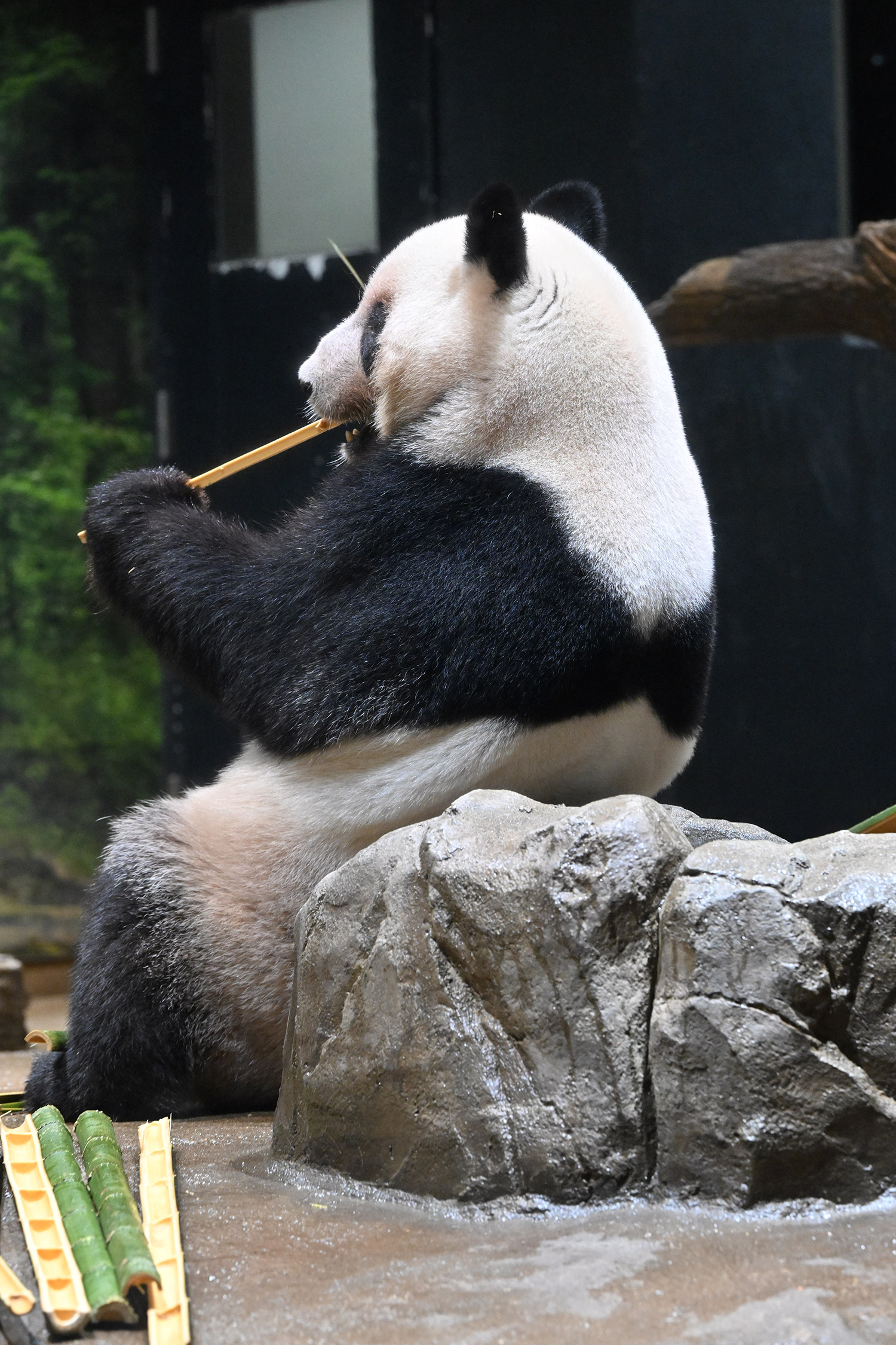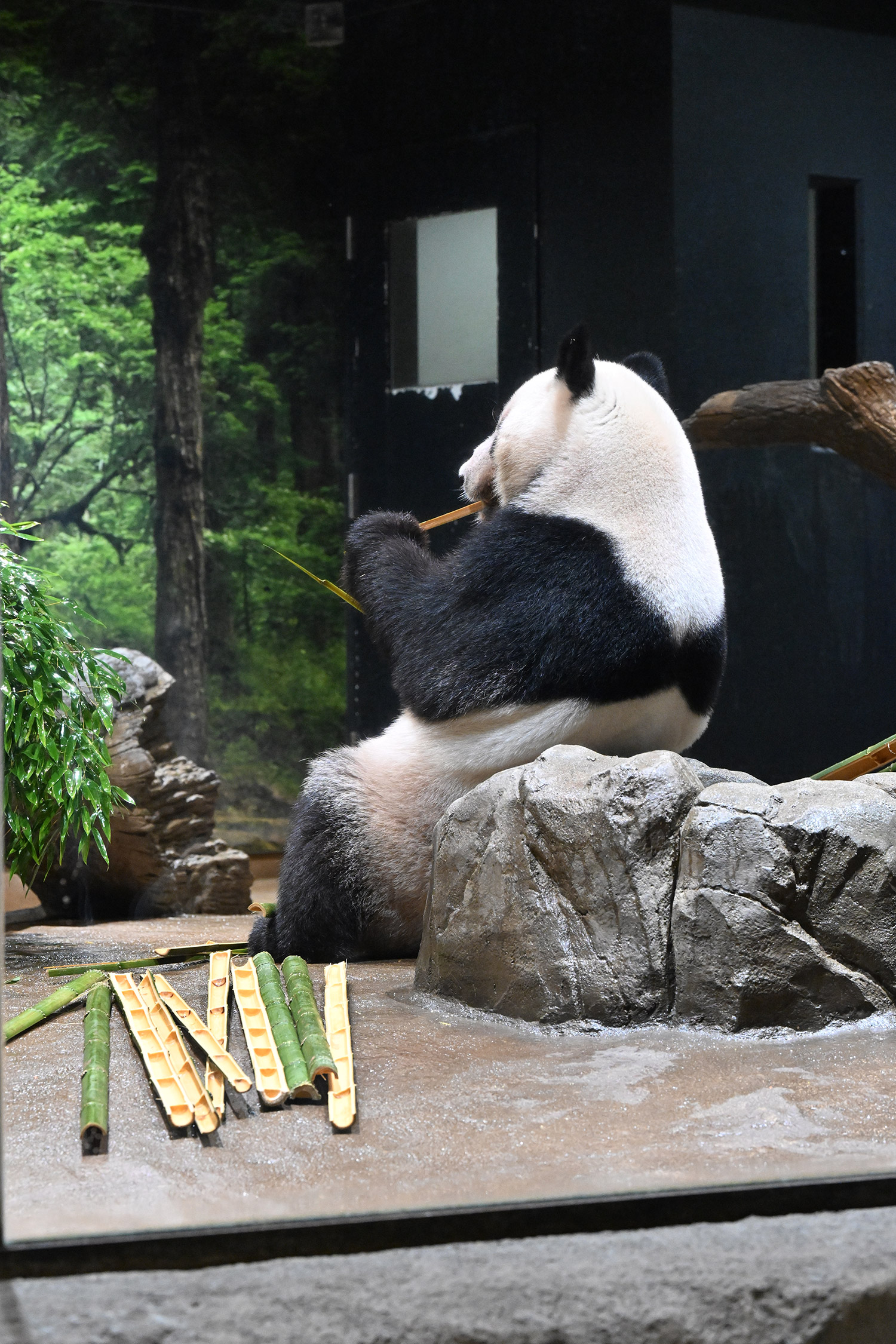 今日のパンダは10:00からです。冷たい雨の一日で朝からパンダたちはお部屋でした。