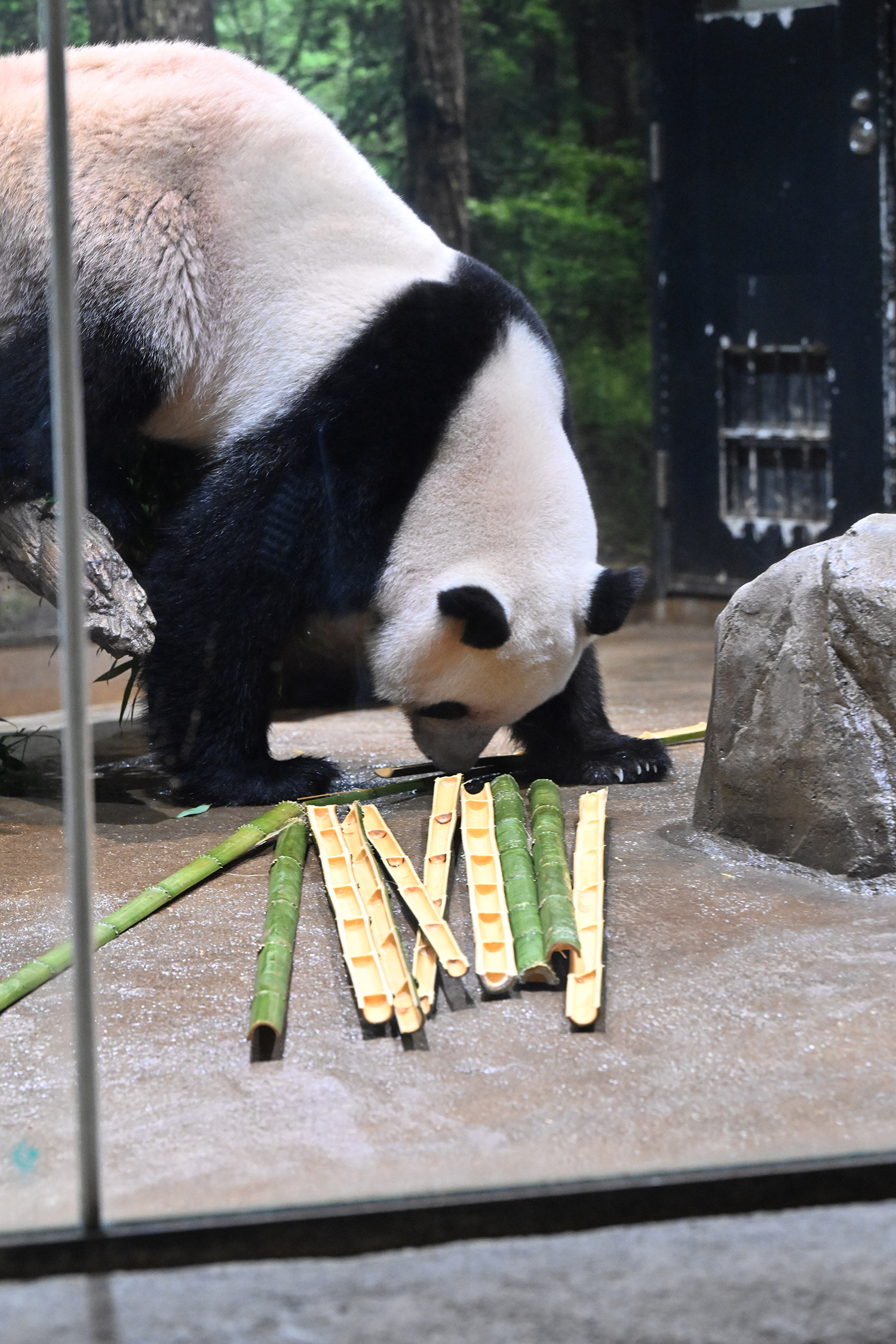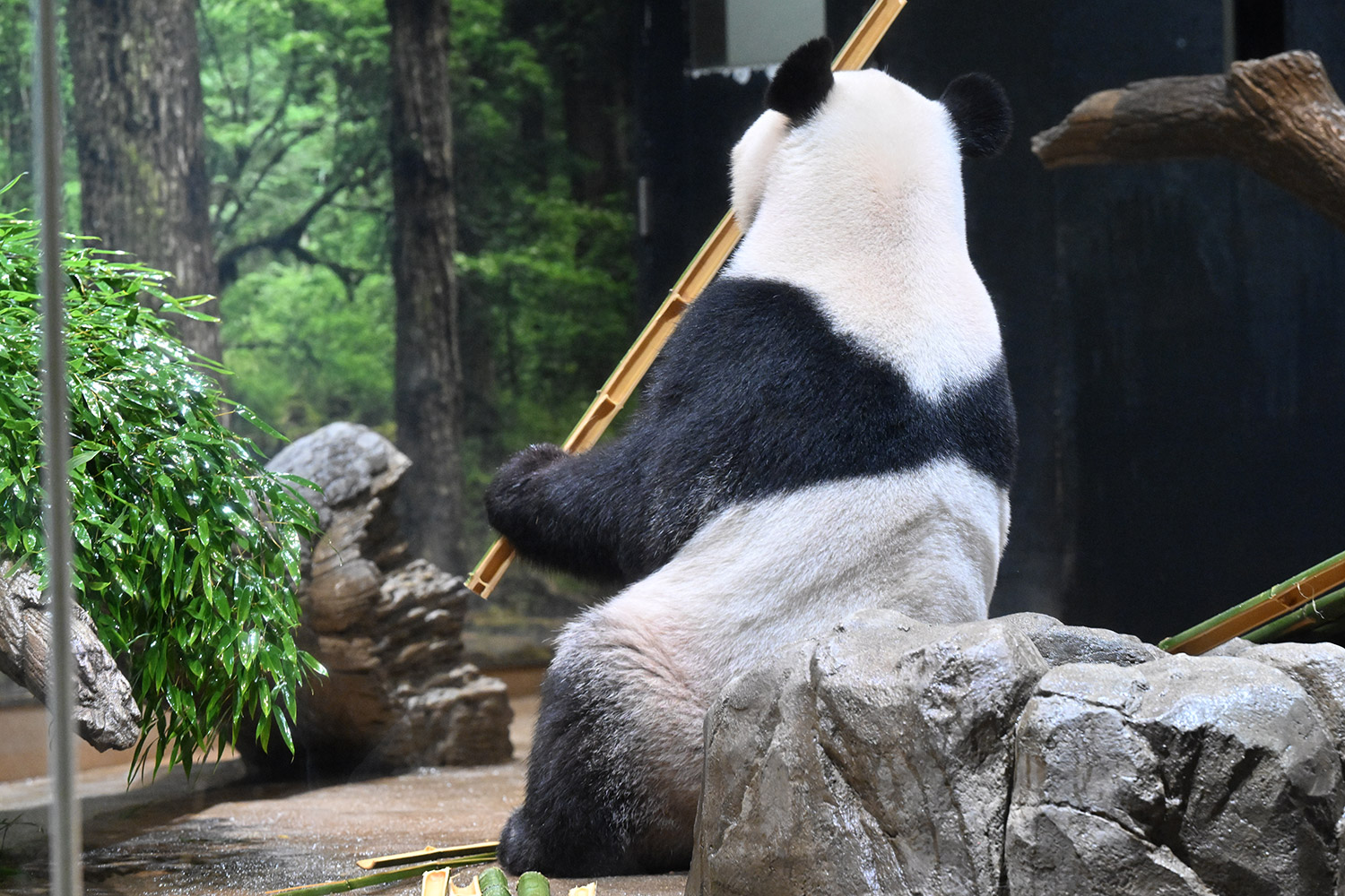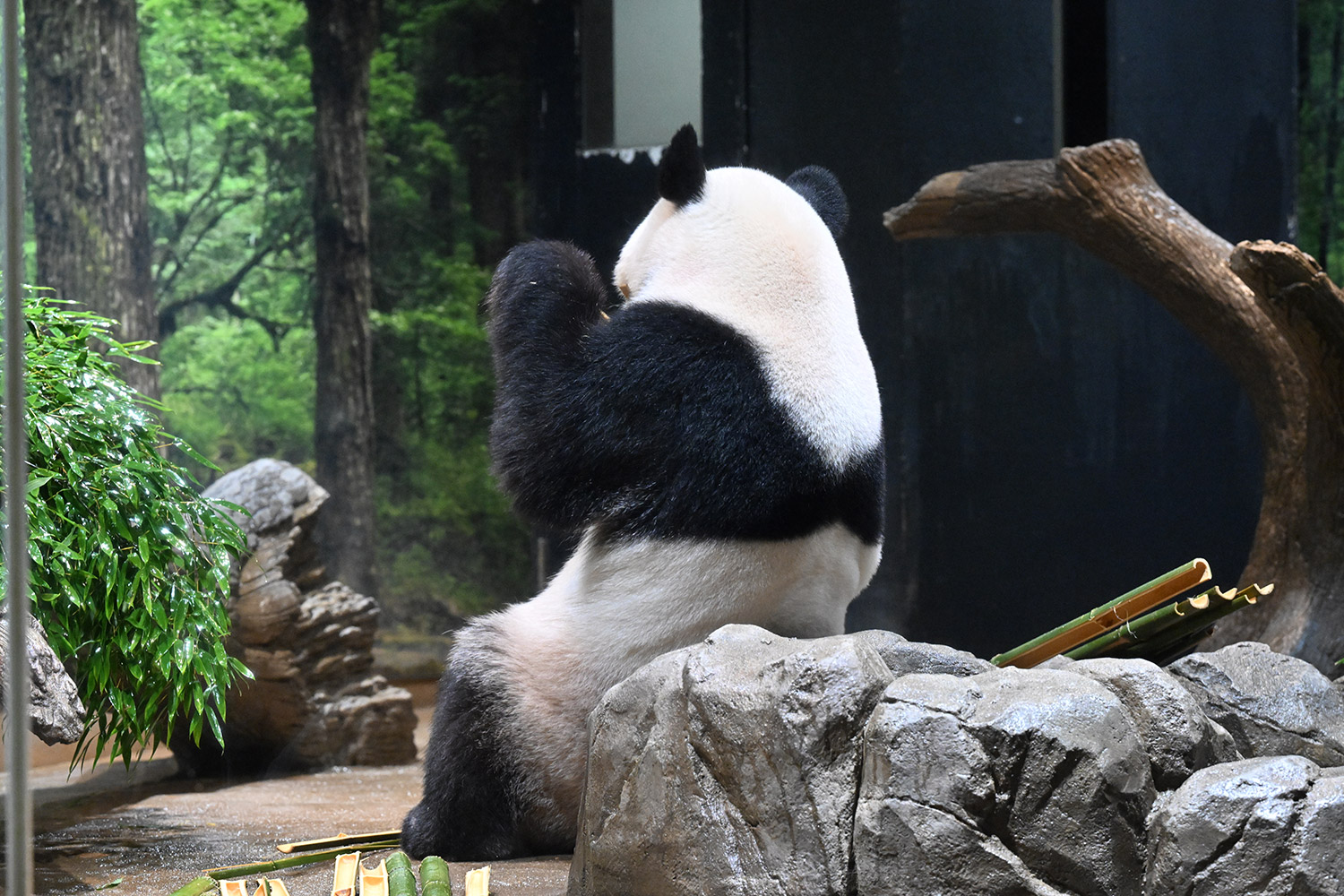 今日のパンダは10:00からです。冷たい雨の一日で朝からパンダたちはお部屋でした。