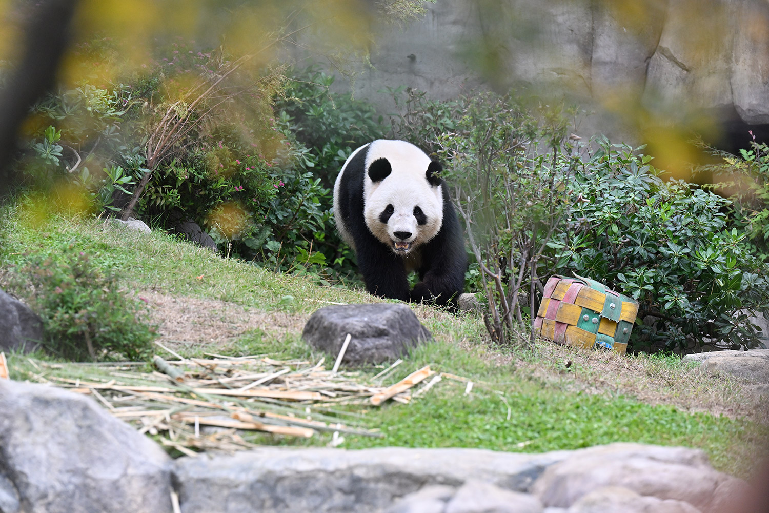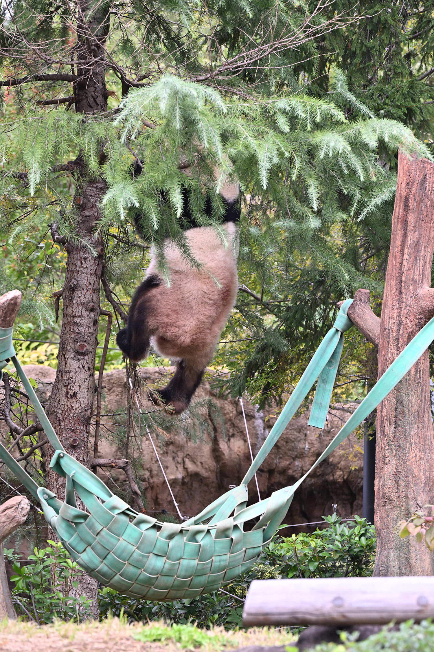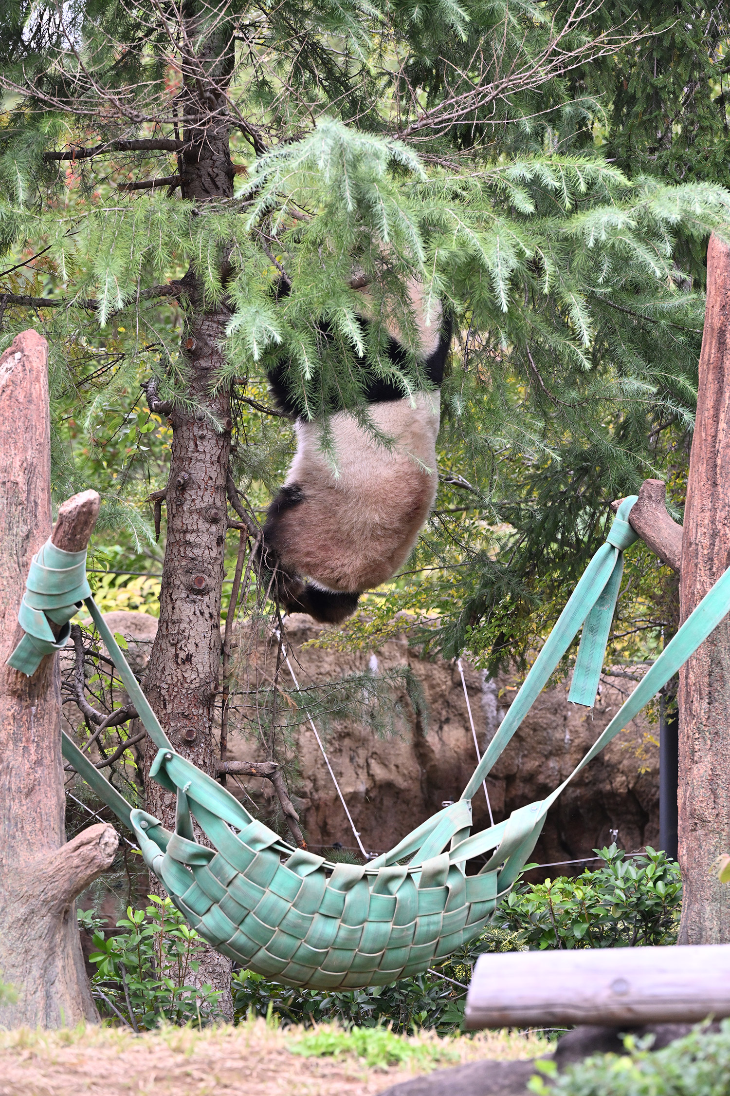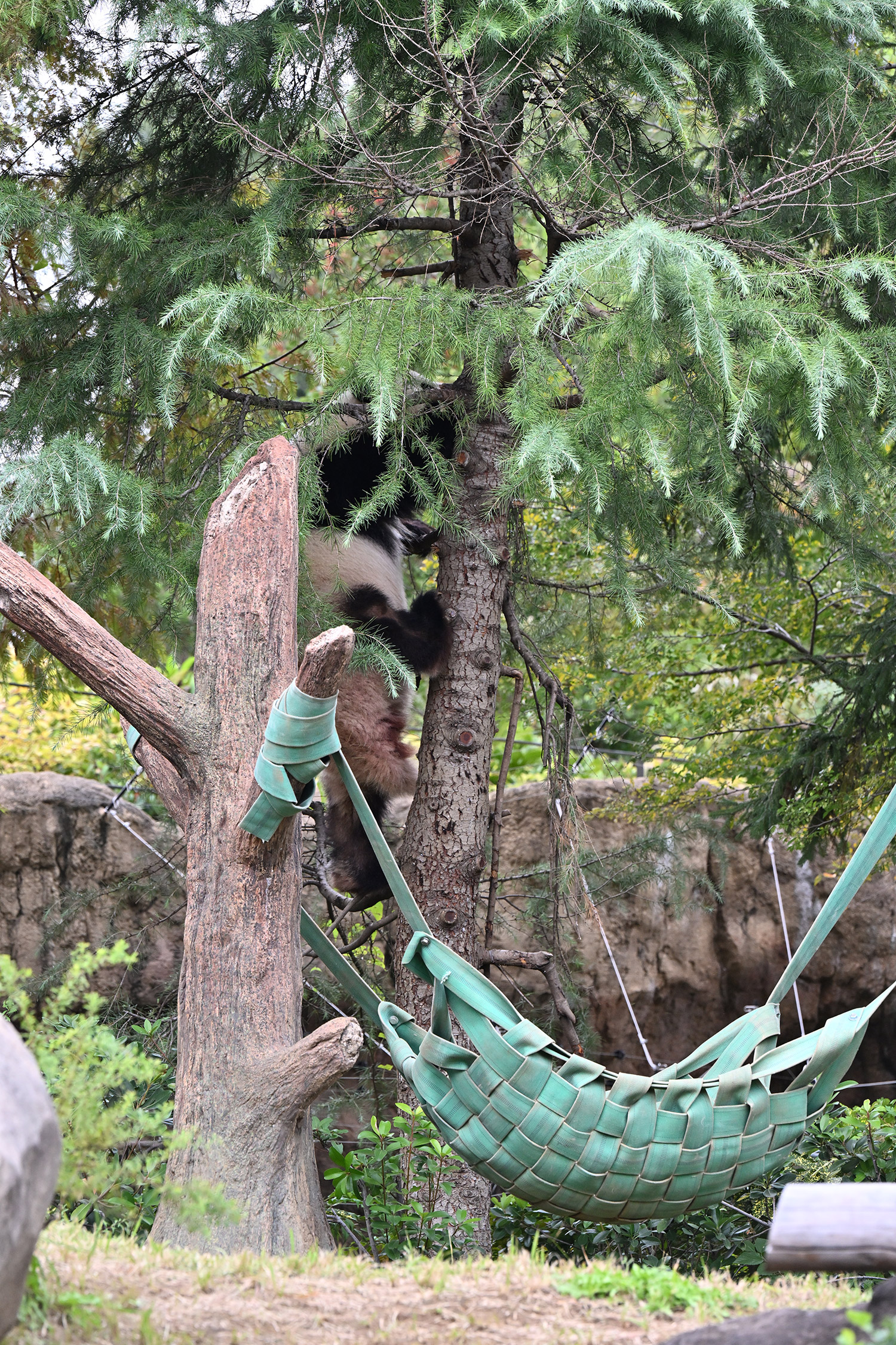 シャオ💚レイちゃん扉前の岩は落ち着くね…まったりにぴったりね。スイッチオンからはお庭を縦横無尽に!色んな木にもチャレンジ!てっぺんの一番高い木にもするする〜葉っぱチクチクしないのかな。あれ?完全にかくれんぼ…よーく見るとあんよの先がチラッお目々とお鼻が…保護色🐼🌿可愛い〜💕木の幹左手から登り右へ移動!モック上足がプラーン大丈夫?しっかり体制整え下りて流石!カラフルboxtから🥕櫓上で満喫!いいお顔💓赤いホースの切れ端?何度か登場。くんくんレイちゃんの匂いするかな?