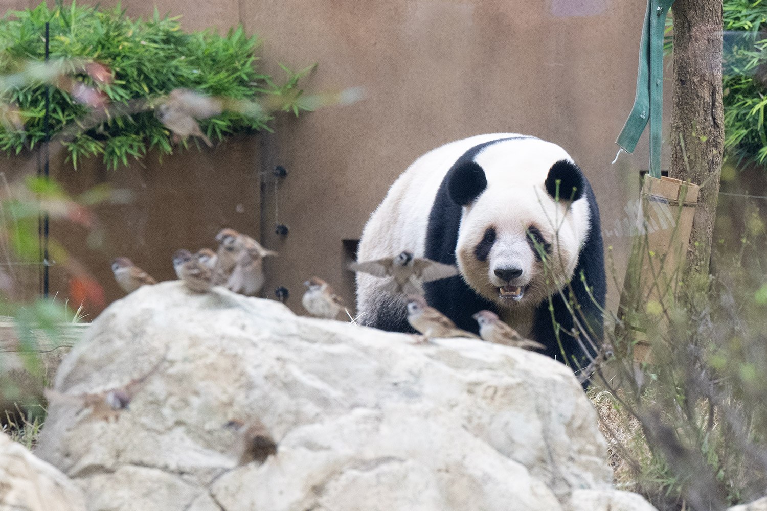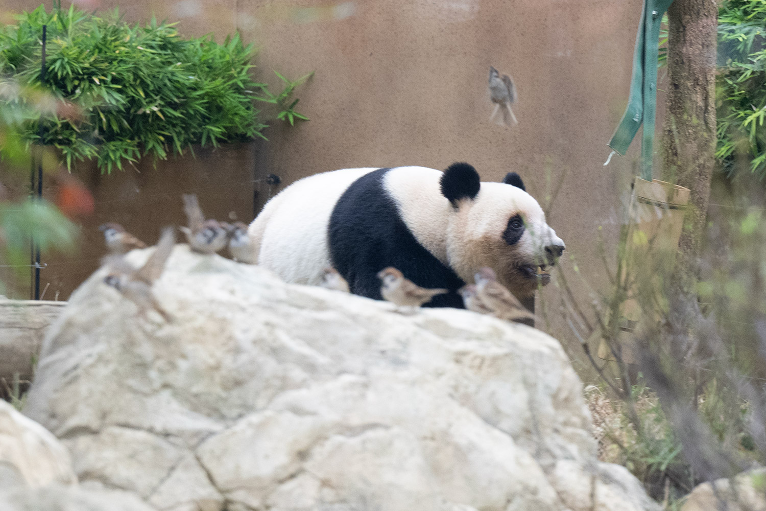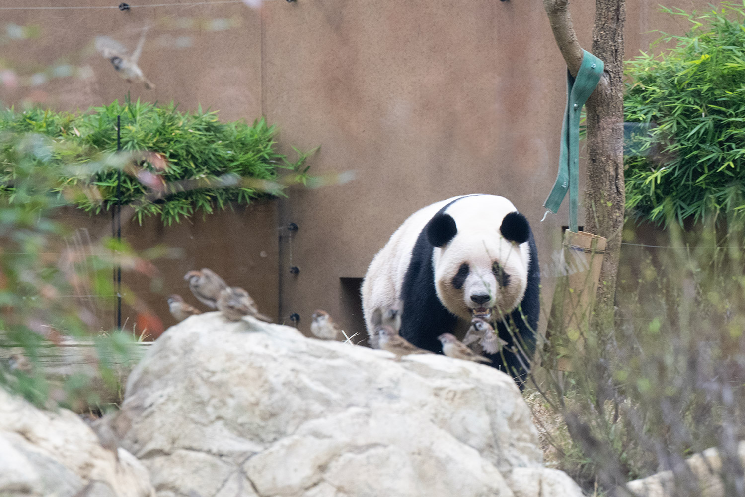 レイ邸近くの 低い擬木の所で 腕をクロスしているみたいな姿 可愛いっ!今日はモフモフの木の方を楽しんだんですね♬ レイちゃんの小走り!!💓 やはり お外を自由に行き来できる時のパンダズは とても幸せそうです レイちゃんのお庭に沢山のスズメさん! すごく近くに接近したスズメさんがいたんですね こんな貴重な瞬間を拝見できる事 心から感謝申し上げます