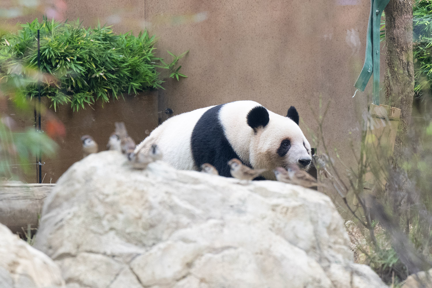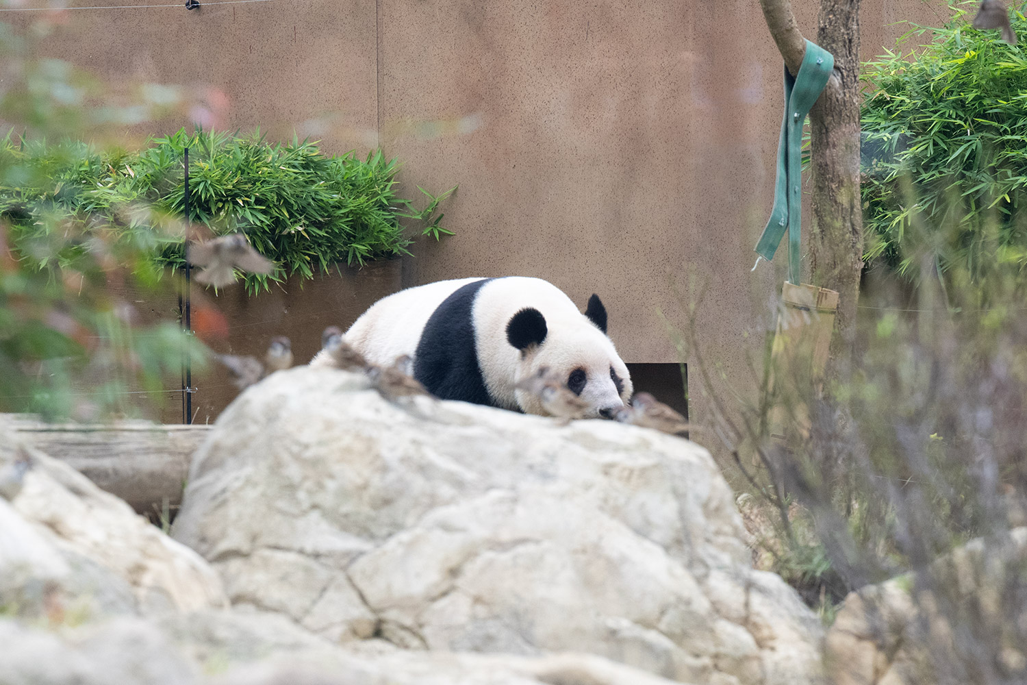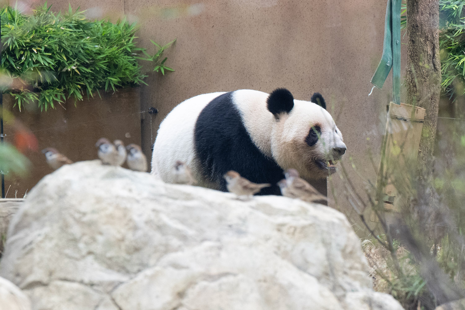 レイ邸近くの 低い擬木の所で 腕をクロスしているみたいな姿 可愛いっ!今日はモフモフの木の方を楽しんだんですね♬ レイちゃんの小走り!!💓 やはり お外を自由に行き来できる時のパンダズは とても幸せそうです レイちゃんのお庭に沢山のスズメさん! すごく近くに接近したスズメさんがいたんですね こんな貴重な瞬間を拝見できる事 心から感謝申し上げます