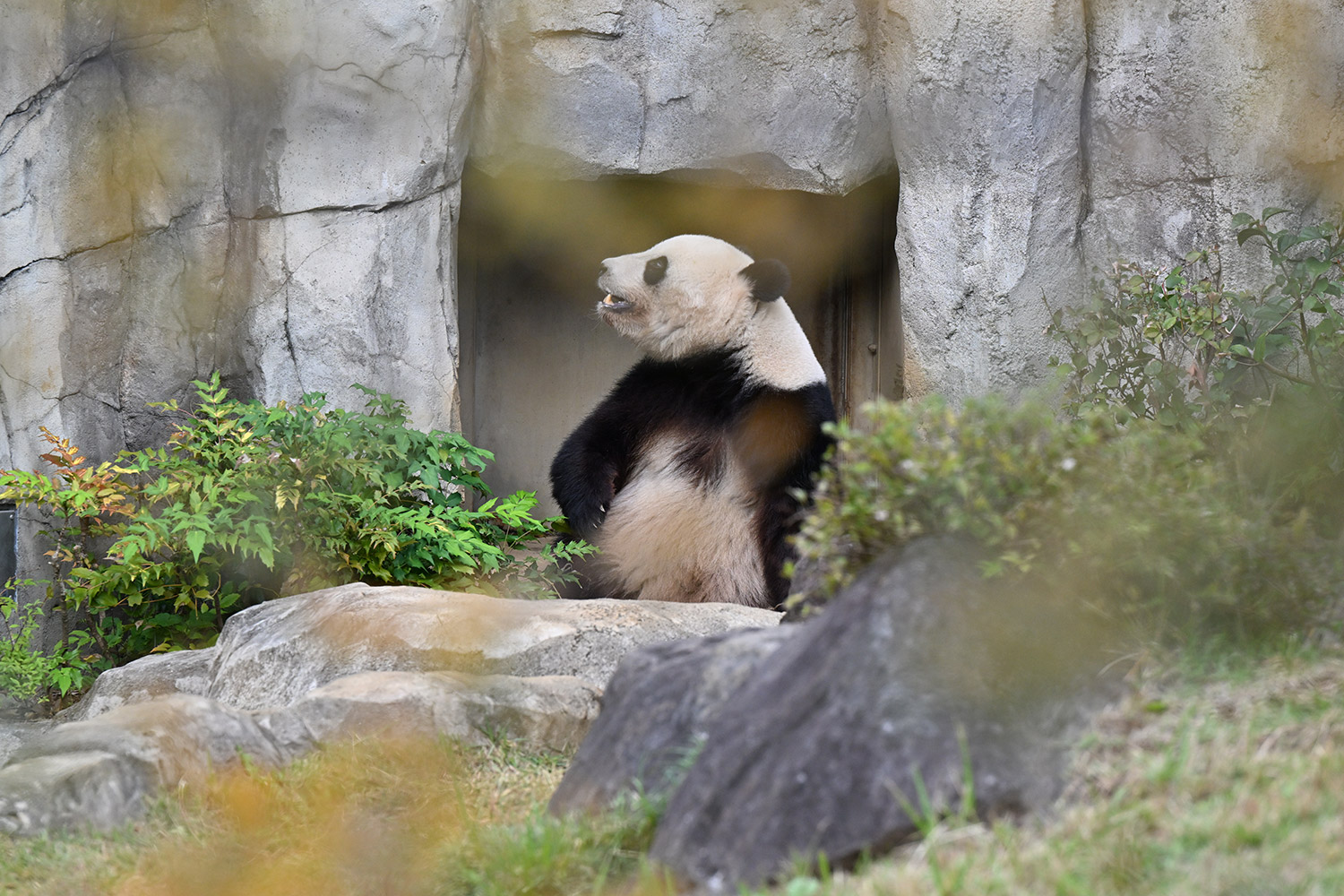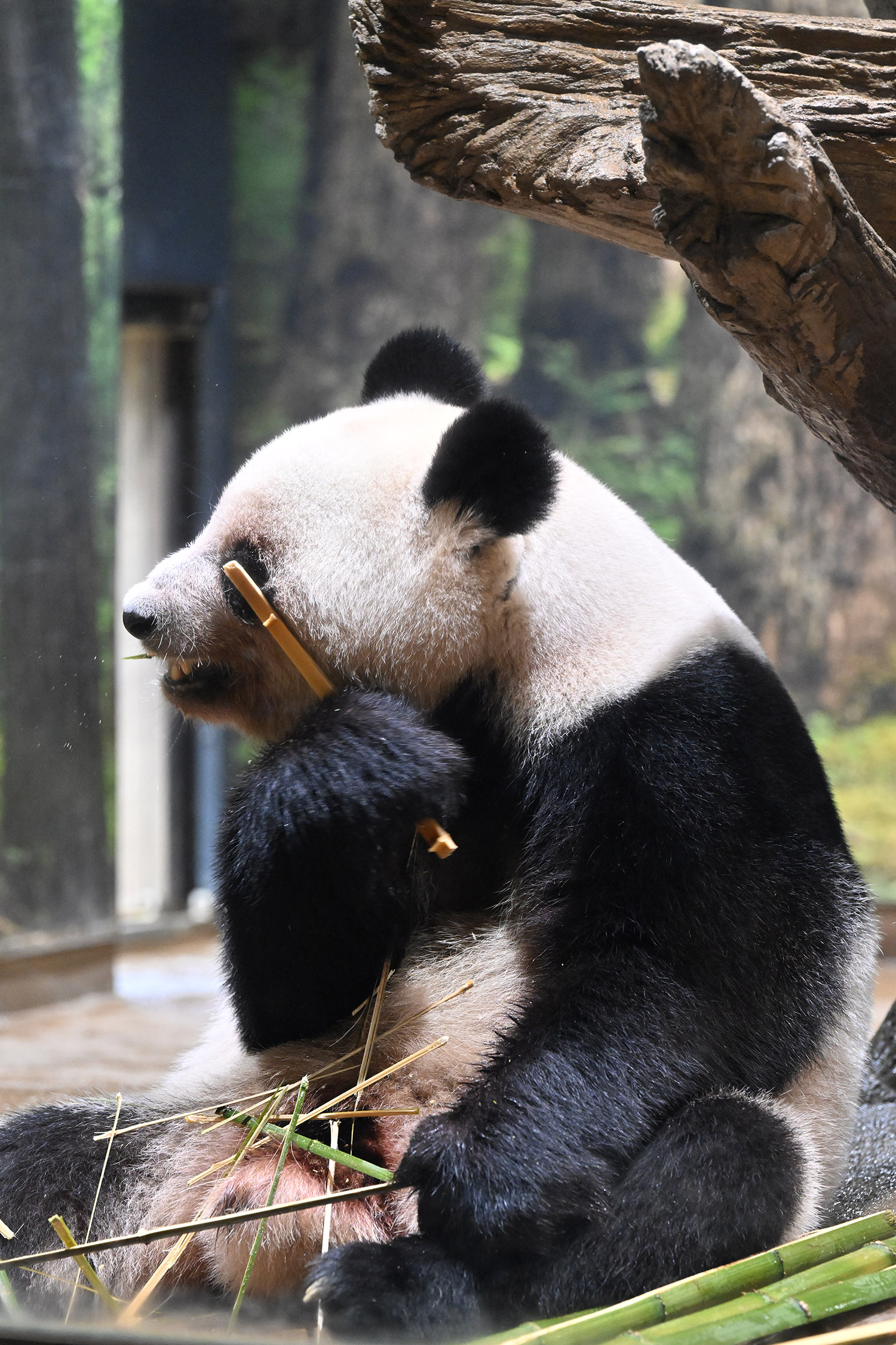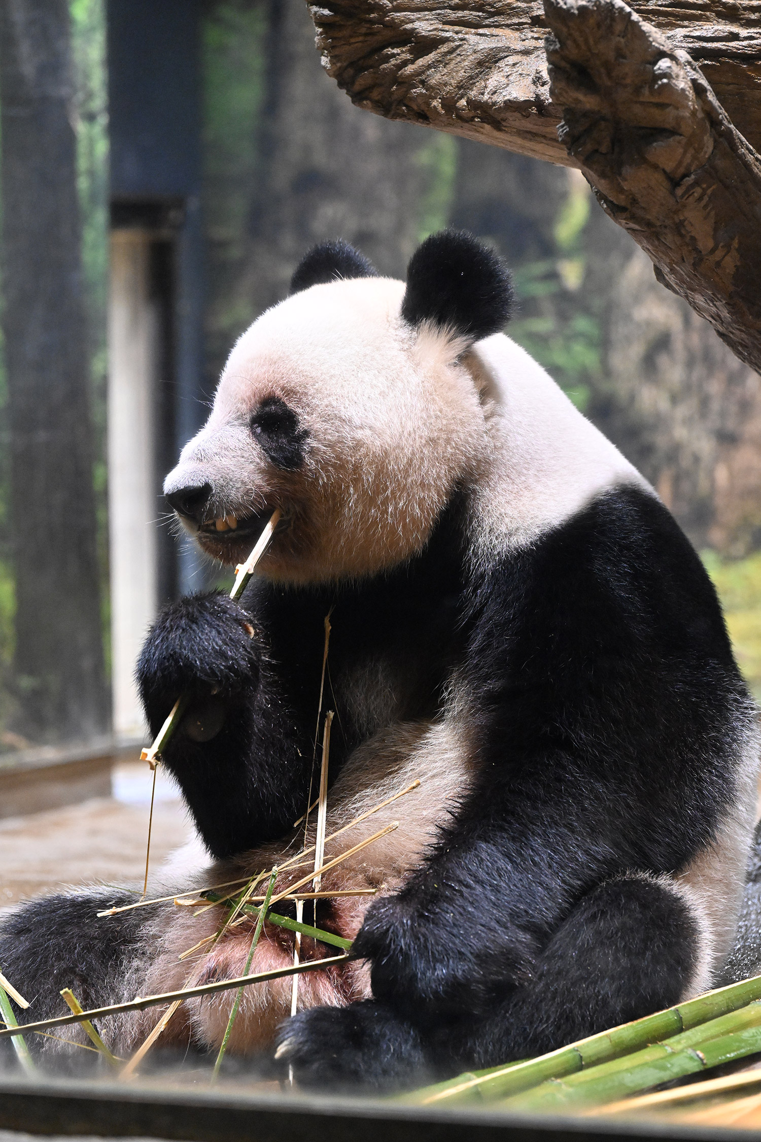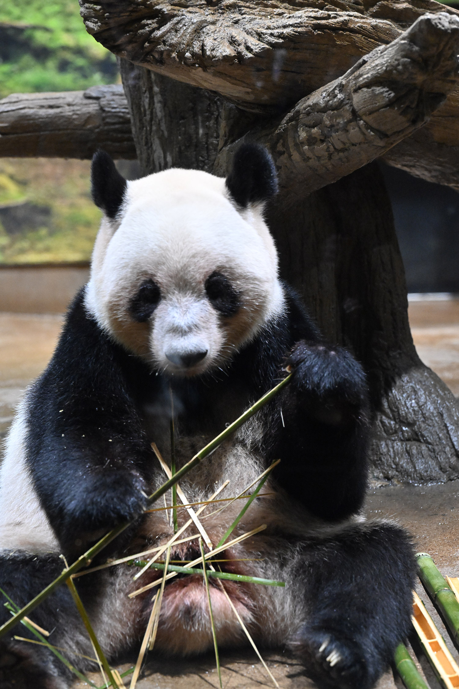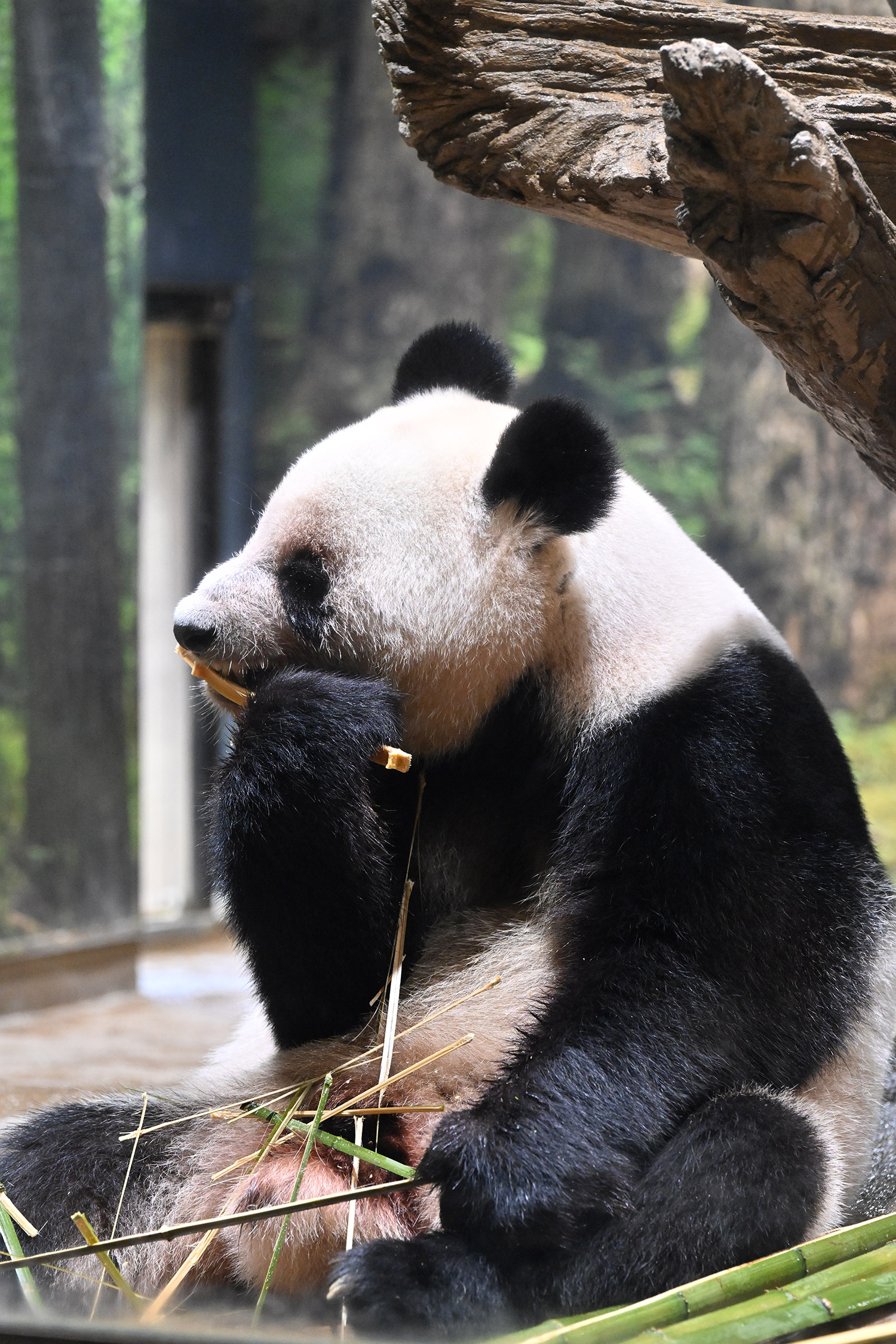 レイレイのお食事タイム、パンダ座りが可愛いなぁ。