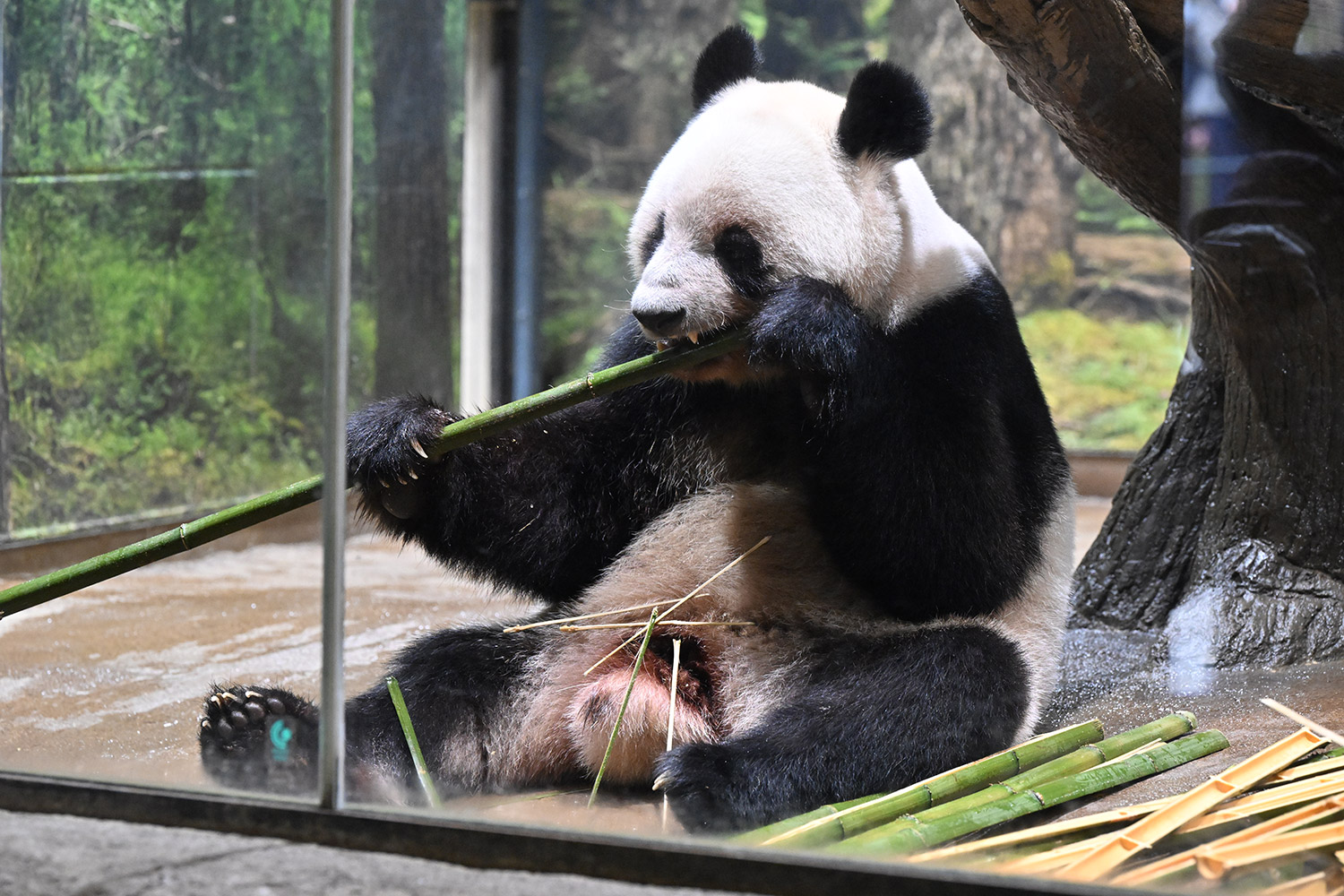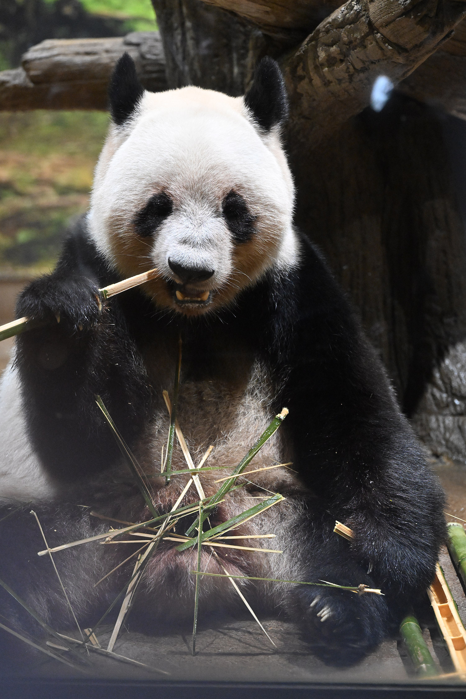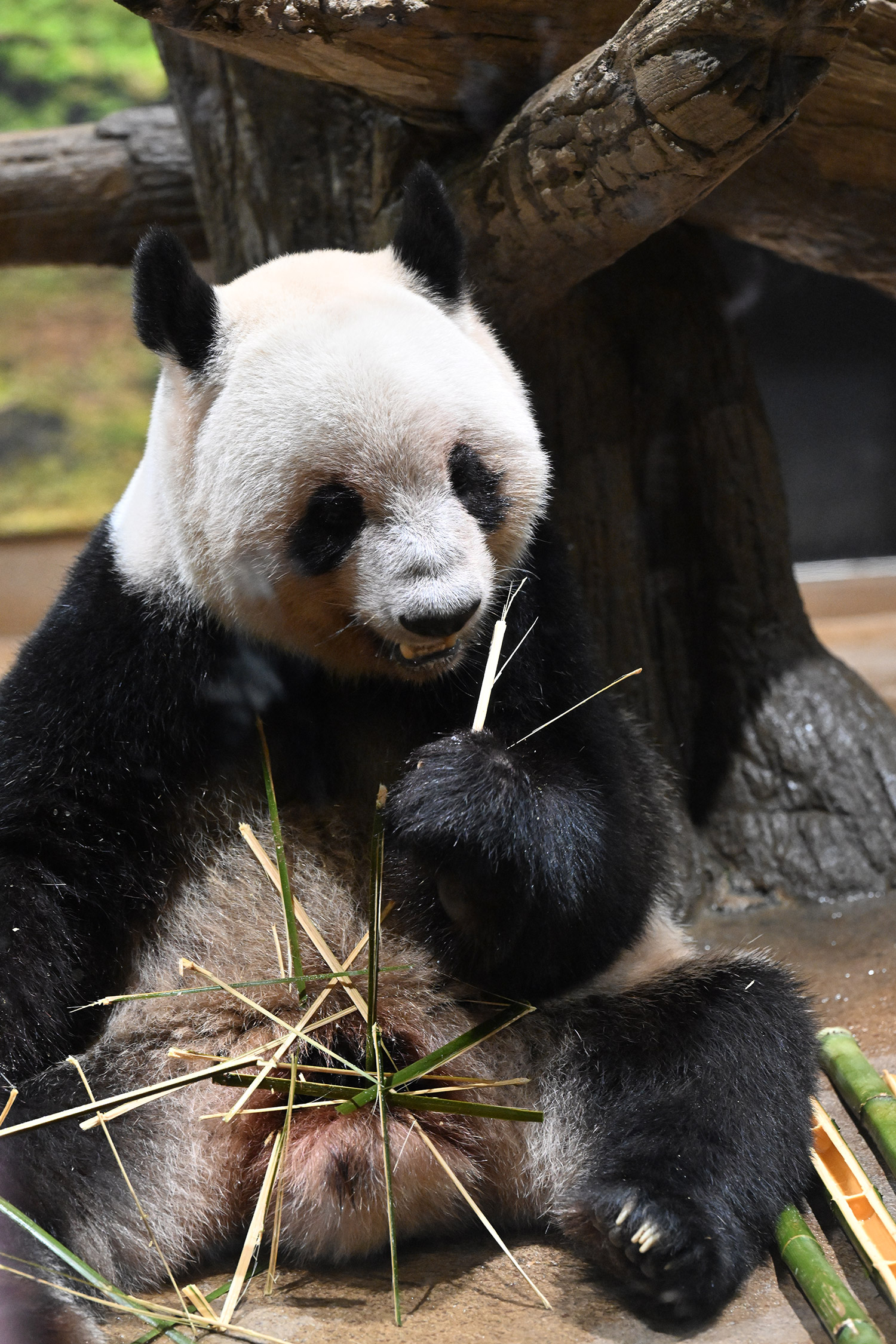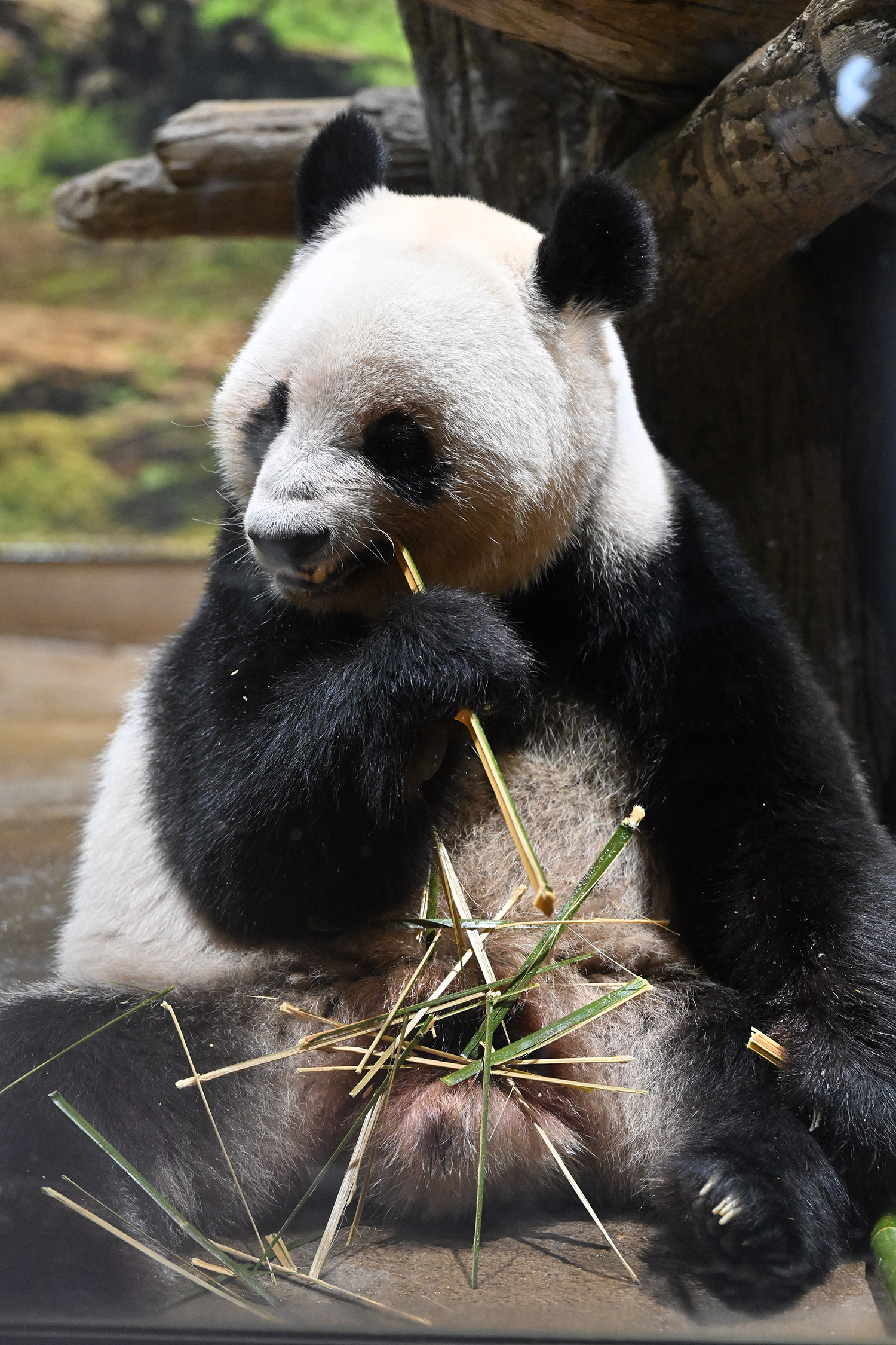 レイレイのお食事タイム、パンダ座りが可愛いなぁ。