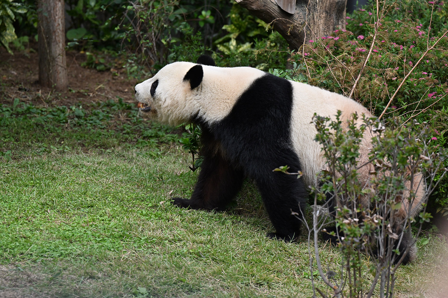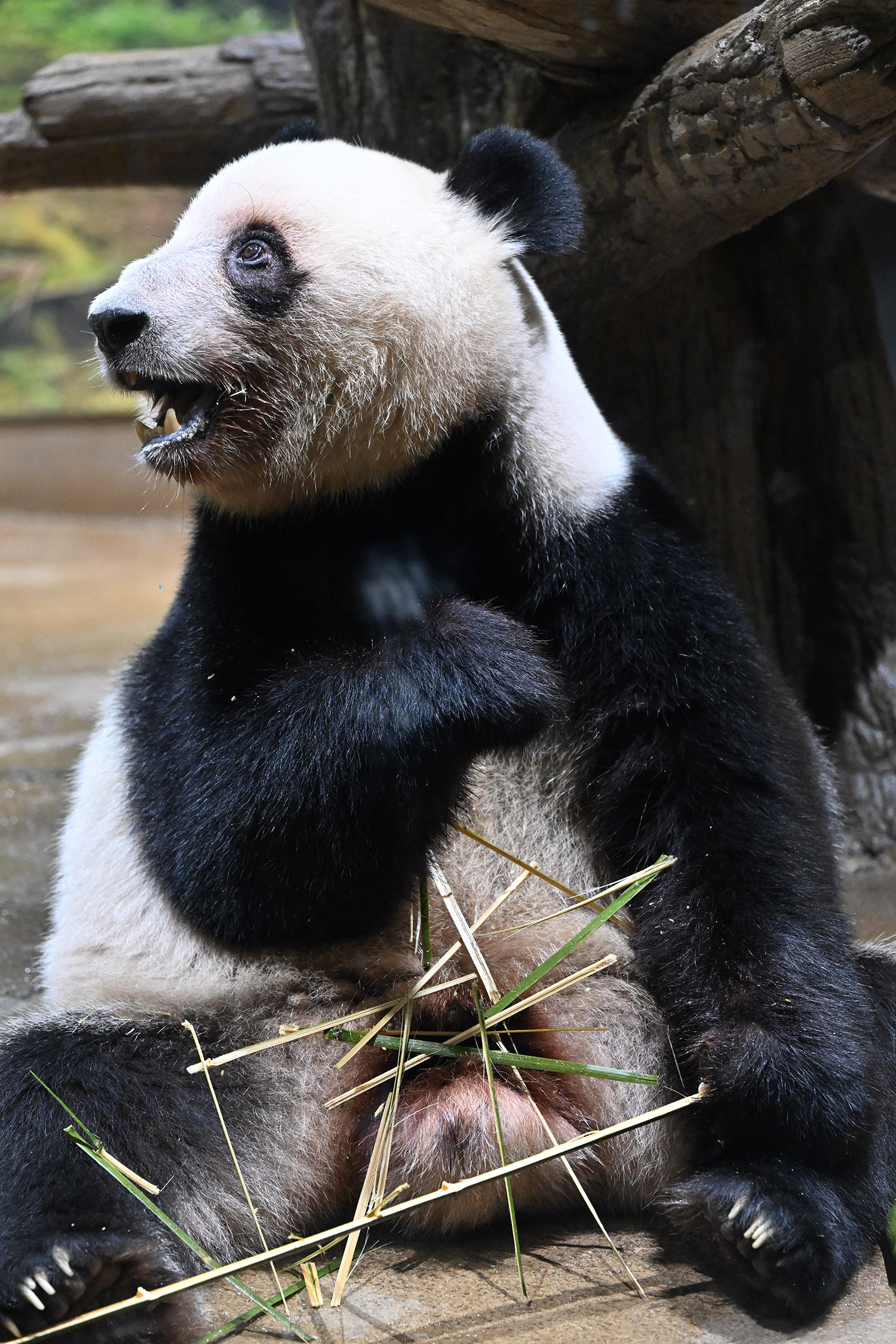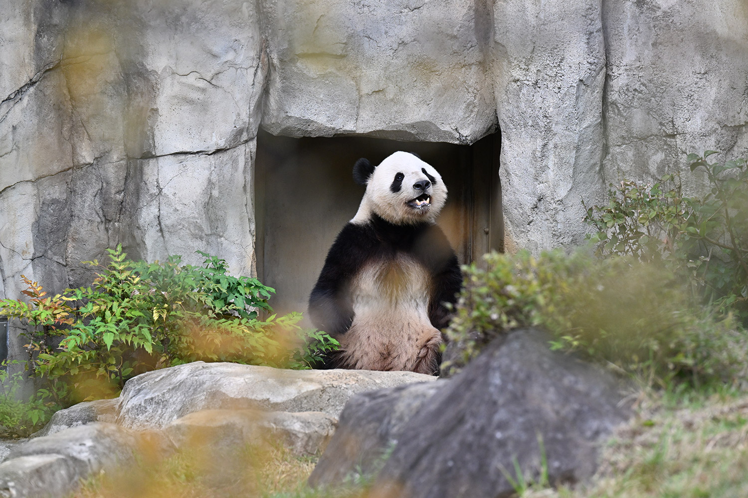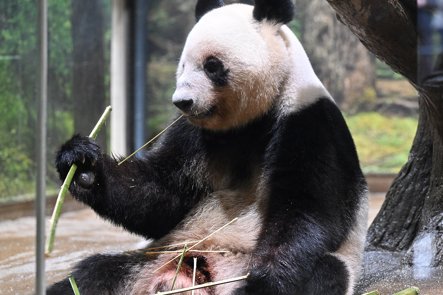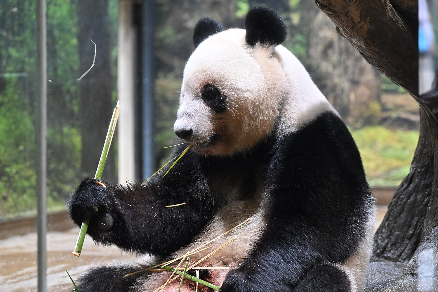レイレイのお食事タイム、パンダ座りが可愛いなぁ。