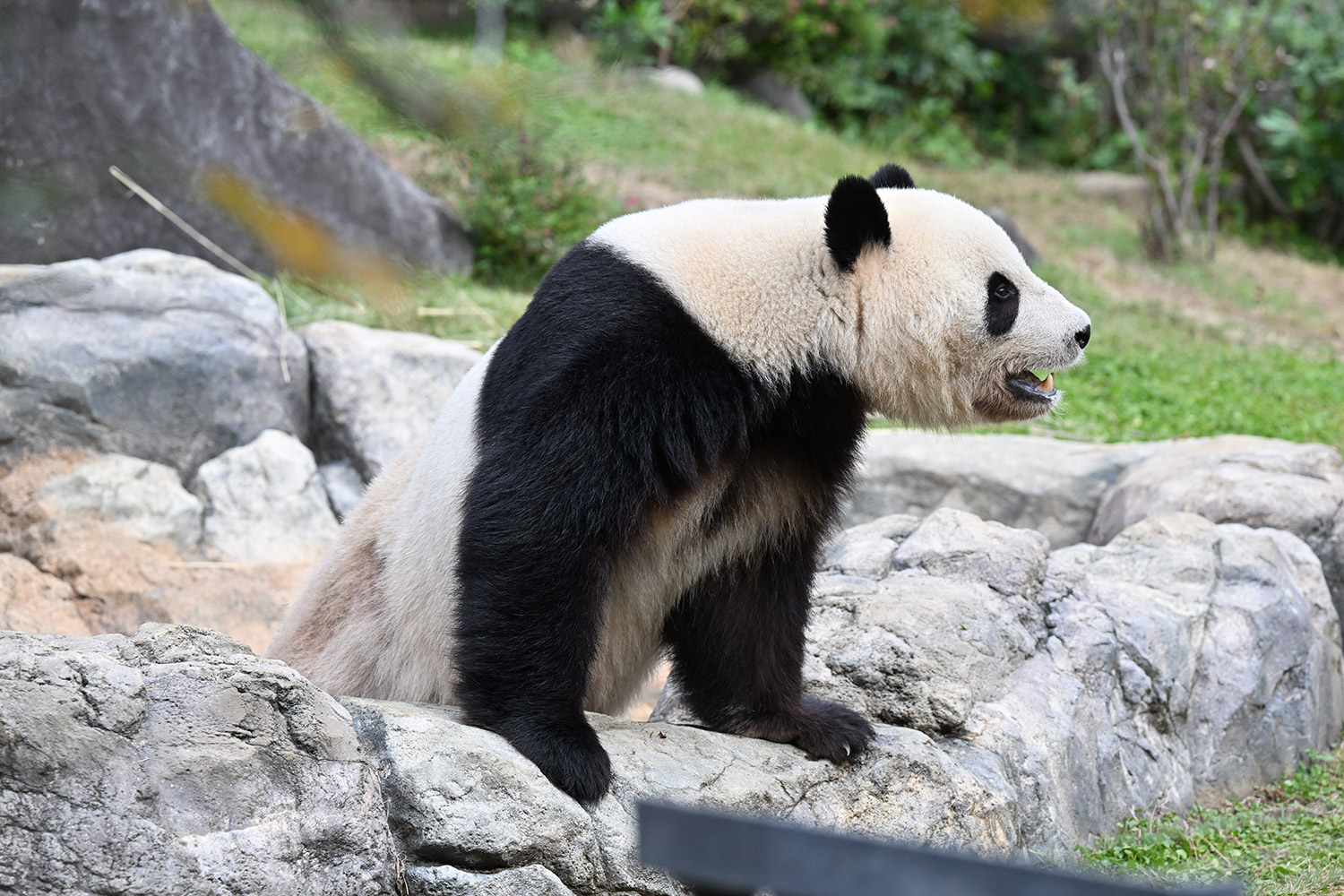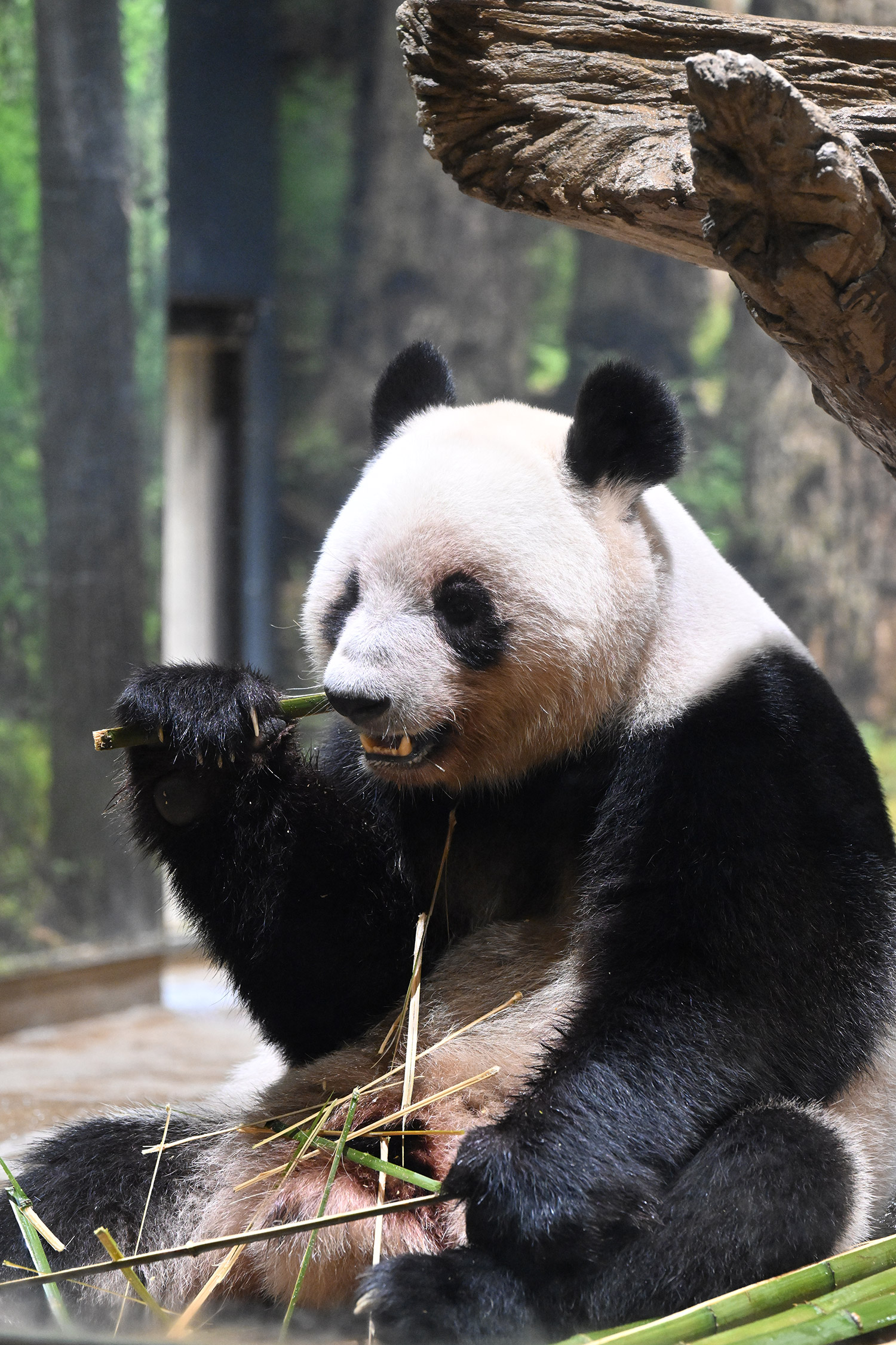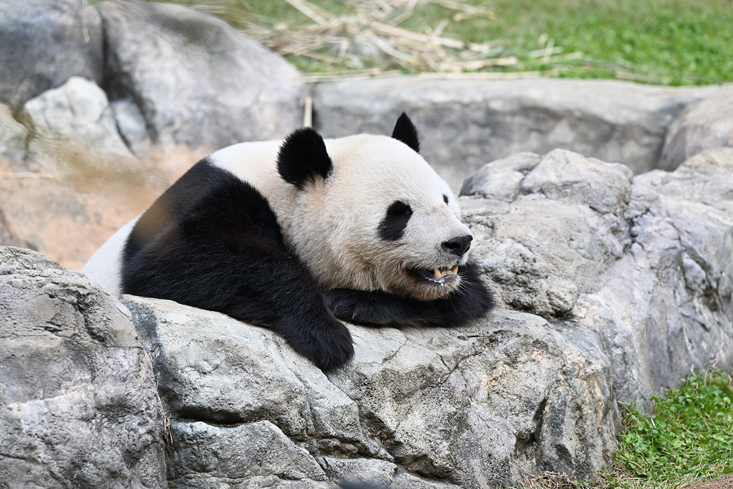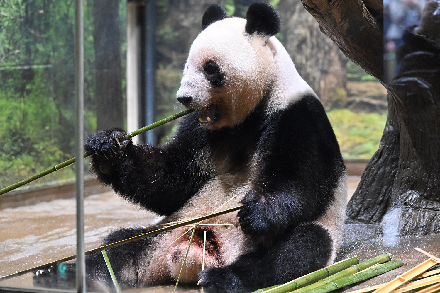 レイレイのお食事タイム、パンダ座りが可愛いなぁ。