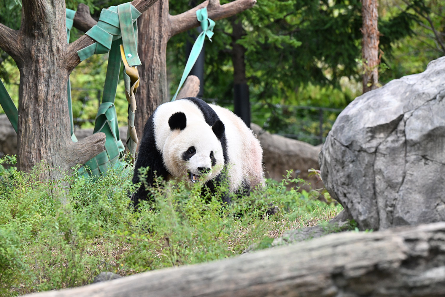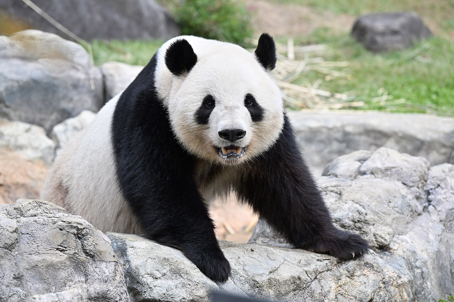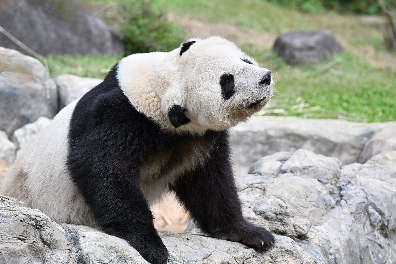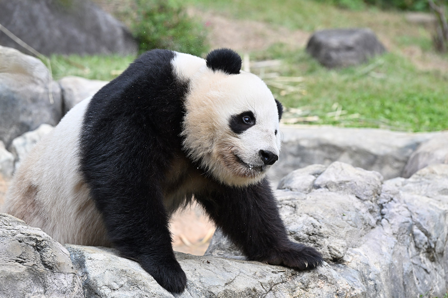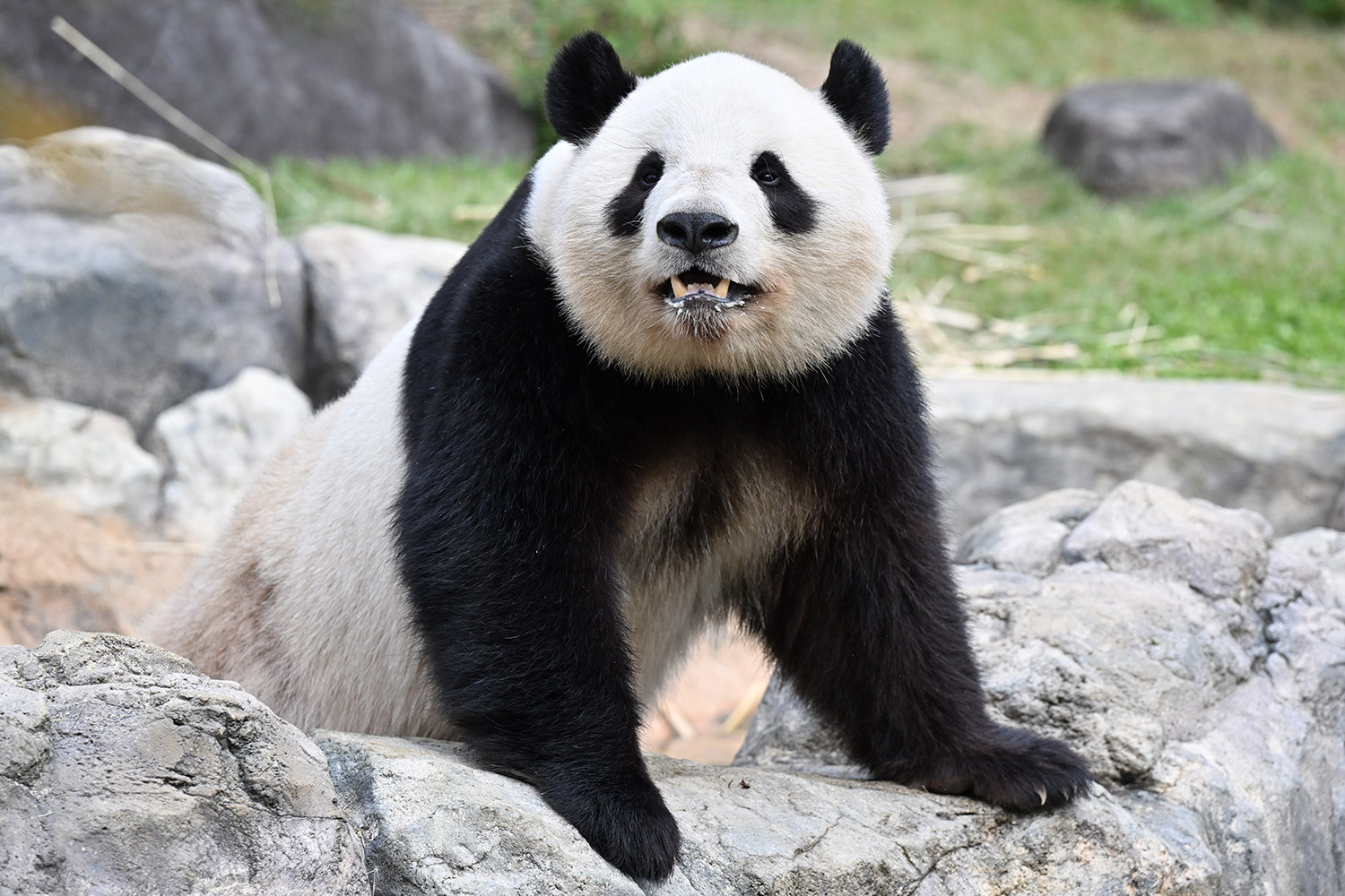 レイレイのお食事タイム、パンダ座りが可愛いなぁ。
