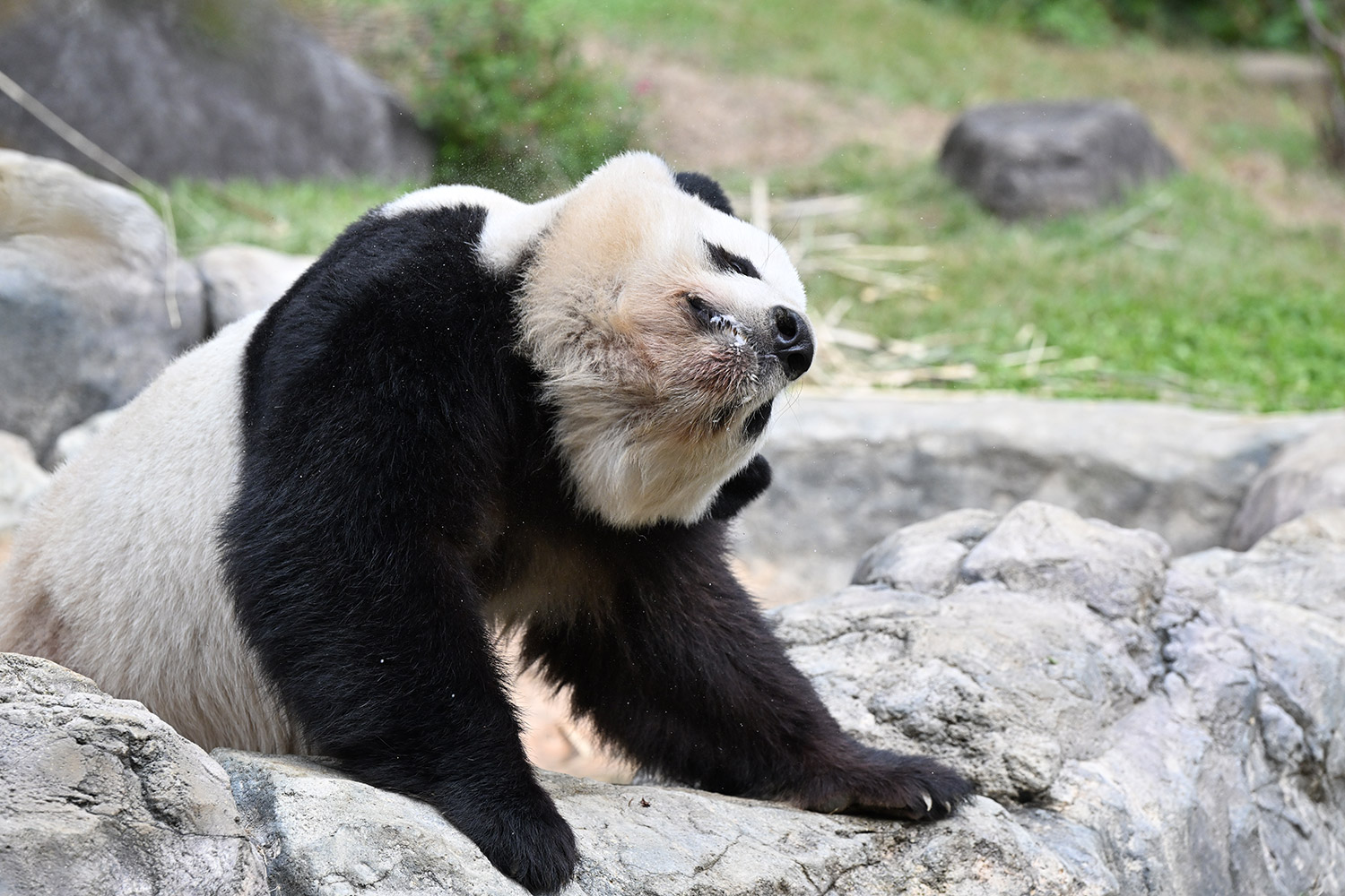 この、お耳が飛んでいっちゃいそうなぶるぶる大好きです🤭入浴やぶるぶるはリーリーを思い出します🐼