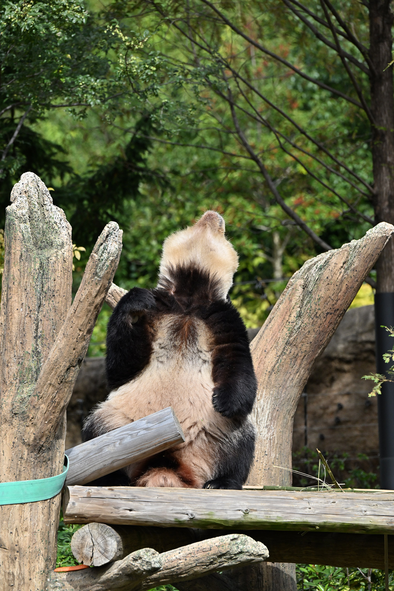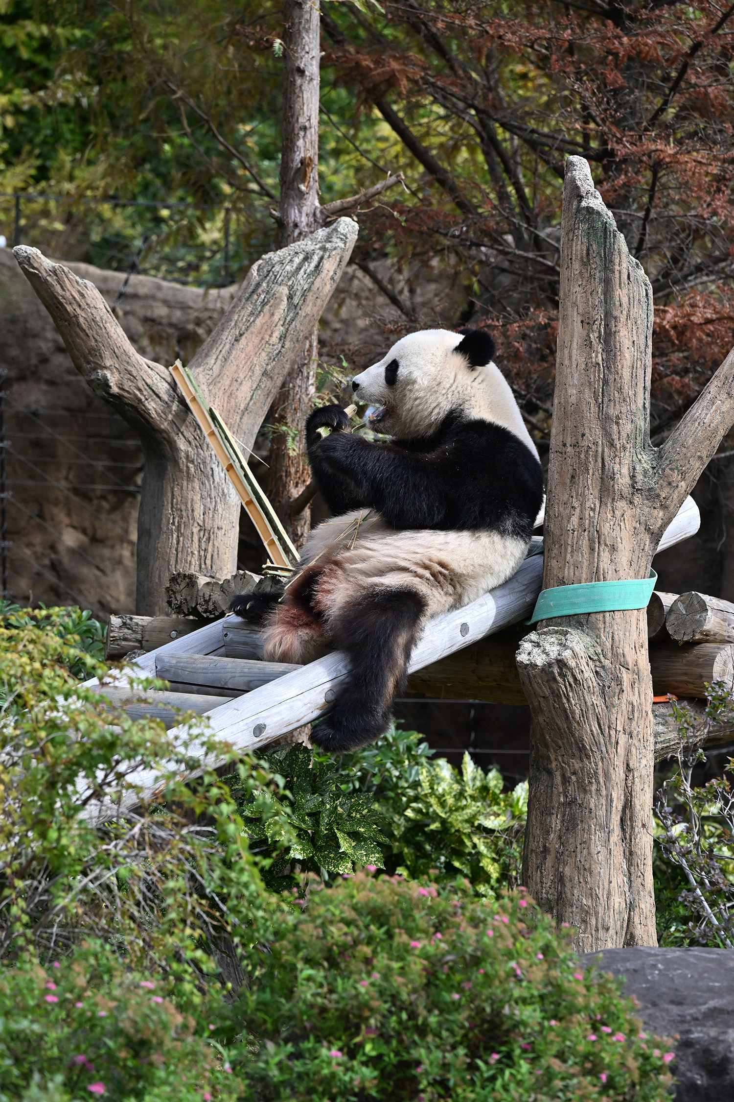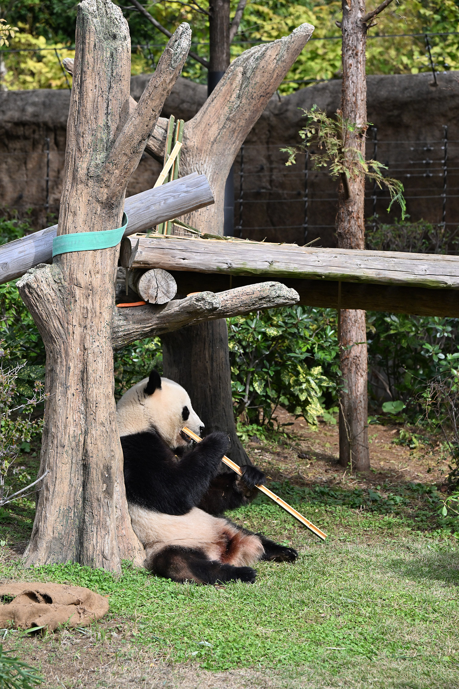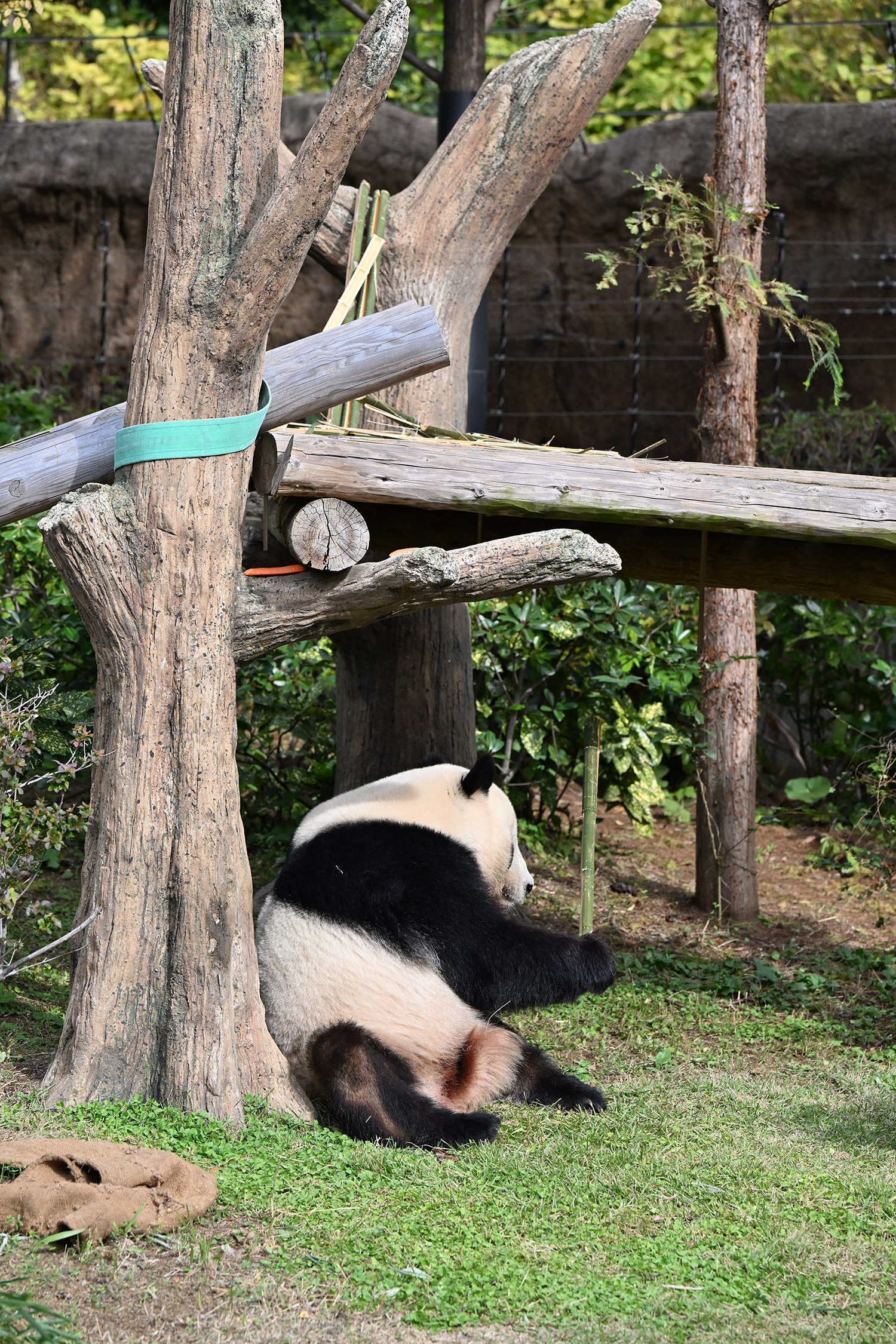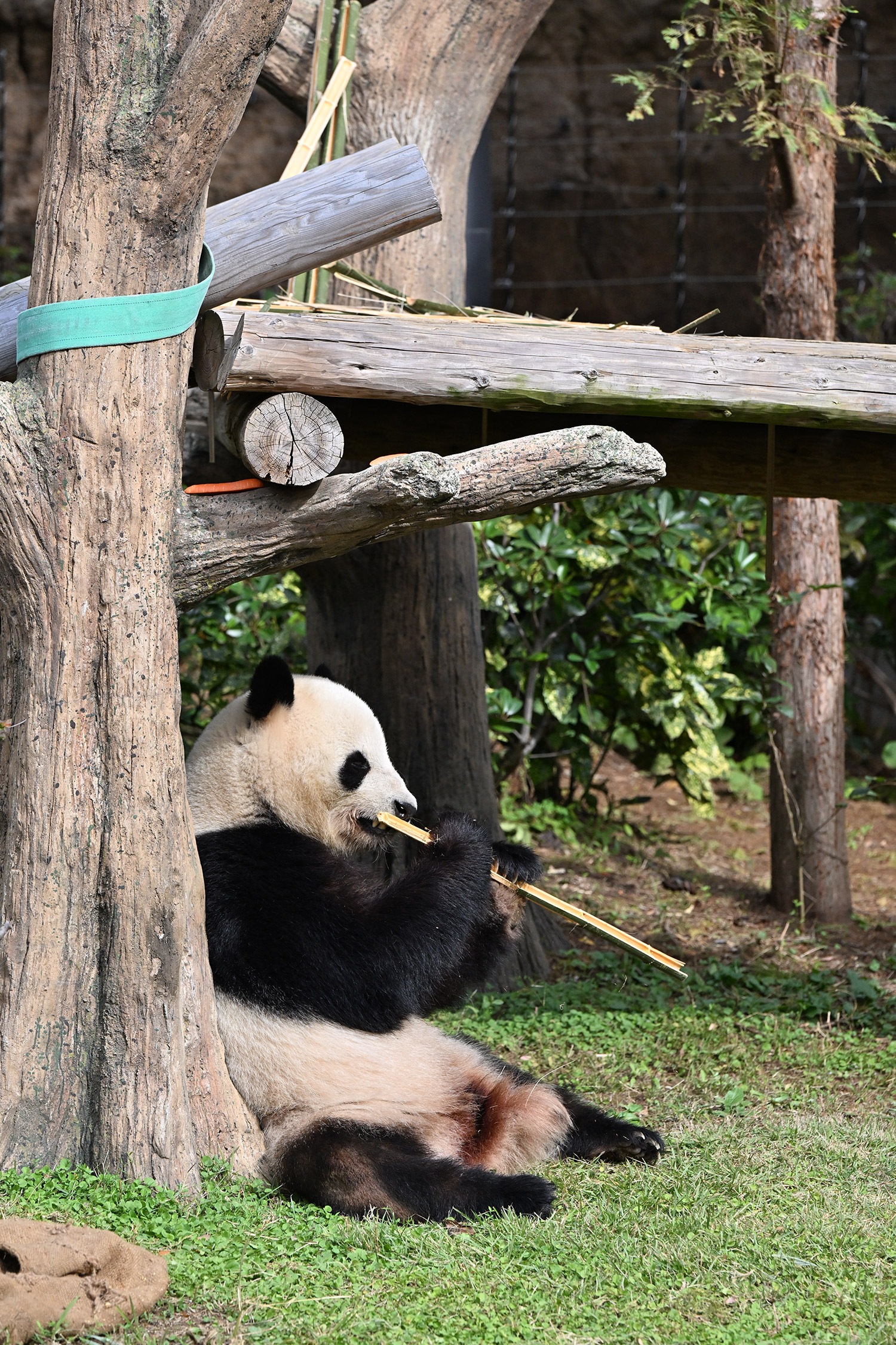 シャオ、背中がたるたる🤣💕!佐々木さん、サイズ詰めたほうがいいかも?!…こんなにたるたるするようになったんですねえ😊💕櫓の梯子で足をぷらぷらさせながら食べてるの、カワヨ💓…この頃めっきり竹職人で、かなり選ぶ目👀いや鼻👃が厳しくなってきましたよね。なにを選り分けてるのか、少しでもわかってきたのかなあ…各国でずっと観察研究しててもわからないなんて。あんなにはっきり「これちがう。🖐ポイガラン」て即答するんだから、相当明確な差異がありそうなのに。