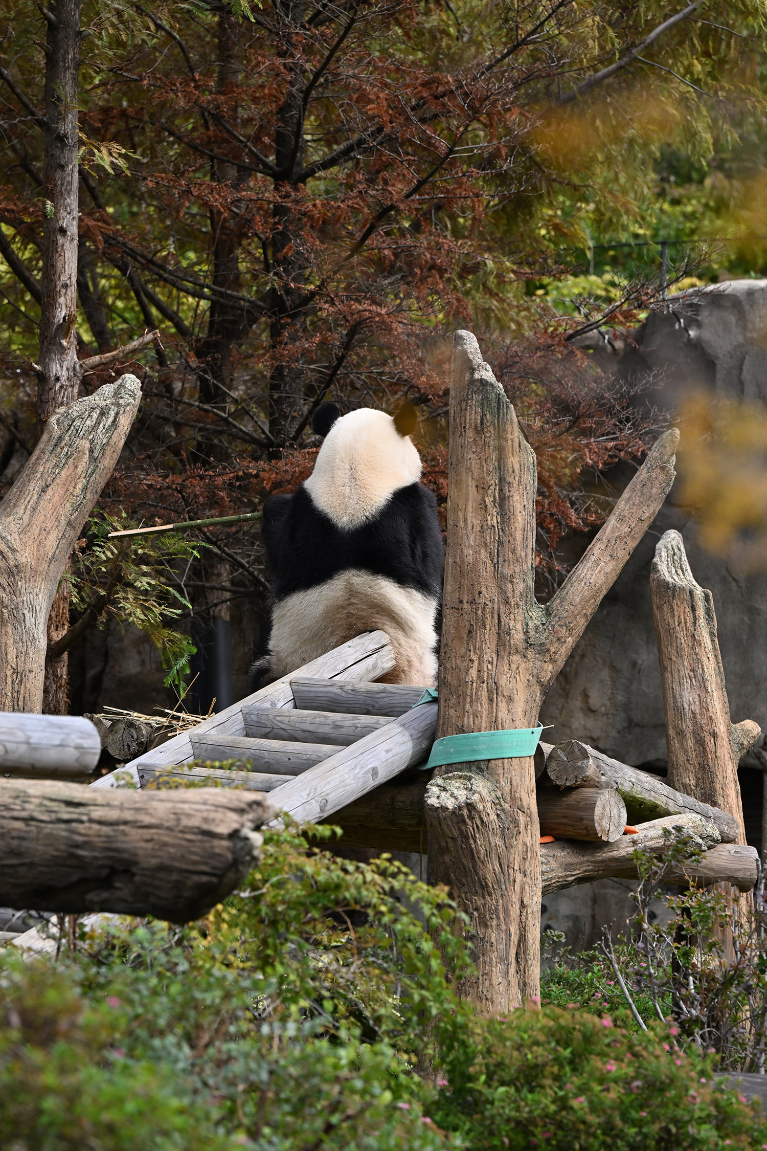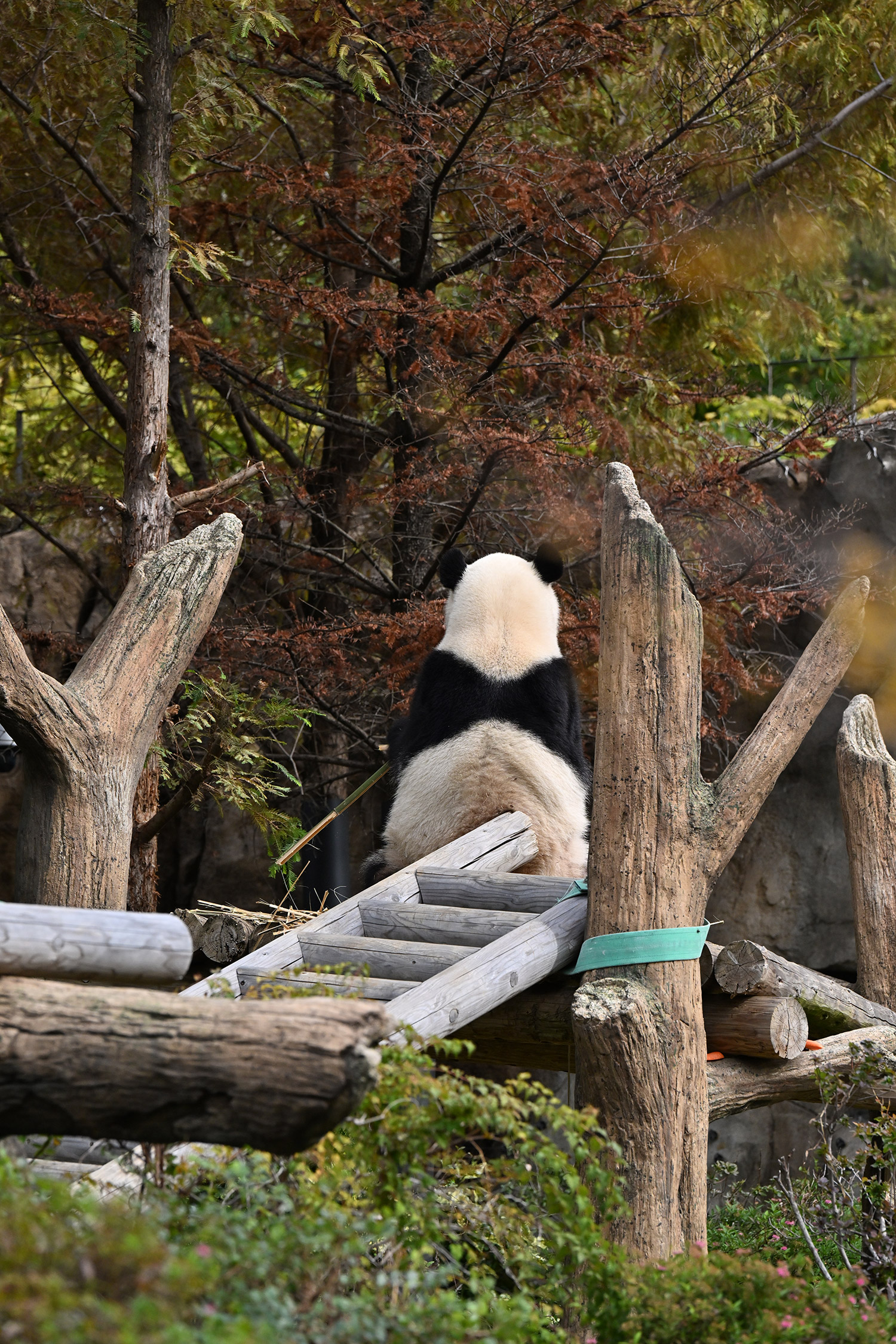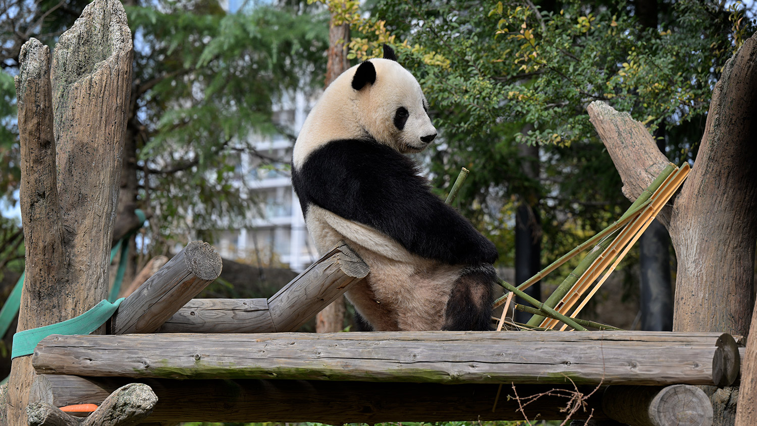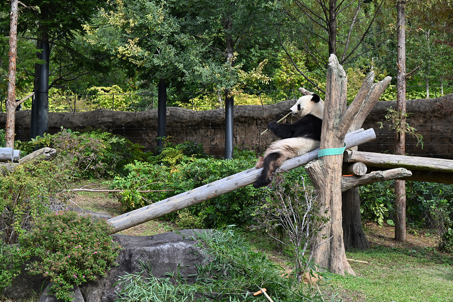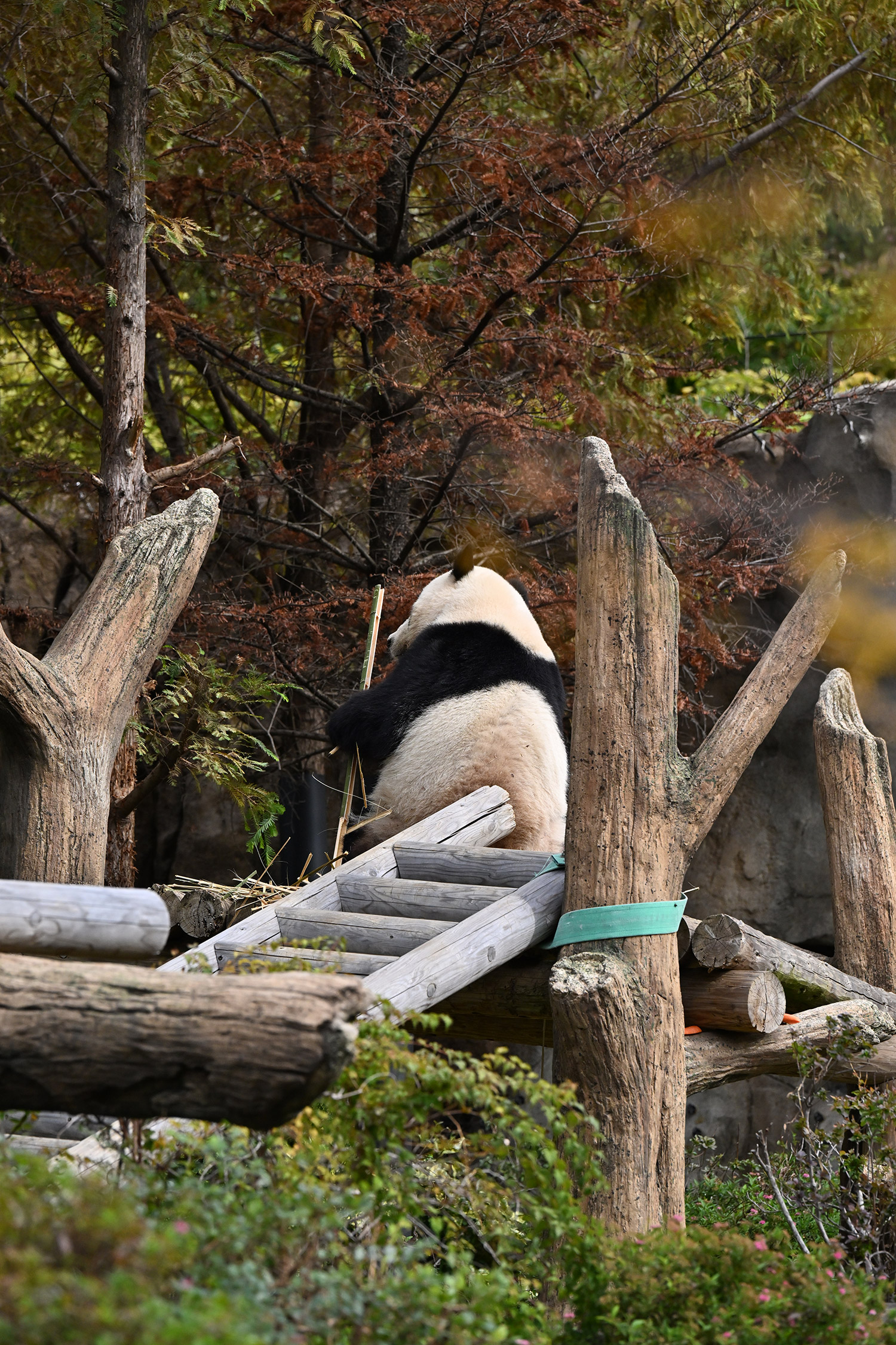 シャオ、背中がたるたる🤣💕!佐々木さん、サイズ詰めたほうがいいかも?!…こんなにたるたるするようになったんですねえ😊💕櫓の梯子で足をぷらぷらさせながら食べてるの、カワヨ💓…この頃めっきり竹職人で、かなり選ぶ目👀いや鼻👃が厳しくなってきましたよね。なにを選り分けてるのか、少しでもわかってきたのかなあ…各国でずっと観察研究しててもわからないなんて。あんなにはっきり「これちがう。🖐ポイガラン」て即答するんだから、相当明確な差異がありそうなのに。