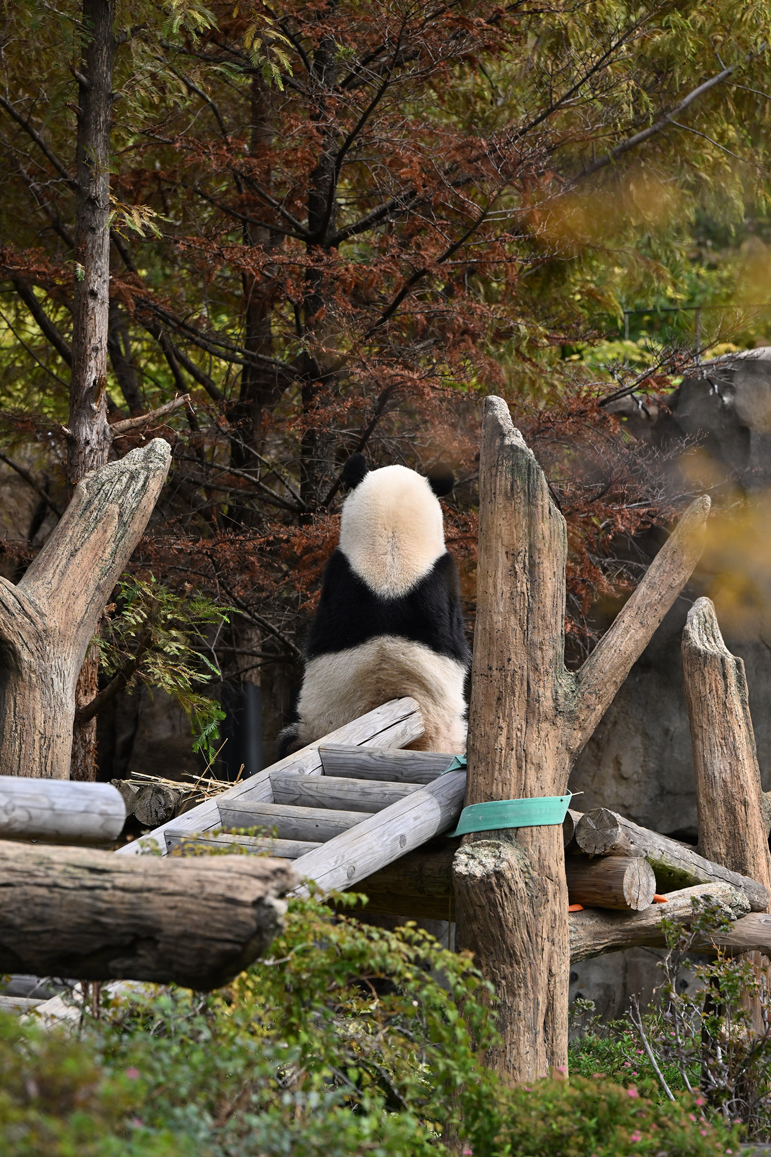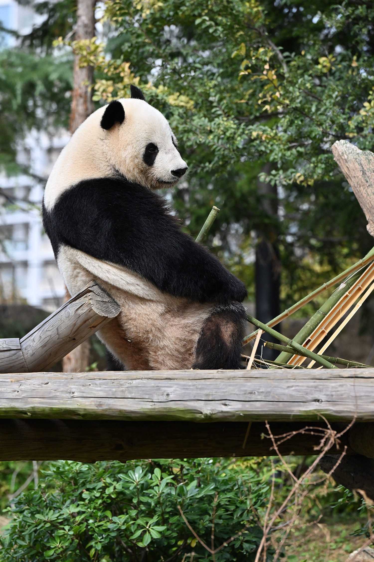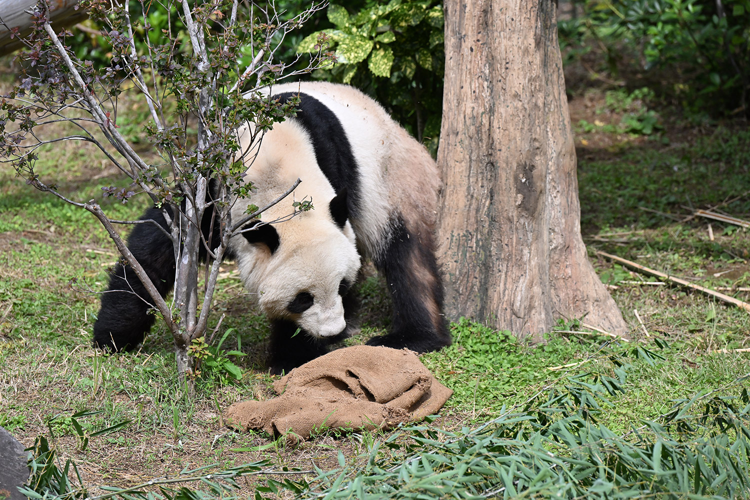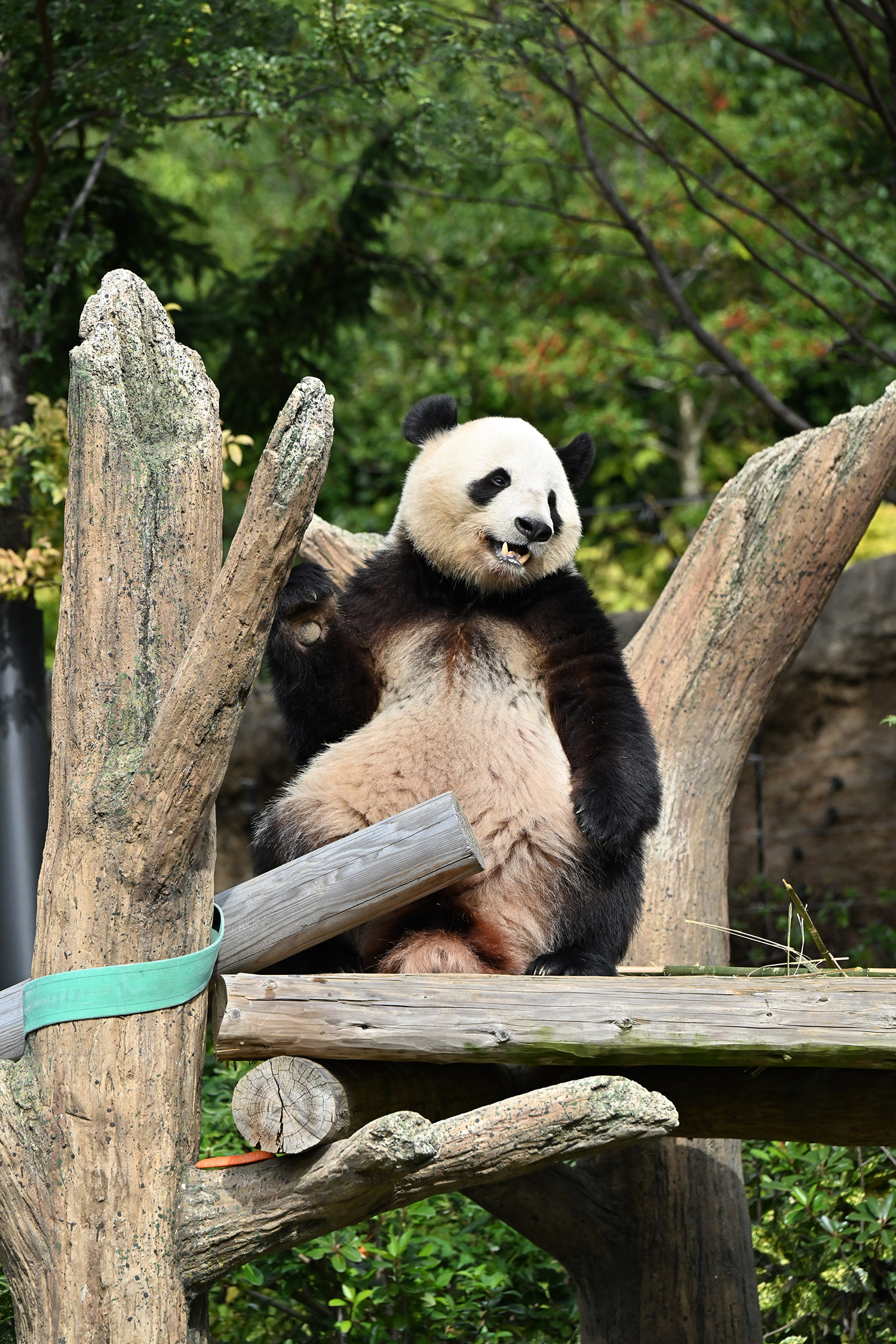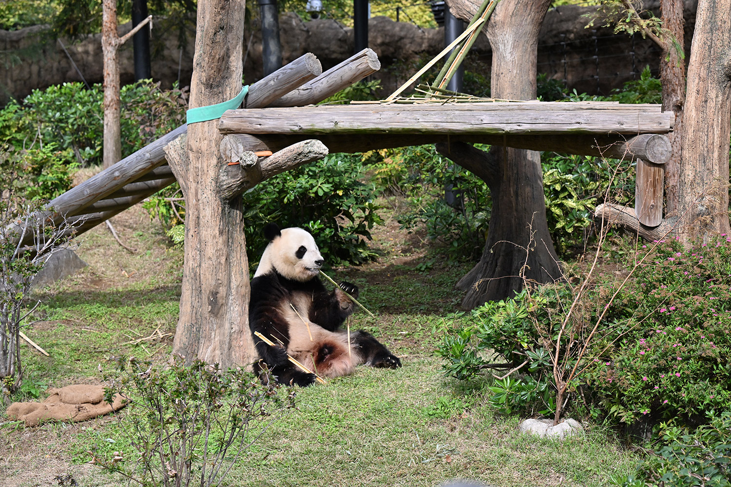 シャオ、背中がたるたる🤣💕!佐々木さん、サイズ詰めたほうがいいかも?!…こんなにたるたるするようになったんですねえ😊💕櫓の梯子で足をぷらぷらさせながら食べてるの、カワヨ💓…この頃めっきり竹職人で、かなり選ぶ目👀いや鼻👃が厳しくなってきましたよね。なにを選り分けてるのか、少しでもわかってきたのかなあ…各国でずっと観察研究しててもわからないなんて。あんなにはっきり「これちがう。🖐ポイガラン」て即答するんだから、相当明確な差異がありそうなのに。