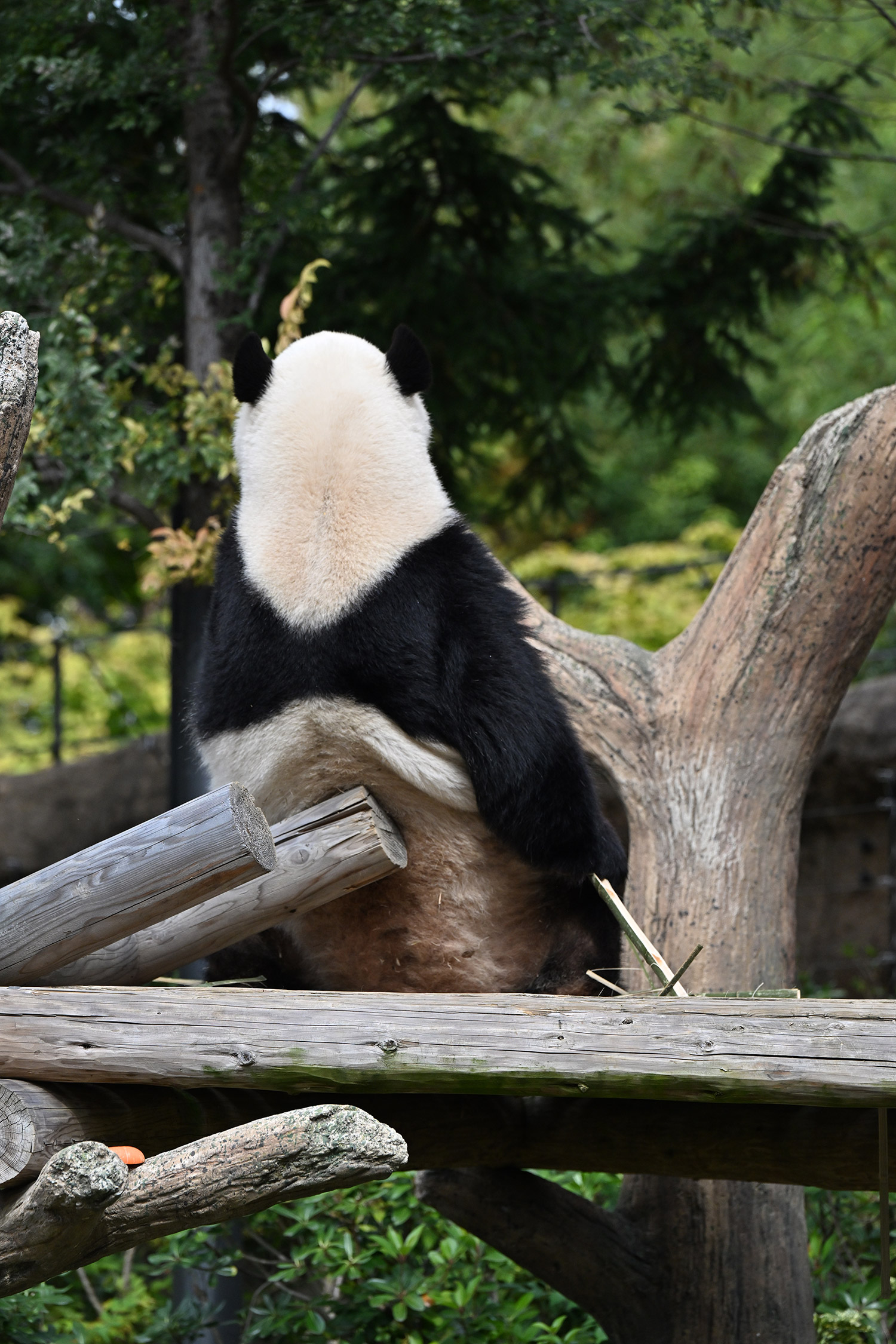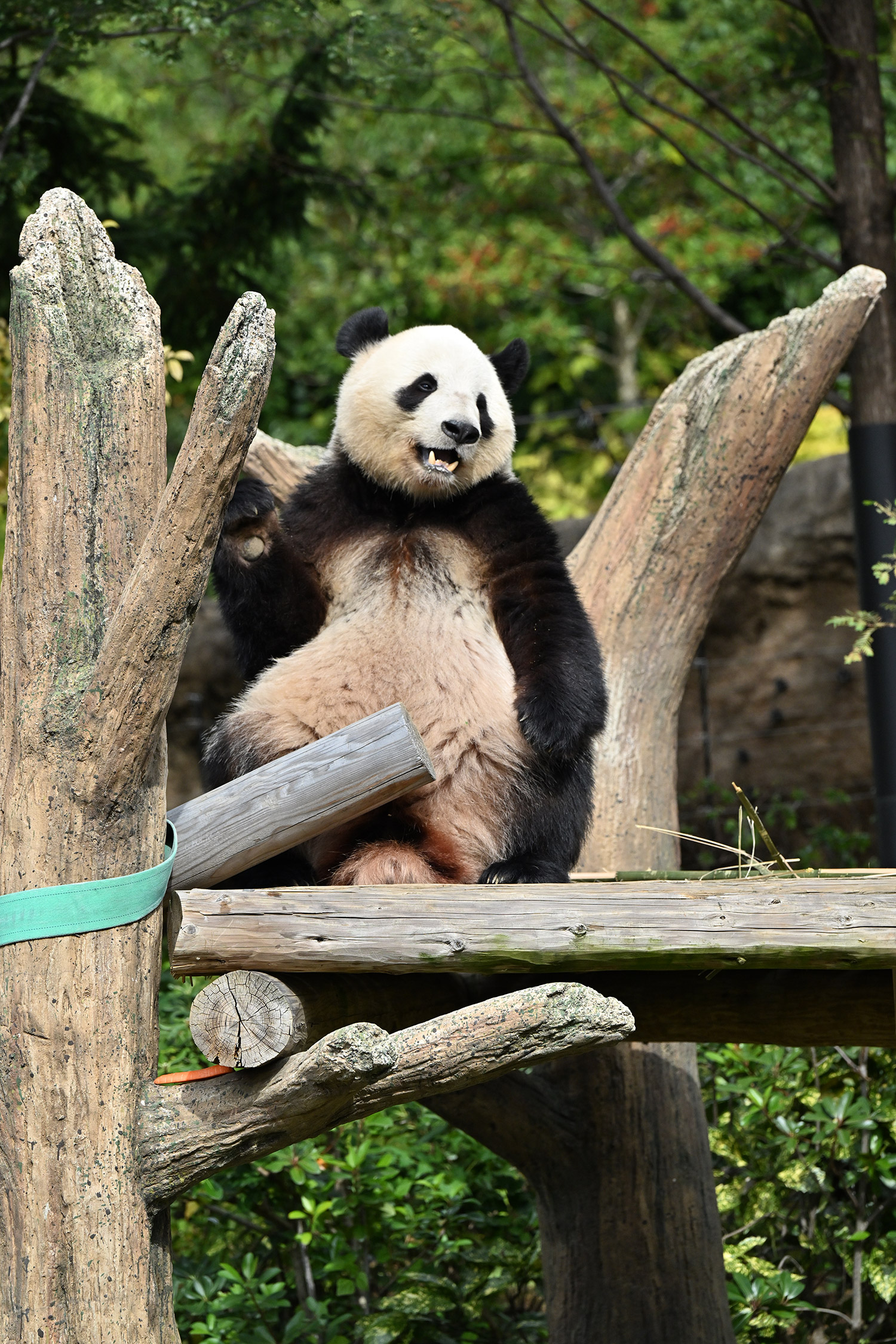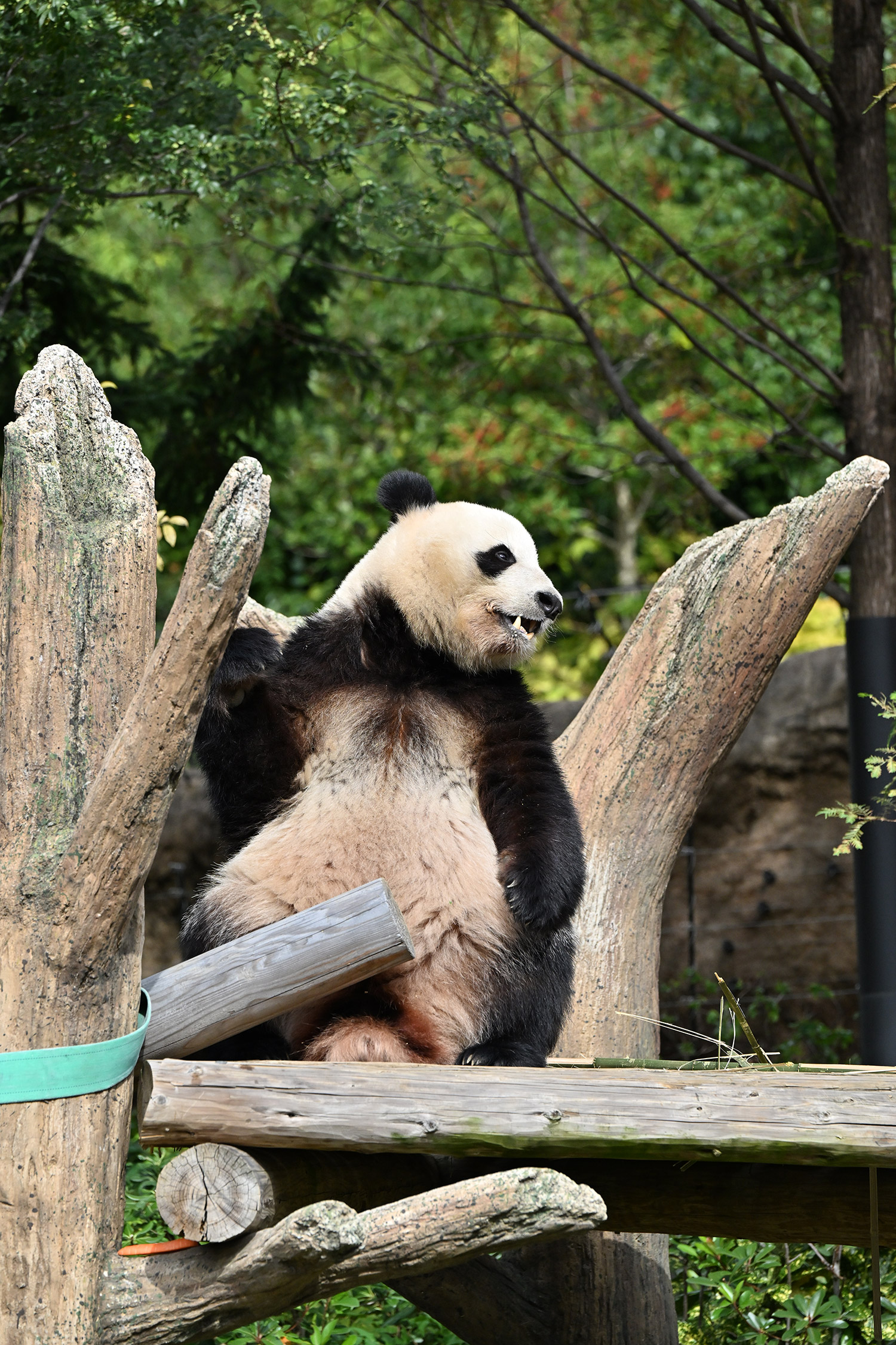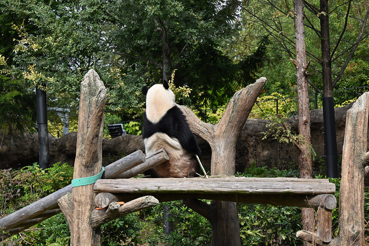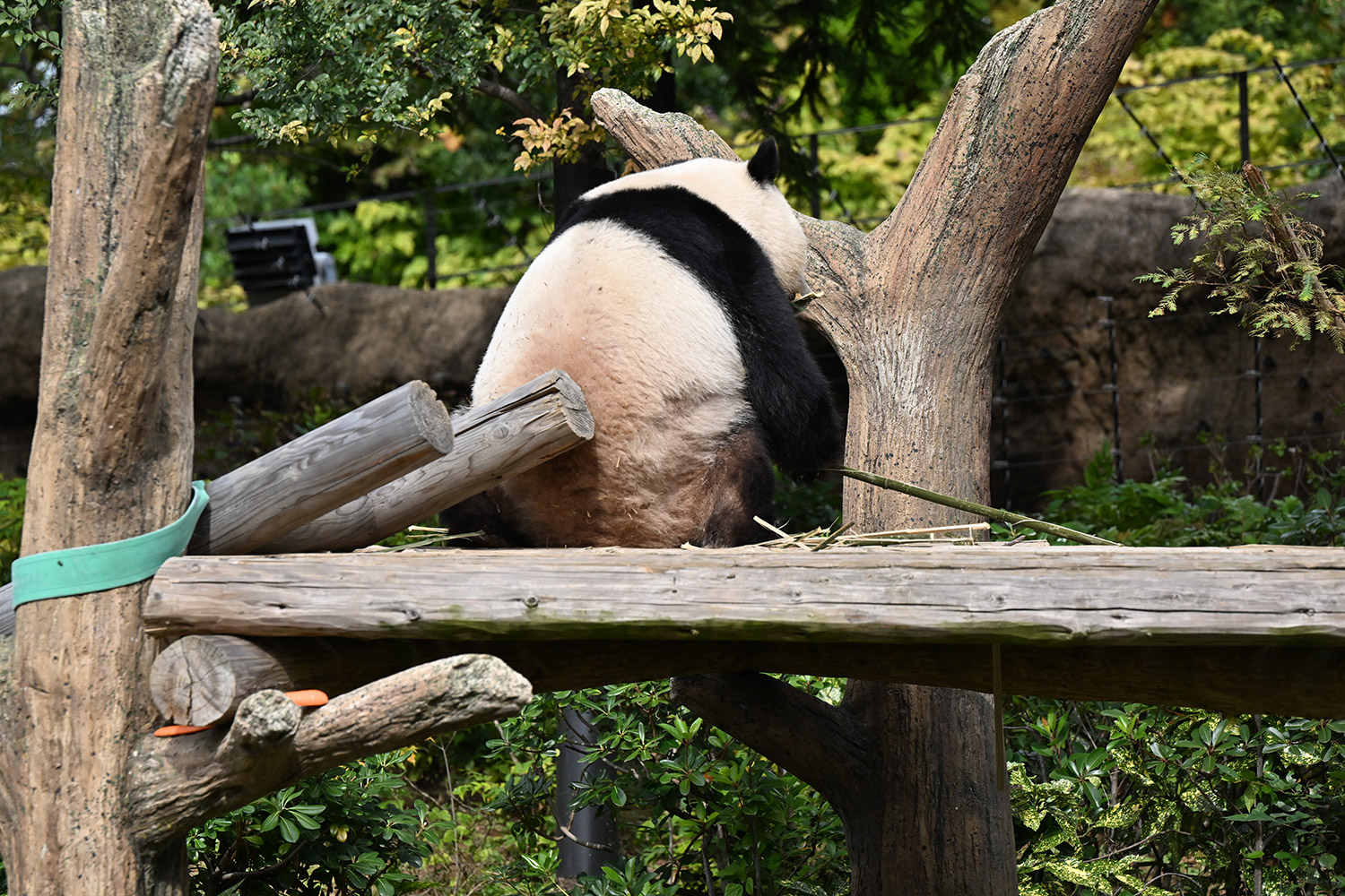 シャオ、背中がたるたる🤣💕!佐々木さん、サイズ詰めたほうがいいかも?!…こんなにたるたるするようになったんですねえ😊💕櫓の梯子で足をぷらぷらさせながら食べてるの、カワヨ💓…この頃めっきり竹職人で、かなり選ぶ目👀いや鼻👃が厳しくなってきましたよね。なにを選り分けてるのか、少しでもわかってきたのかなあ…各国でずっと観察研究しててもわからないなんて。あんなにはっきり「これちがう。🖐ポイガラン」て即答するんだから、相当明確な差異がありそうなのに。