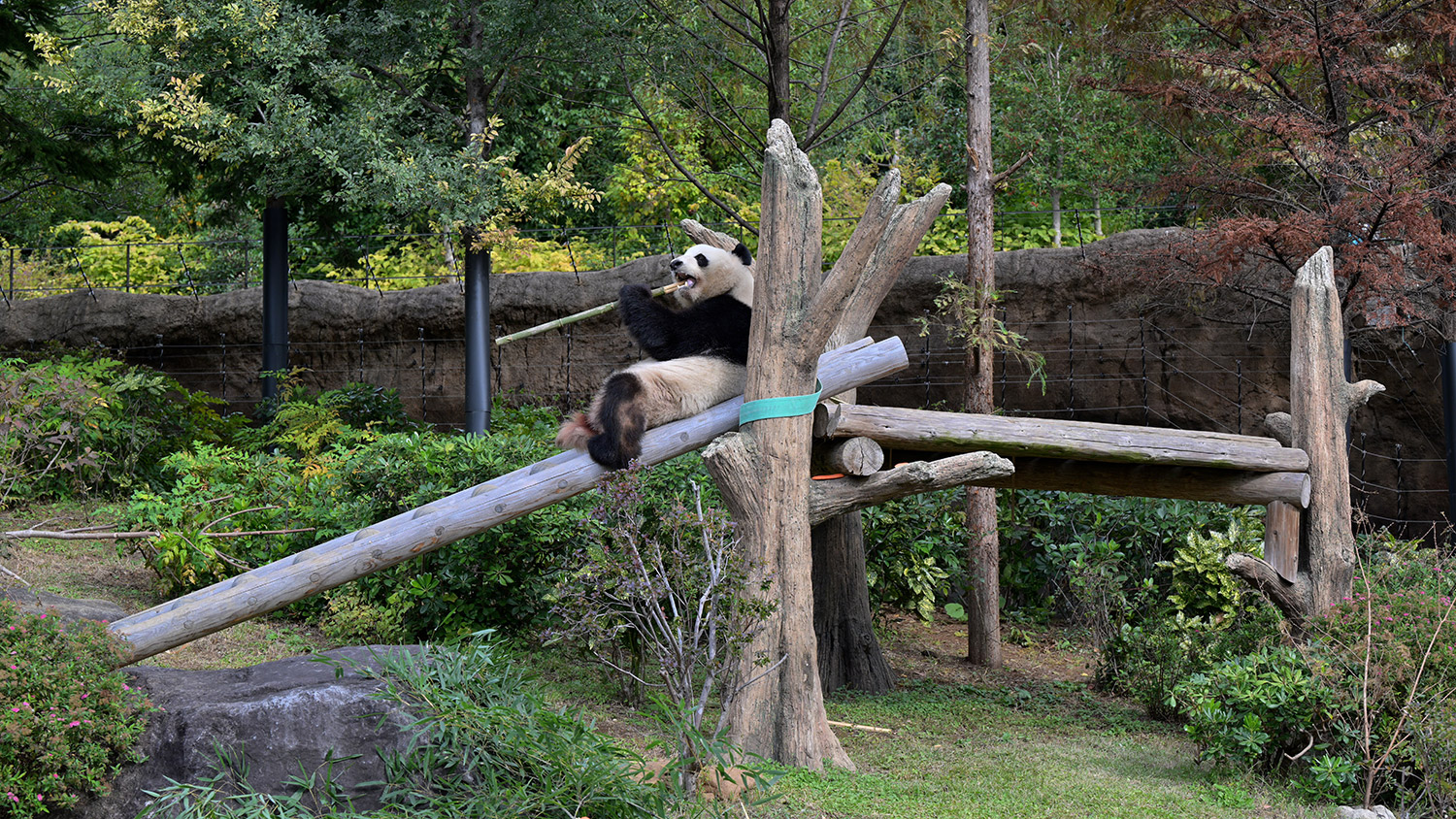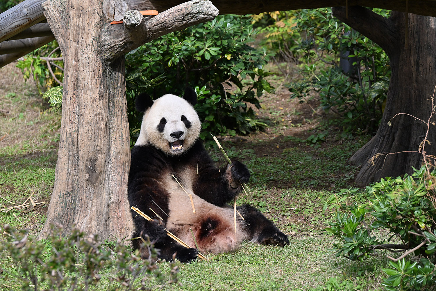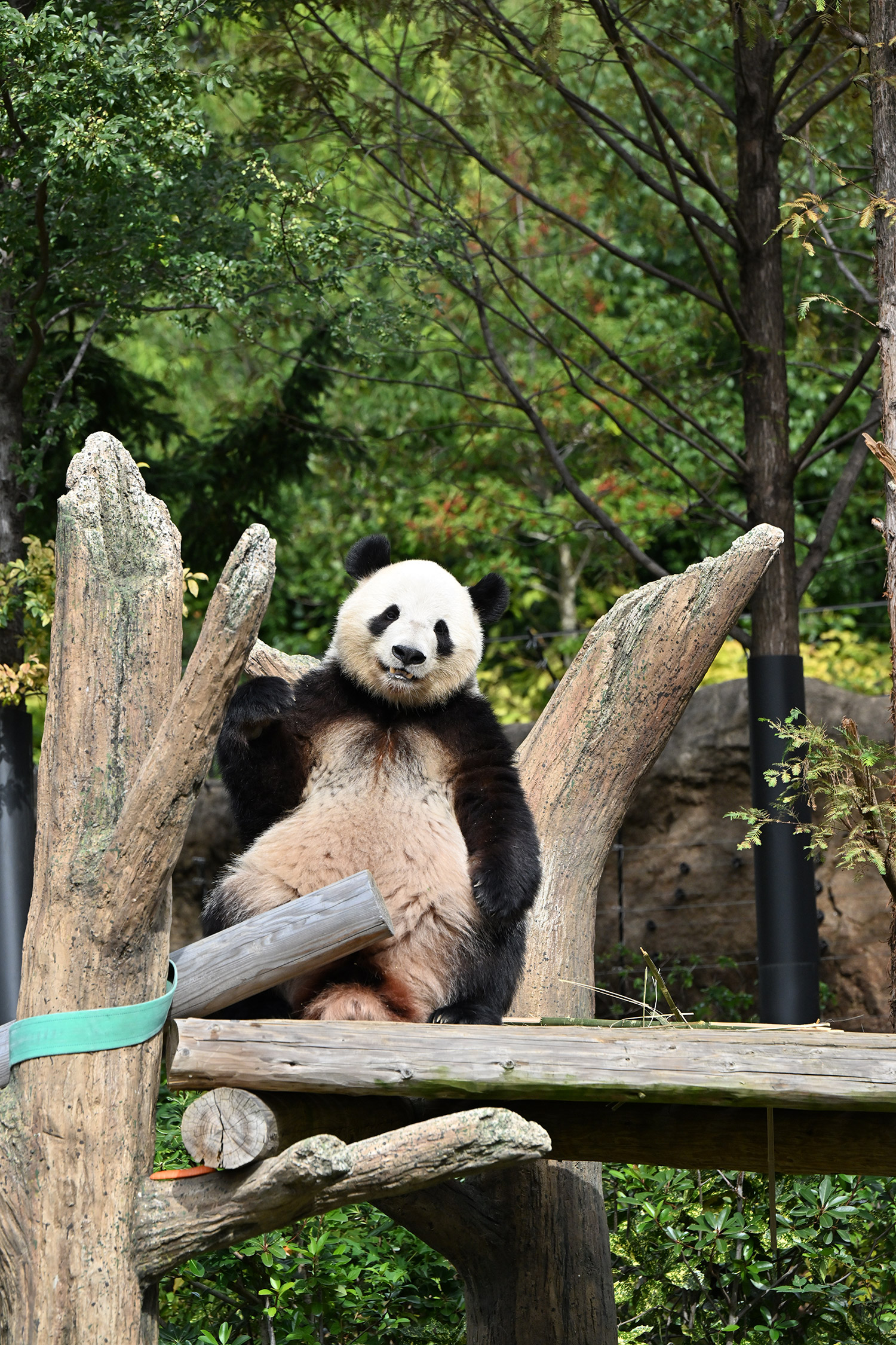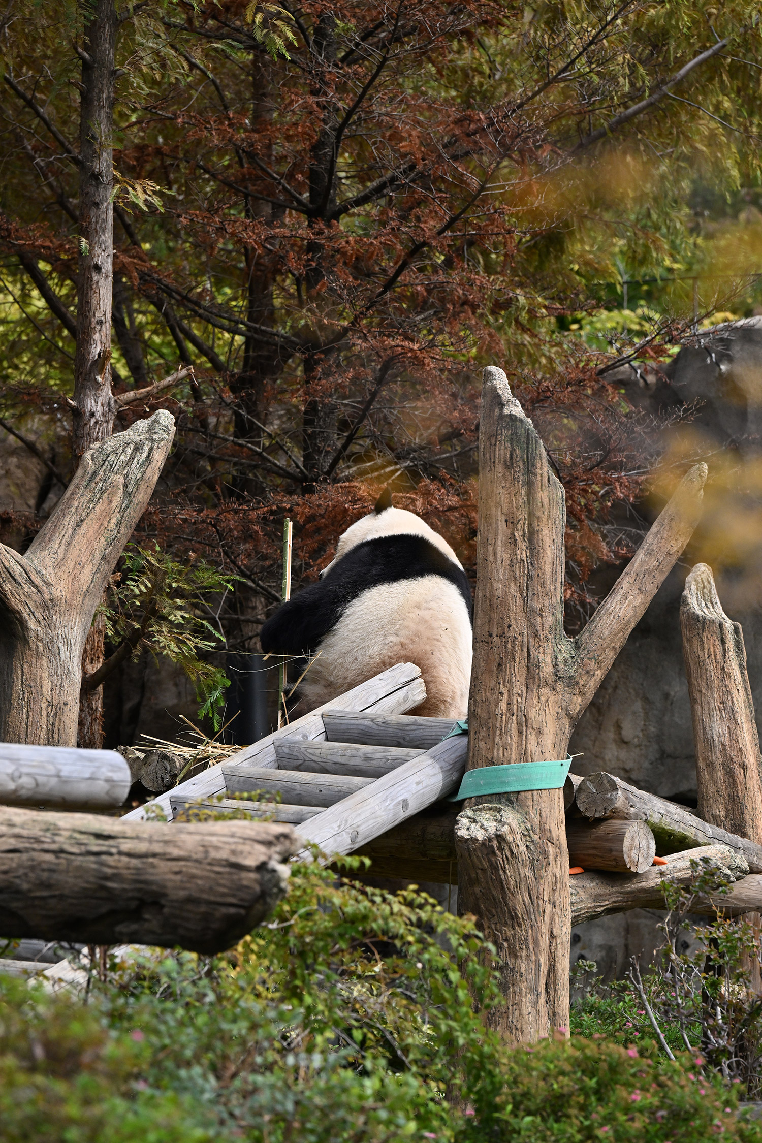シャオ、背中がたるたる🤣💕!佐々木さん、サイズ詰めたほうがいいかも?!…こんなにたるたるするようになったんですねえ😊💕櫓の梯子で足をぷらぷらさせながら食べてるの、カワヨ💓…この頃めっきり竹職人で、かなり選ぶ目👀いや鼻👃が厳しくなってきましたよね。なにを選り分けてるのか、少しでもわかってきたのかなあ…各国でずっと観察研究しててもわからないなんて。あんなにはっきり「これちがう。🖐ポイガラン」て即答するんだから、相当明確な差異がありそうなのに。