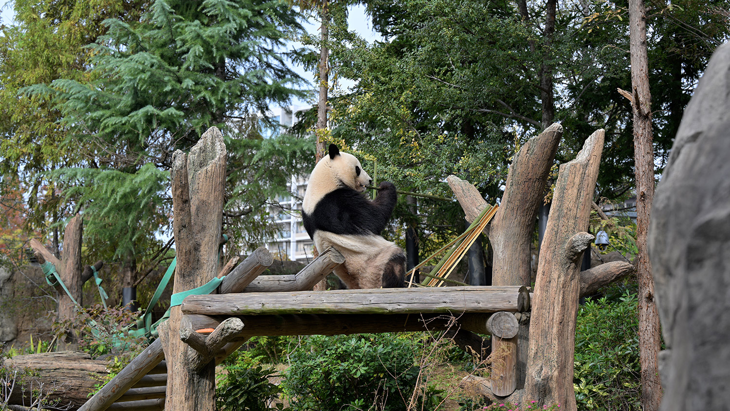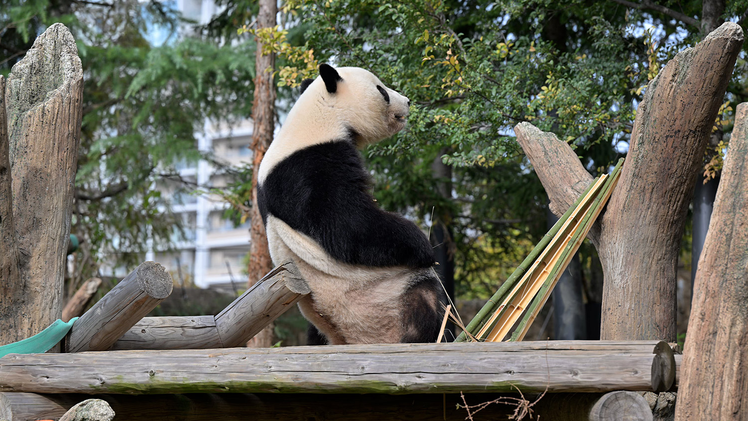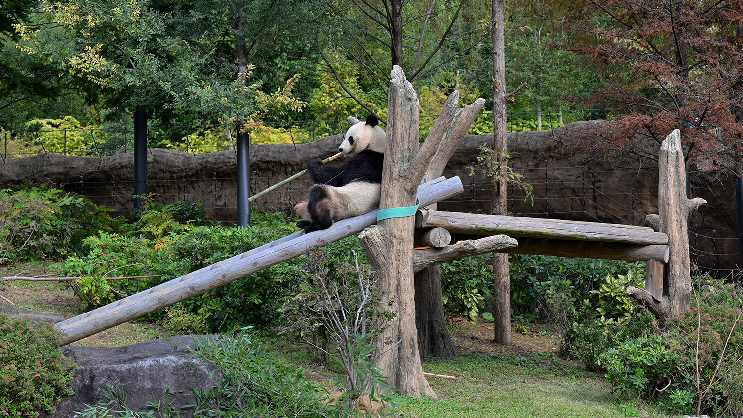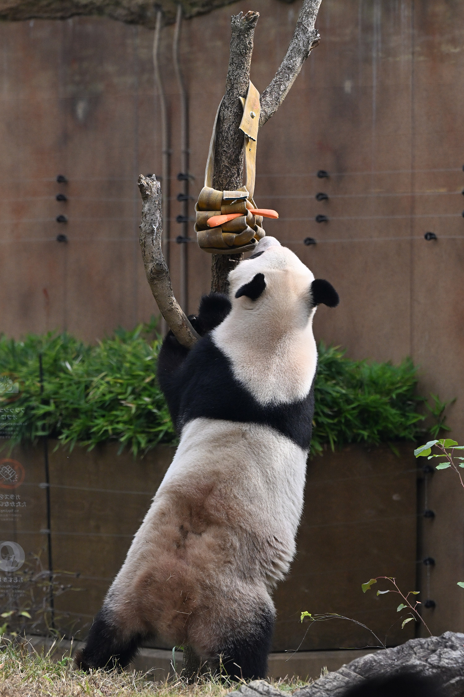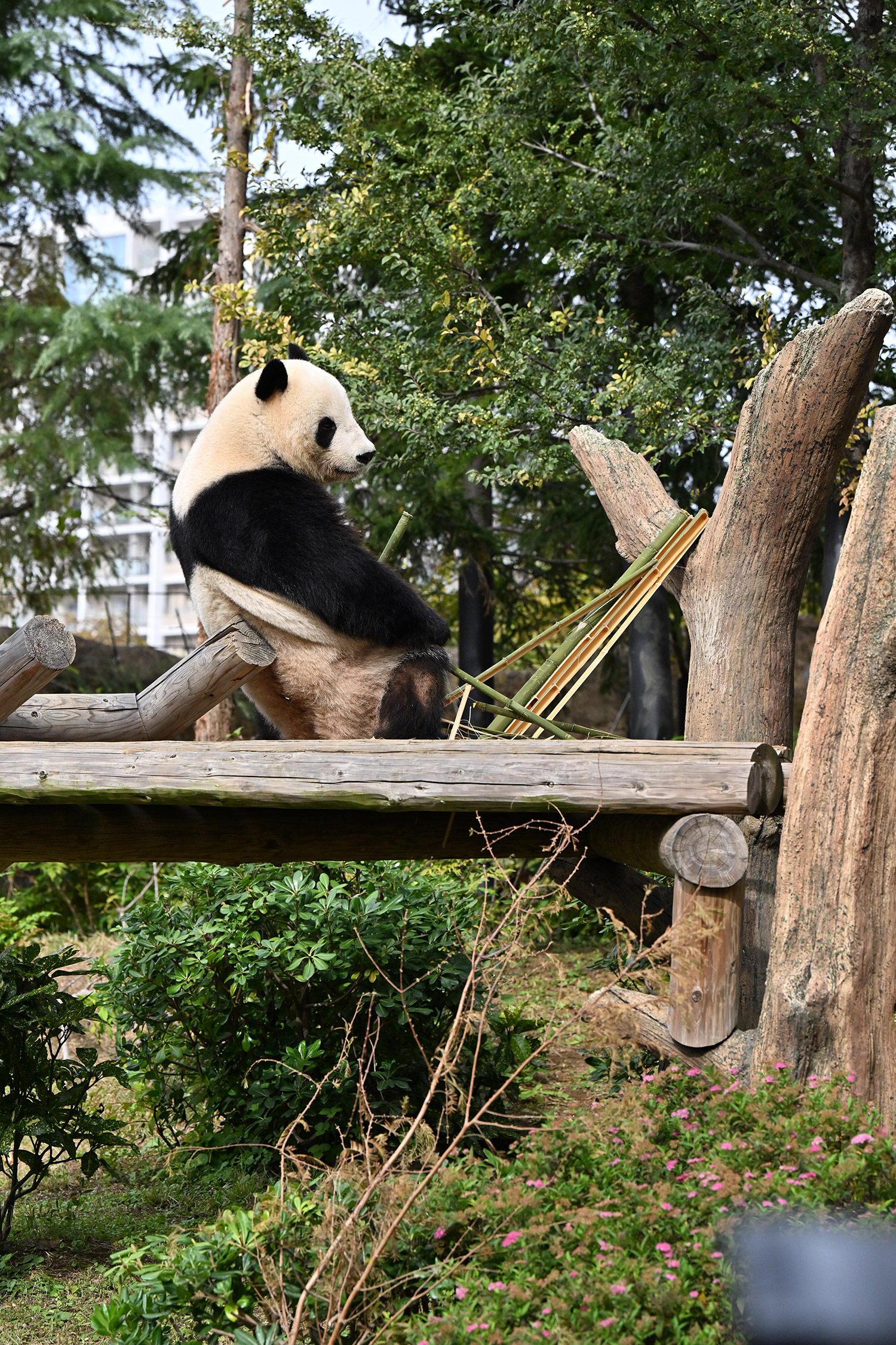シャオ、背中がたるたる🤣💕!佐々木さん、サイズ詰めたほうがいいかも?!…こんなにたるたるするようになったんですねえ😊💕櫓の梯子で足をぷらぷらさせながら食べてるの、カワヨ💓…この頃めっきり竹職人で、かなり選ぶ目👀いや鼻👃が厳しくなってきましたよね。なにを選り分けてるのか、少しでもわかってきたのかなあ…各国でずっと観察研究しててもわからないなんて。あんなにはっきり「これちがう。🖐ポイガラン」て即答するんだから、相当明確な差異がありそうなのに。