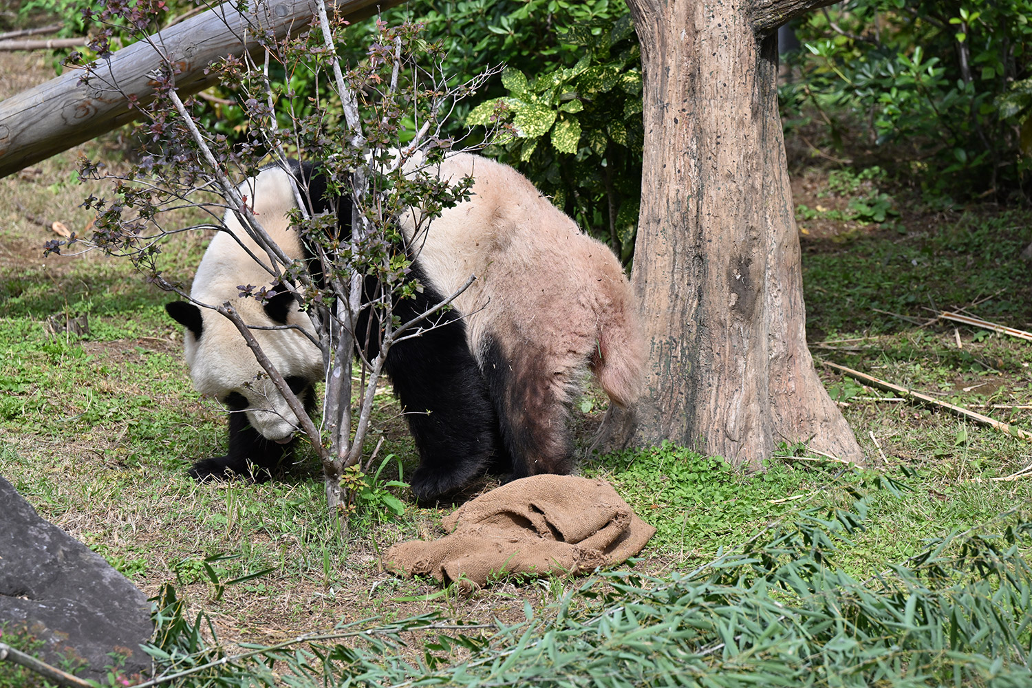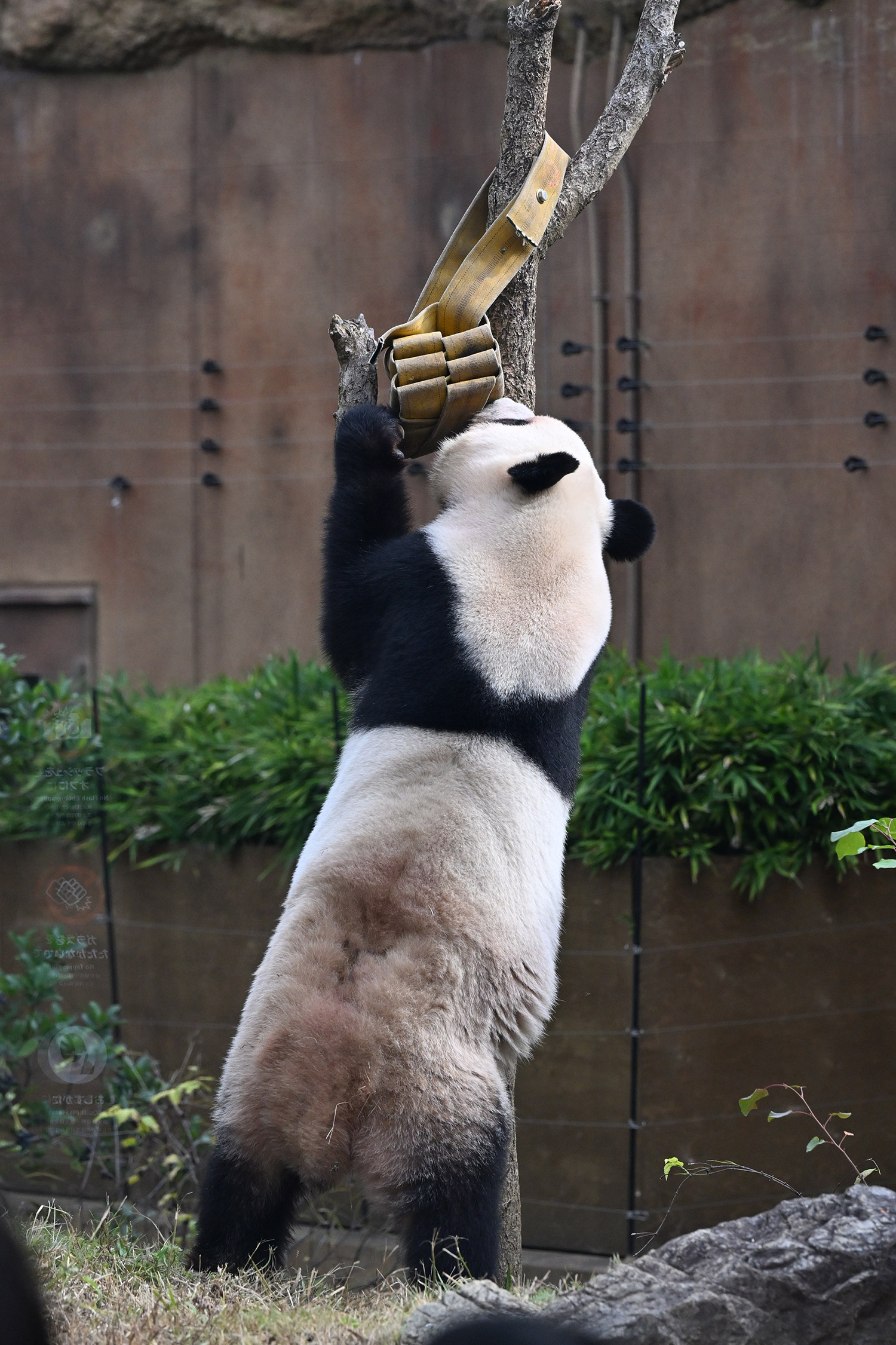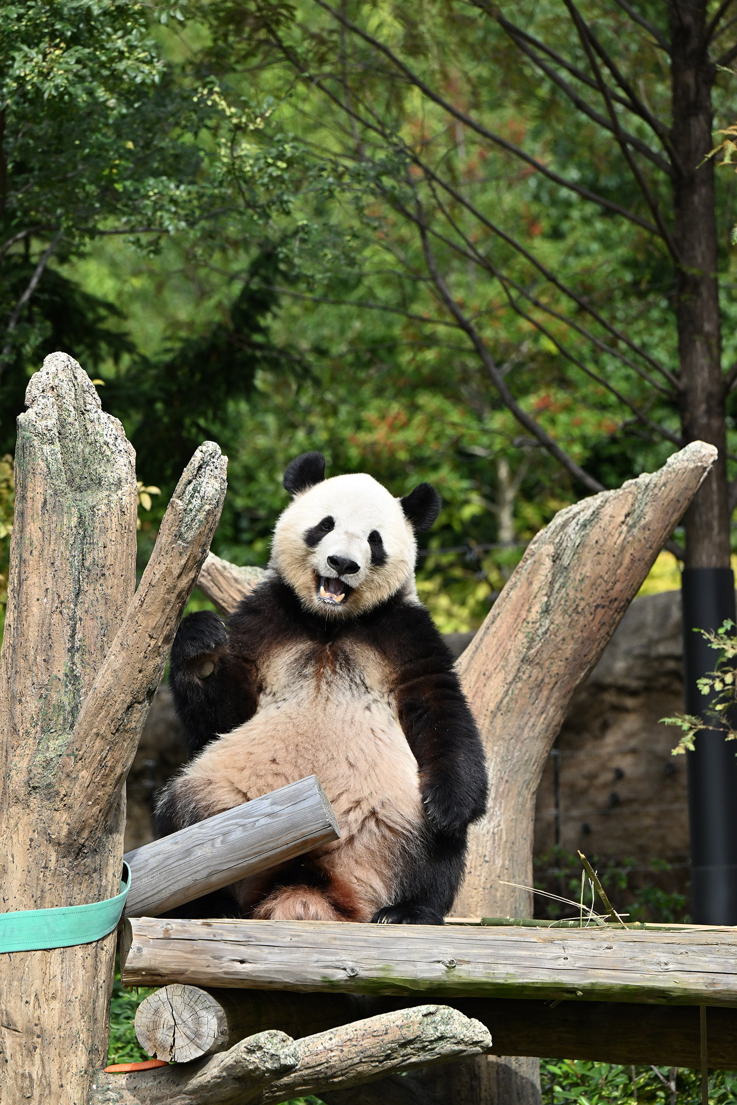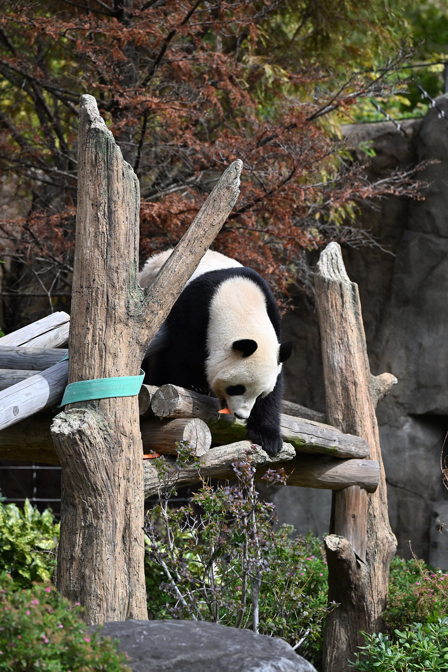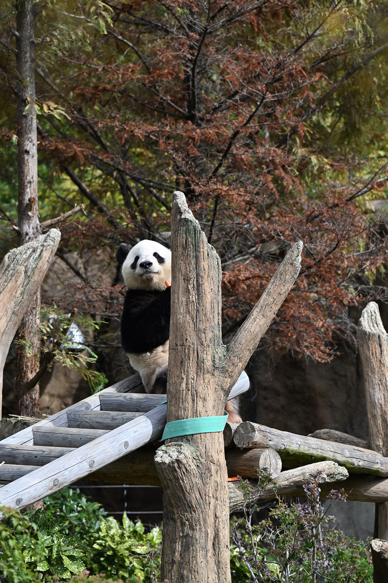 シャオ、背中がたるたる🤣💕!佐々木さん、サイズ詰めたほうがいいかも?!…こんなにたるたるするようになったんですねえ😊💕櫓の梯子で足をぷらぷらさせながら食べてるの、カワヨ💓…この頃めっきり竹職人で、かなり選ぶ目👀いや鼻👃が厳しくなってきましたよね。なにを選り分けてるのか、少しでもわかってきたのかなあ…各国でずっと観察研究しててもわからないなんて。あんなにはっきり「これちがう。🖐ポイガラン」て即答するんだから、相当明確な差異がありそうなのに。