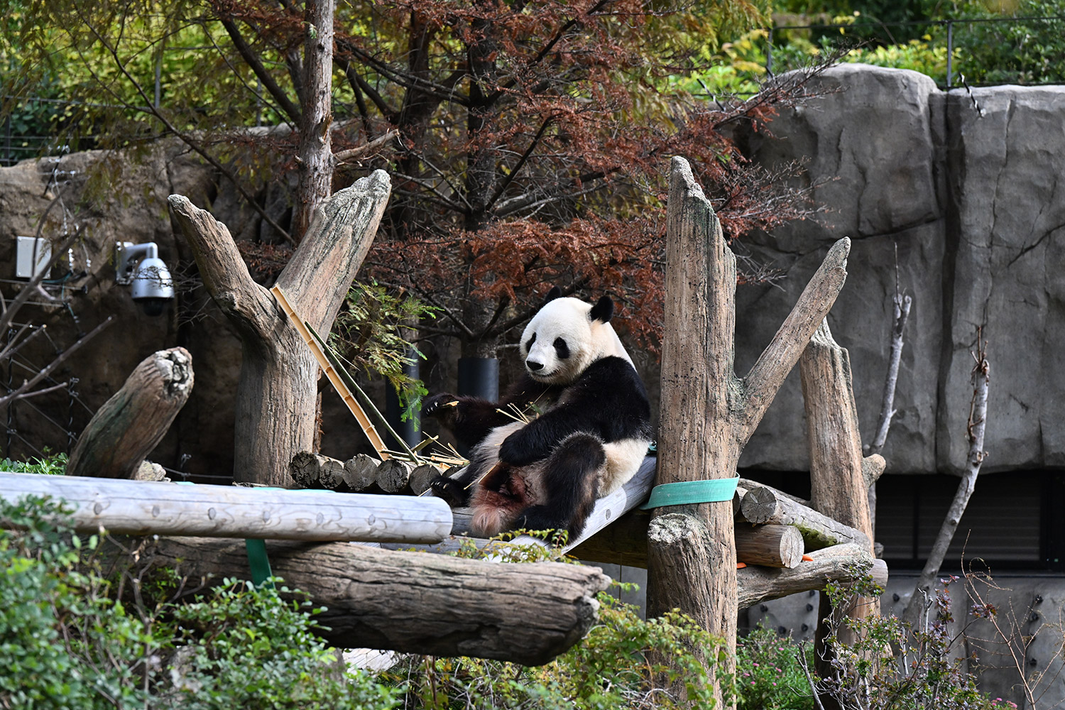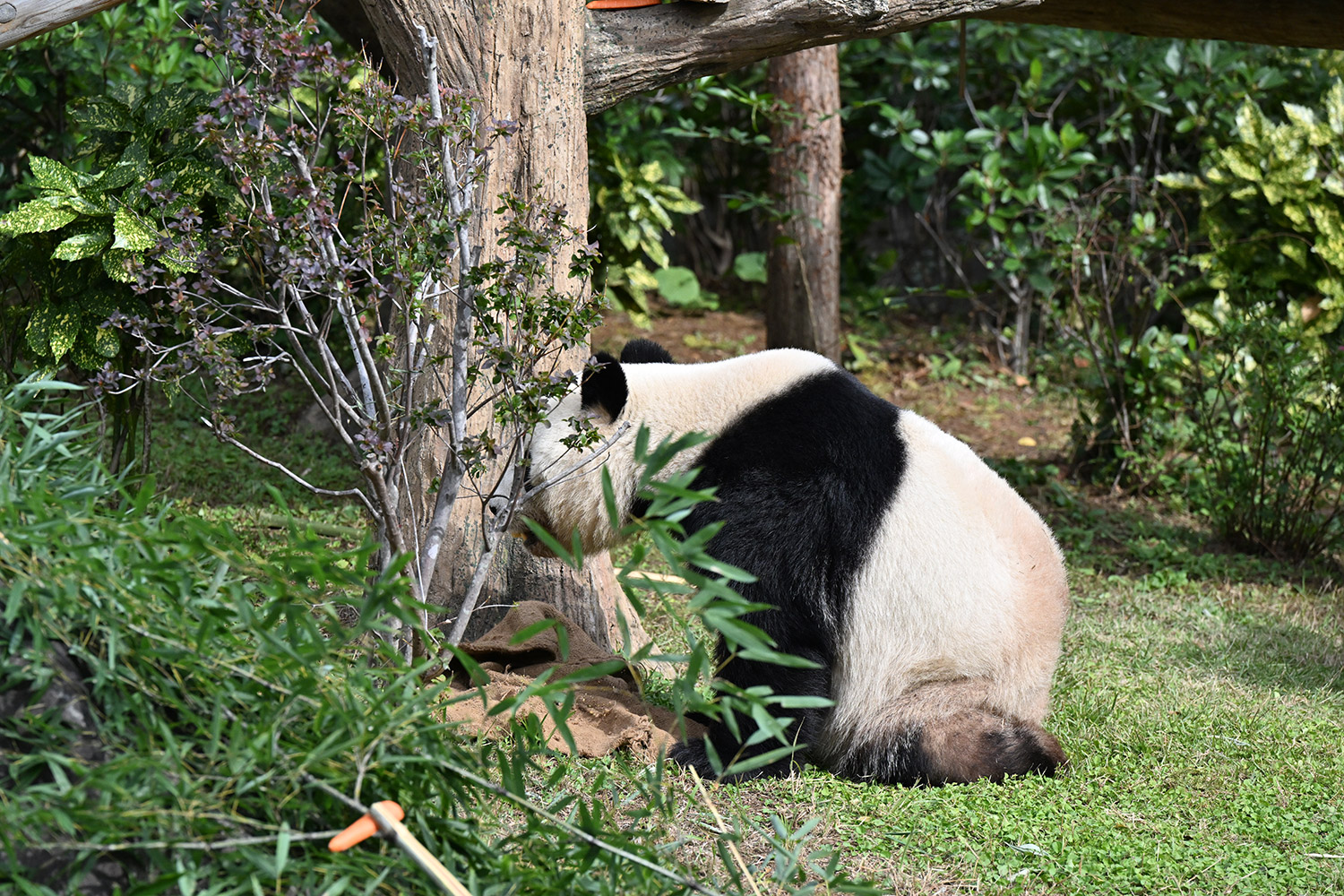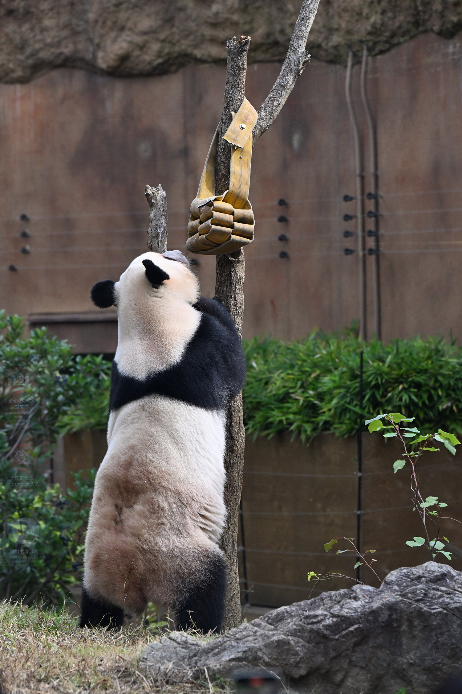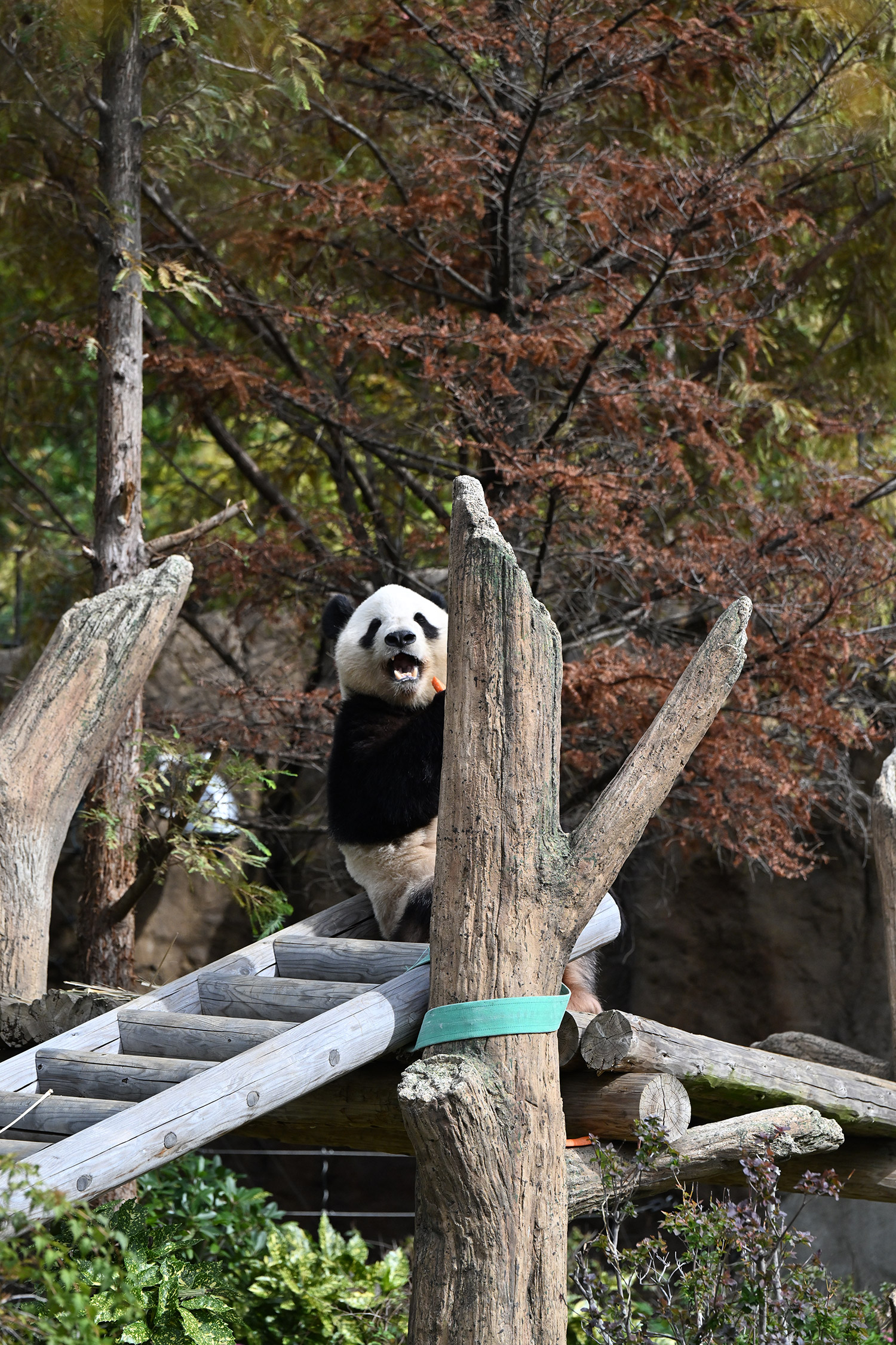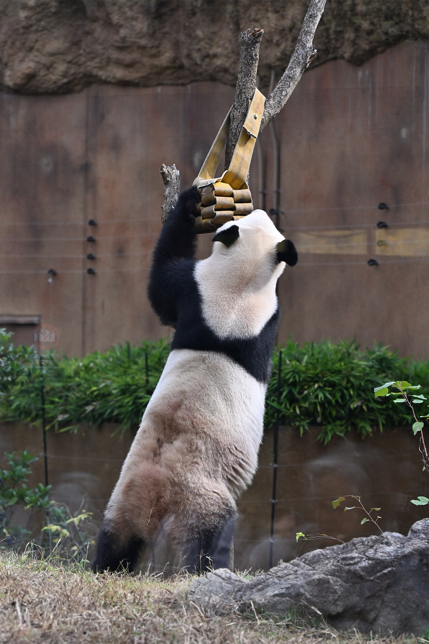 シャオ、背中がたるたる🤣💕!佐々木さん、サイズ詰めたほうがいいかも?!…こんなにたるたるするようになったんですねえ😊💕櫓の梯子で足をぷらぷらさせながら食べてるの、カワヨ💓…この頃めっきり竹職人で、かなり選ぶ目👀いや鼻👃が厳しくなってきましたよね。なにを選り分けてるのか、少しでもわかってきたのかなあ…各国でずっと観察研究しててもわからないなんて。あんなにはっきり「これちがう。🖐ポイガラン」て即答するんだから、相当明確な差異がありそうなのに。