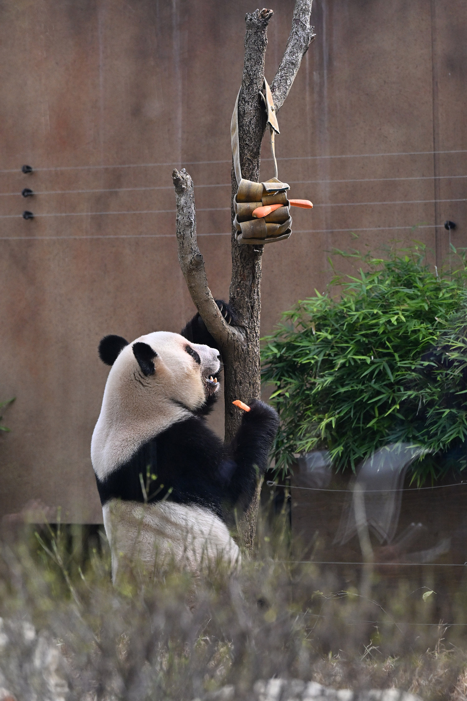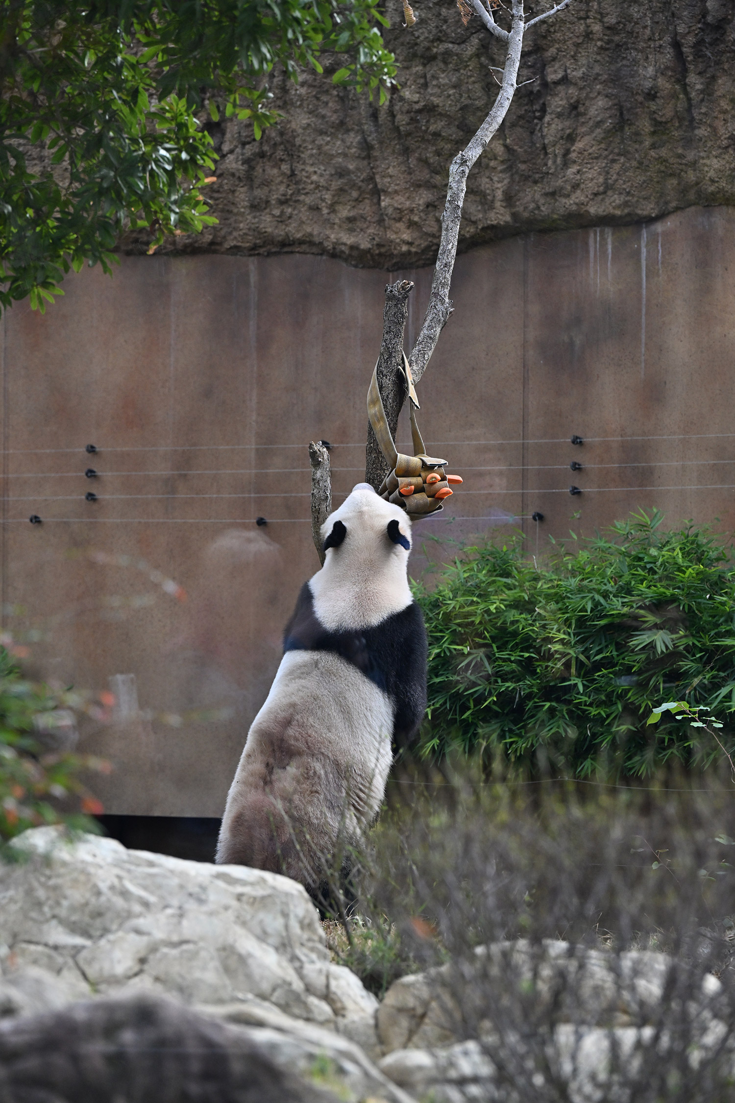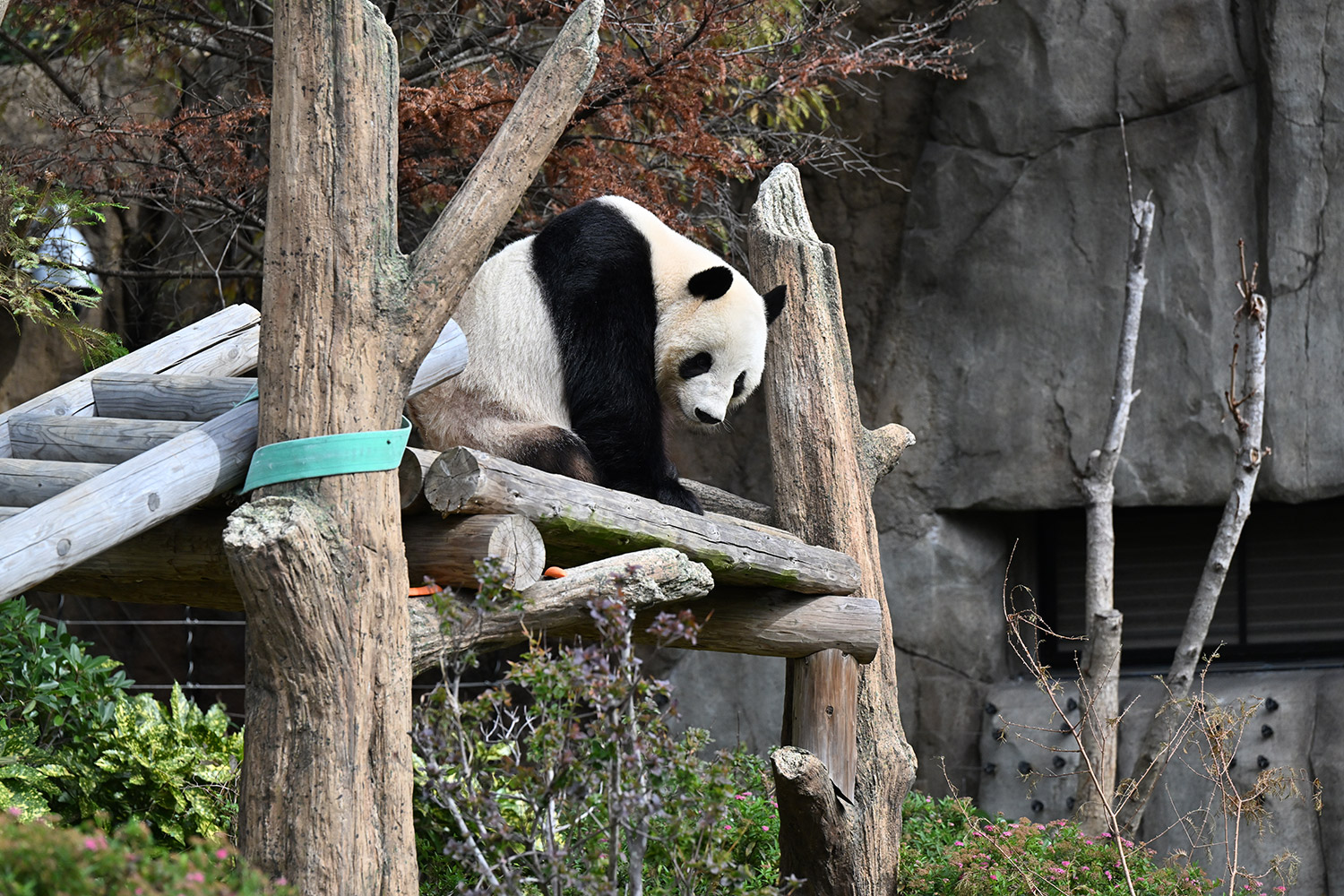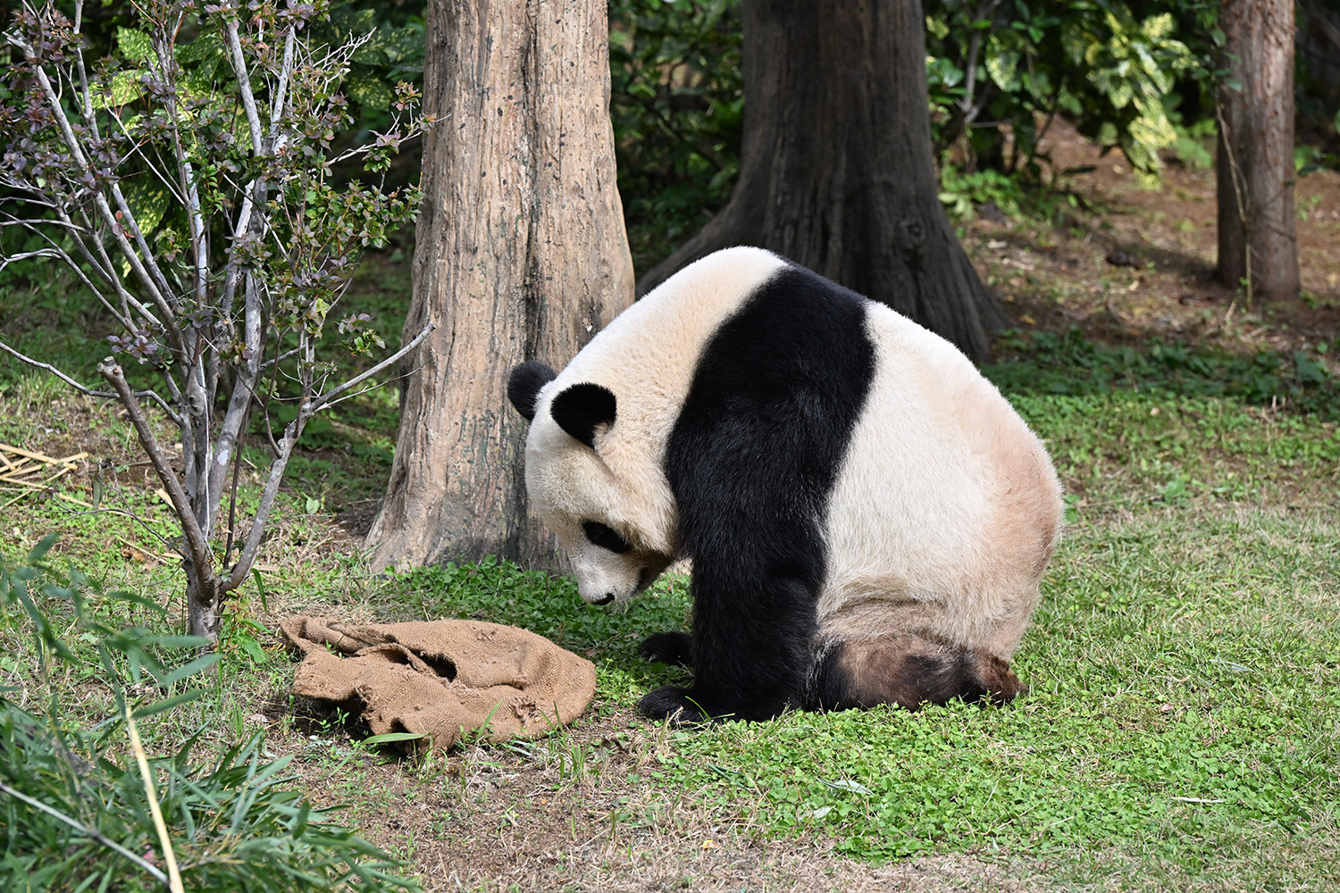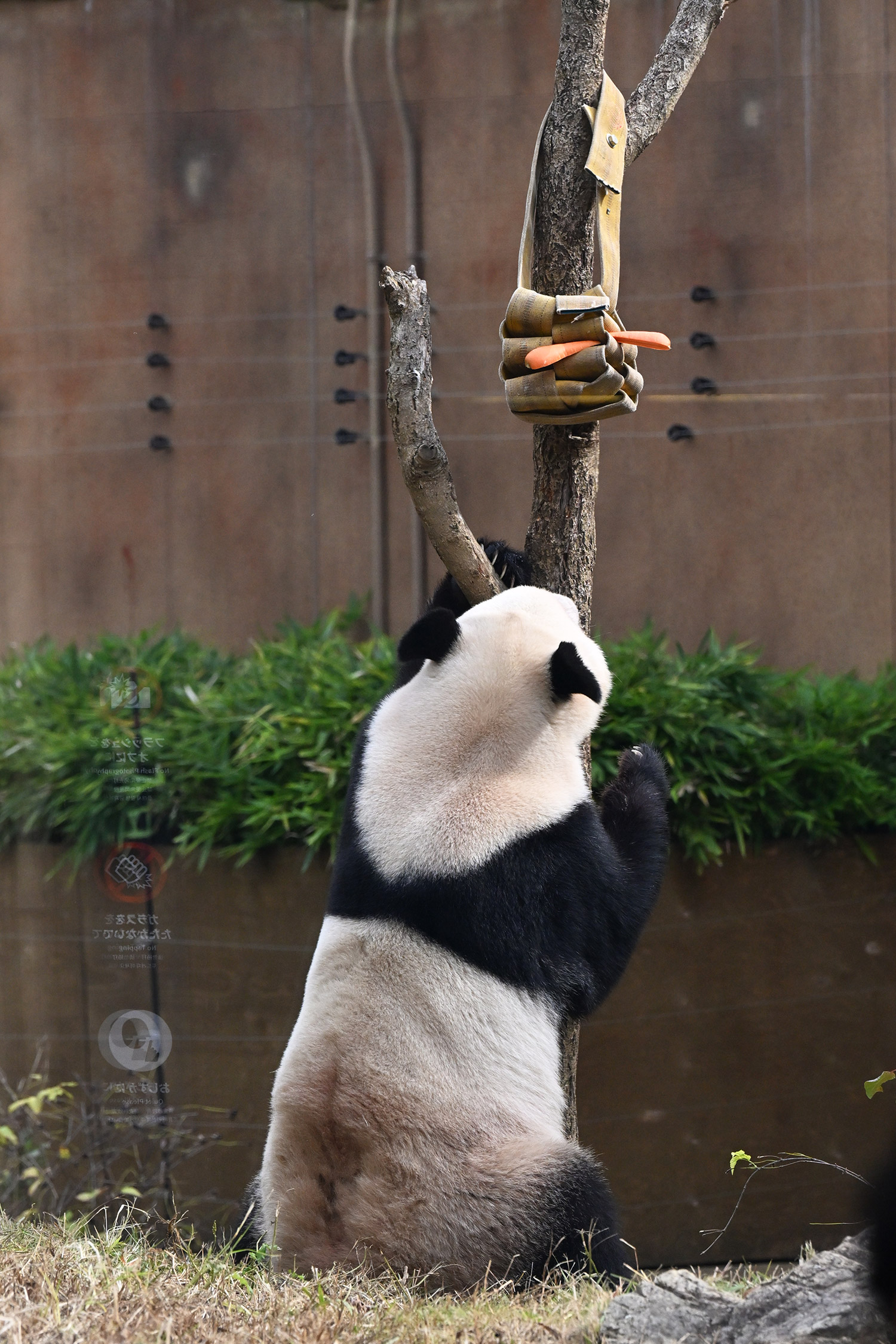 シャオ、背中がたるたる🤣💕!佐々木さん、サイズ詰めたほうがいいかも?!…こんなにたるたるするようになったんですねえ😊💕櫓の梯子で足をぷらぷらさせながら食べてるの、カワヨ💓…この頃めっきり竹職人で、かなり選ぶ目👀いや鼻👃が厳しくなってきましたよね。なにを選り分けてるのか、少しでもわかってきたのかなあ…各国でずっと観察研究しててもわからないなんて。あんなにはっきり「これちがう。🖐ポイガラン」て即答するんだから、相当明確な差異がありそうなのに。