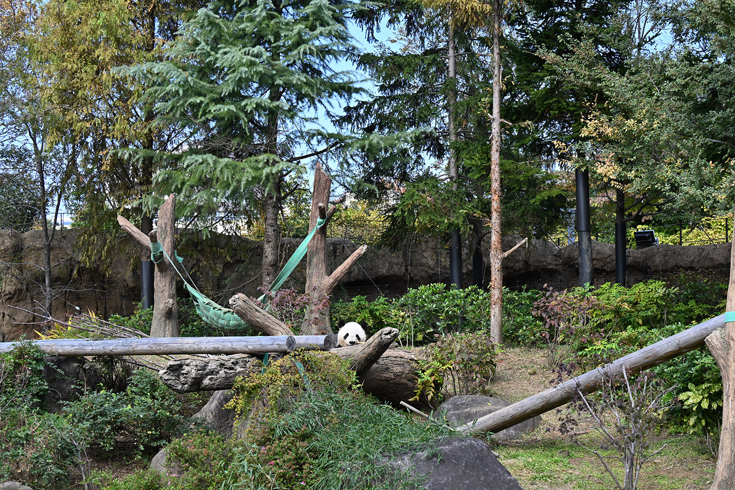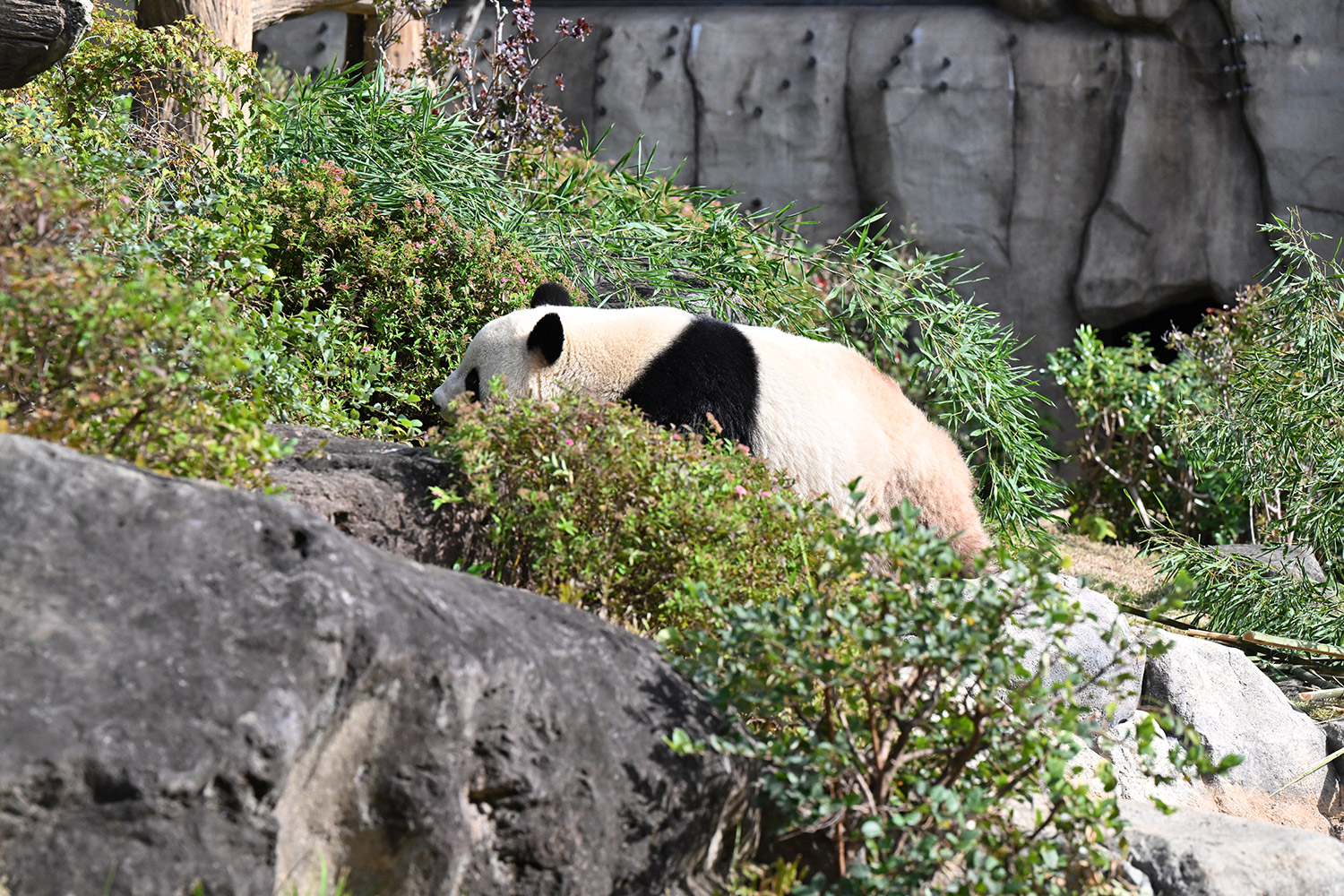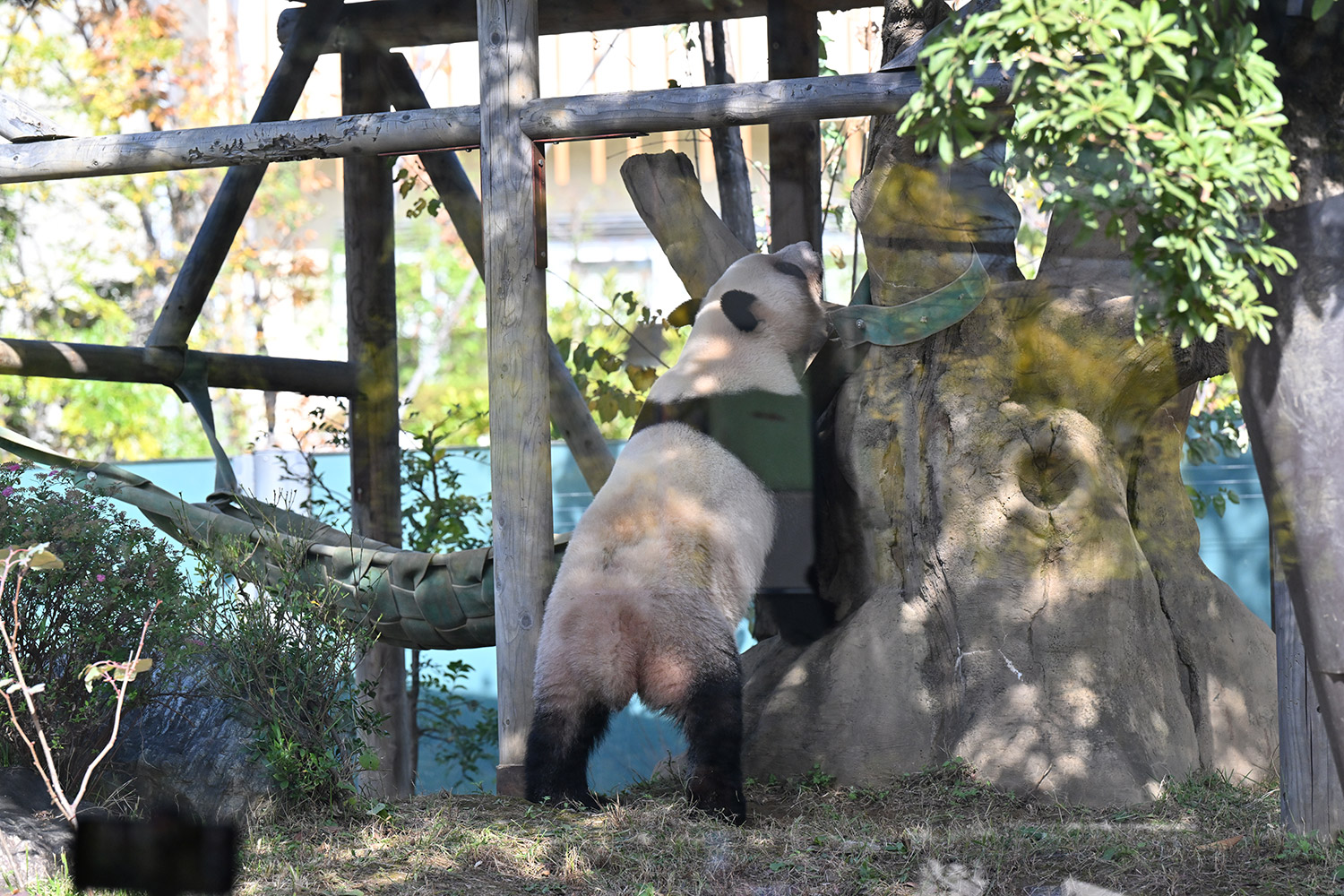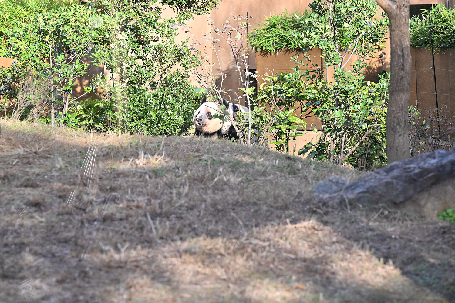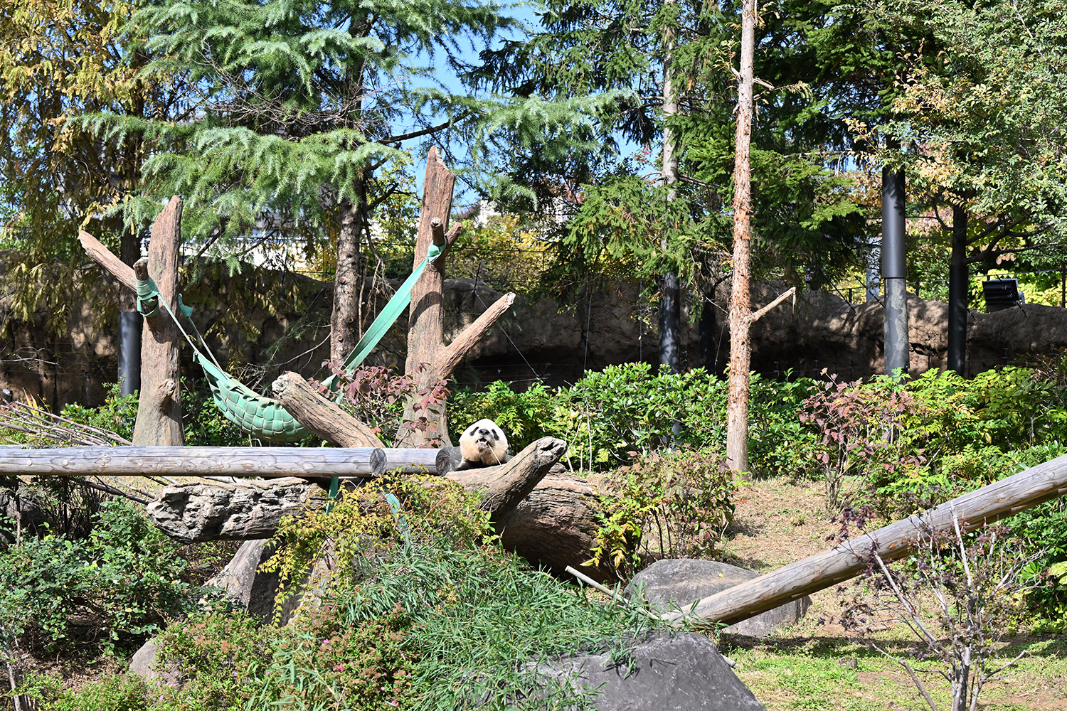 木の上のシャオシャオ、おしりに小さなバッテン×があり、2度見しました(笑)石の上で休憩、ぽかぽかして気持ち良さそう。とても可愛い寝顔に私も笑顔になります。