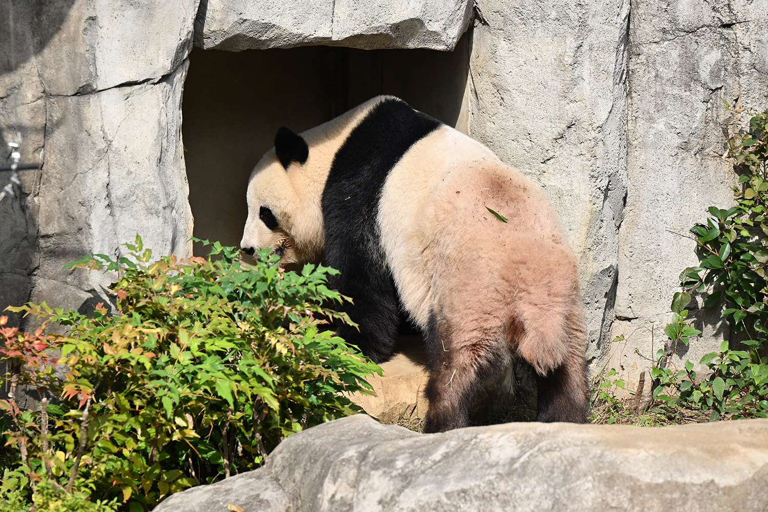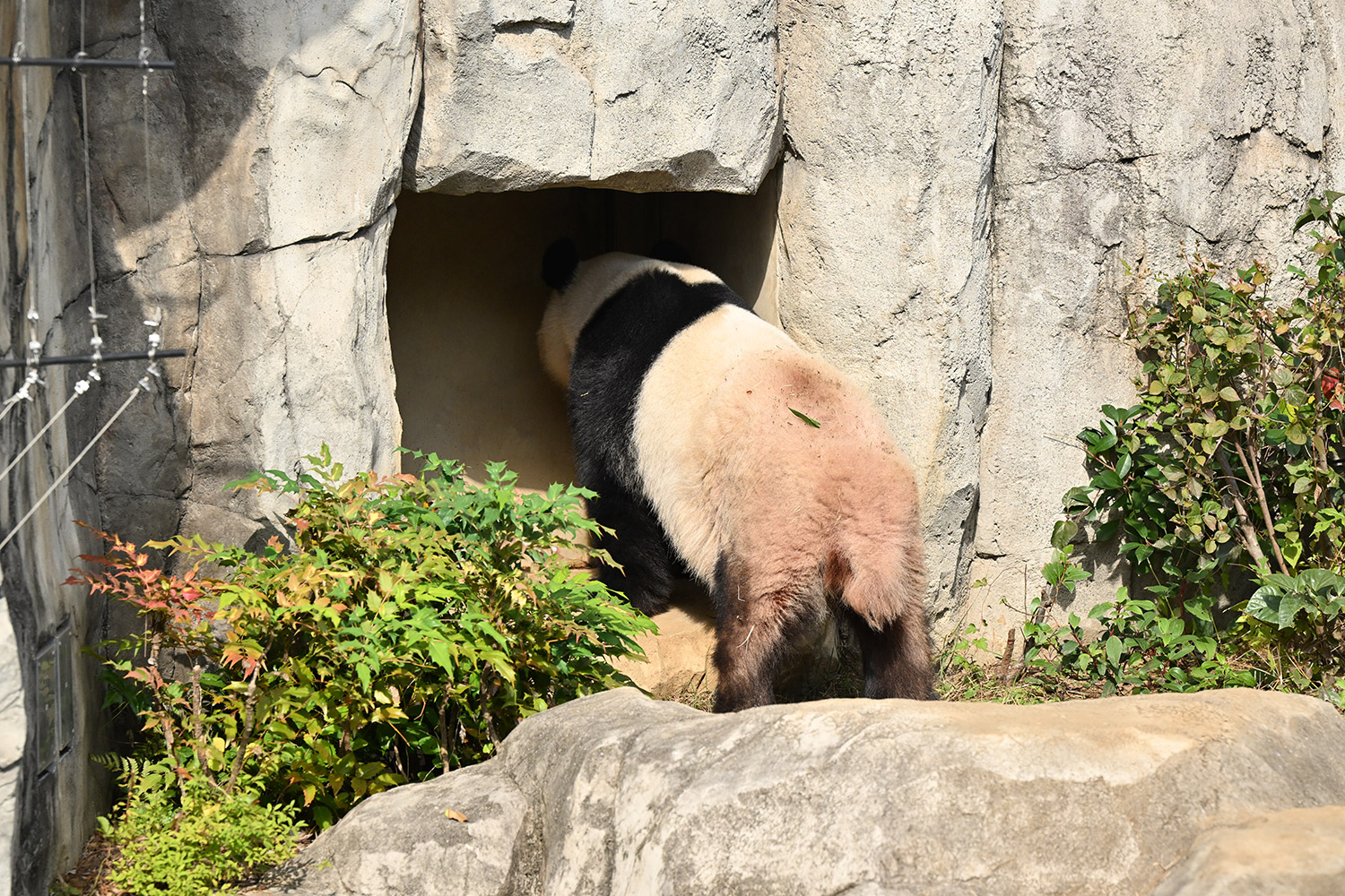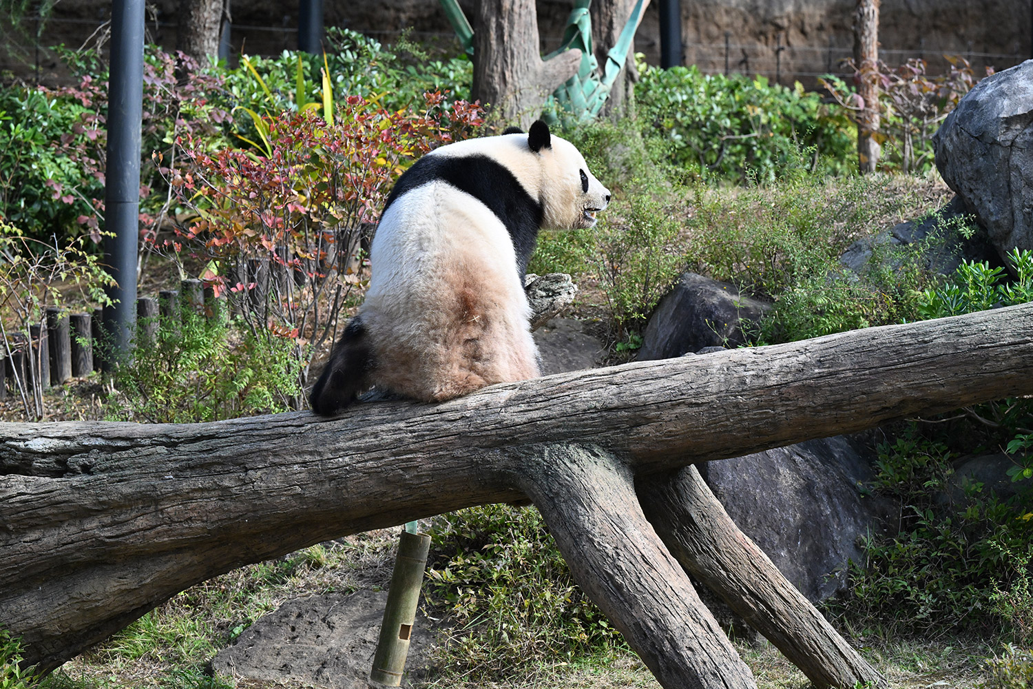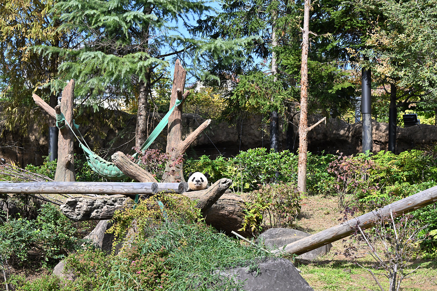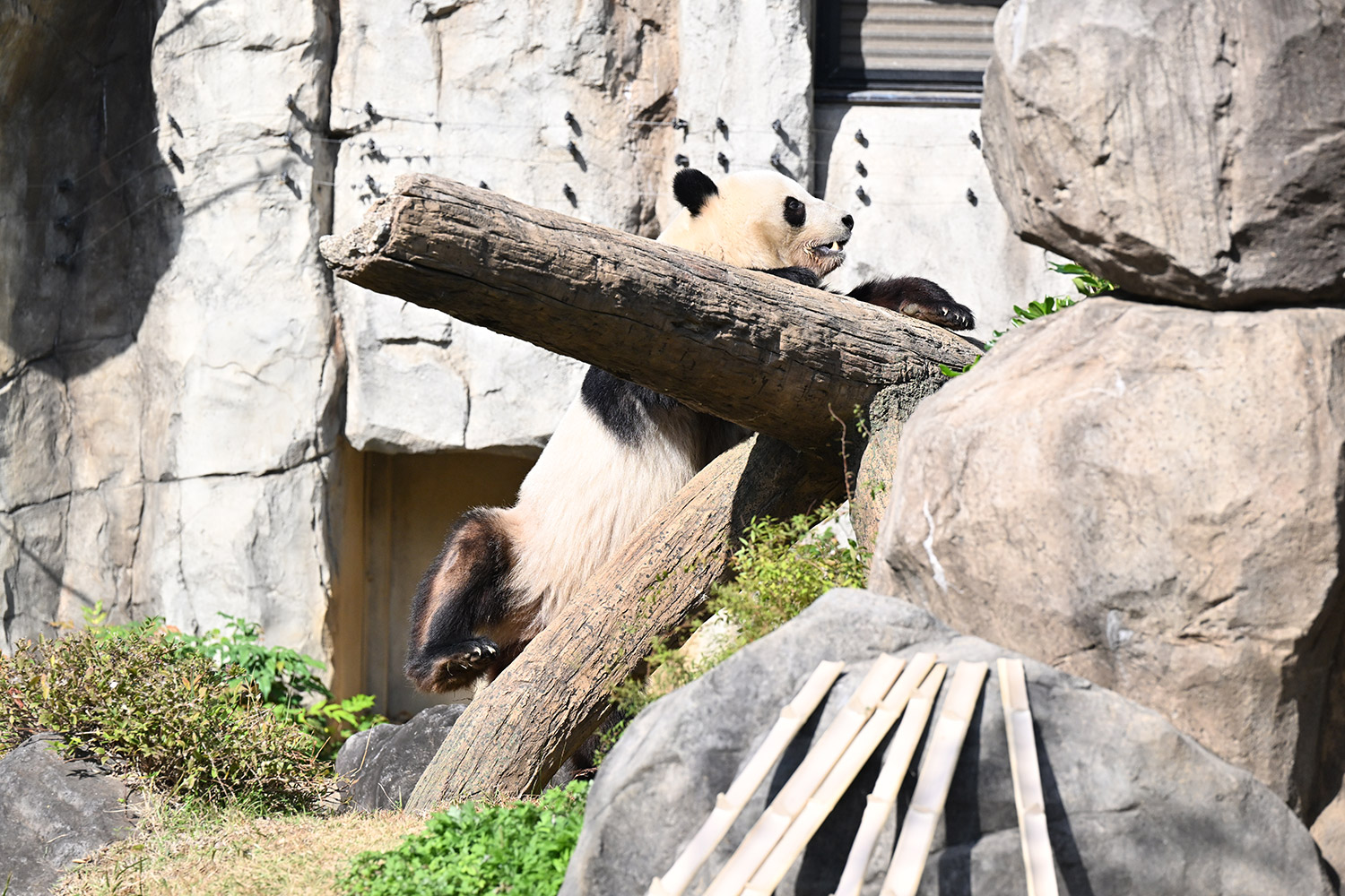 木の上のシャオシャオ、おしりに小さなバッテン×があり、2度見しました(笑)石の上で休憩、ぽかぽかして気持ち良さそう。とても可愛い寝顔に私も笑顔になります。