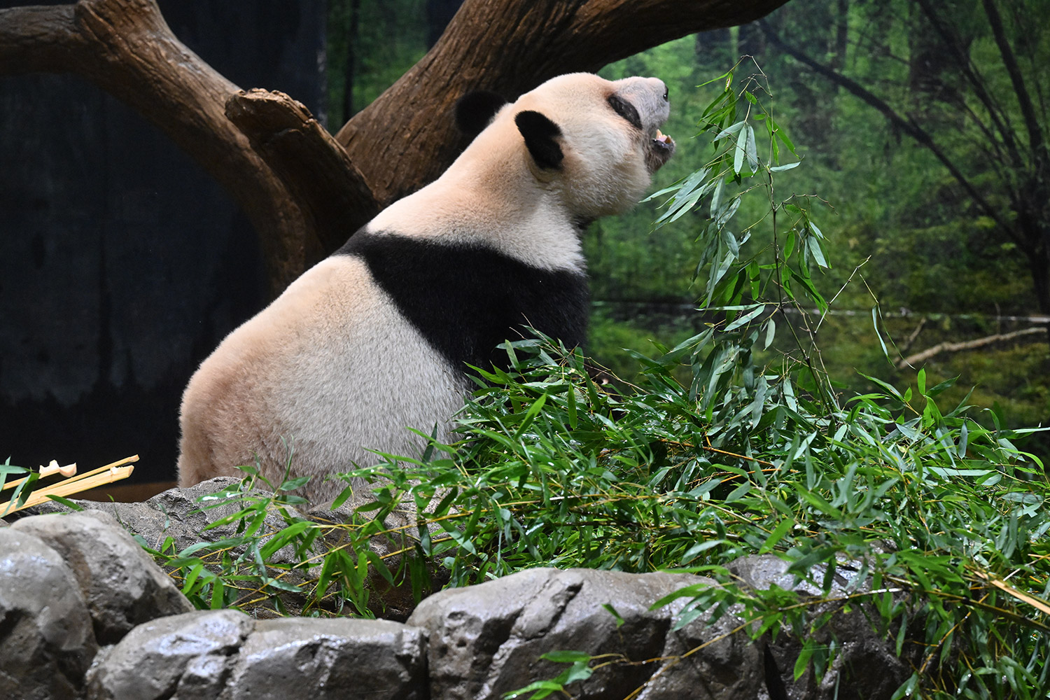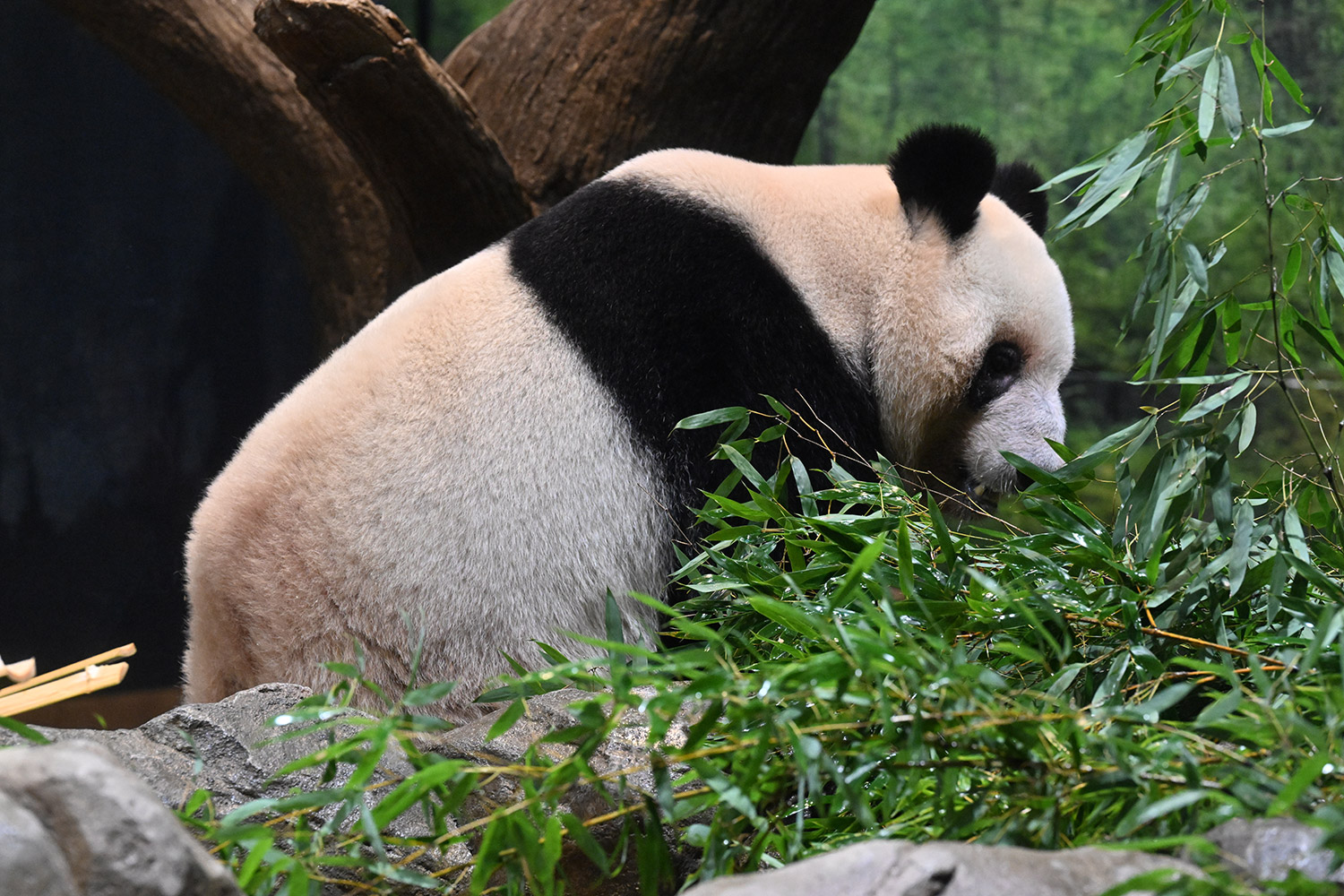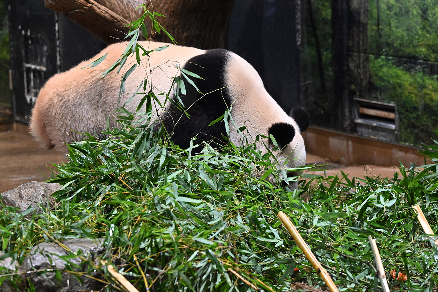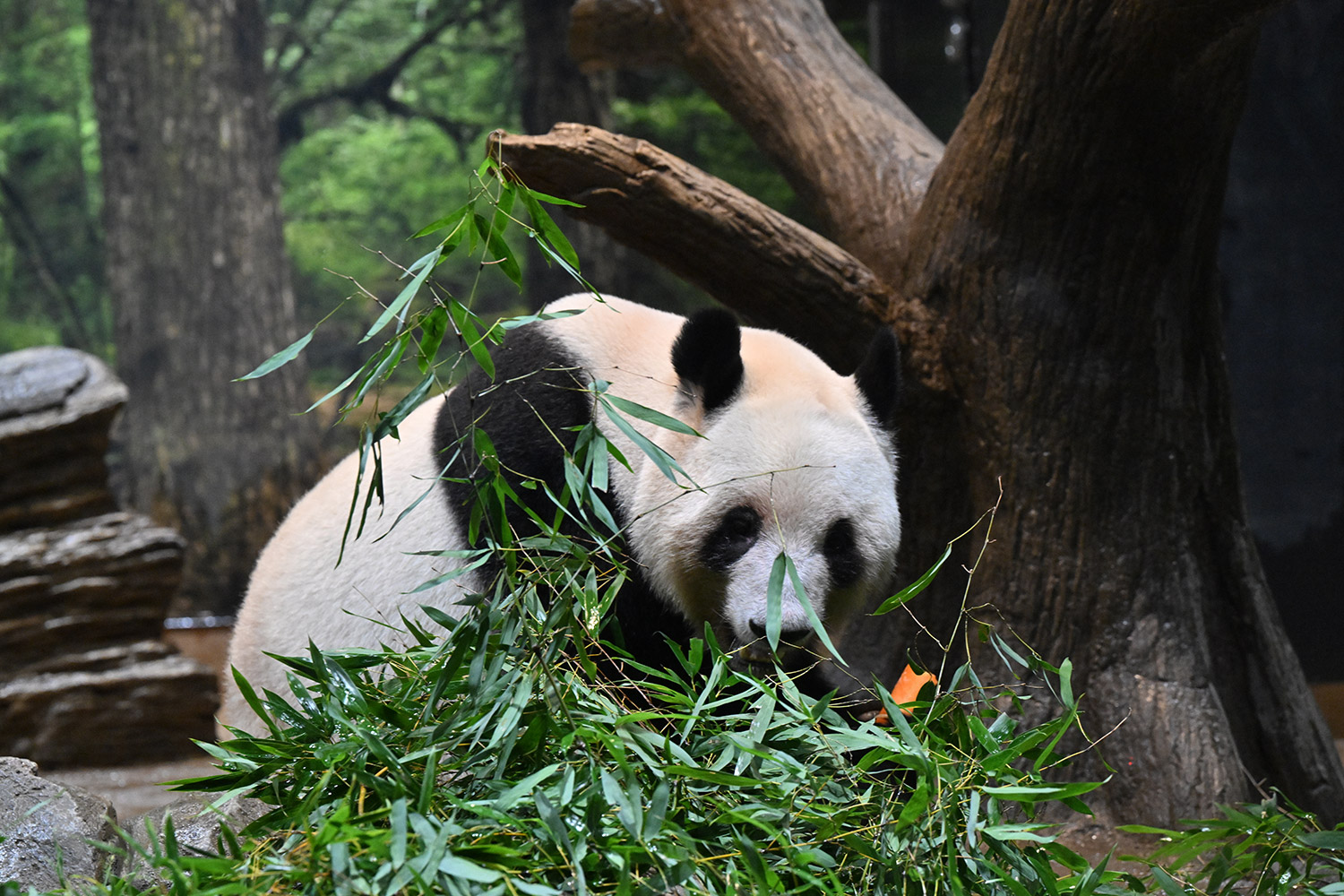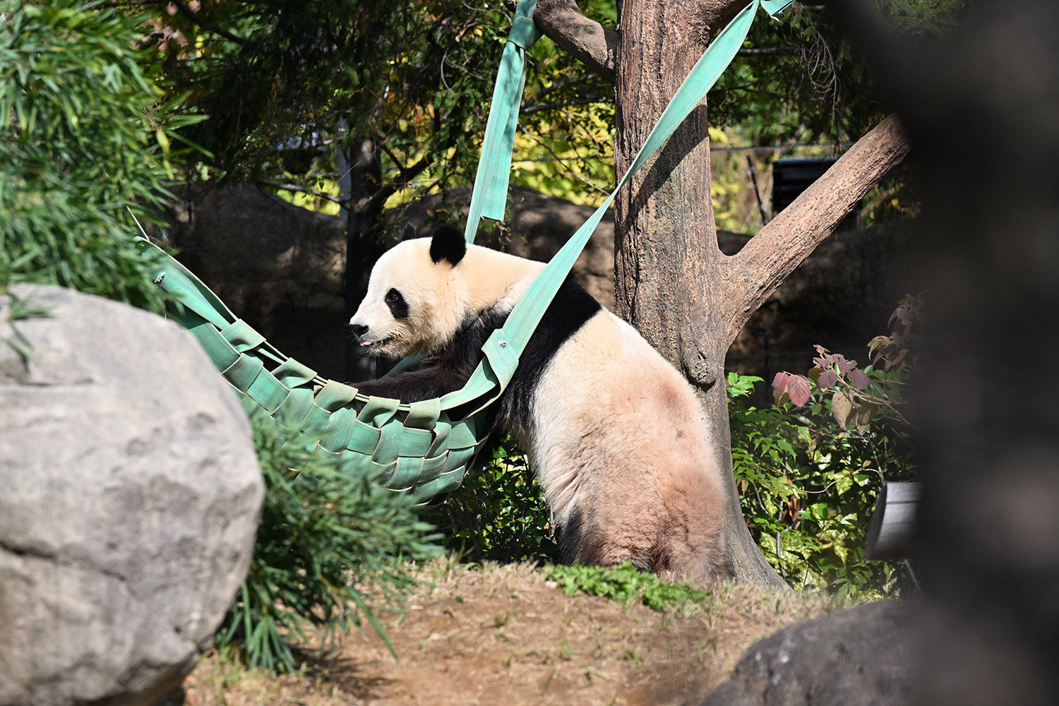 おやつゲットできたのかなぁ〜〜!?🐼💚大きな石に持たれてネムネム〜〜💤💤リラックスできるね❣️