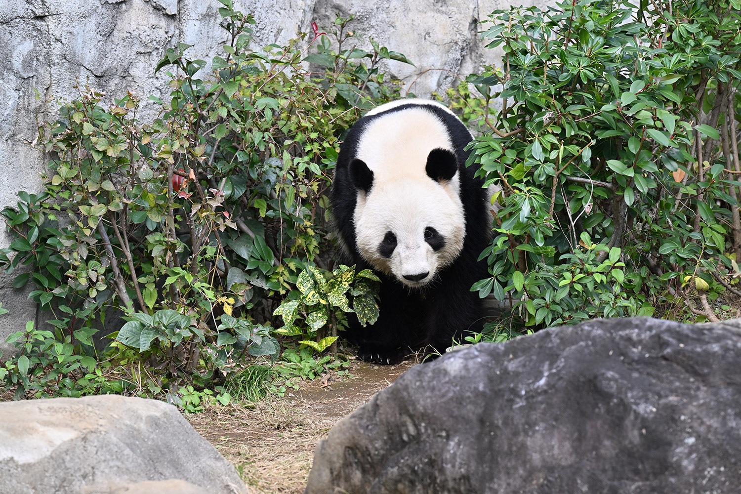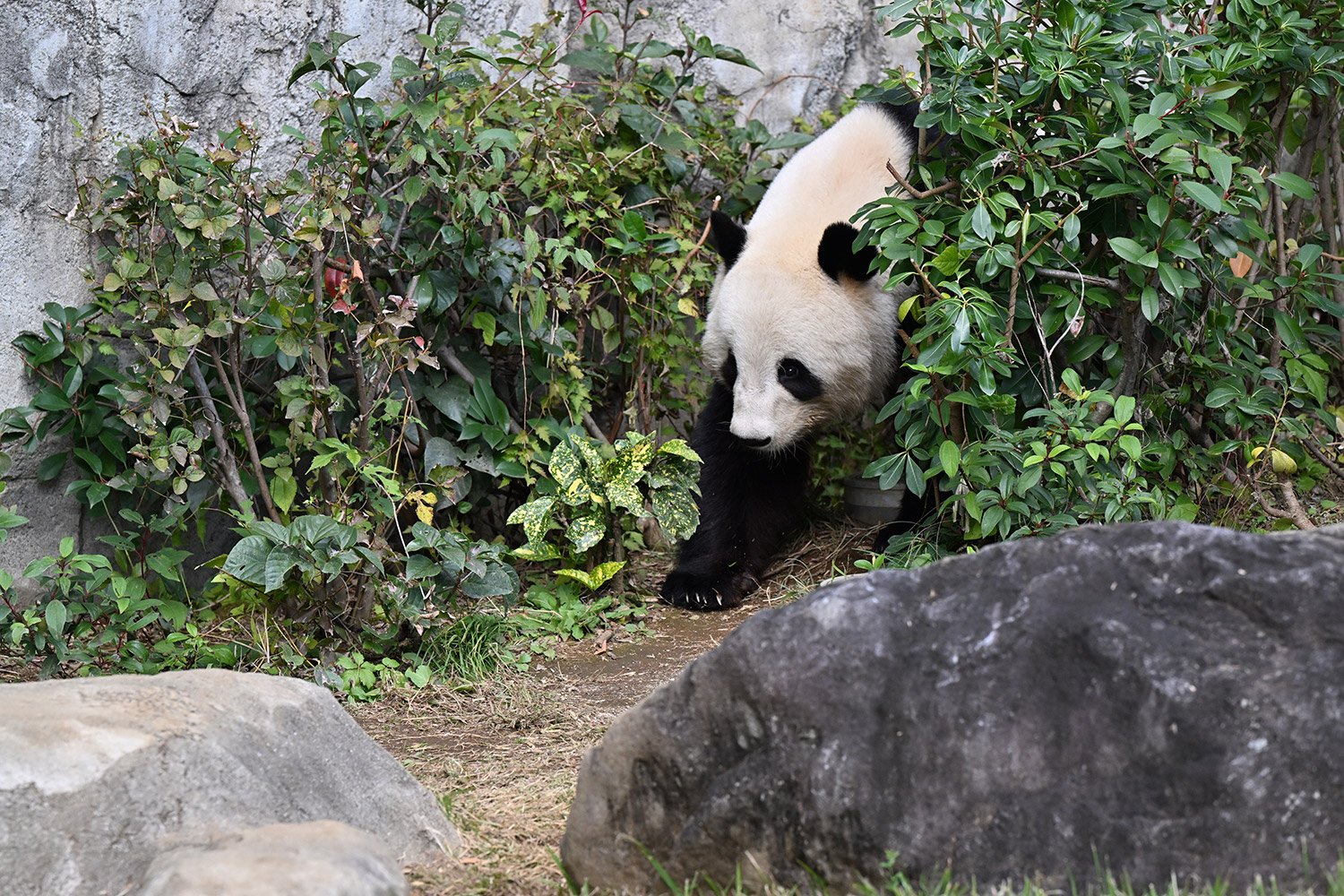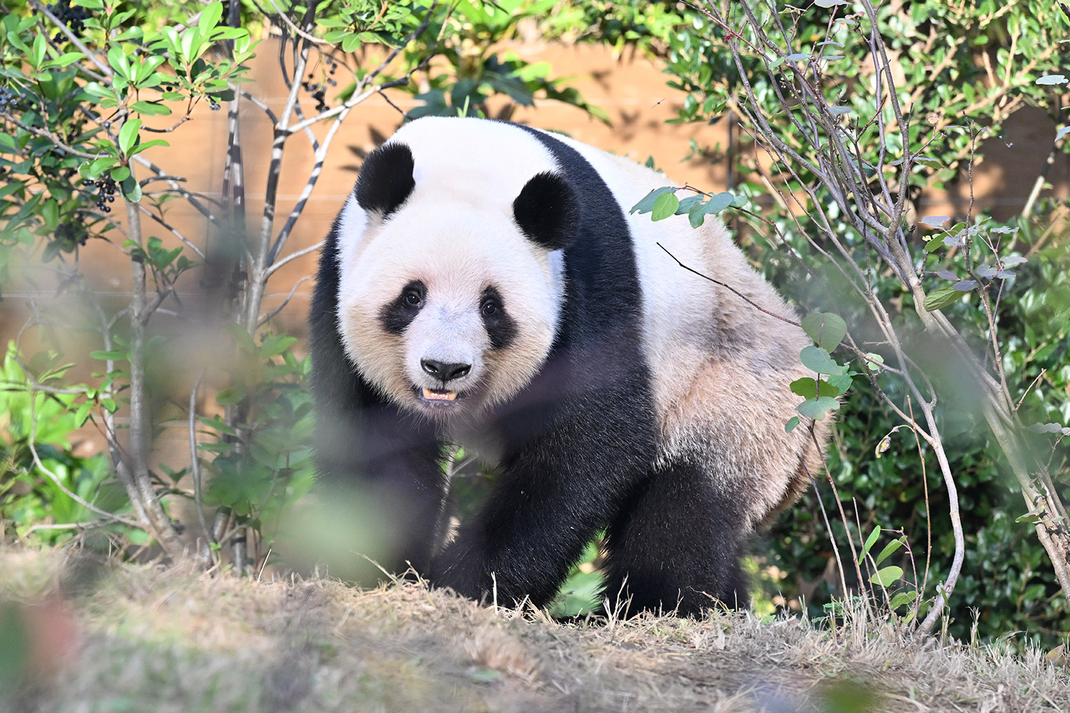 お庭レイちゃん木々の向こうに見え隠れwalking🐾可愛いな💕るんるんお庭タイムレイレイはシンシンとバッチリ重なりますね💞可愛くて優しい乙女の母娘…シャンも含め美panda三姉妹のよう🐼🐼🐼💞