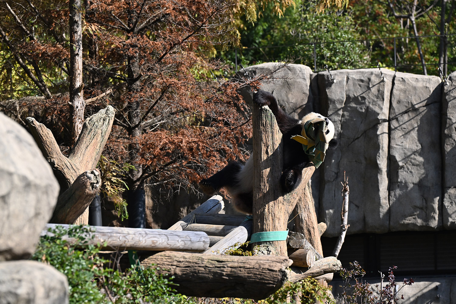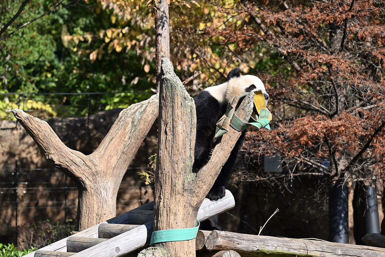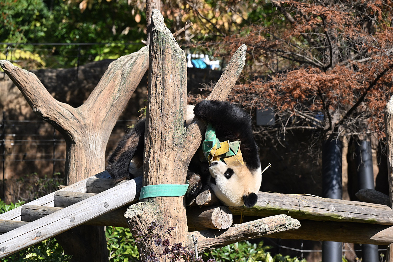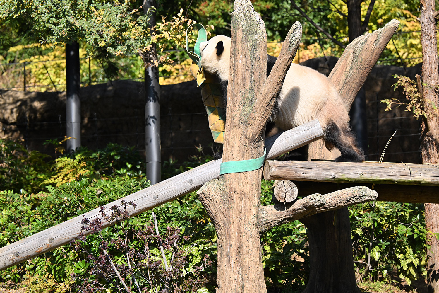 ぱんだうじ様 秋のパンダのもりをありがとうございます。レイレイ、乾燥してるからお水しっかり飲んでね。シャオシャオ、小暴れをうじ様に目撃されたね。高い木の枝からうっすらと覗いてるお顔がかわいい。