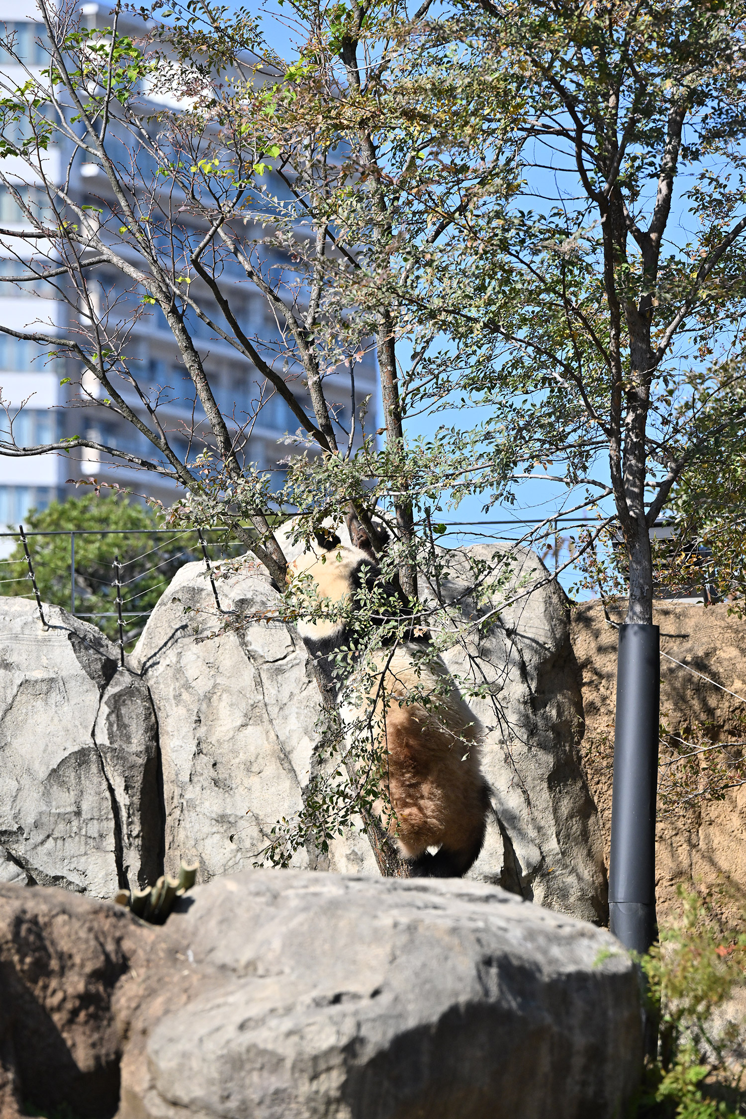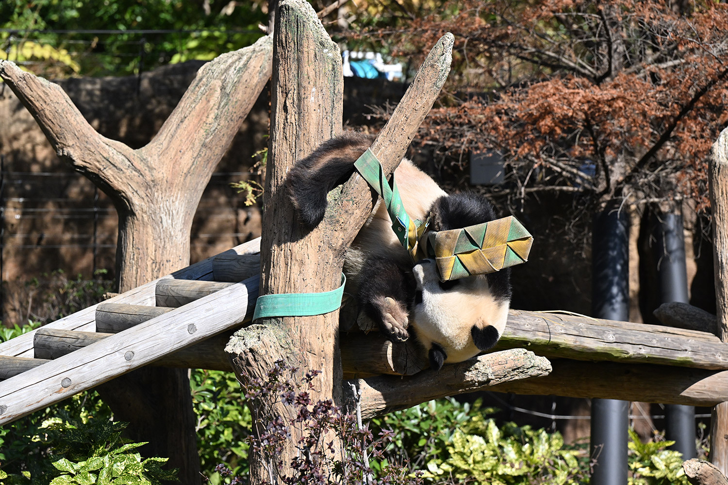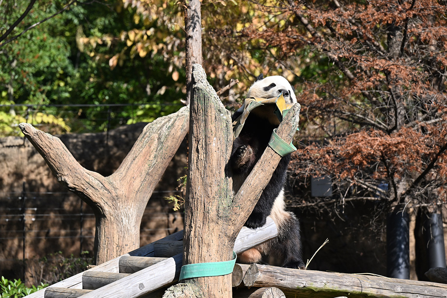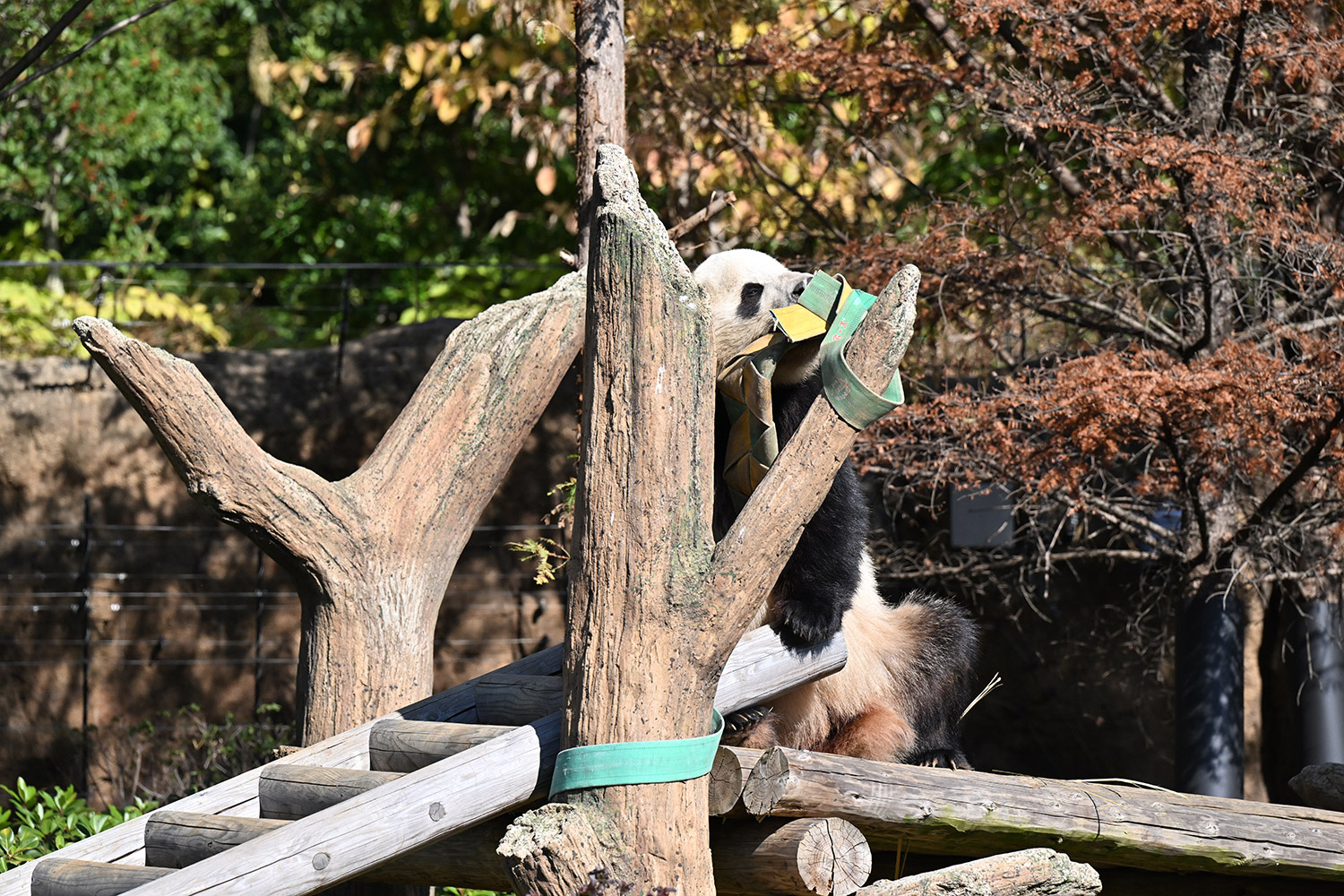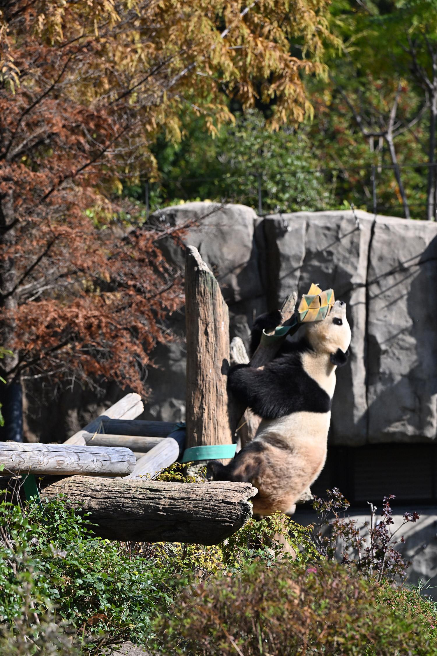 ぱんだうじ様 秋のパンダのもりをありがとうございます。レイレイ、乾燥してるからお水しっかり飲んでね。シャオシャオ、小暴れをうじ様に目撃されたね。高い木の枝からうっすらと覗いてるお顔がかわいい。