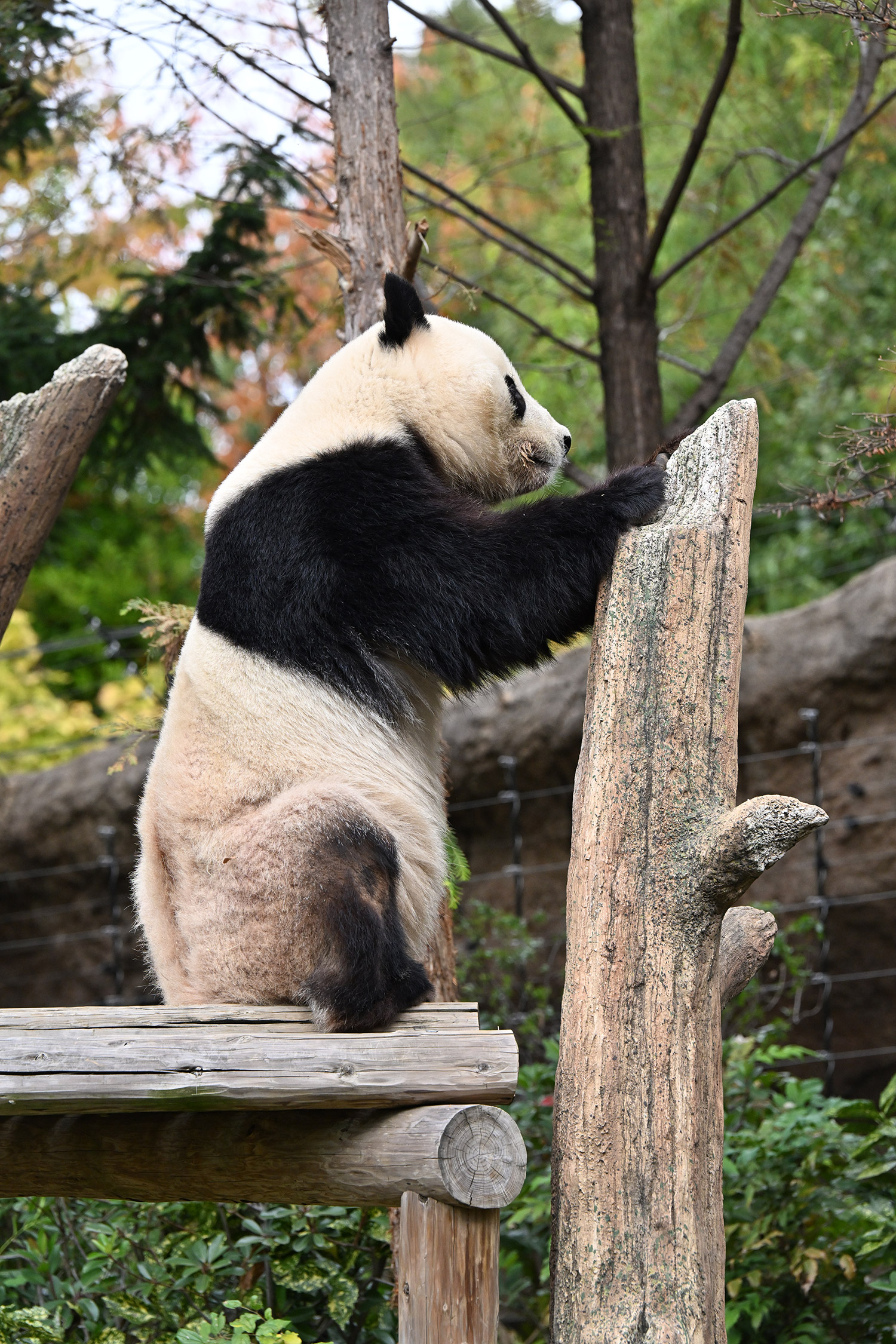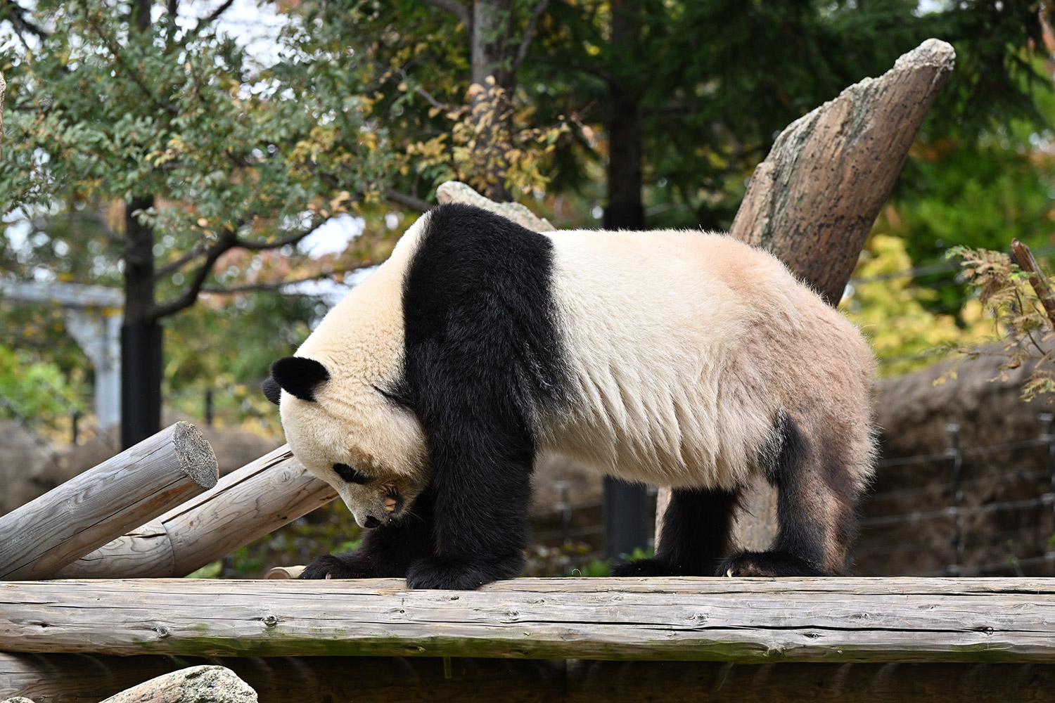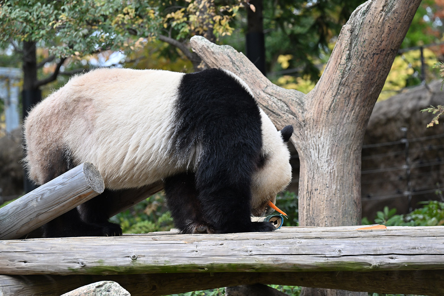 おおおお…さらに混雑を増した中ありがとうございます✨ シャオ〜、寒いのにすごい人気だね〜💦…擬木の切り口のあたりをおやつを探す姿「じんじん🥕ないよ〜」…🤣💕ないねぇ。この後にちょっと遠い目なショット「…ナイヨ…」もイイ😌💕こんな姿をバックヤードから見てたら、私なら「はいよはいよ〜🥕🥕🥕」て投げてあげちゃうなあ😂。