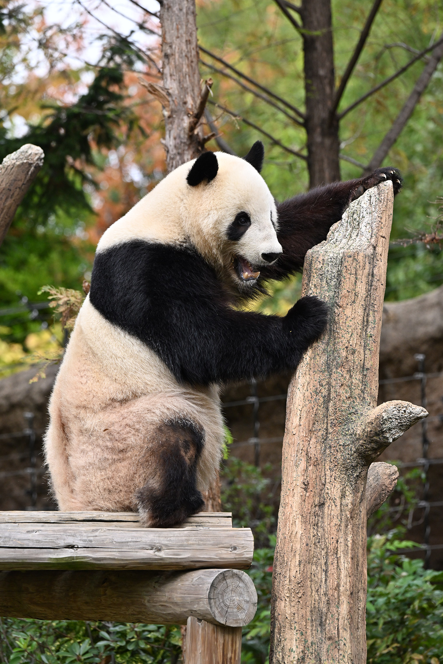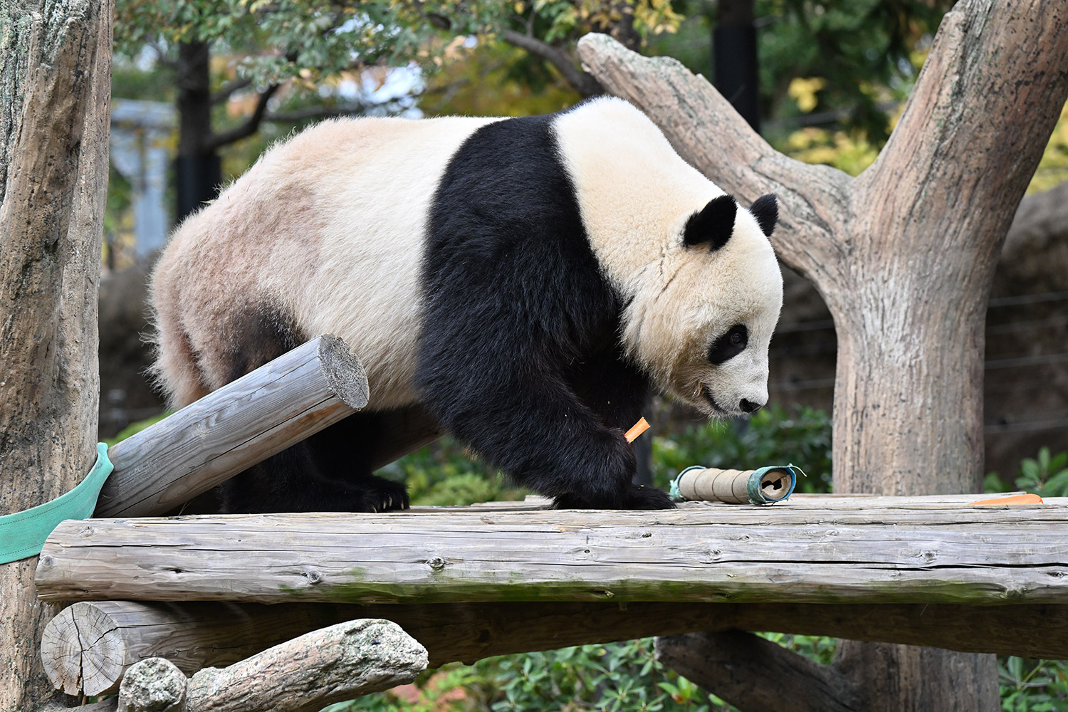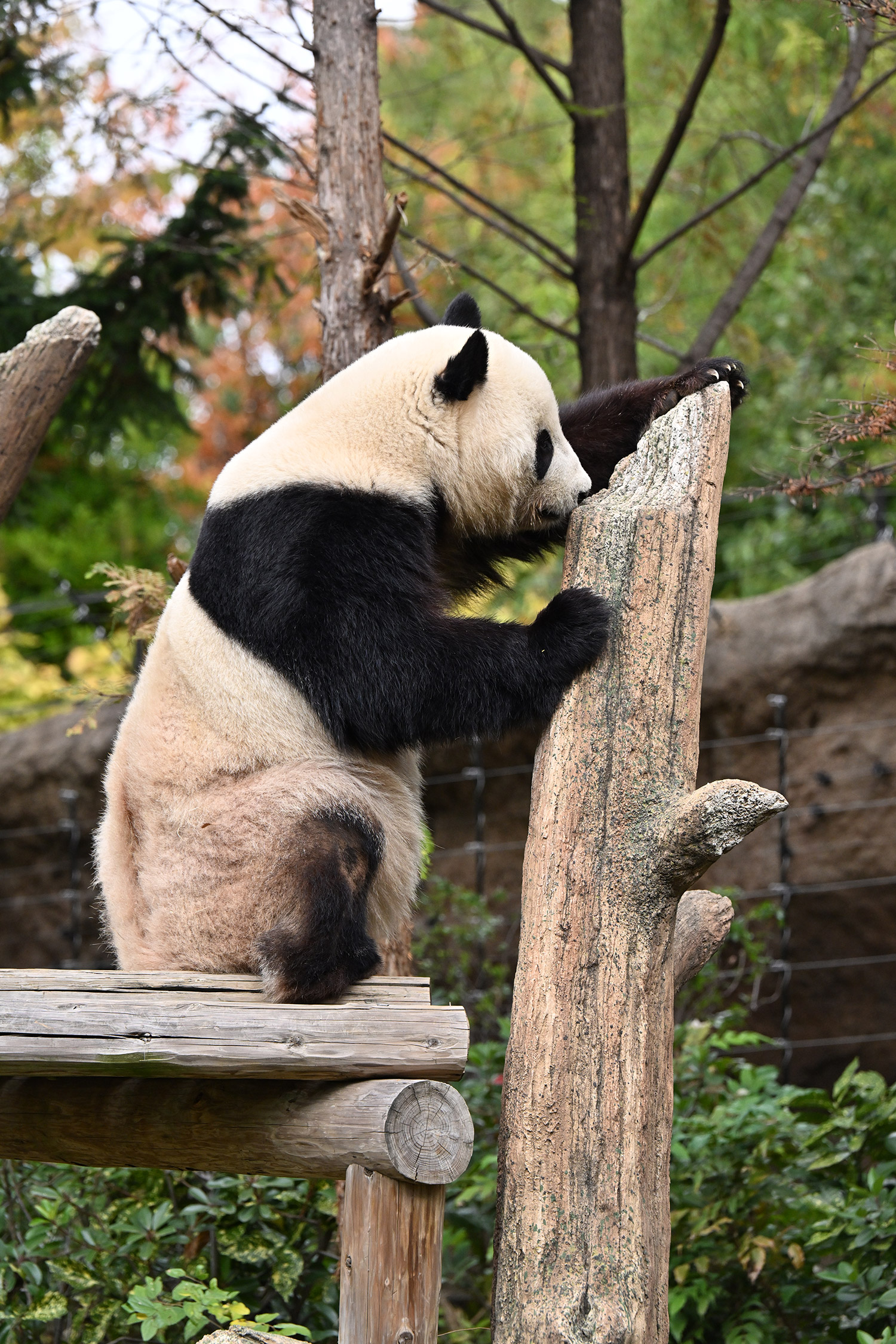 おおおお…さらに混雑を増した中ありがとうございます✨ シャオ〜、寒いのにすごい人気だね〜💦…擬木の切り口のあたりをおやつを探す姿「じんじん🥕ないよ〜」…🤣💕ないねぇ。この後にちょっと遠い目なショット「…ナイヨ…」もイイ😌💕こんな姿をバックヤードから見てたら、私なら「はいよはいよ〜🥕🥕🥕」て投げてあげちゃうなあ😂。