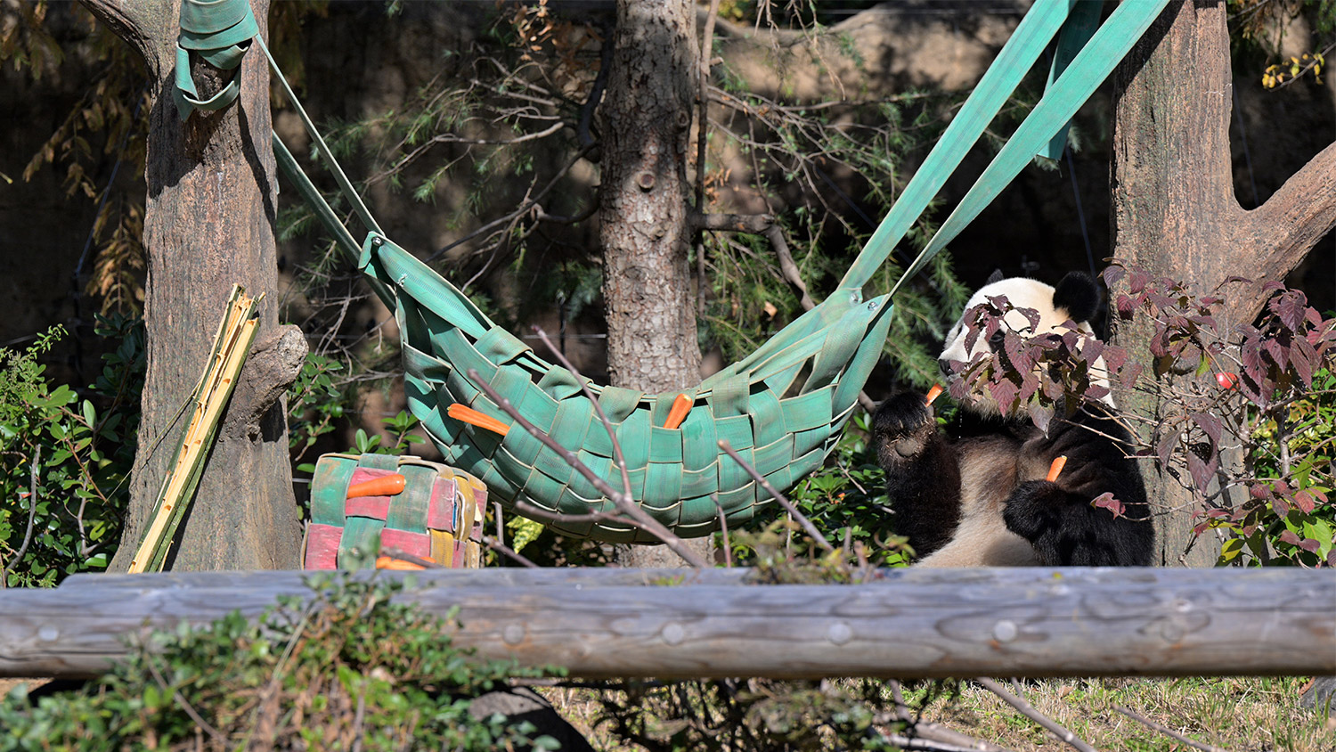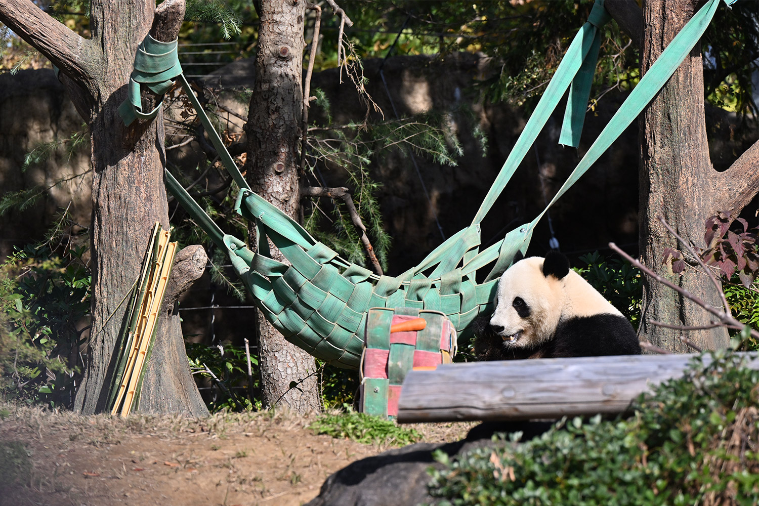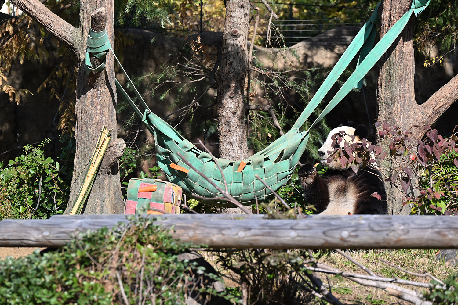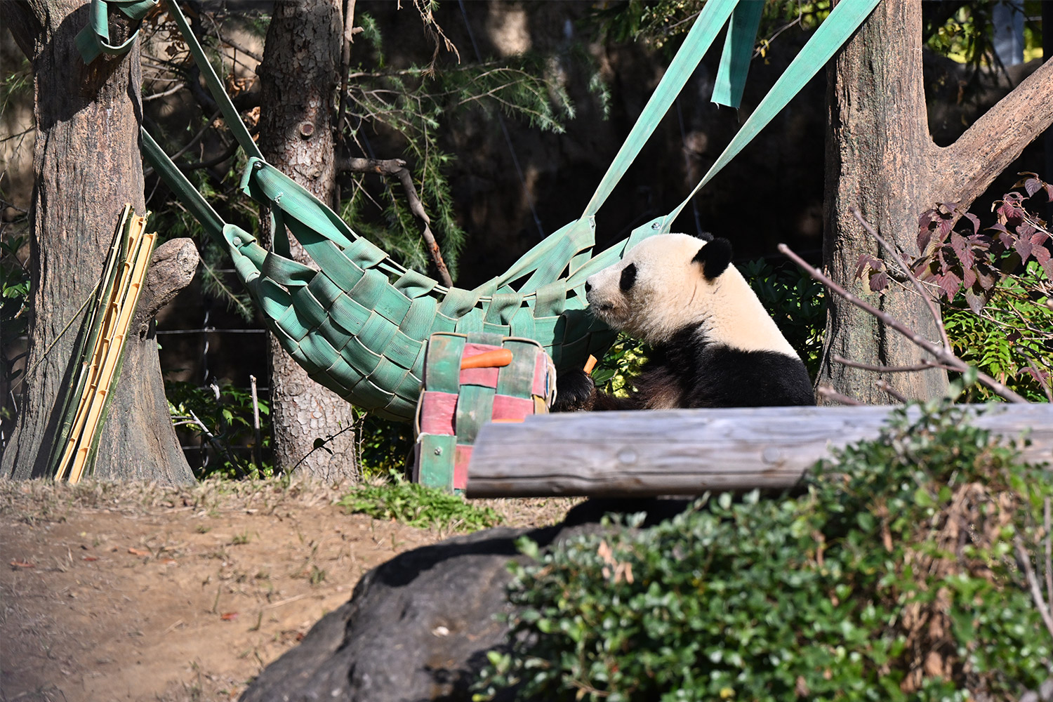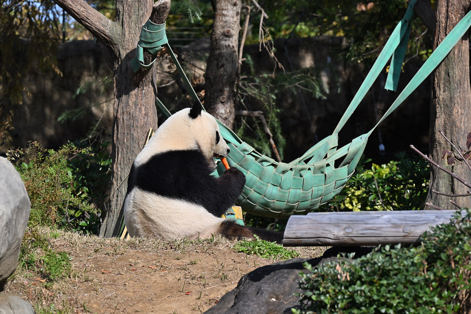 ぱんだうじ様 三連休お疲れ様でした。シャオシャオ、人参さんを両手で二刀流だね。レイレイ、ハンモックでゴロゴロ楽しいね。シャオのように人参さんでハンモックを飾ってほしいな。