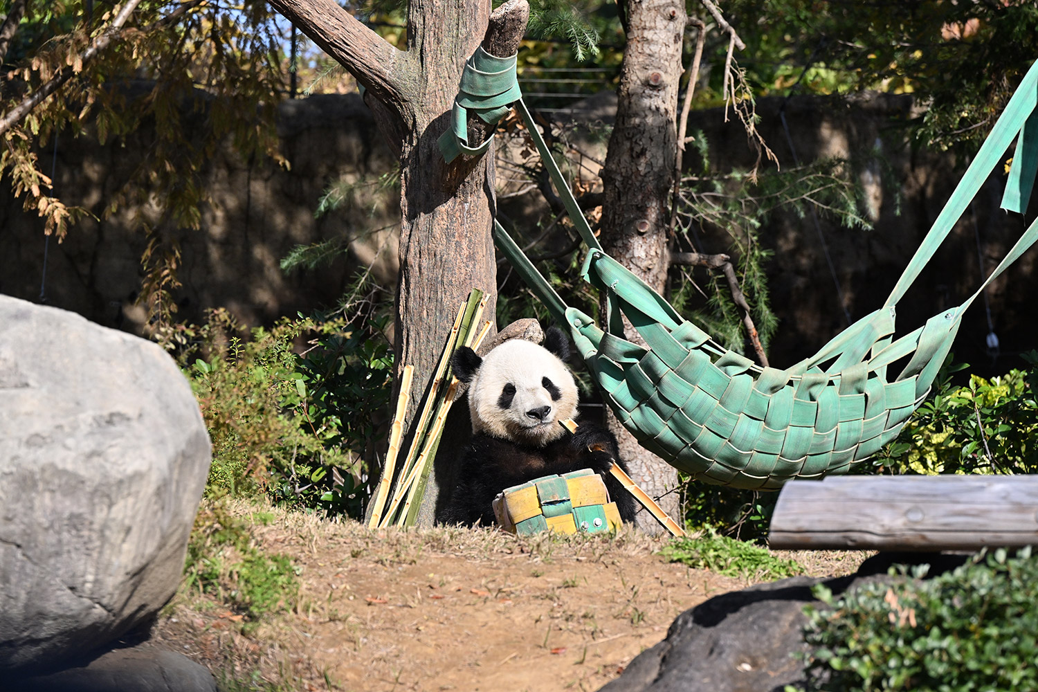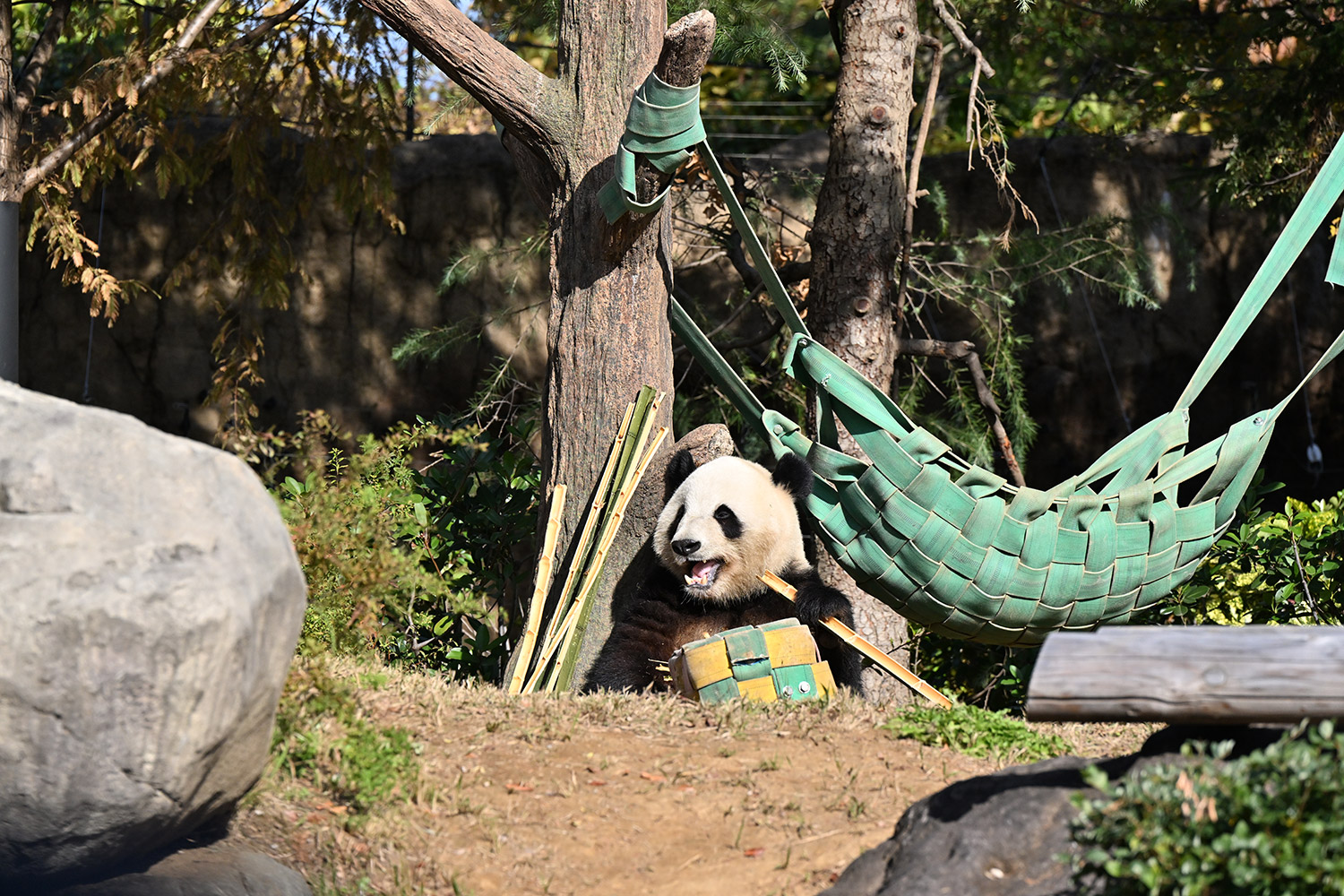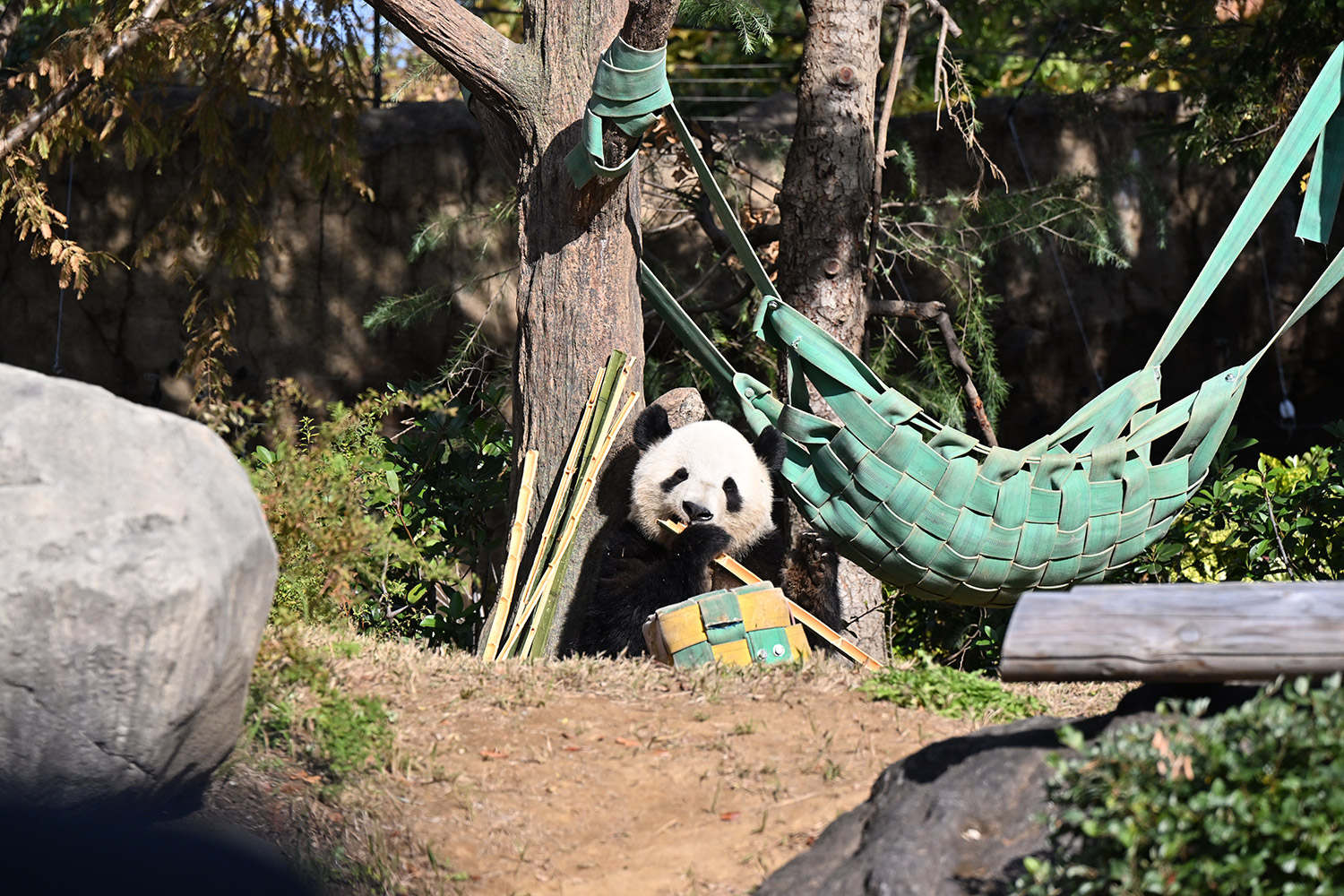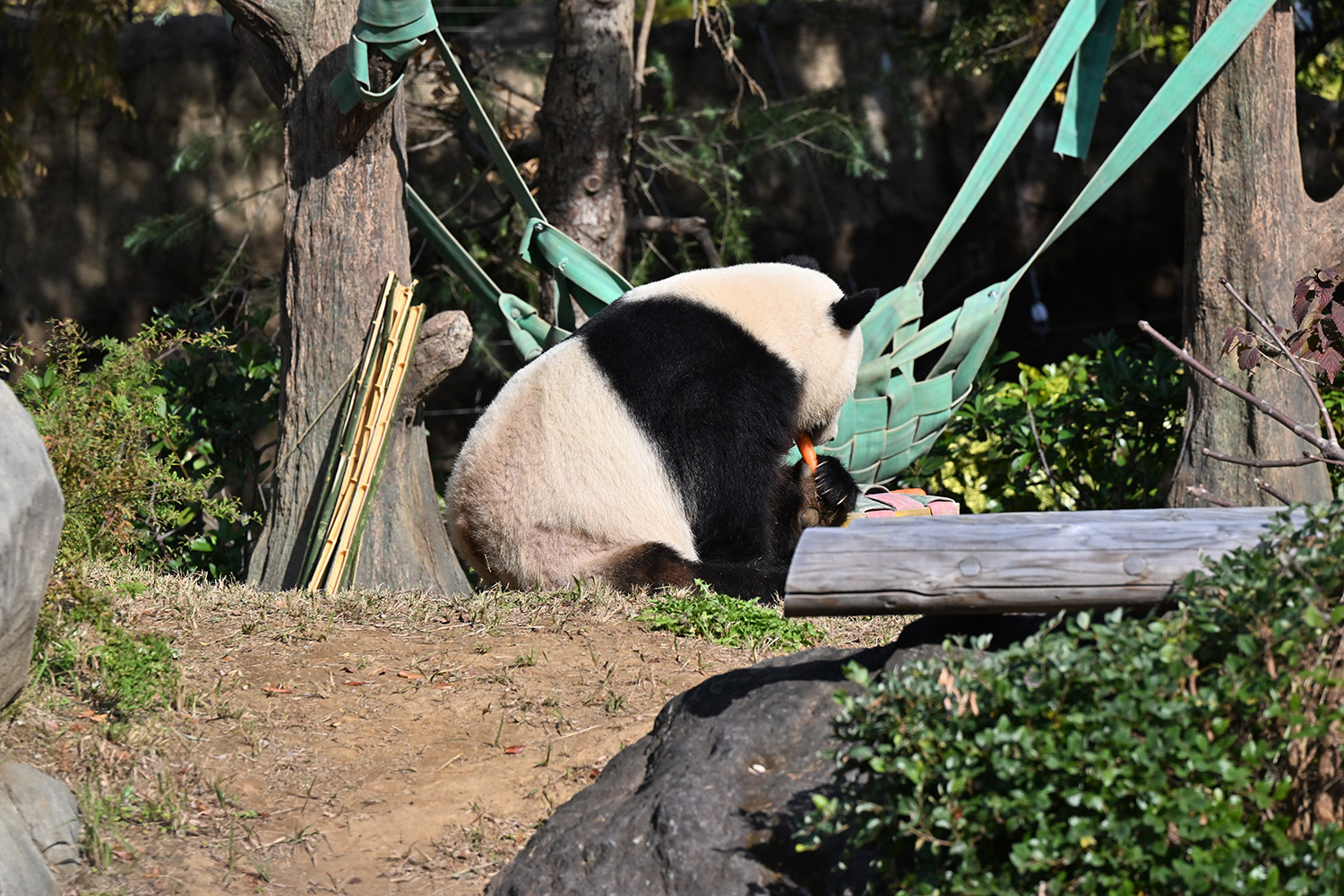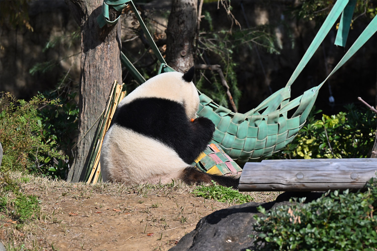 ぱんだうじ様 三連休お疲れ様でした。シャオシャオ、人参さんを両手で二刀流だね。レイレイ、ハンモックでゴロゴロ楽しいね。シャオのように人参さんでハンモックを飾ってほしいな。