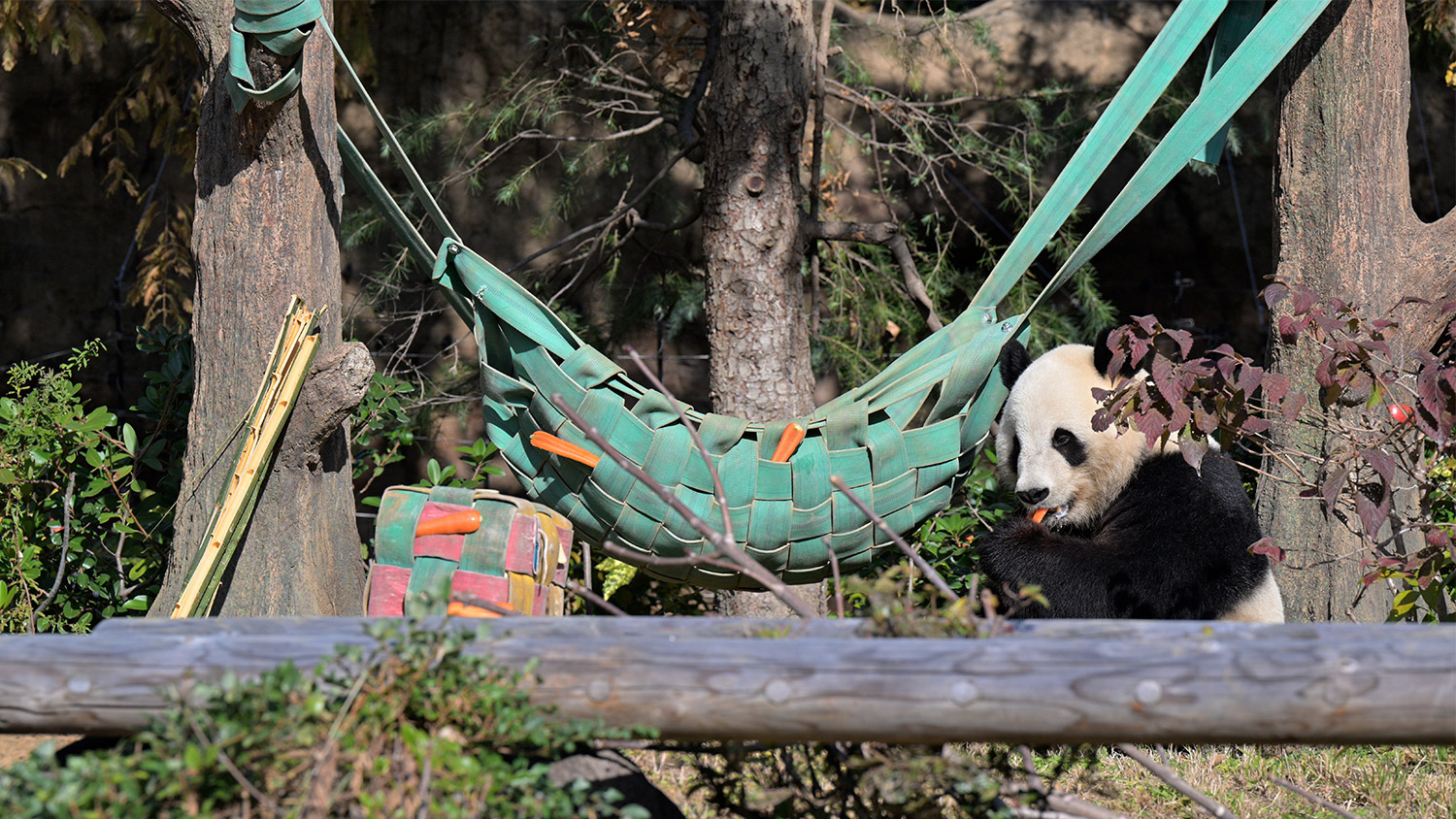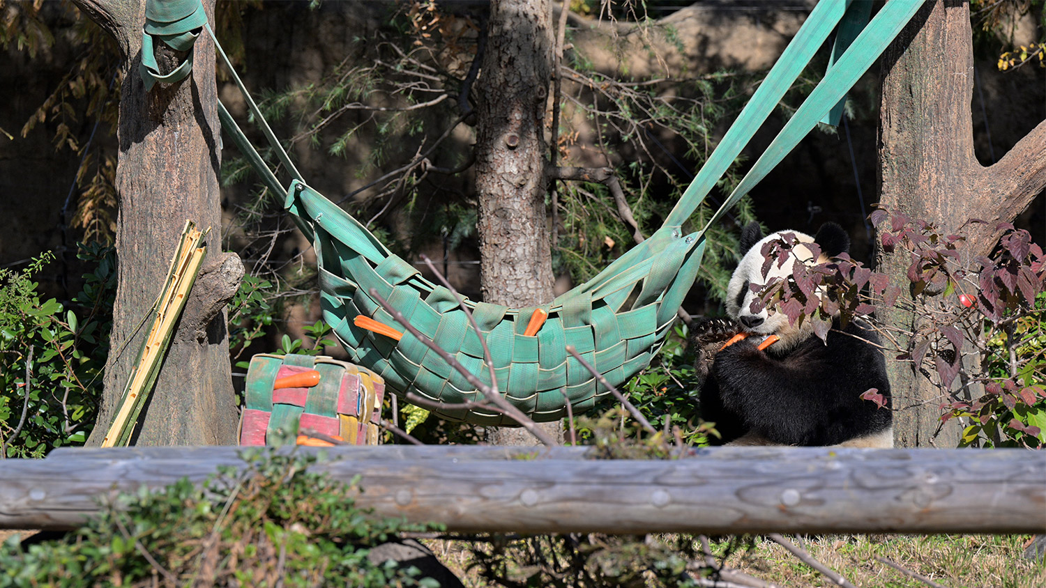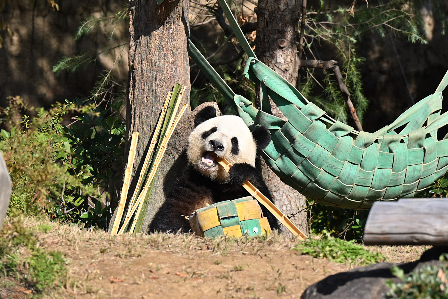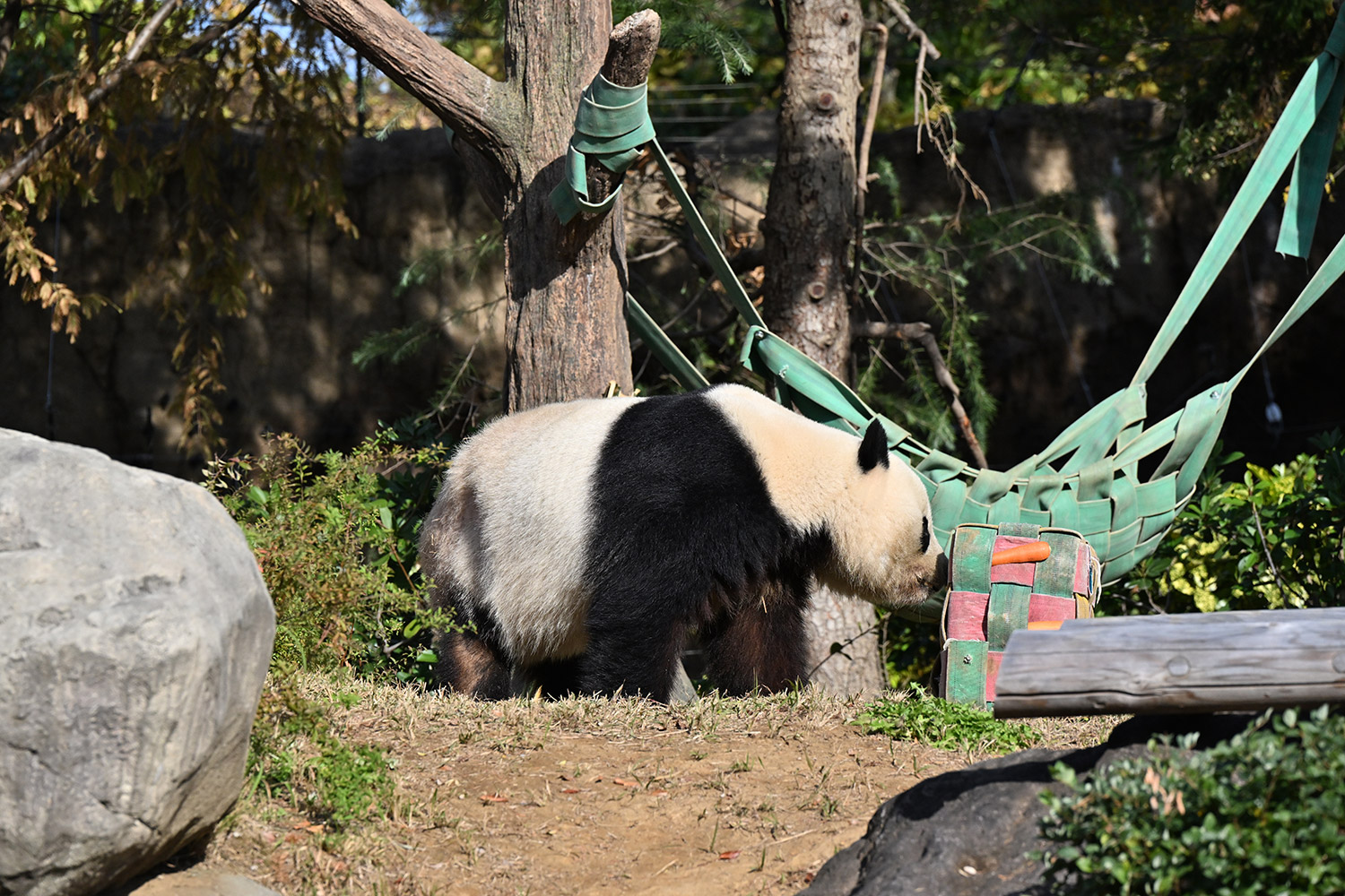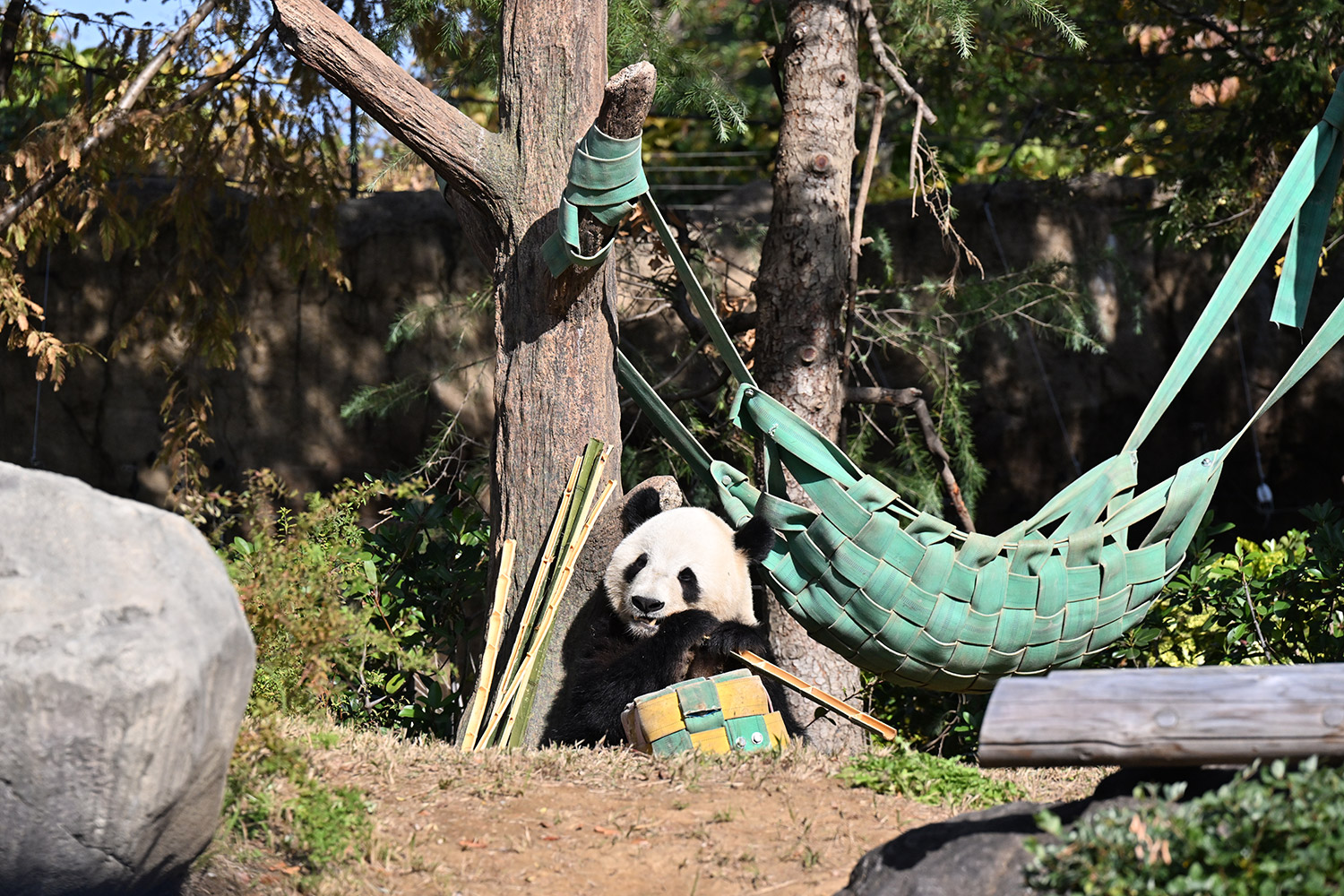 ぱんだうじ様 三連休お疲れ様でした。シャオシャオ、人参さんを両手で二刀流だね。レイレイ、ハンモックでゴロゴロ楽しいね。シャオのように人参さんでハンモックを飾ってほしいな。