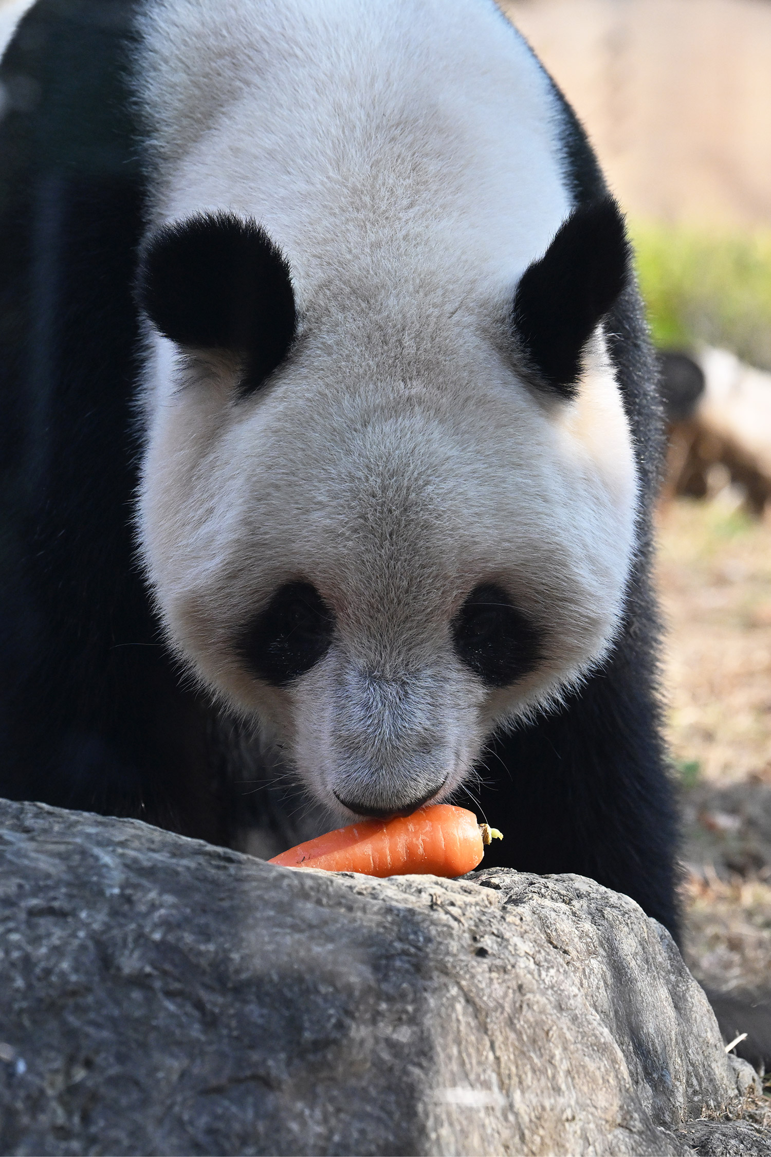 6. ぱんだうじ様、皆様、おはようございます☁️昨日は、園に行ってきました🚃シャオシャオ🐼は、30分、レイレイ🐼は、60分待ちでした。私が見たシャオ🐼君は、木登り3回、レイ🐼ちゃんも、1回木登りしていました。レイちゃんも、シャオ君も、🥕美味しそうに食べていますね。上野の、ハシビロコウは、1羽は暖かい暖房のお部屋にいて、この前見た時は、座っていました?。座っていた、ハシビロコウを見たのは初めてでした。うじさま、皆様、いつもありがとうございます☺️🐼