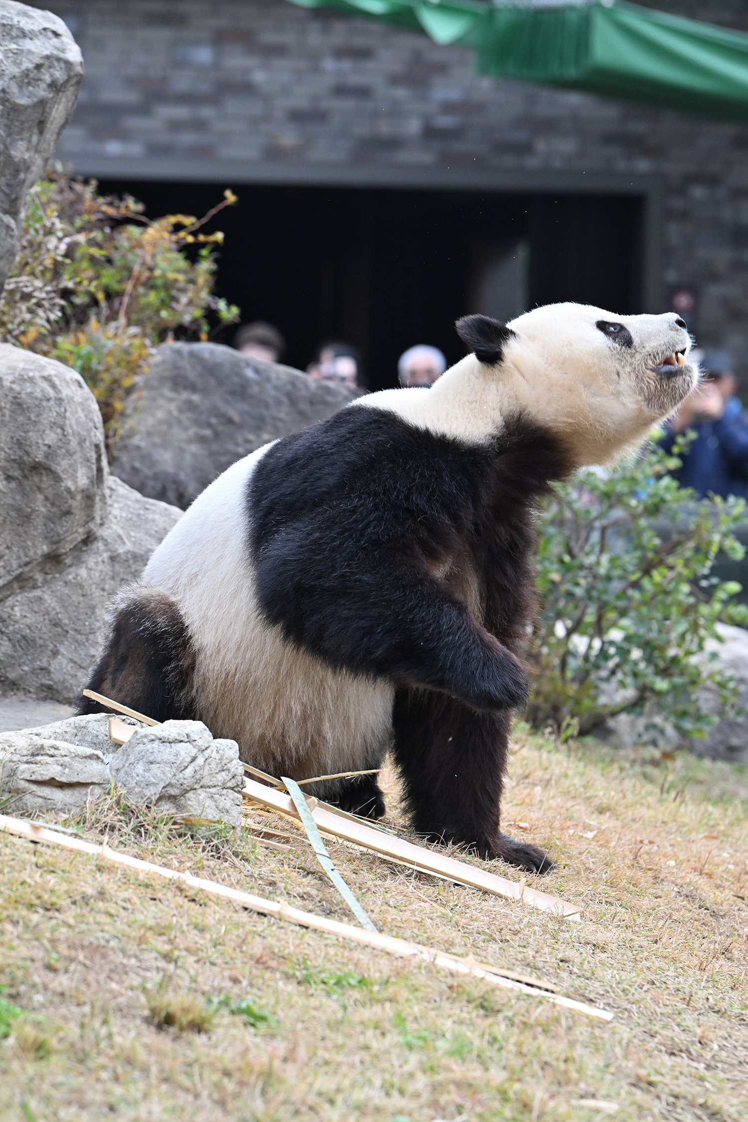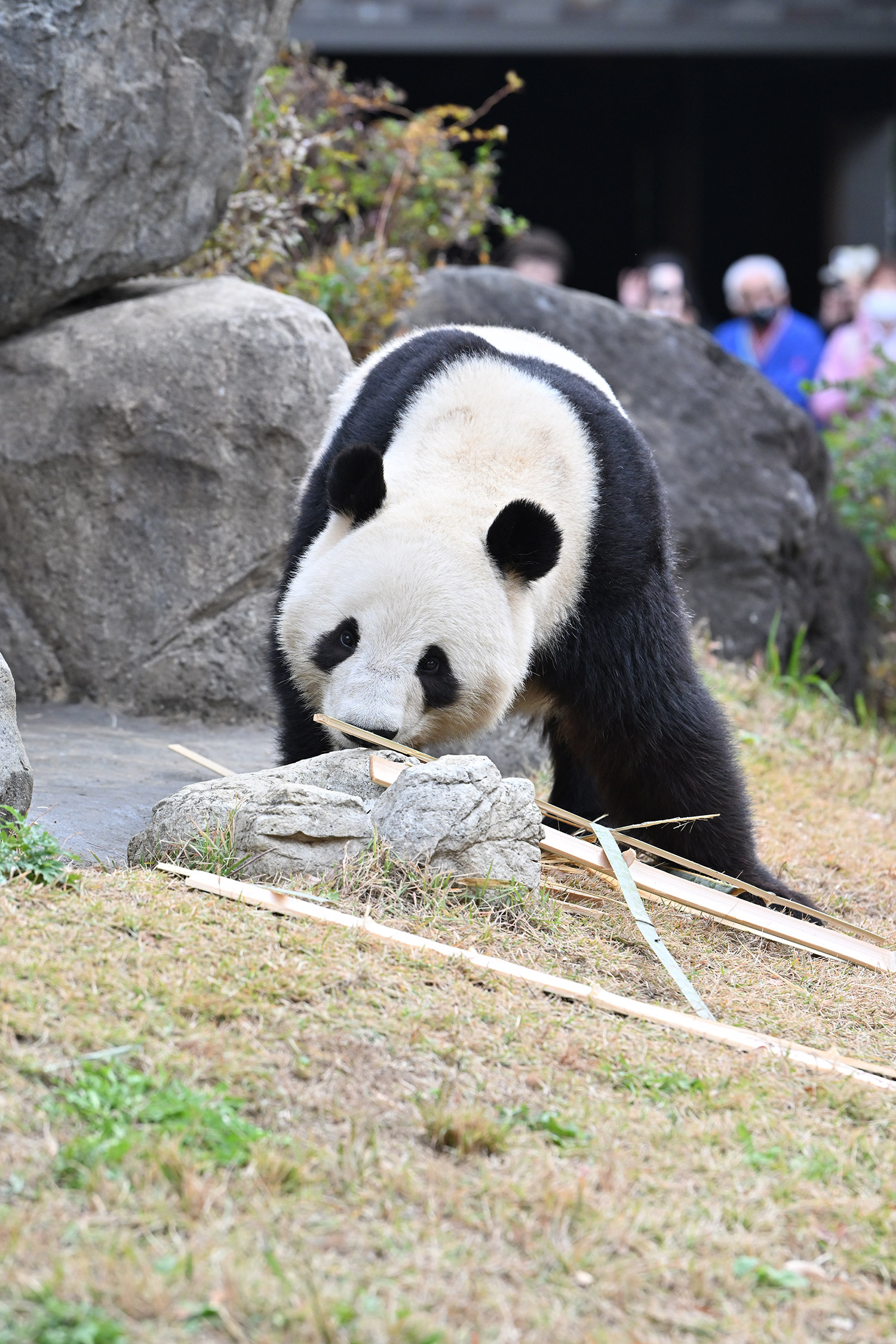 シャオ君のお庭はギャラリーが重なるように大勢ですね。シャオ君にとっては当たり前の光景なんですね。混雑の中でもパンダさんの表情が良く解って有り難いお写真です。レイちゃんのお庭で🥕パクパクも増えましたね。櫓の上で寝んねは見られませんが上っているのかな。登ってママの事思い出しながら過ごしたりするかな…😍気温が下がってくるそうですね。気忙しい12月ですが、氏様皆様しっかり食べて元気にまいりましょう😀